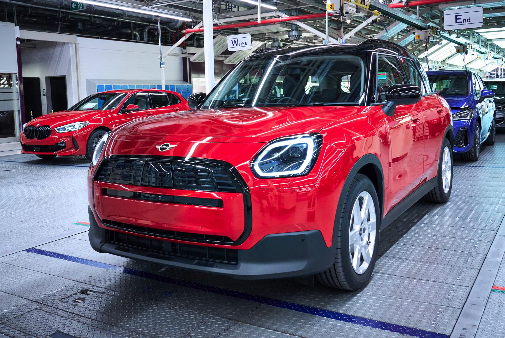 Auf den ersten Fotos von der Produktion des elektrischen U25 sehen wir einen MINI Countryman E in Chili Red, der außerdem den Classic Trim und das schwarze Kontrastdach trägt. Der 204 PS starke Einstiegs-Stromer beschleunigt in 8,6 Sekunden von 0 auf 100, bietet bis zu 462 Kilometer Reichweite gemäß WLTP und kostet in Deutschland mindestens 43.500 Euro. Wer sich noch mehr Leistung wünscht und ein größeres Budget hat, kann auch zum neuen MINI Countryman SE greifen und dort den 313 PS starken Antriebsstrang von BMW iX2 und iX1 xDrive30 genießen.