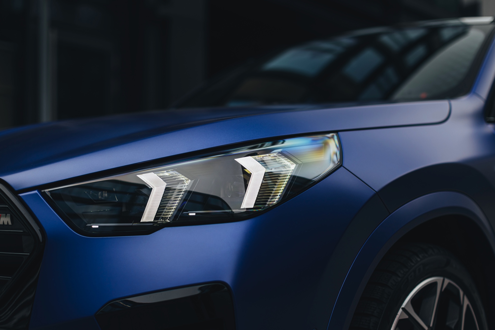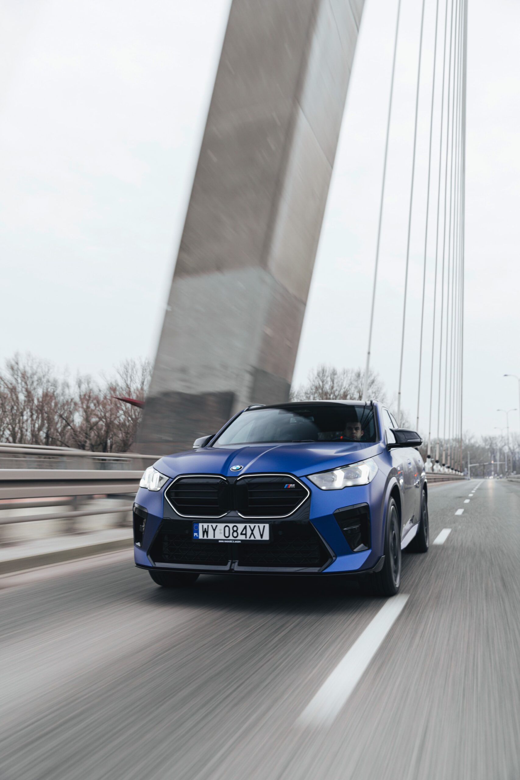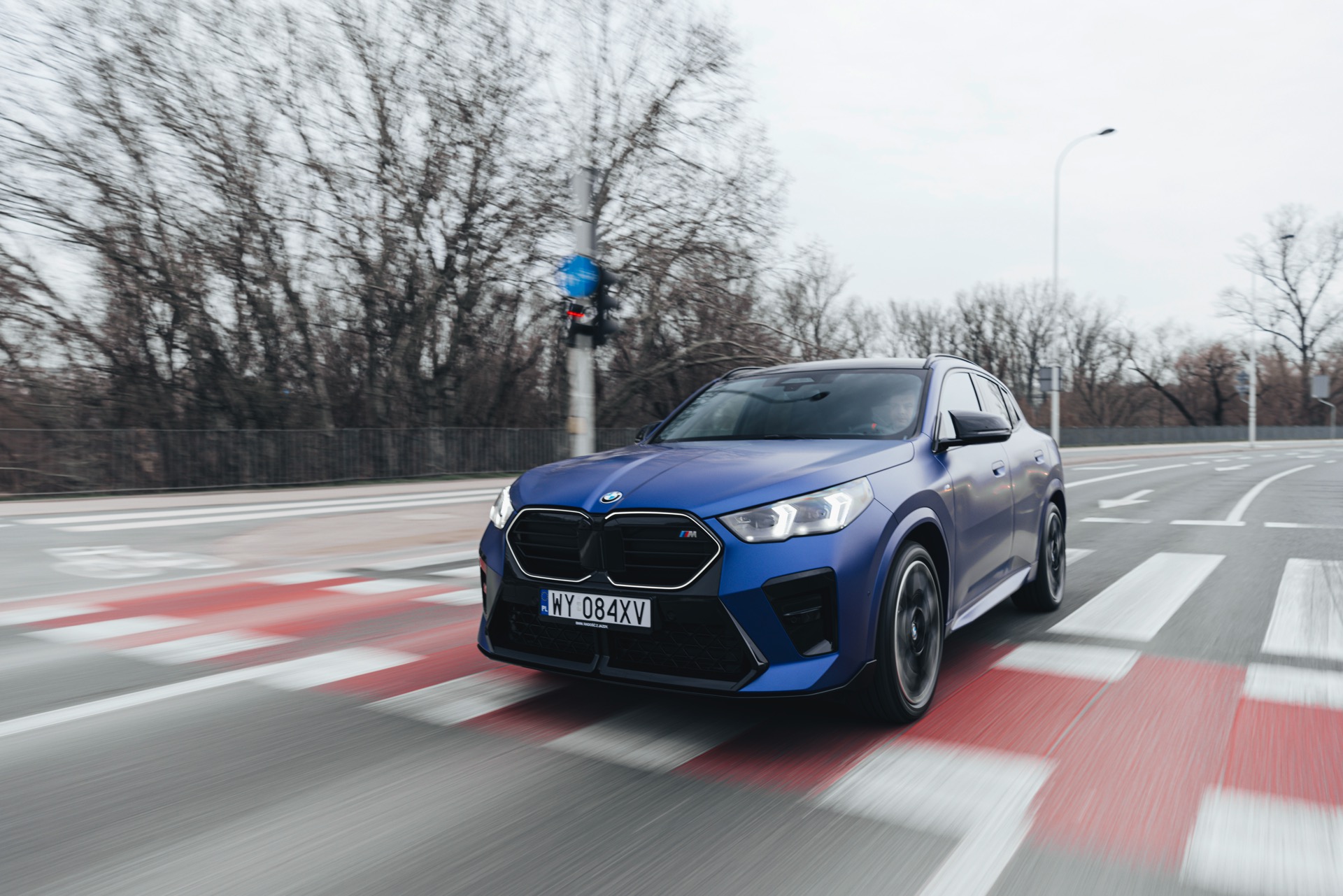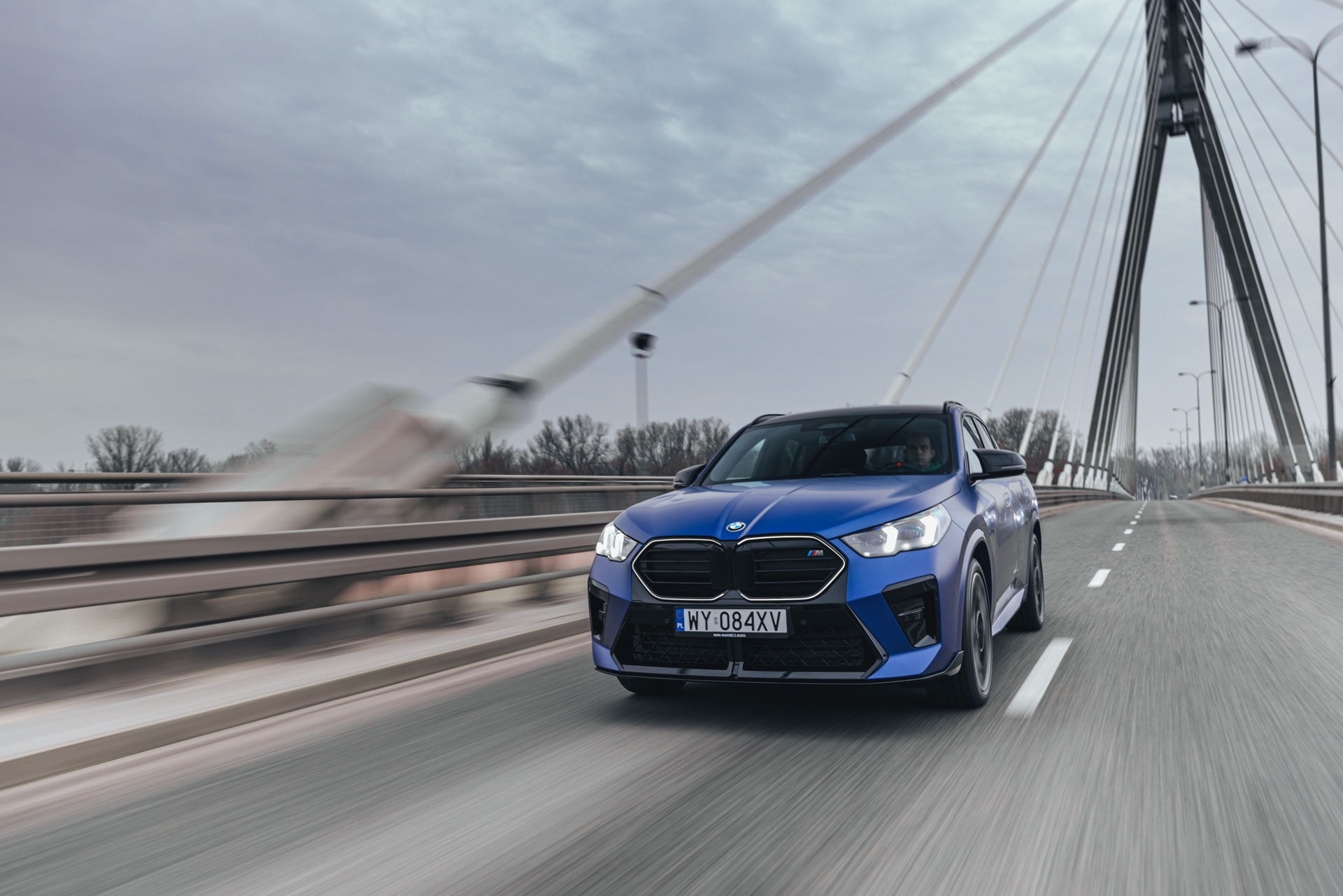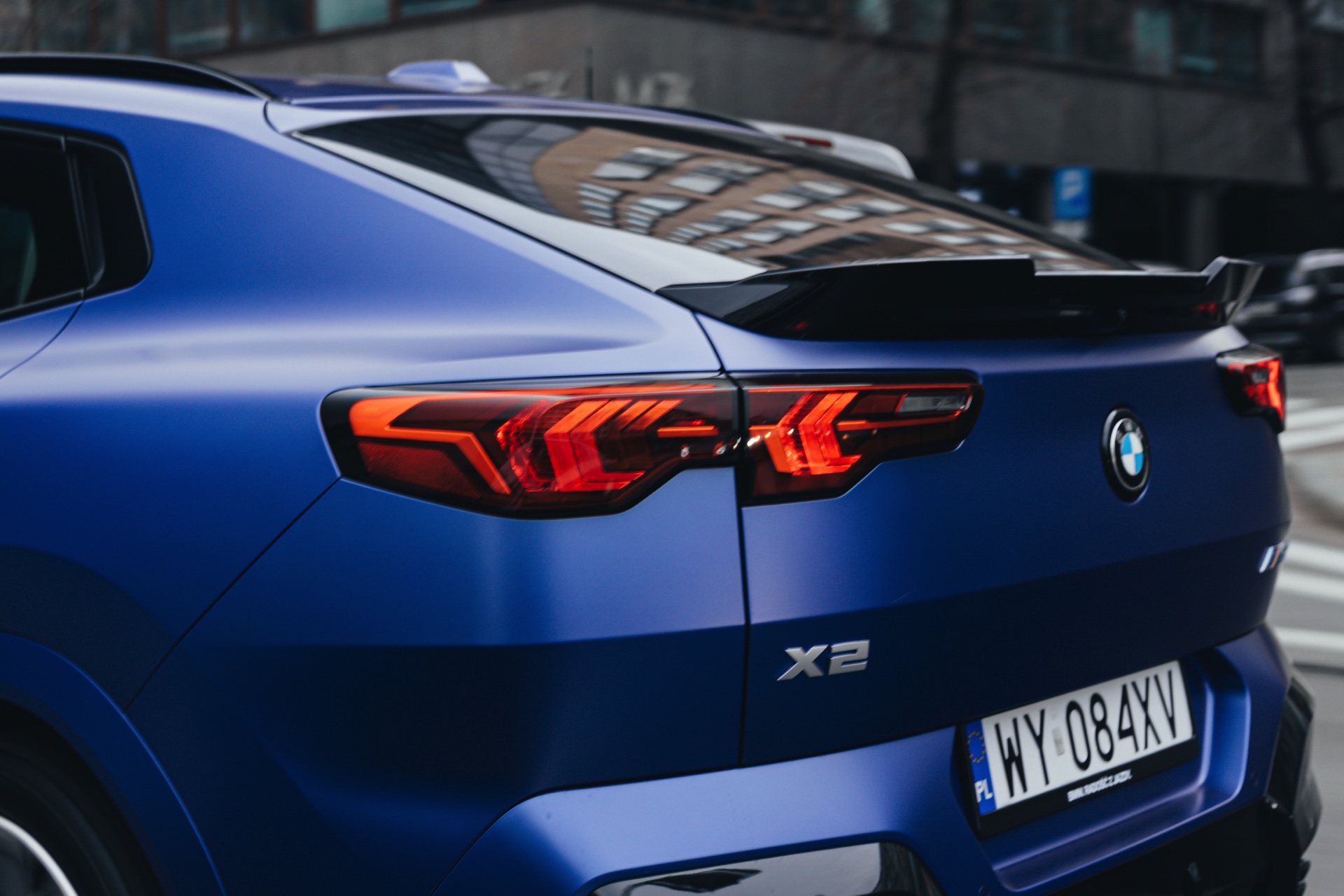 Frozen Portimao Blue ist der Star einer neuen Foto-Serie zum BMW X2 (U10) in Warschau. Das intensive Blau mit mattem Finish wird dabei auf einem X2 M35i präsentiert, der zudem das M Sportpaket Pro trägt und deshalb mit den schwarzen Umfängen der Shadow Line mit erweiterten Umfängen glänzt. Besonders sichtbar wird das an der schwarzen Niere, die bei aktivierter Zündung dank Iconic Glow-Beleuchtung dennoch prominent in Erscheinung tritt. Während die meisten Details des gezeigten X2 für alle Motorisierungen verfügbar sind, sind das Nieren-Innenleben mit horizontalen Streben und die vier Endrohre am Heck exklusiv dem Topmodell M35i vorbehalten.