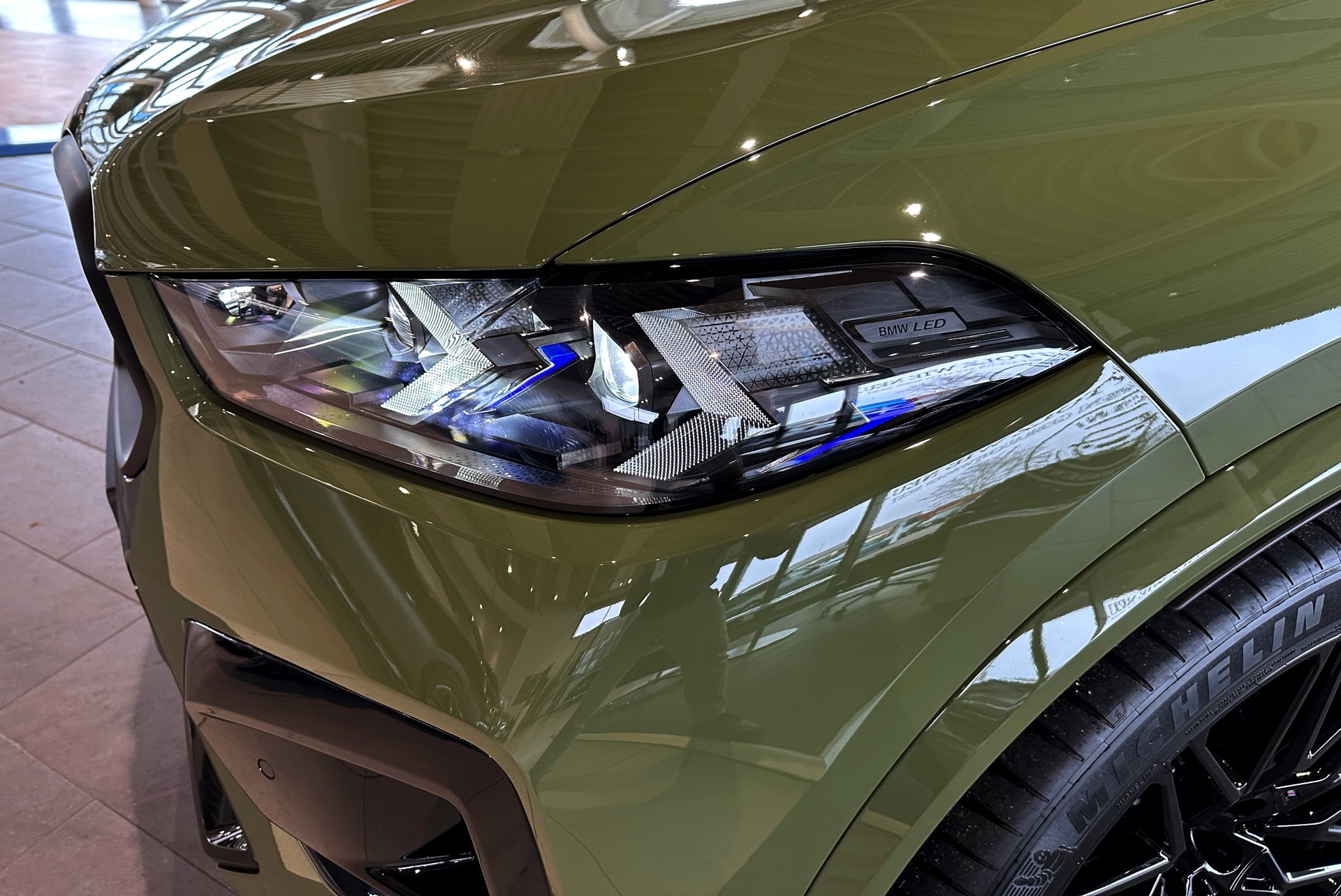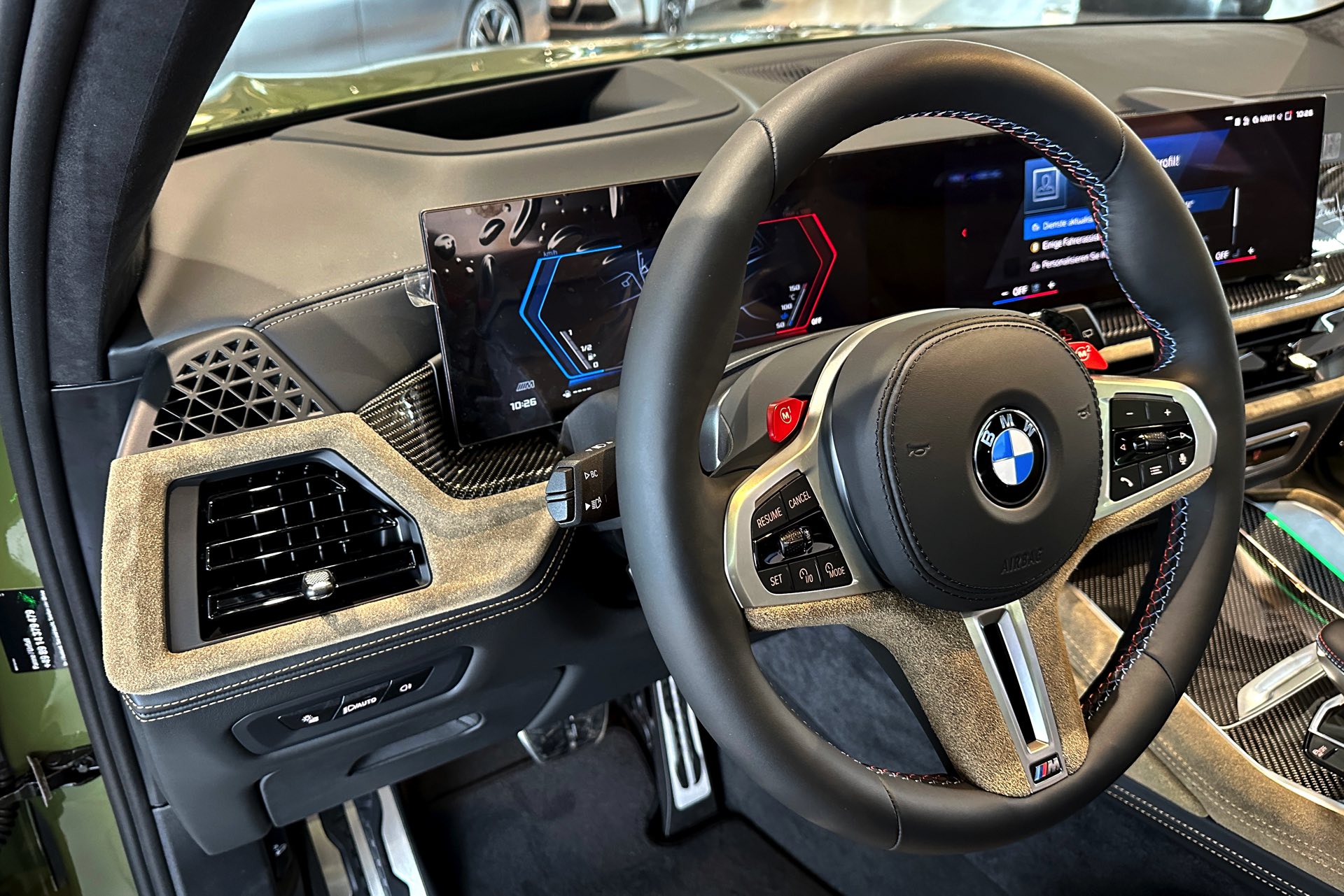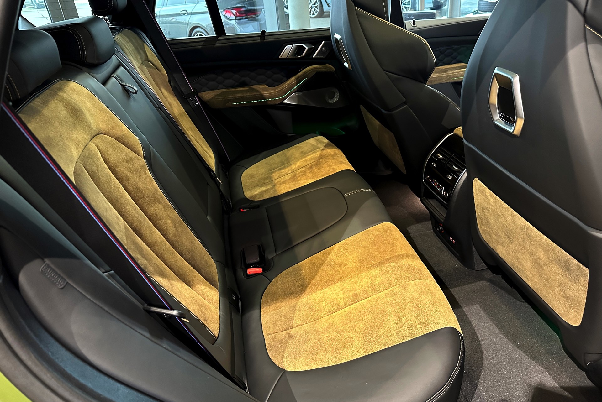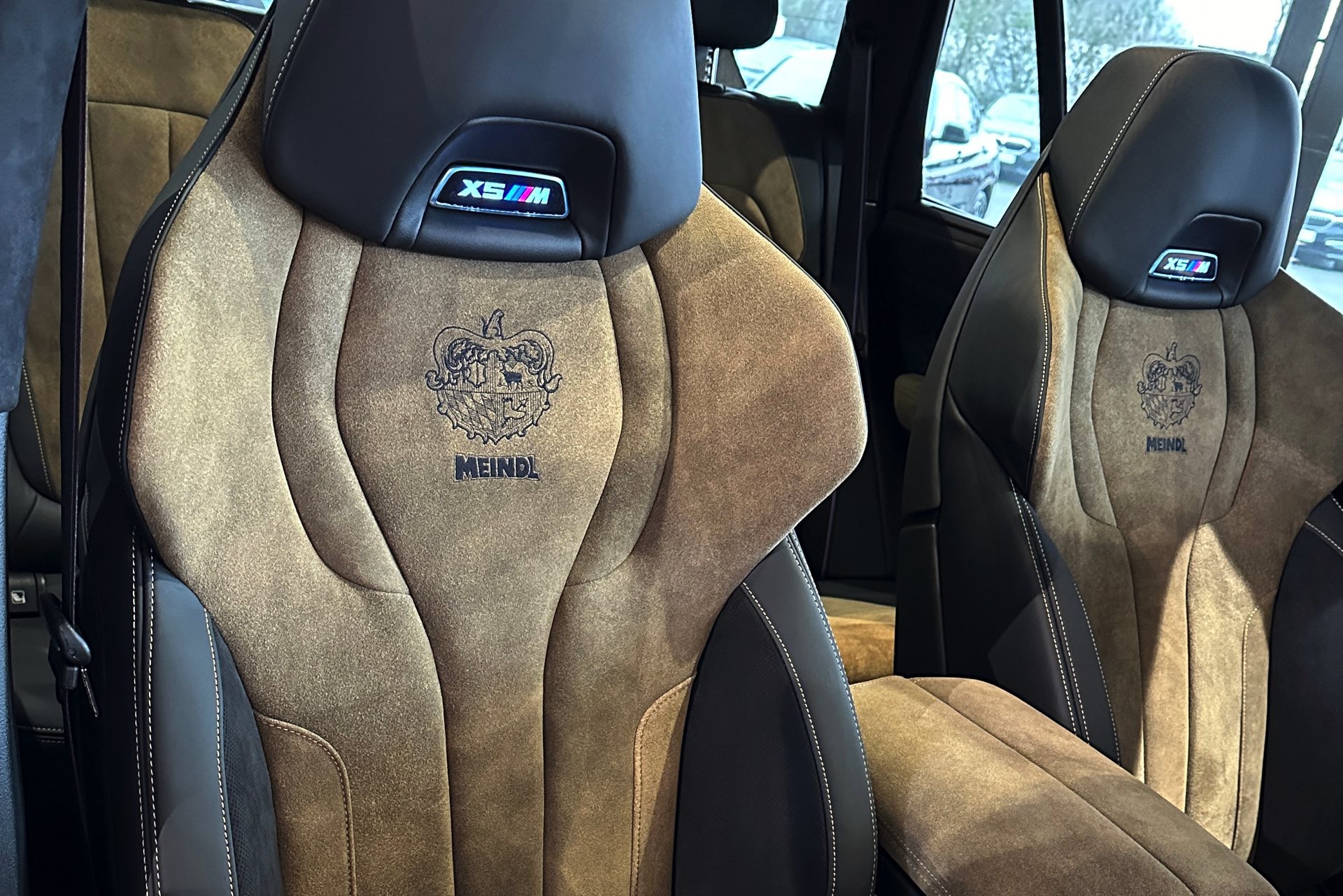 Eines der weltweit nur 25 Fahrzeuge steht derzeit im Showroom von BMW Overdreef in Duisburg, weshalb wir an dieser Stelle einige Live-Fotos präsentieren können. Zwar hat der BMW X5 M Competition (F95 LCI) mit Individual-Lackierung in Urban Green auch äußerlich viel zu bieten, die wahren Highlights befinden sich aber unstrittig im Innenraum. Neben der seltenen Lackierung weisen auch die Meindl-Logos auf der B-Säule auf die Sonderedition hin, die vorne 21 und hinten sogar 22 Zoll großen Felgen gehören hingegen zum Standardumfang vieler X5 M.