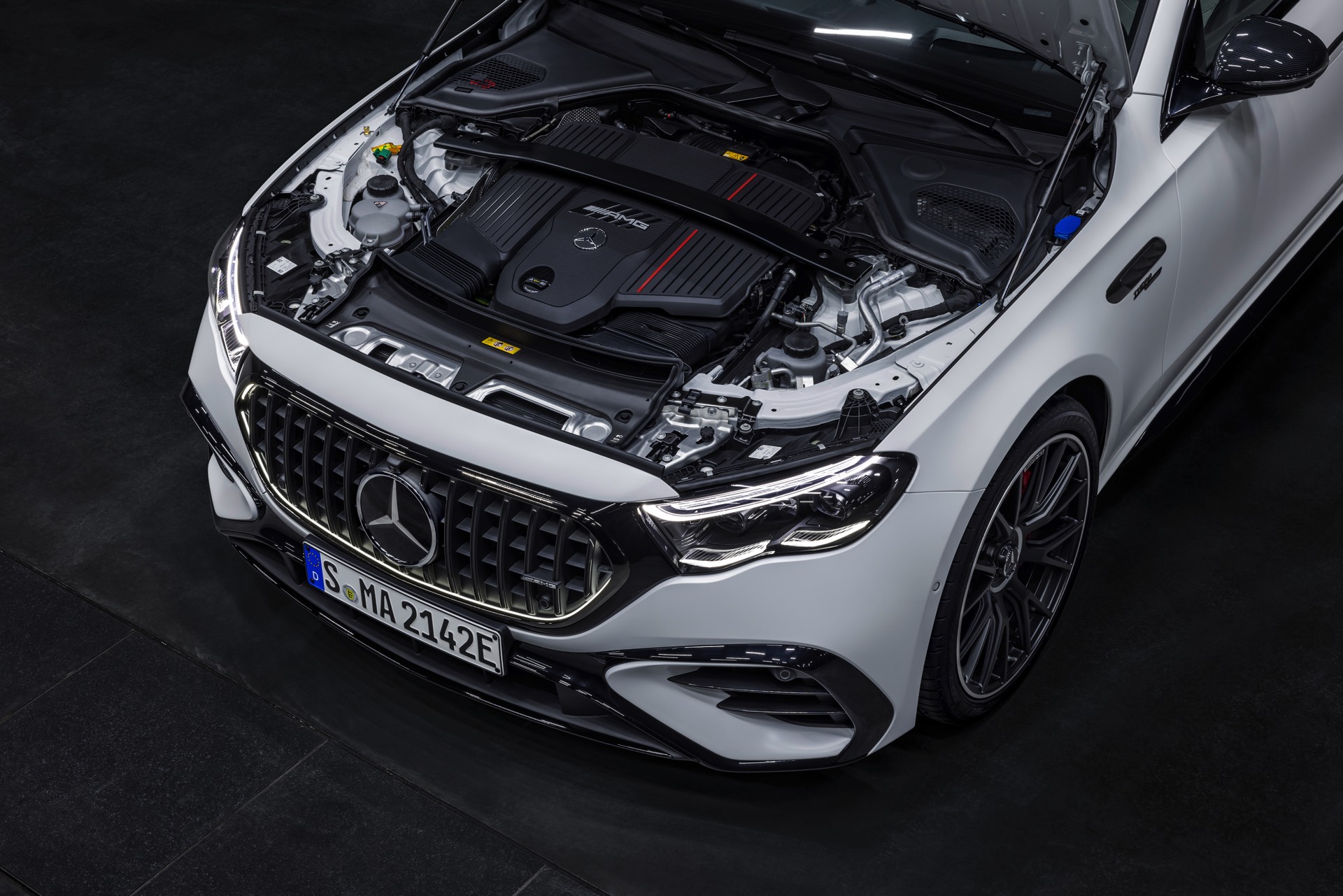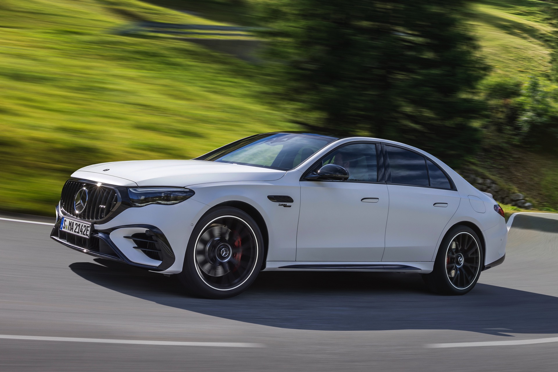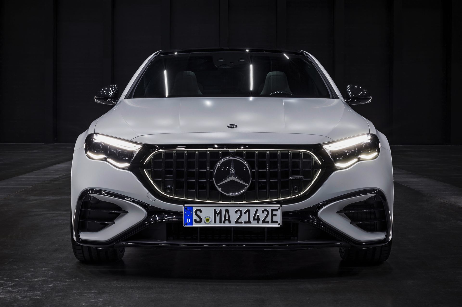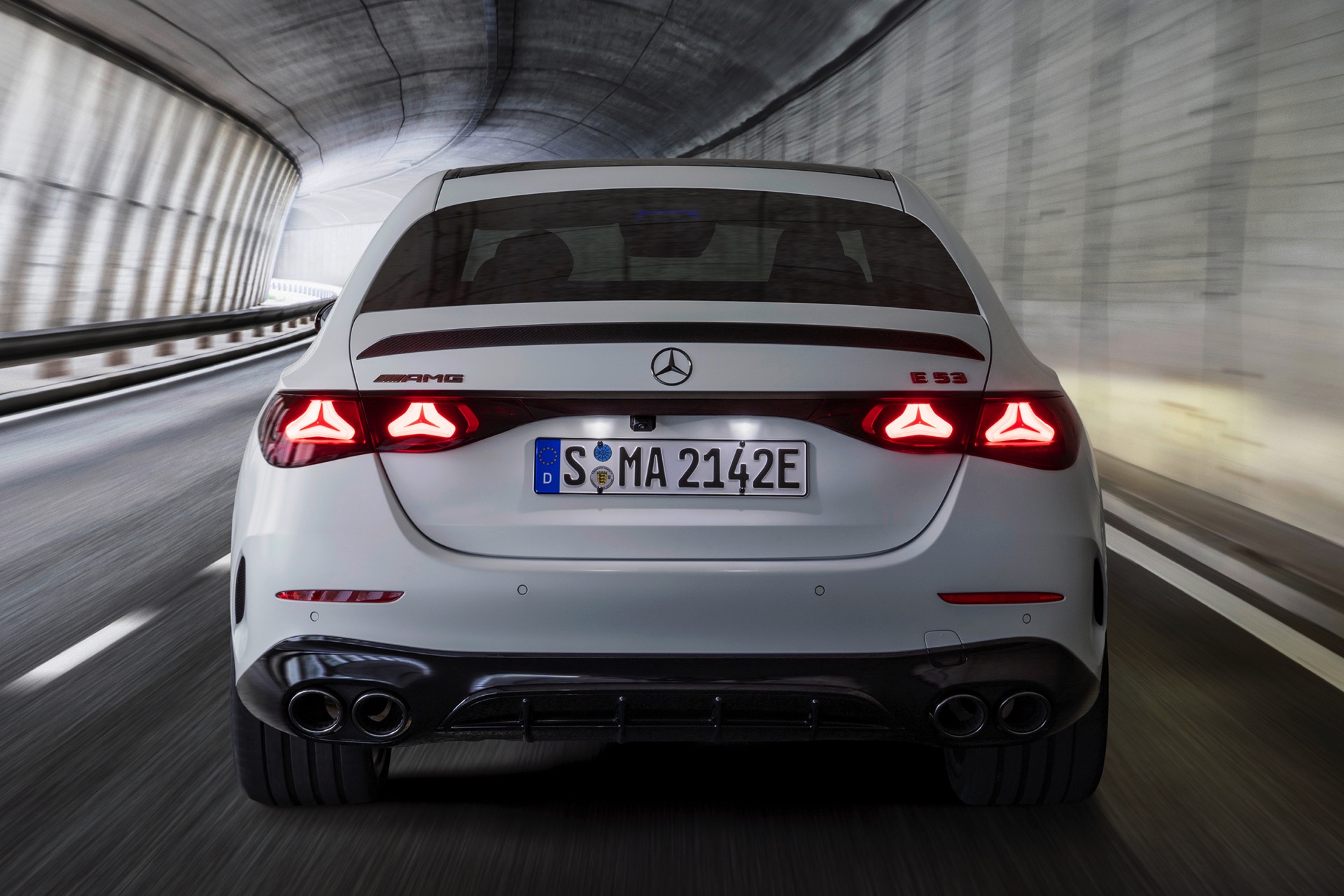 Der Einstieg in die Welt der neuen Mercedes E-Klasse mit AMG-Power kombiniert einen 3,0 Liter großen Reihensechszylinder mit einem Elektroantrieb und setzt damit auf ein ganz ähnliches Technik-Konzept wie 550e und M760e. Schon im Alleingang bietet der Benziner 449 PS, zusammen mit dem Elektromotor ergeben sich eine Systemleistung von 585 PS und ein System-Drehmoment von 750 Newtonmeter. Beim Launch-Control-Start, der im AMG-Universum Race Start genannt wird und nur in Verbindung mit dem optionalen AMG Dynamic Plus-Paket verfügbar ist, stehen kurzzeitig sogar 612 PS zur Verfügung und ermöglichen es, in nur 3,8 Sekunden von 0 auf 100 km/h zu beschleunigen. Zum Vergleich: Der BMW 550e benötigt mit 4,3 Sekunden eine halbe Sekunde mehr für den Standardsprint. Der AMG E 53 ohne Dynamic Plus-Paket wird mit 4,0 Sekunden angegeben.