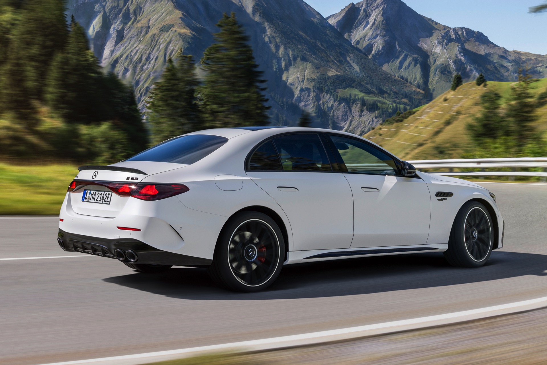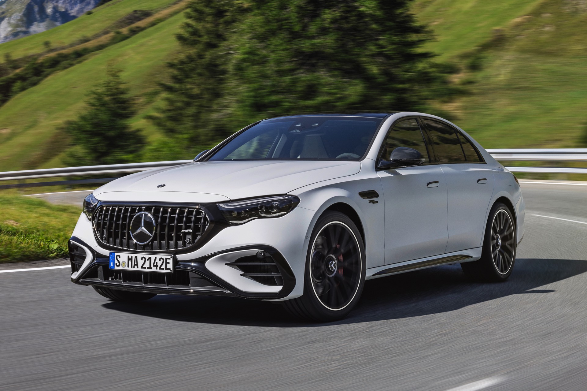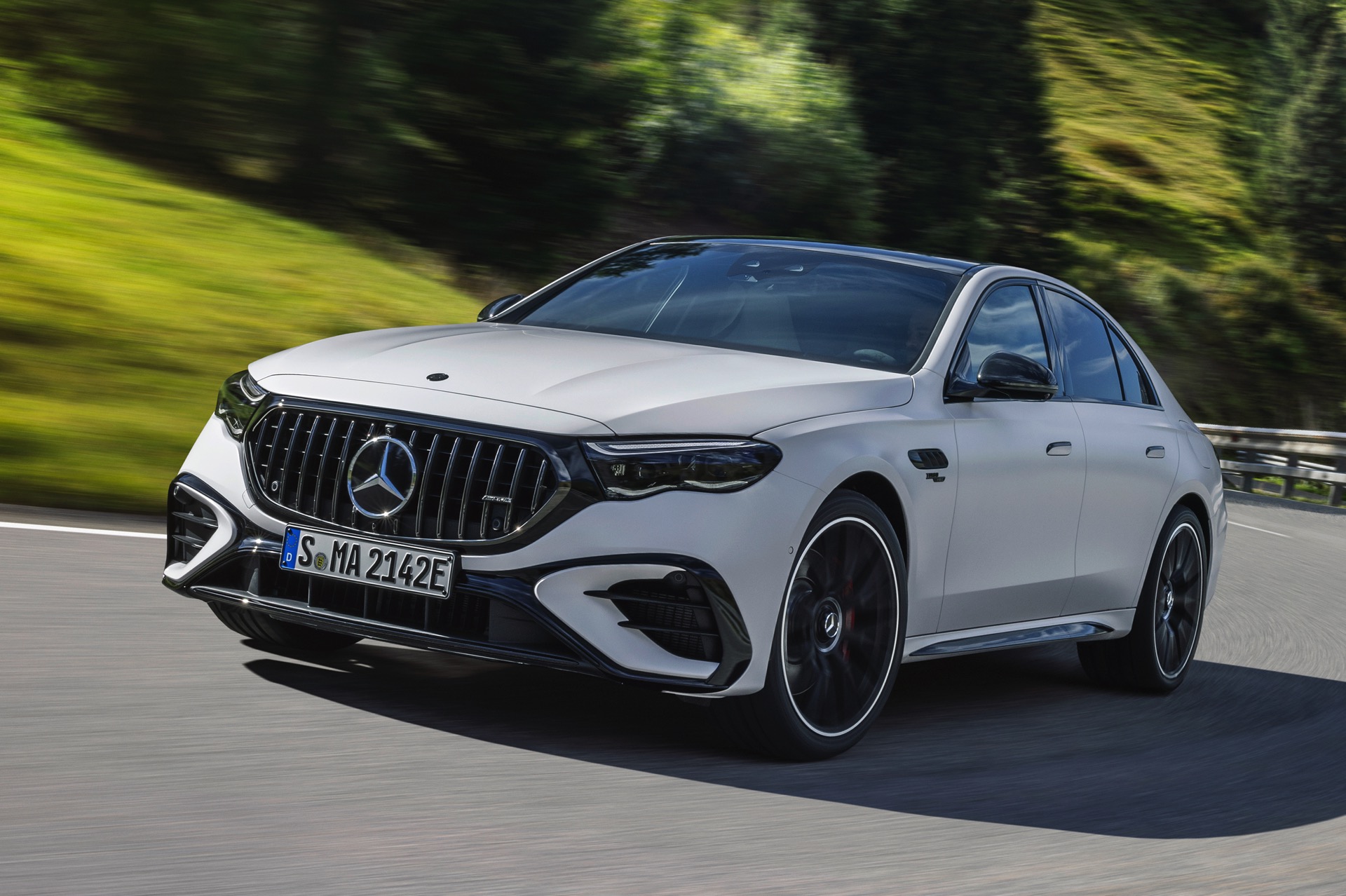 Der Einstieg in die Welt der neuen Mercedes E-Klasse mit AMG-Power kombiniert einen 3,0 Liter großen Reihensechszylinder mit einem Elektroantrieb und setzt damit auf ein ganz ähnliches Technik-Konzept wie 550e und M760e. Schon im Alleingang bietet der Benziner 449 PS, zusammen mit dem Elektromotor ergeben sich eine Systemleistung von 585 PS und ein System-Drehmoment von 750 Newtonmeter. Beim Launch-Control-Start, der im AMG-Universum Race Start genannt wird und nur in Verbindung mit dem optionalen AMG Dynamic Plus-Paket verfügbar ist, stehen kurzzeitig sogar 612 PS zur Verfügung und ermöglichen es, in nur 3,8 Sekunden von 0 auf 100 km/h zu beschleunigen. Zum Vergleich: Der BMW 550e benötigt mit 4,3 Sekunden eine halbe Sekunde mehr für den Standardsprint. Der AMG E 53 ohne Dynamic Plus-Paket wird mit 4,0 Sekunden angegeben.
