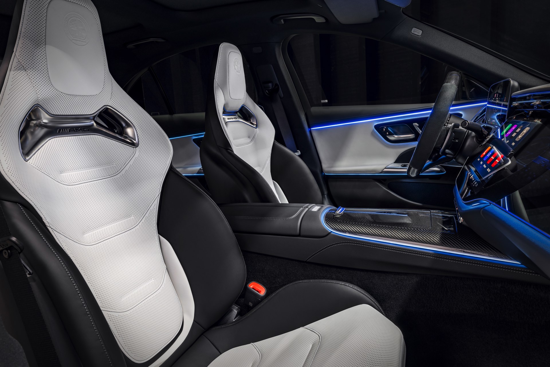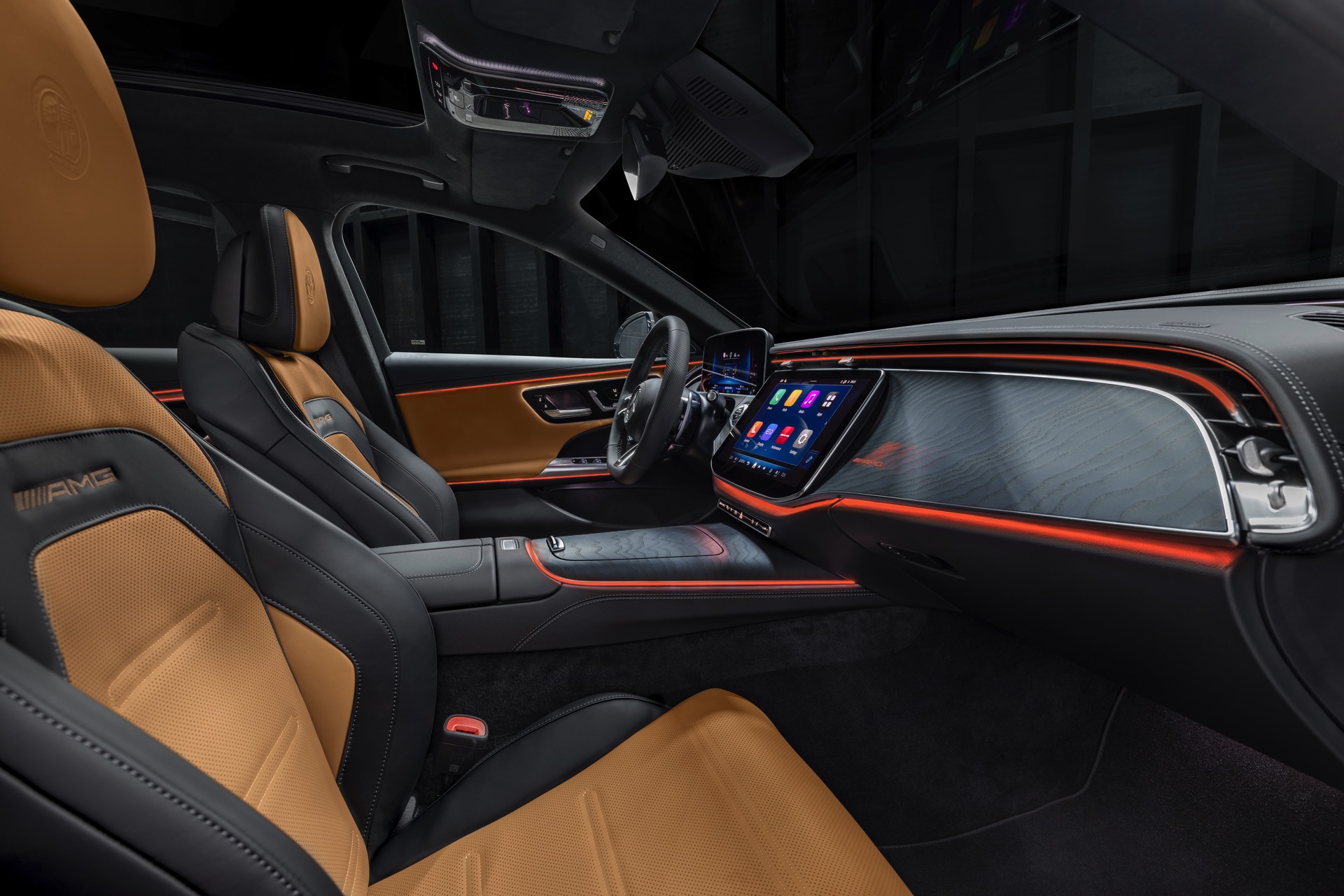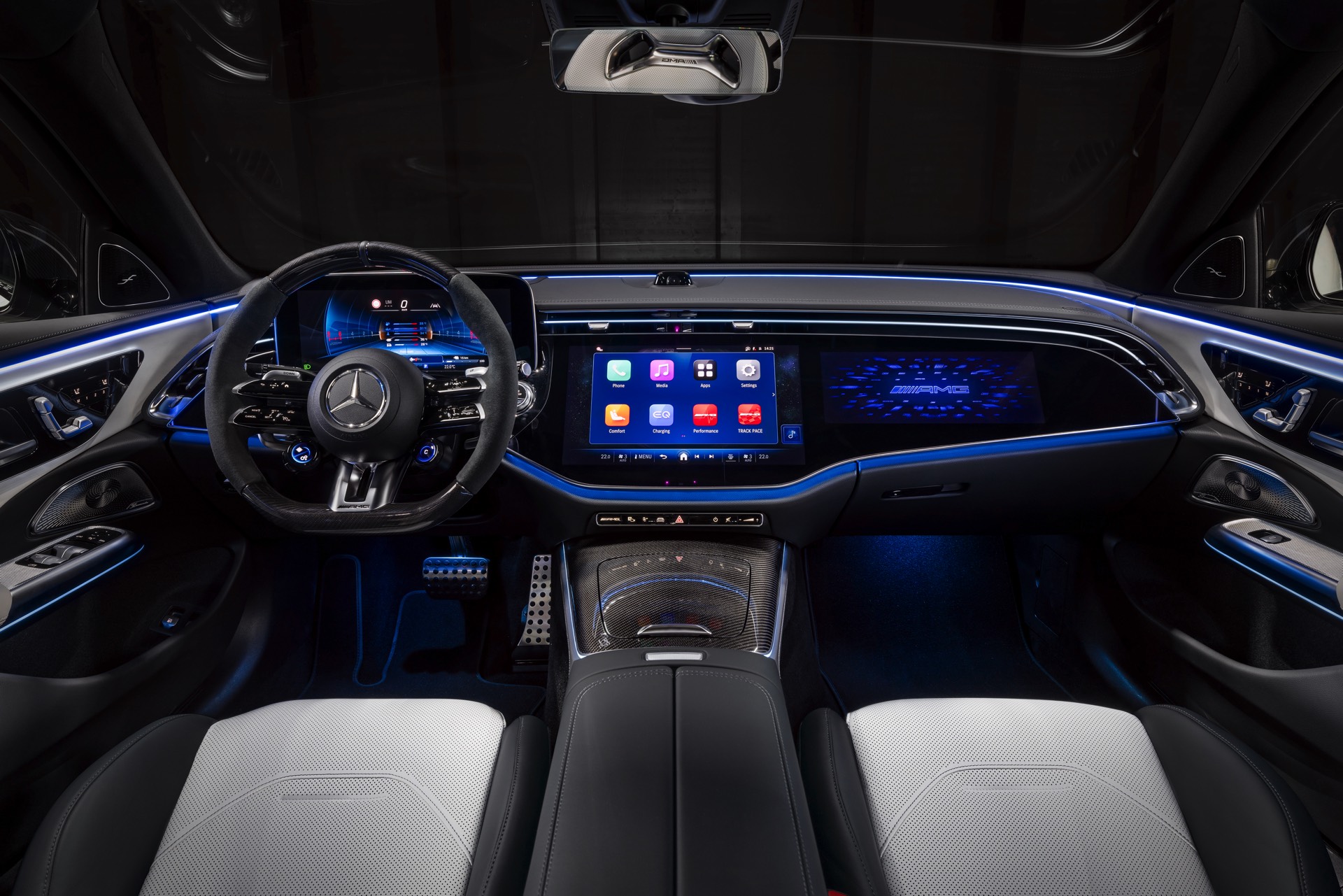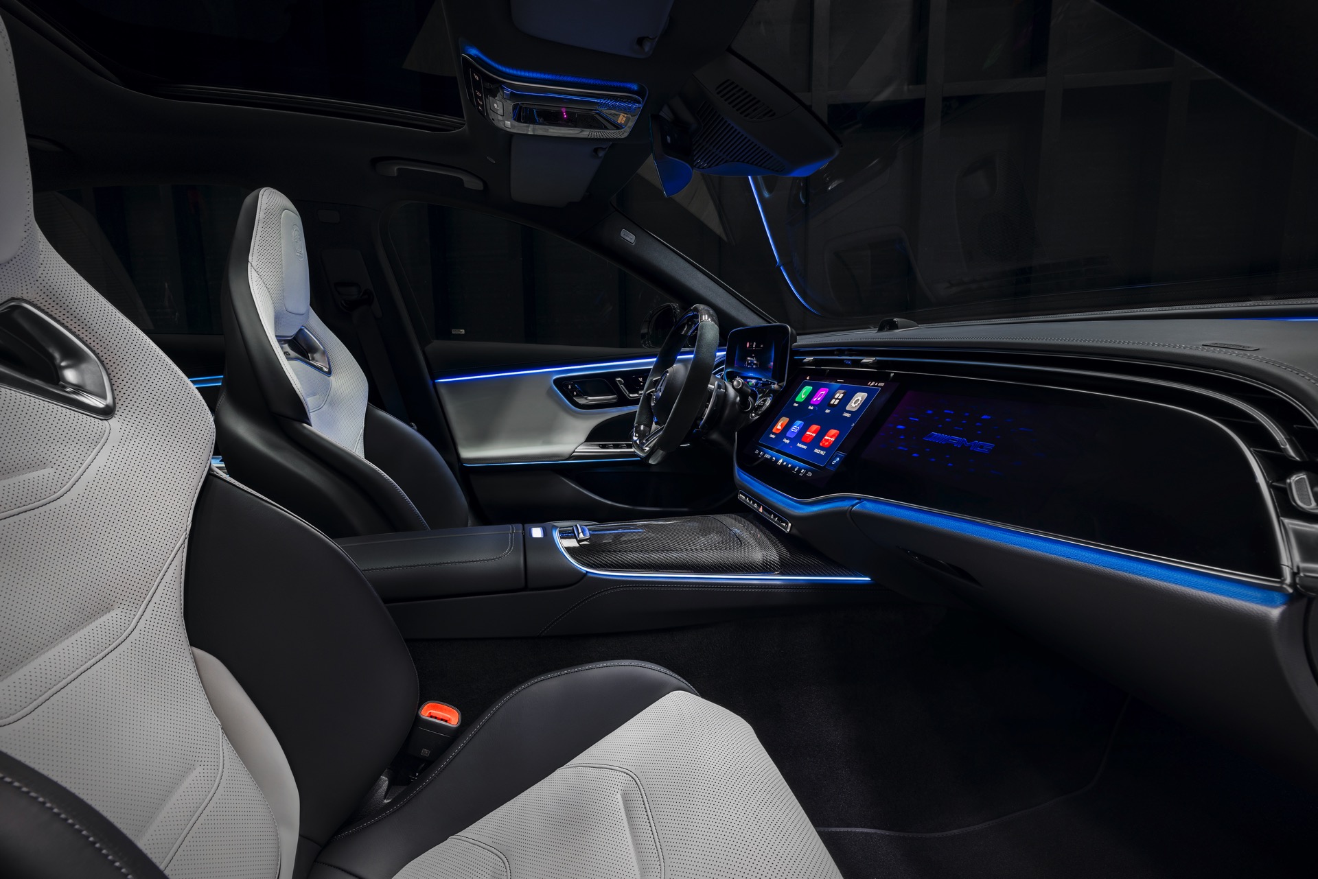 Der Einstieg in die Welt der neuen Mercedes E-Klasse mit AMG-Power kombiniert einen 3,0 Liter großen Reihensechszylinder mit einem Elektroantrieb und setzt damit auf ein ganz ähnliches Technik-Konzept wie 550e und M760e. Schon im Alleingang bietet der Benziner 449 PS, zusammen mit dem Elektromotor ergeben sich eine Systemleistung von 585 PS und ein System-Drehmoment von 750 Newtonmeter. Beim Launch-Control-Start, der im AMG-Universum Race Start genannt wird und nur in Verbindung mit dem optionalen AMG Dynamic Plus-Paket verfügbar ist, stehen kurzzeitig sogar 612 PS zur Verfügung und ermöglichen es, in nur 3,8 Sekunden von 0 auf 100 km/h zu beschleunigen. Zum Vergleich: Der BMW 550e benötigt mit 4,3 Sekunden eine halbe Sekunde mehr für den Standardsprint. Der AMG E 53 ohne Dynamic Plus-Paket wird mit 4,0 Sekunden angegeben.