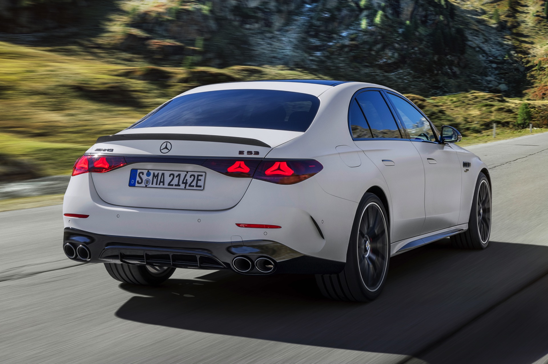 Ähnlich wie die M GmbH sorgt auch AMG für eine steifere Karosserie und verbaut unter anderem ein zusätzliches Schubfeld im Vorderwagen und weitere Streben zur Versteifung der Heckpartie. Auch ein Hightech-Fahrwerk inklusive Hinterachs-Lenkung gehört zum Serienumfang des Mercedes-AMG E 53, anders als bei der S-Klasse setzt AMG dabei auf ähnlich kleine Maximal-Lenkwinkel wie BMW und belässt es bei situationsabhängigen 0,7 bis 2,5 Grad.