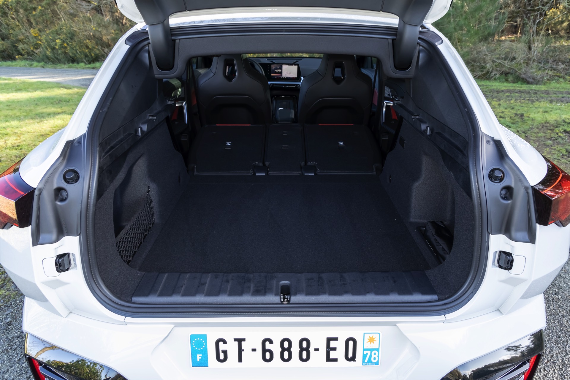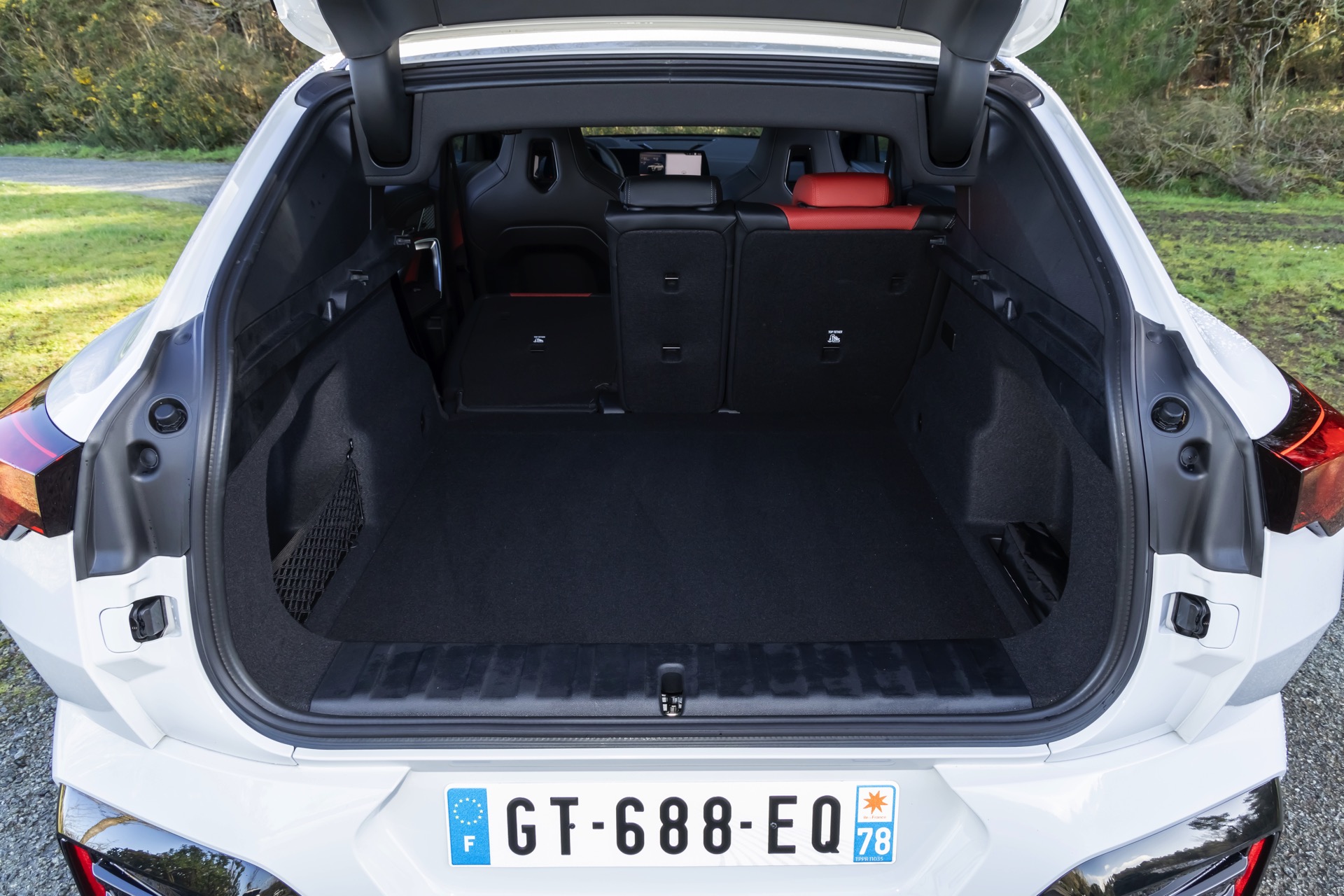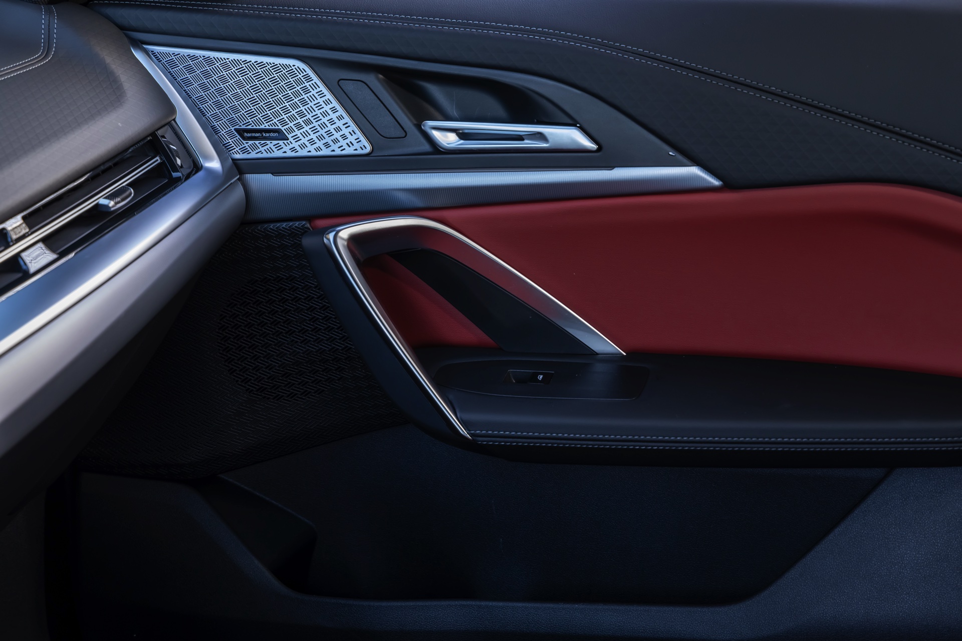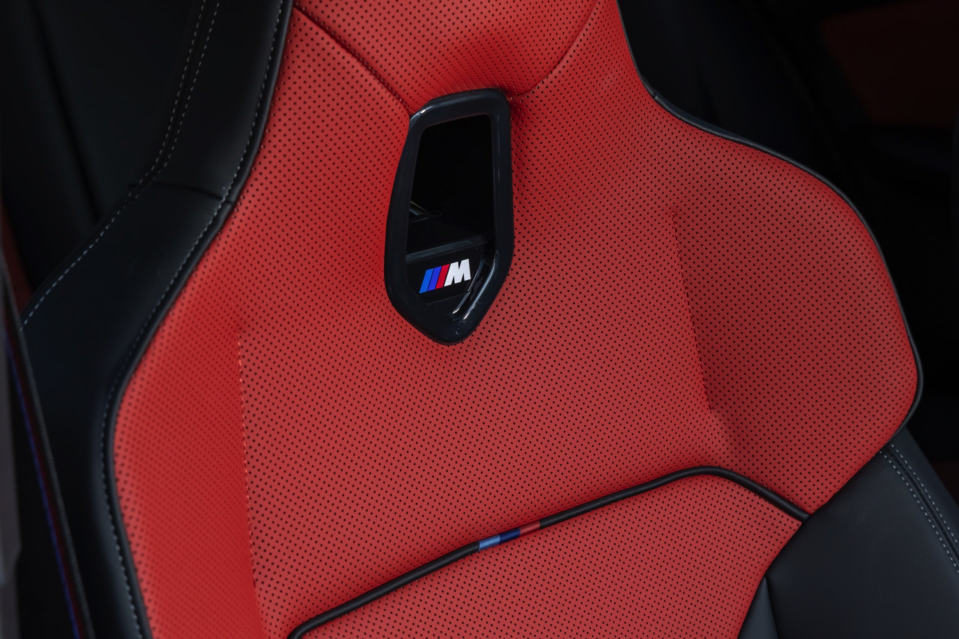 Während das Exterieur konsequent Schwarz-Weiß gehalten ist und nur mit den Rückleuchten und Bremssätteln farbige Akzente setzt, geht es im Innenraum betont farbig zur Sache: Die Bicolor-Ausstattung Veganza perforiert ist in der Farbkombination Korallrot / Schwarz zu sehen, die ohne Frage für den markantesten Look an Bord von X2 und iX2 sorgt. Ein weiterer Hingucker sind die optionalen M Sportsitze mit integrierten Kopfstützen und beleuchtetem M-Logo.