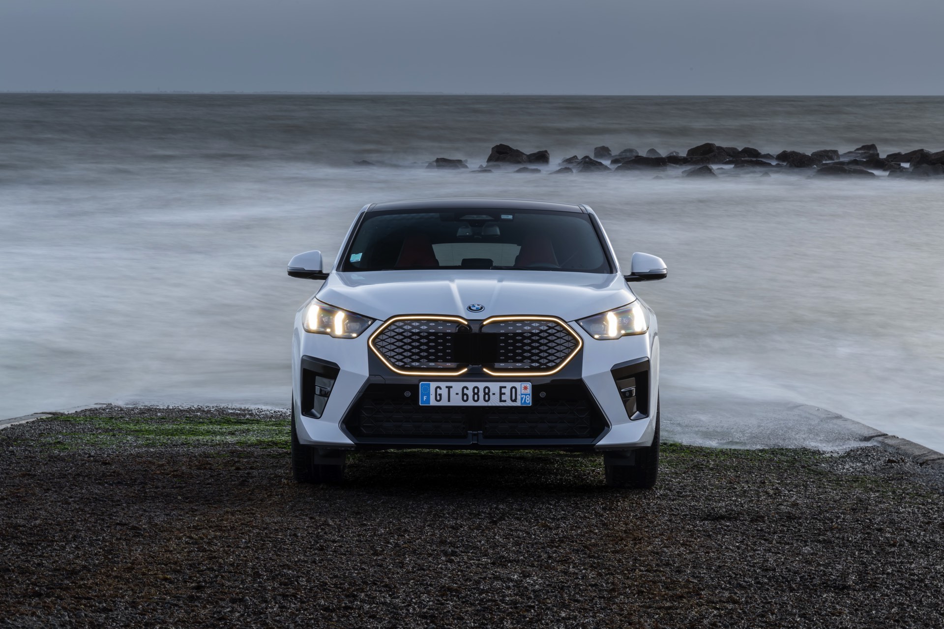 Auf einigen der aktuellen Fotos aus Frankreich tritt die schwarze Einfassung der Niere allerdings in den Hintergrund: Dank etwas längerer Belichtung sind nicht nur die Bewegungen des Meeres im Hintergrund dezent verwischt, auch die Leuchtkraft der Nieren wird zusätzlich betont. So vermitteln die Bilder gut, wie auffällig die zusätzliche Beleuchtung auch im echten Leben wirkt. Auf weiteren Fotos in hellerer Umgebung und mit kürzerer Belichtung ist das dünne LED-Band weit weniger auffällig.
