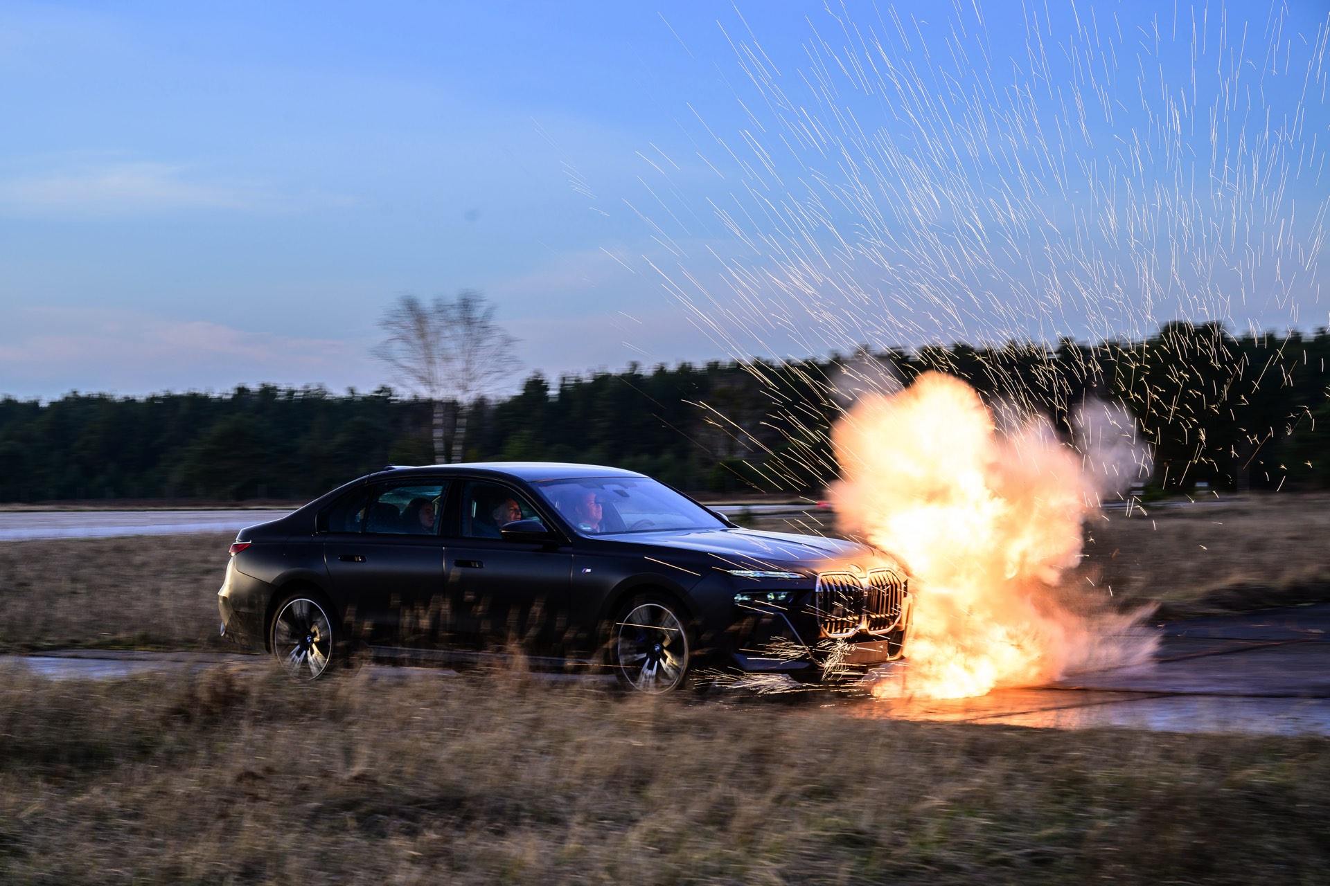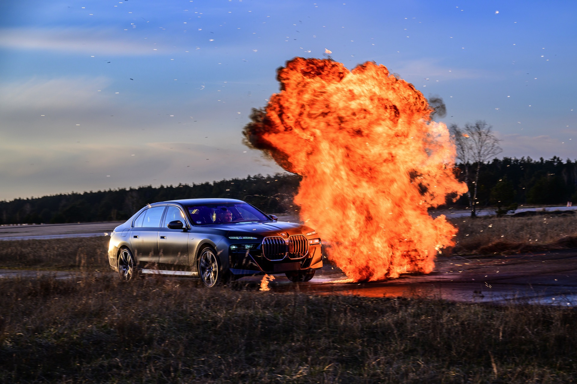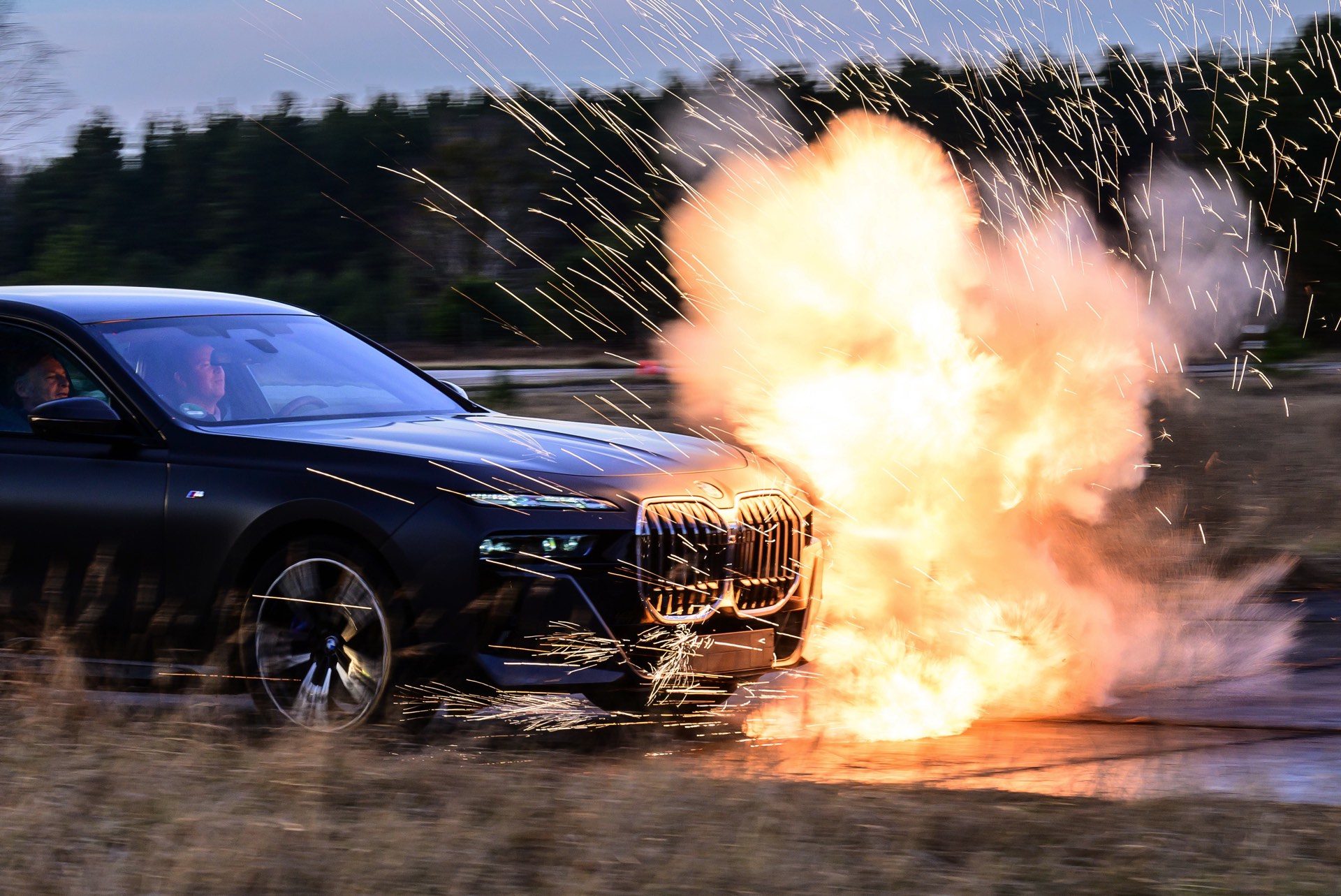 Wer auf extreme Situationen vorbereitet sein will, darf beim Training keine halben Sachen machen. Für die Fahrerinnen und Fahrer von gepanzerten Fahrzeugen wie dem BMW 7er Protection (G73) heißt das, dass auch simulierte Explosionen und andere kritische Ereignisse zu einem wirksamen Fahrertraining dazugehören, denn im Fall der Fälle zählt unter Umständen jede Sekunde. Die Panzerung des Fahrzeugs ist dabei immer nur die letzte Ebene für den Insassen-Schutz, viel wichtiger ist die Mobilität und die Möglichkeit zur Flucht aus gefährlichen Situationen.