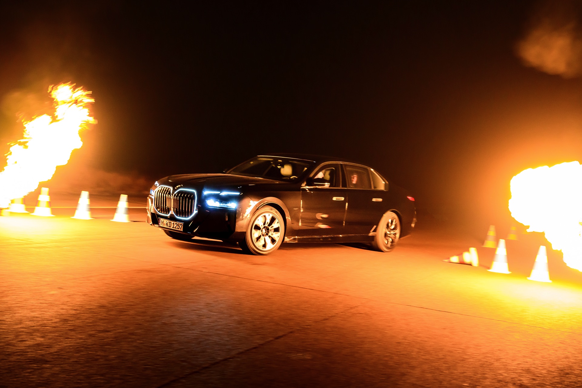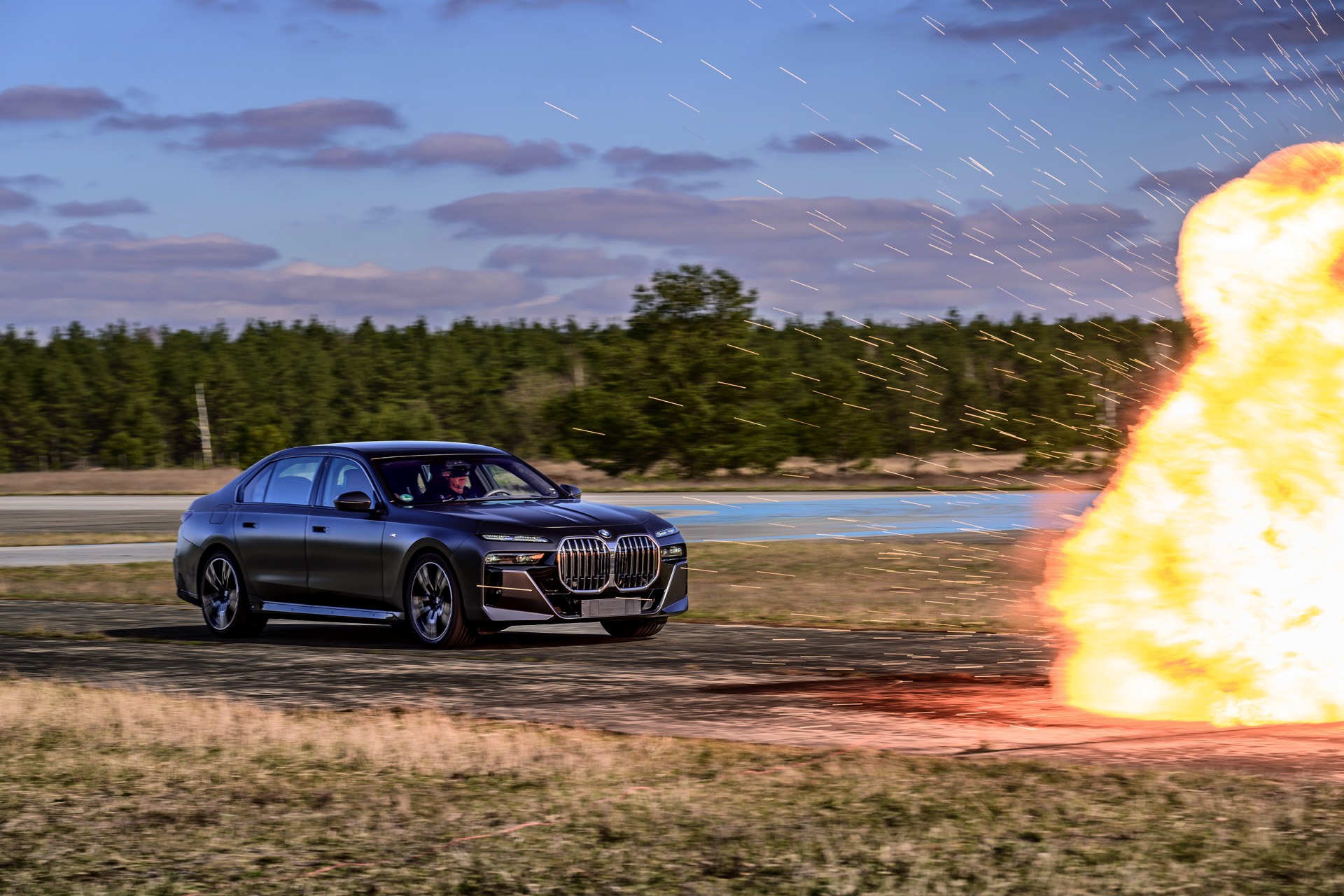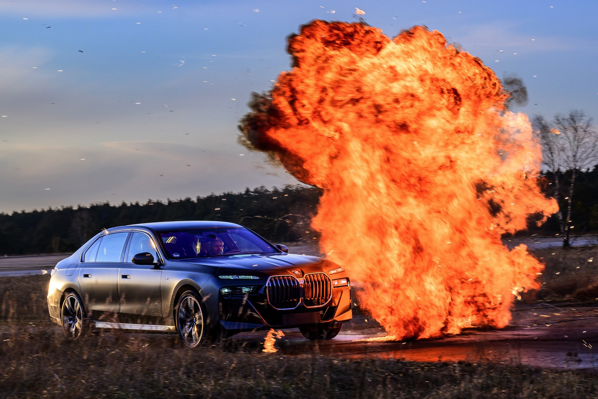 Wer auf extreme Situationen vorbereitet sein will, darf beim Training keine halben Sachen machen. Für die Fahrerinnen und Fahrer von gepanzerten Fahrzeugen wie dem BMW 7er Protection (G73) heißt das, dass auch simulierte Explosionen und andere kritische Ereignisse zu einem wirksamen Fahrertraining dazugehören, denn im Fall der Fälle zählt unter Umständen jede Sekunde. Die Panzerung des Fahrzeugs ist dabei immer nur die letzte Ebene für den Insassen-Schutz, viel wichtiger ist die Mobilität und die Möglichkeit zur Flucht aus gefährlichen Situationen.