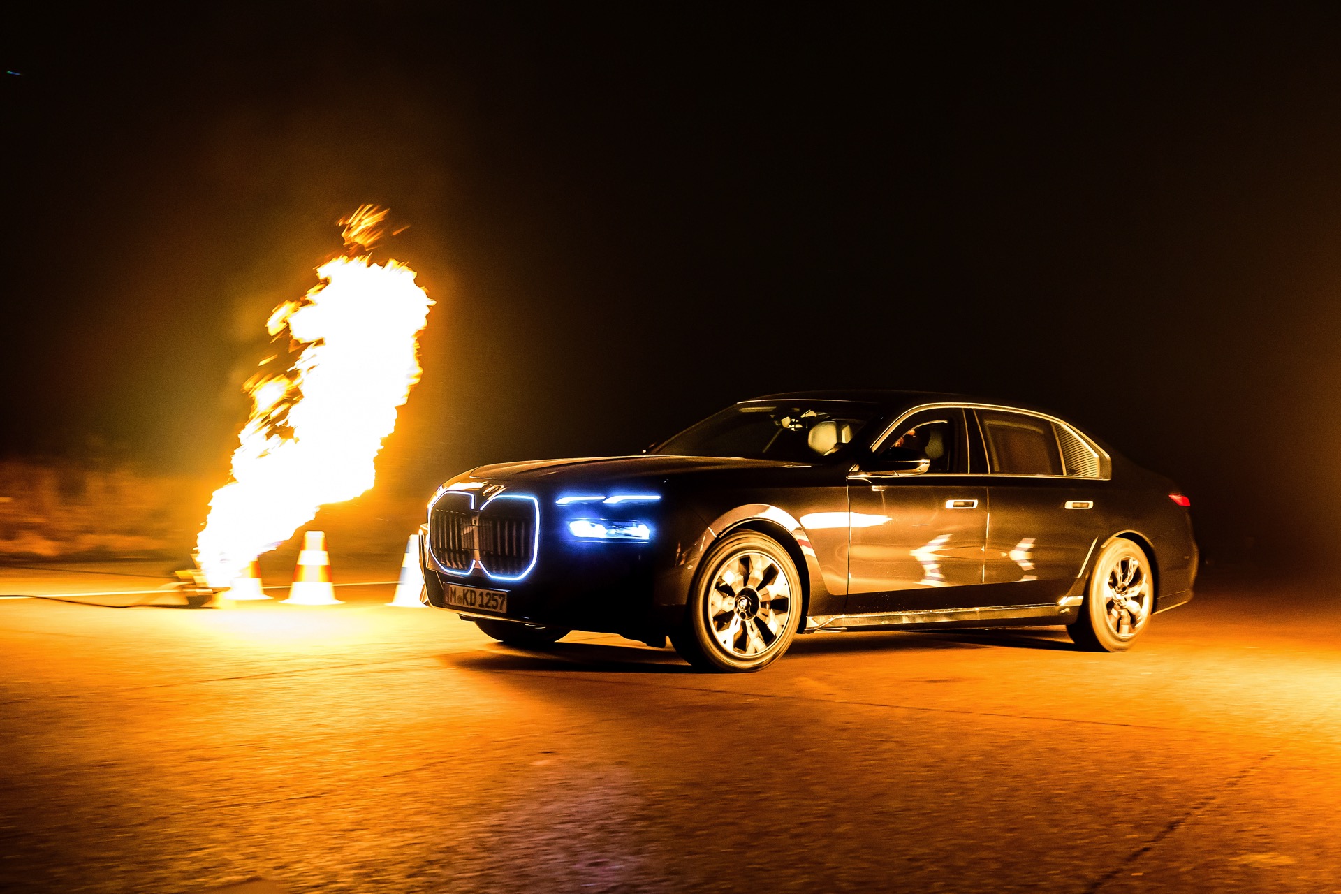 Trainiert werden können solche Einsätze unter möglichst realistischen Bedingungen beispielsweise in Groß Dölln. Auf dem Gelände des Fahrsicherheitszentrums nördlich von Berlin bietet BMW den Kunden der High Security-Fahrzeuge spezielle Fahrertrainings an, die sich erheblich von jedem regulären Event der BMW Driving Experience unterscheiden. Schon die Fotos vom aktuellen Programm zeigen: Hier wird tatsächlich mit dem Feuer gespielt, damit sich die Fahrer der Sonderschutzfahrzeuge an professionelles Handeln in extremen Situationen wie einem Angriff mit Schusswaffen und Sprengstoff heranarbeiten können.