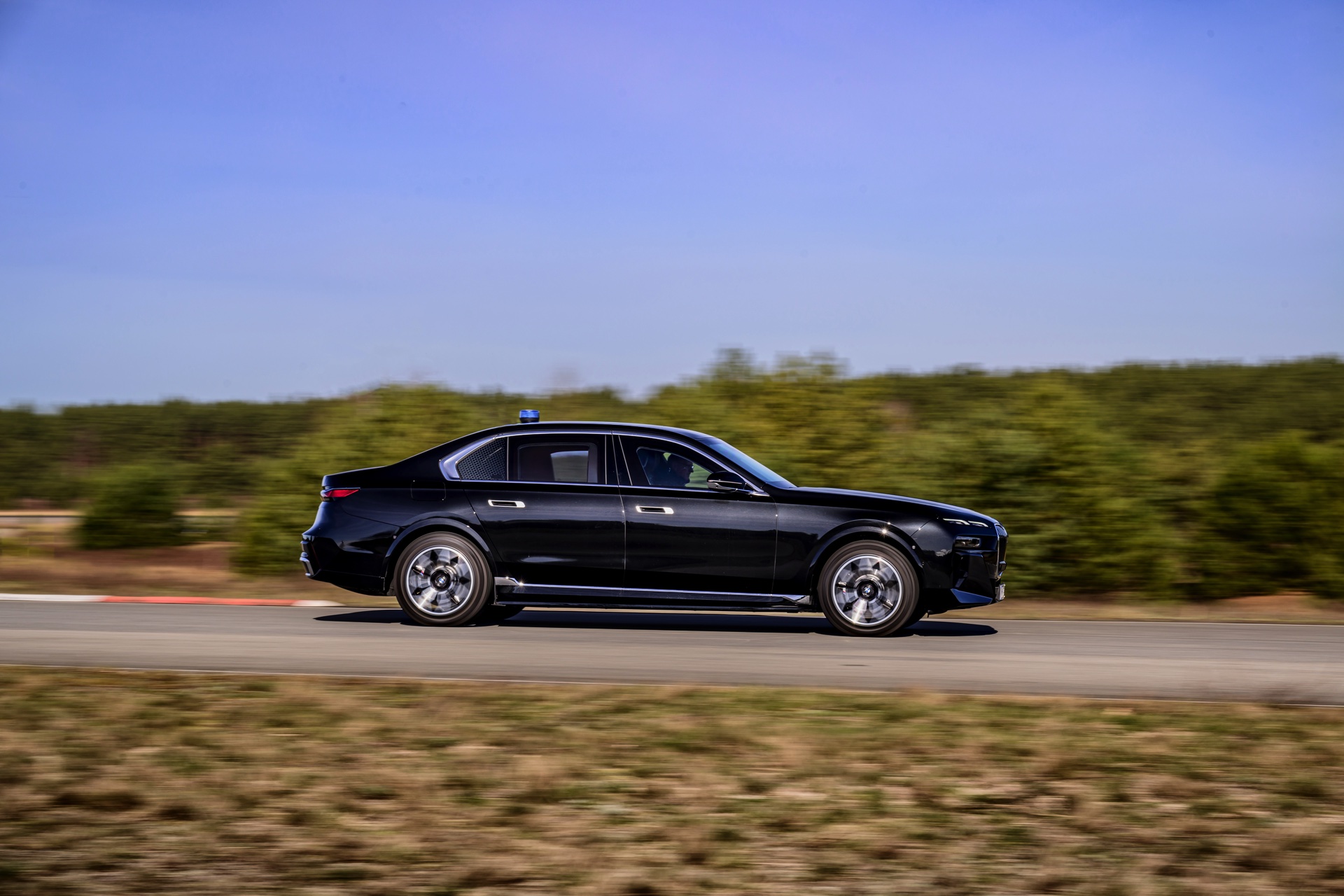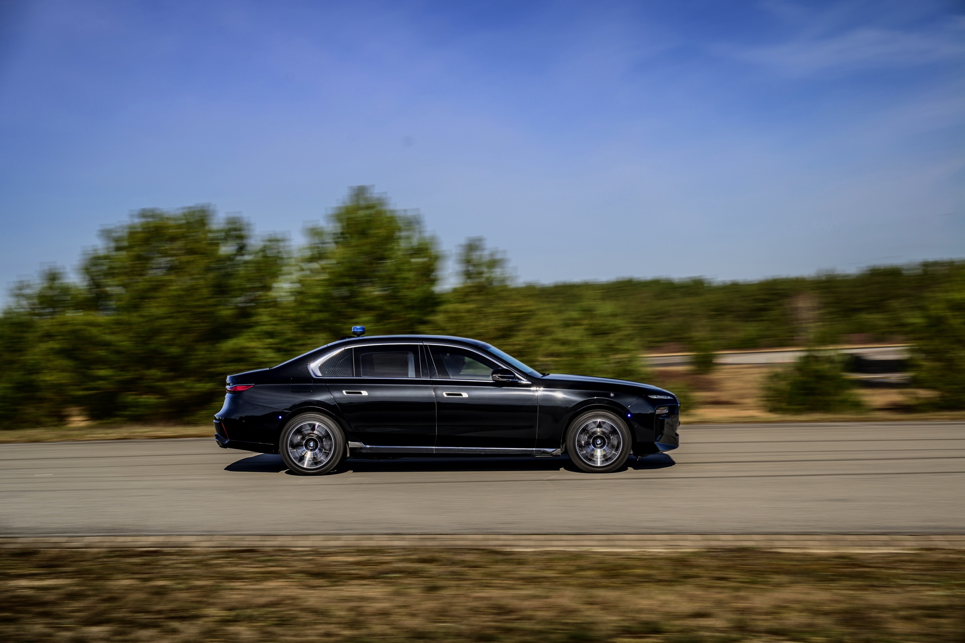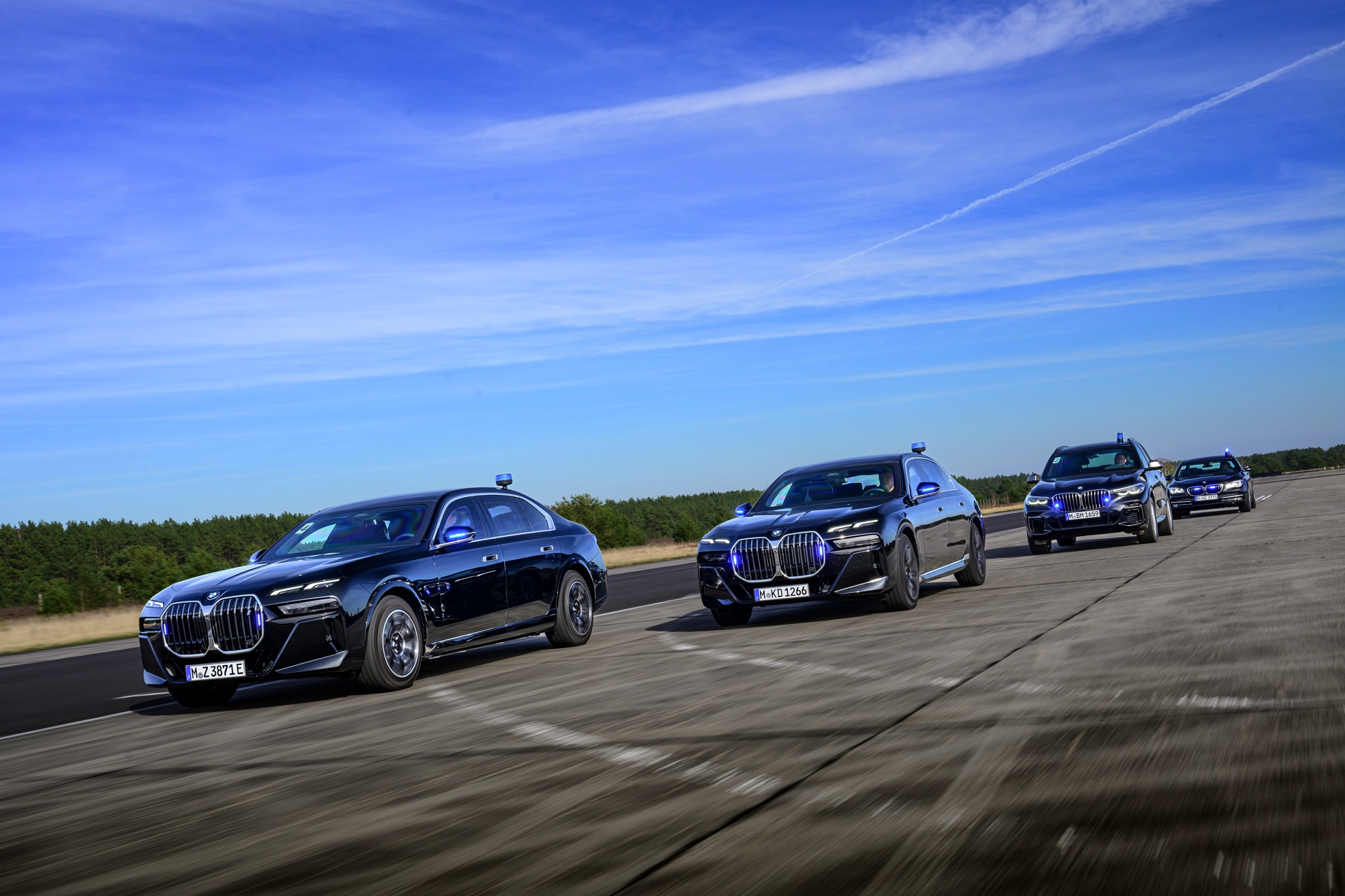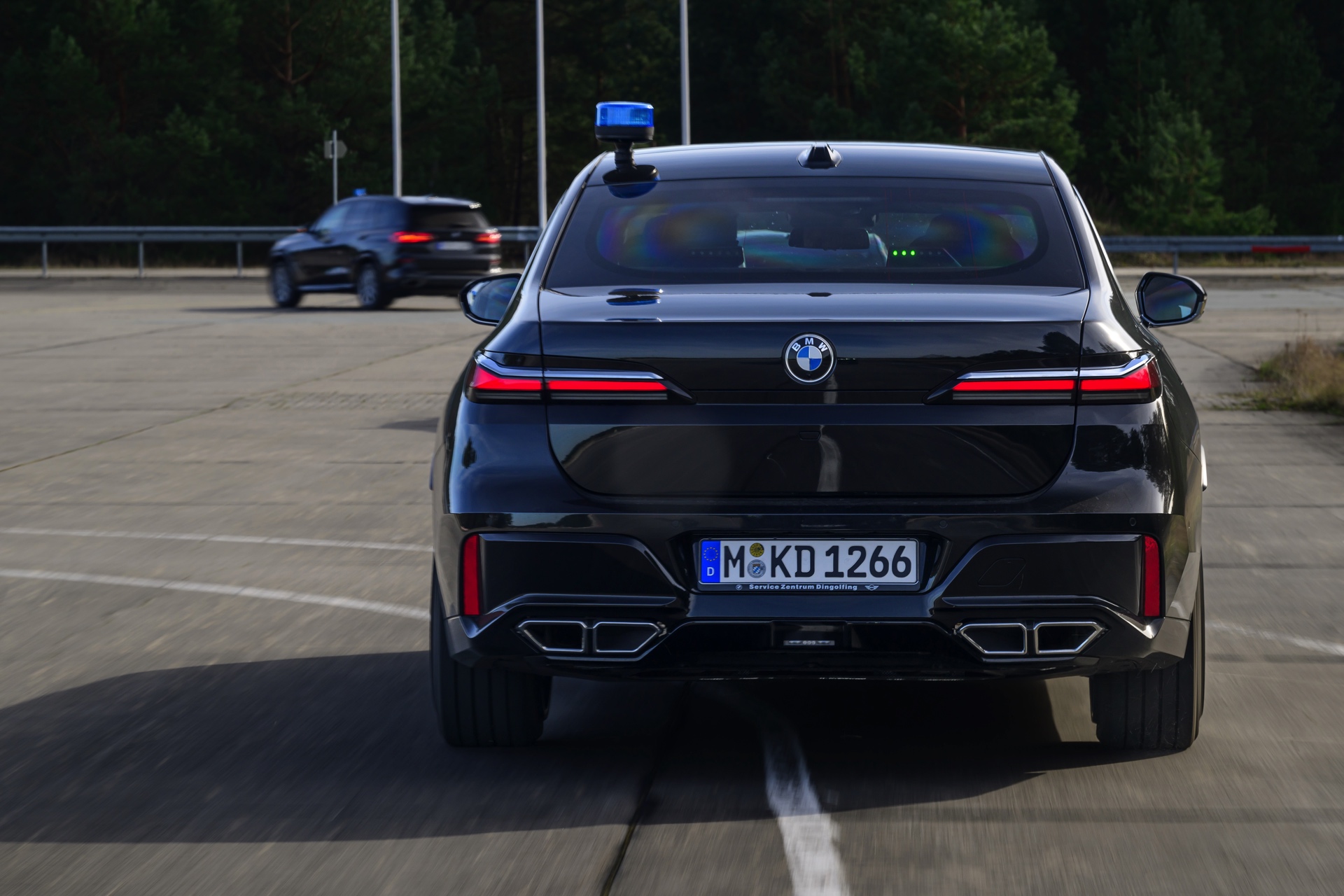 Eine wichtige Rolle spielt dabei der sichere Umgang mit den schweren Fahrzeugen, denn aufgrund der Panzerung bringt ein BMW i7 Protection (G73) rund 4,4 Tonnen auf die Waage. Bei praktisch jedem dynamischen Manöver, von der vollen Beschleunigung über eine Vollbremsung mit entsprechend längerem Bremsweg bis hin zum Verhalten bei Hochgeschwindigkeits-Spurwechseln, darf dieses Gewicht niemals außer Acht gelassen werden.