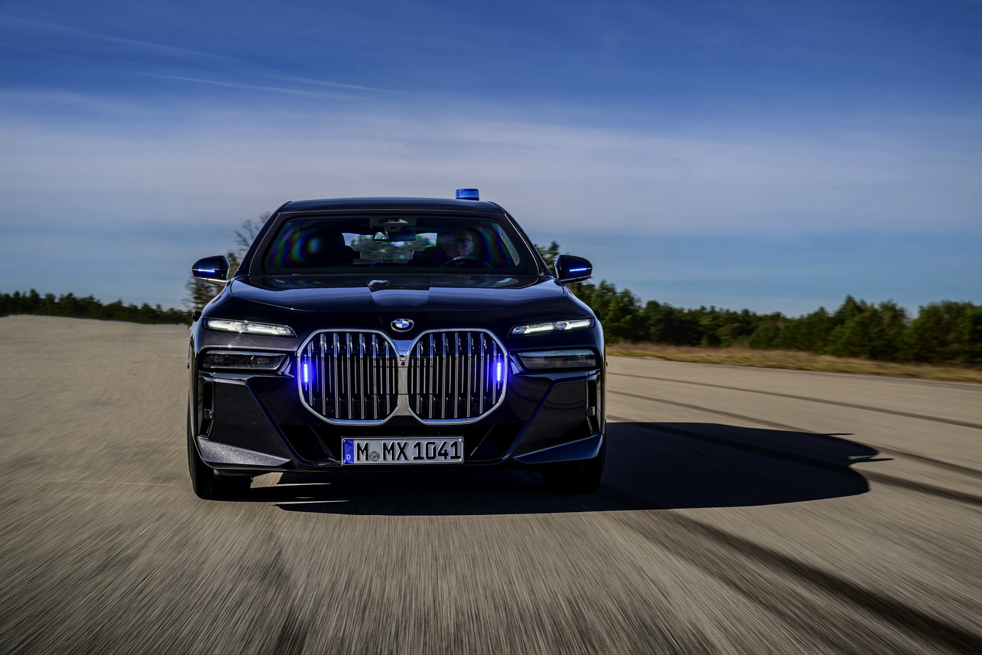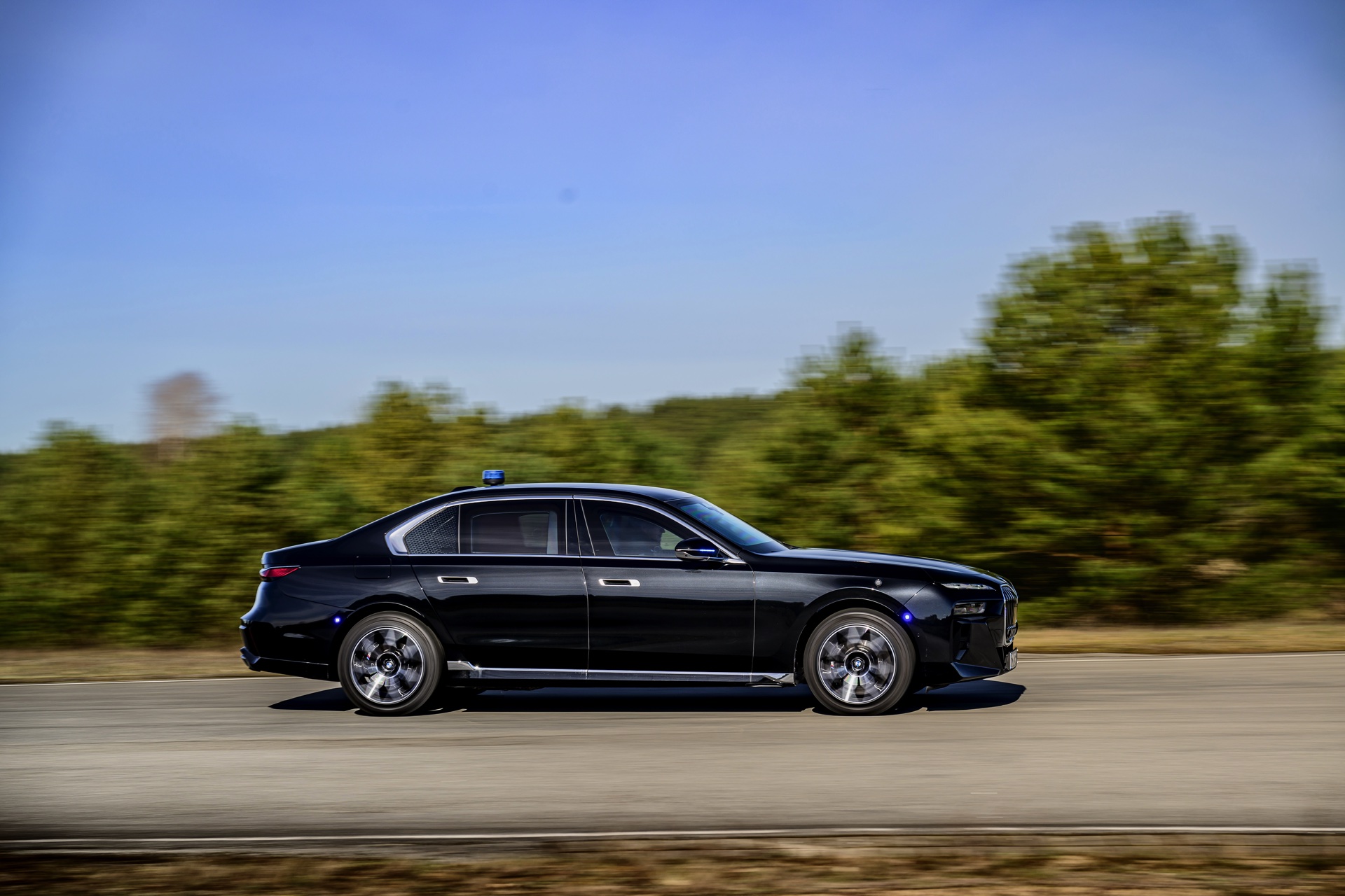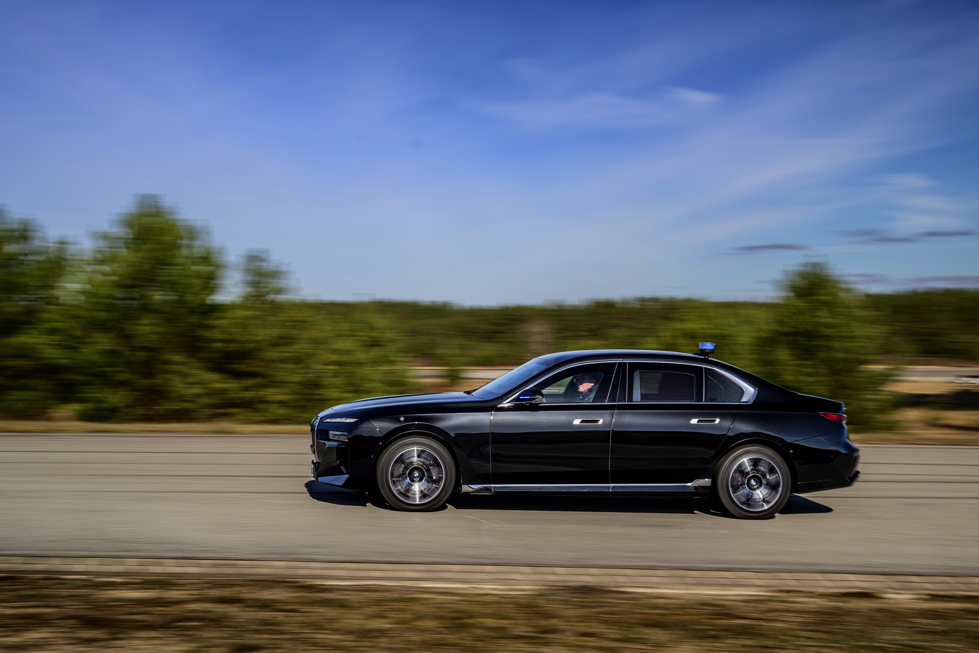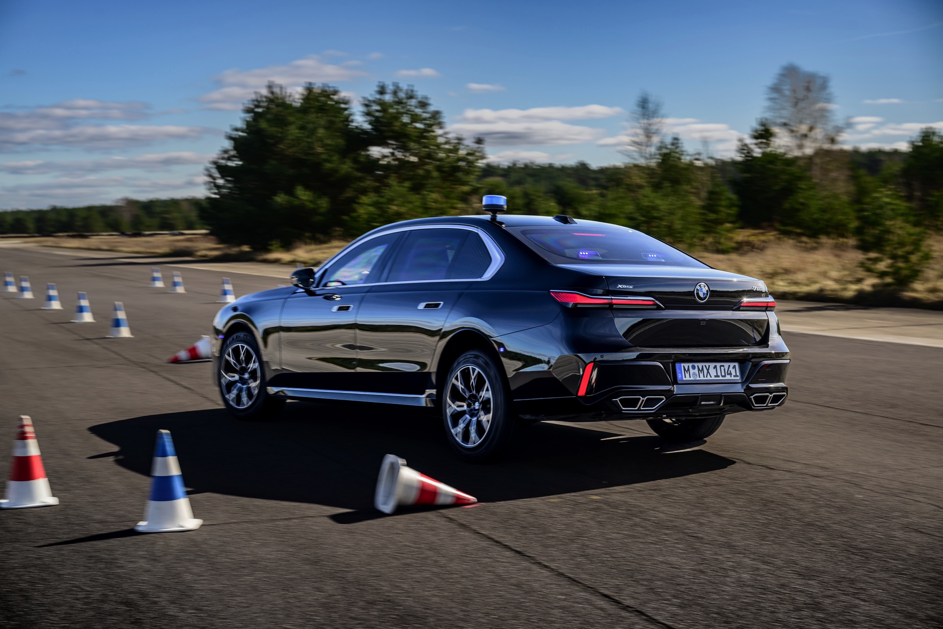 Eine wichtige Rolle spielt dabei der sichere Umgang mit den schweren Fahrzeugen, denn aufgrund der Panzerung bringt ein BMW i7 Protection (G73) rund 4,4 Tonnen auf die Waage. Bei praktisch jedem dynamischen Manöver, von der vollen Beschleunigung über eine Vollbremsung mit entsprechend längerem Bremsweg bis hin zum Verhalten bei Hochgeschwindigkeits-Spurwechseln, darf dieses Gewicht niemals außer Acht gelassen werden.