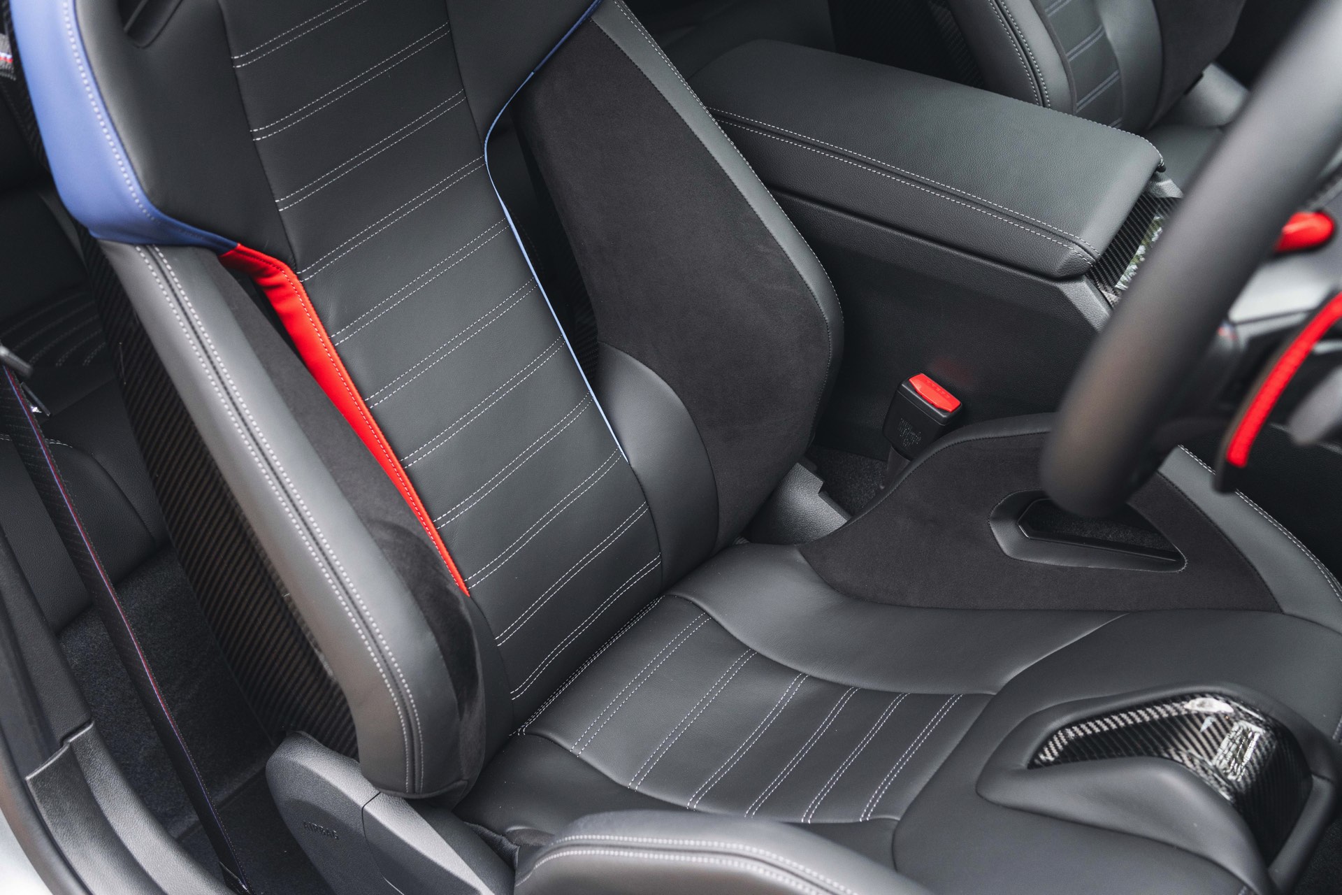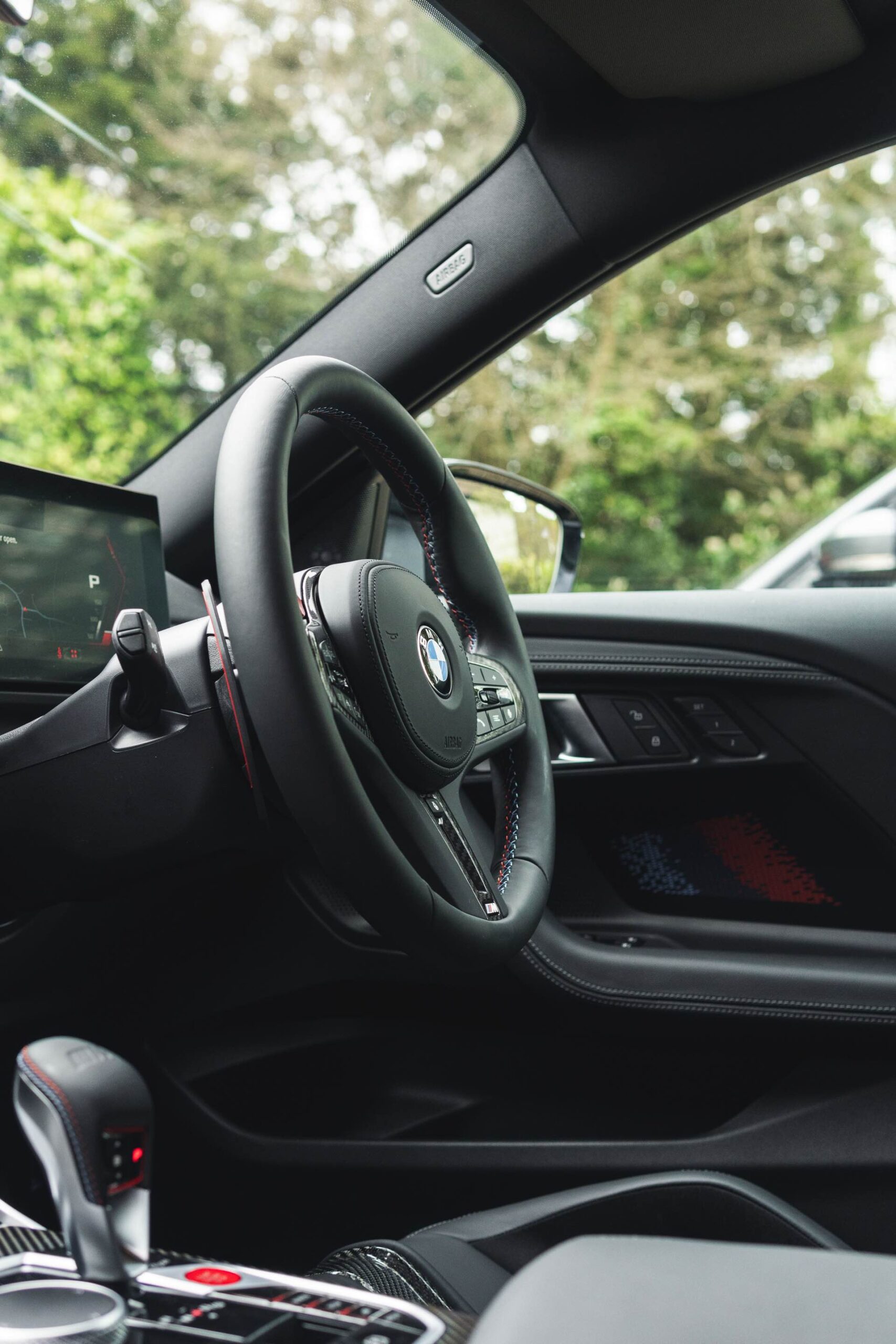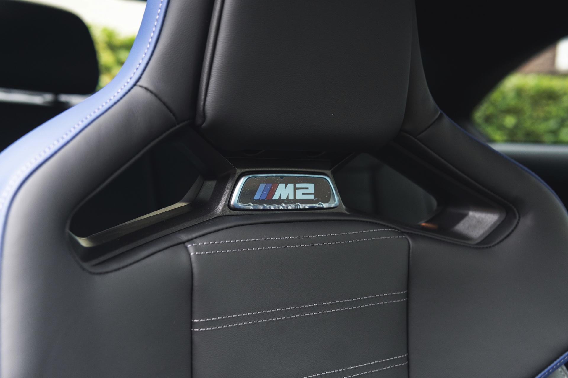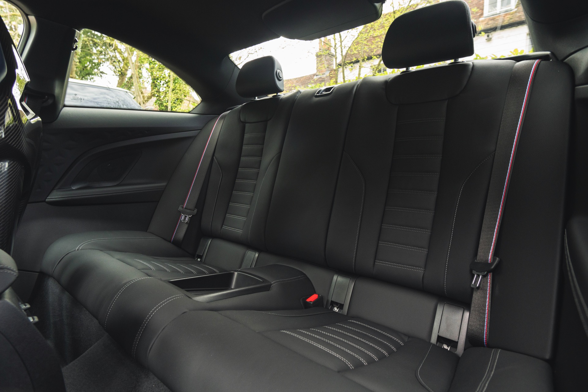 Genau wie beim Dach spielt Carbon auch im Innenraum eine wichtige Rolle: Der BMW M2 aus dem Showroom des BMW-Händlers Dick Lovett im Südwesten Englands wurde von Andrew Barker konfiguriert und ist mit den Interieurleisten ‘Carbon Fibre’ und sogar mit den optionalen M Carbon Schalensitzen ausgestattet. Letztere sind nur als Bestandteil des M Race Track-Pakets bestellbar. Die Schalensitze bieten nicht nur jede Menge Halt und sorgen mit Elementen in M-Farben und beleuchtetem M2-Logo für einen sportlichen Touch, sie eignen sich dank ihrer Öffnungen auch zur Installation von Mehrpunkt-Gurten für den Rennstrecken-Einsatz.