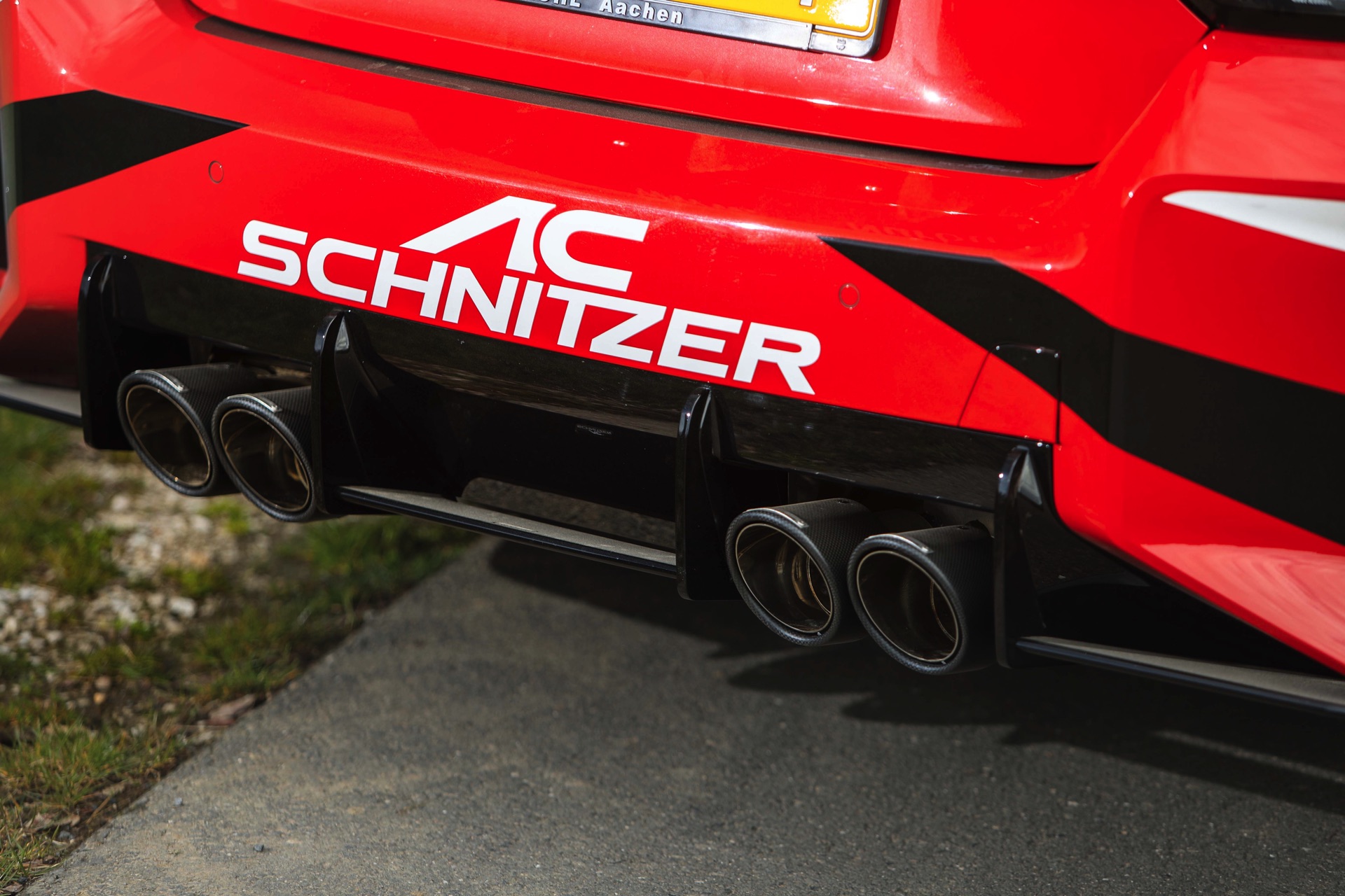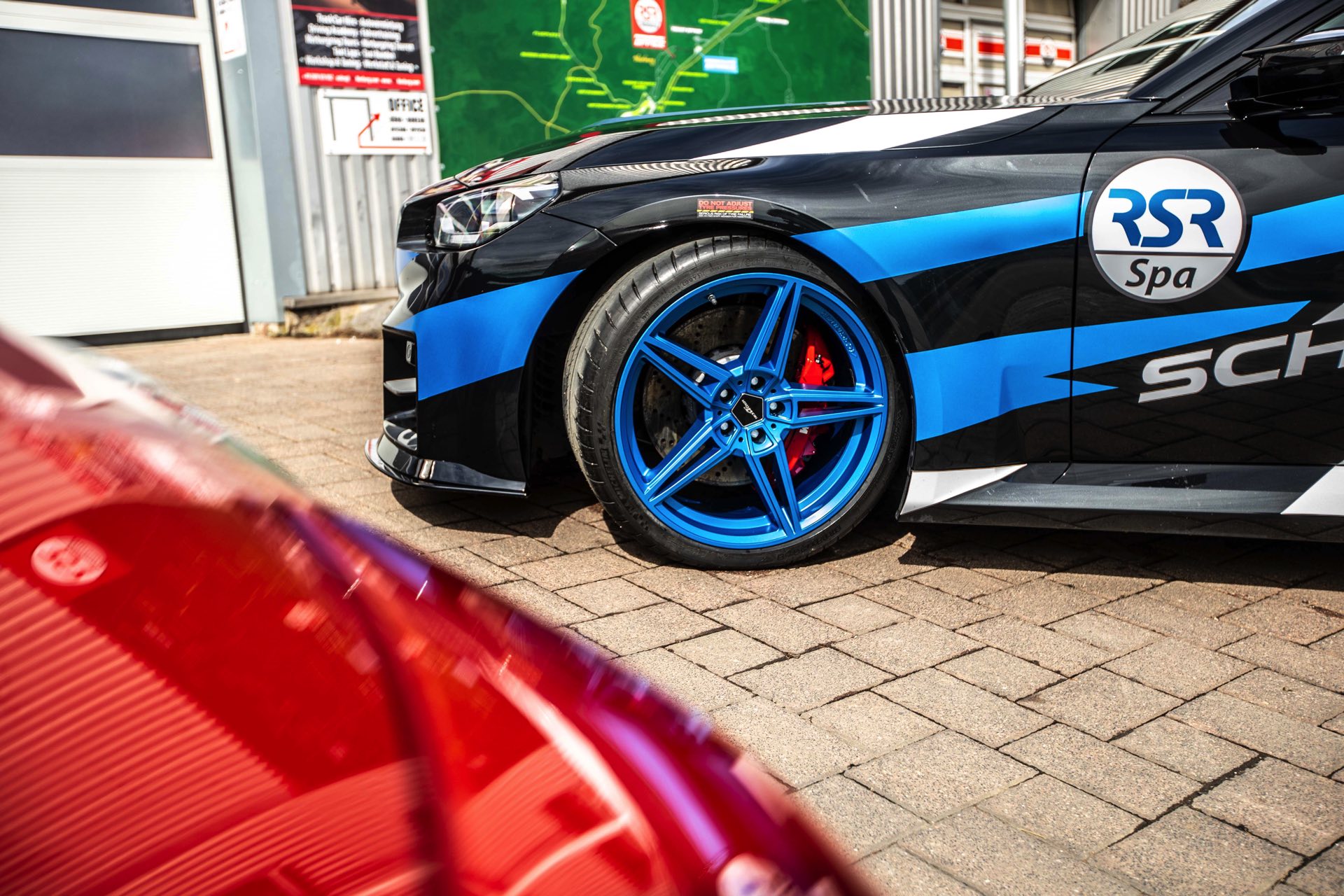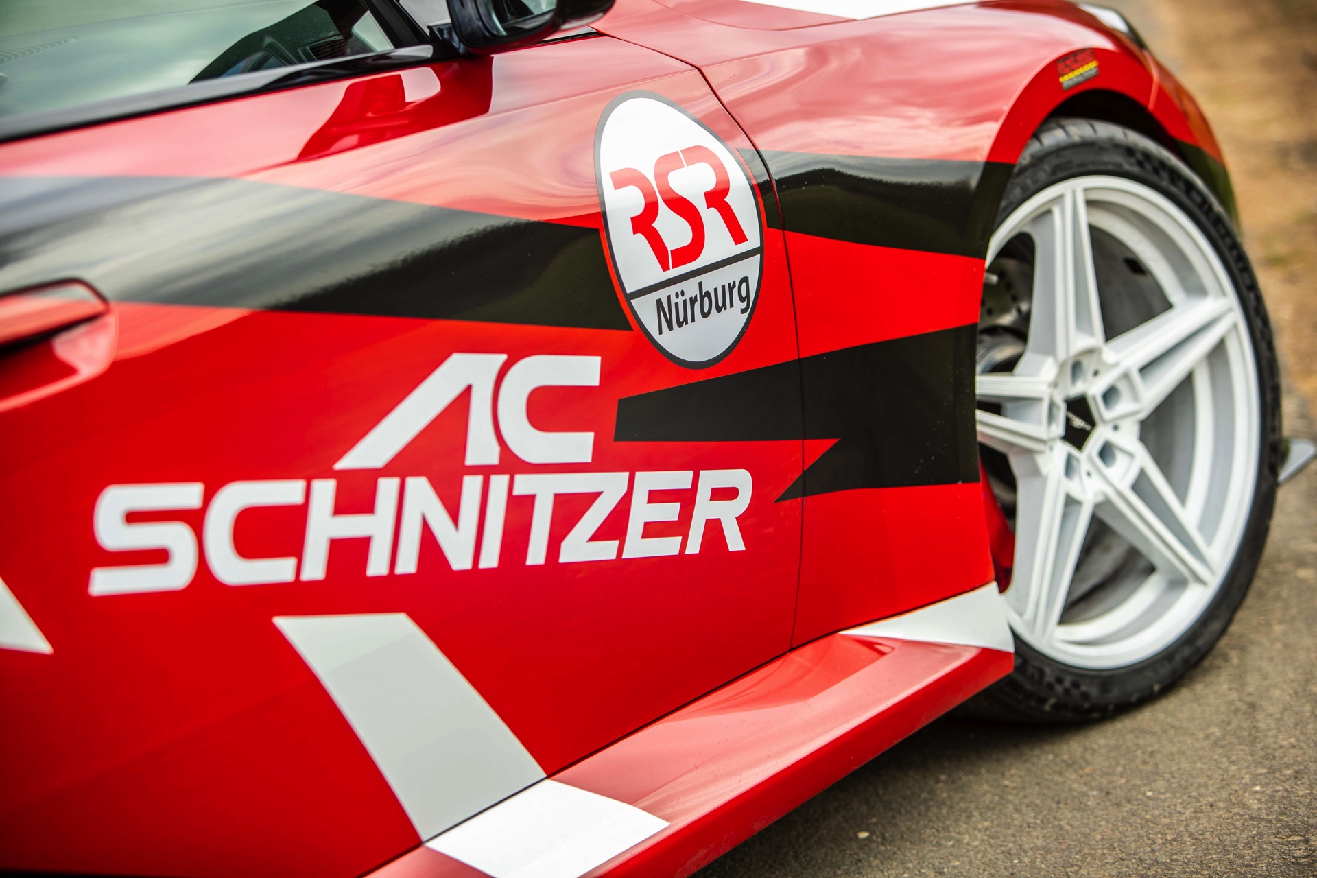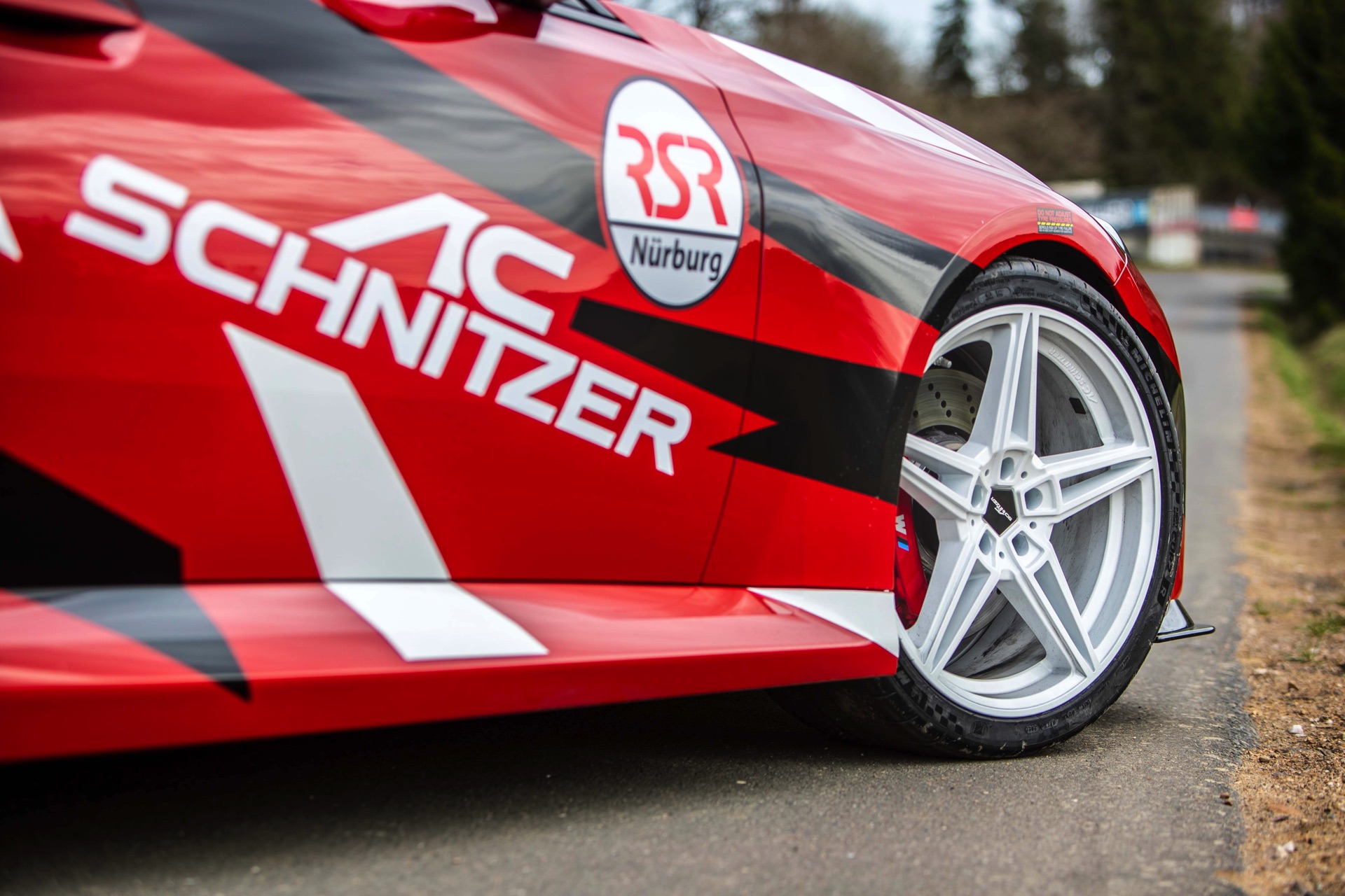 Für satteren Sound sorgt der Sport-Schalldämpfer mit seinen vier Carbon-ummantelten Endrohren und natürlich sind statt Serien-Felgen auch Leichtmetallräder von AC Schnitzer verbaut. Die AC1-Felgen im 20 Zoll-Format sind mit Cup-Bereifung versehen und versprechen erstklassige Traktion, zumal RSR und AC Schnitzer ein Rennstrecken-Fahrwerk von KW verbaut und mit ihren erfahrenen Entwicklern auf die Nordschleife abgestimmt haben. Hinter den Rädern wurde die Bremsanlage mit Stahlflex-Leitungen und Winmax-Belägen optimiert.