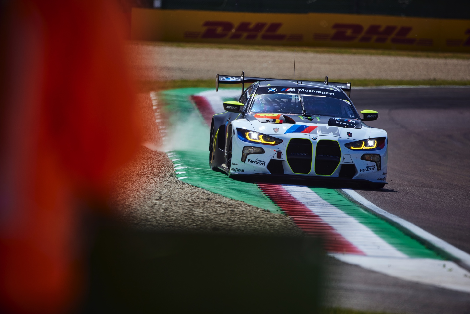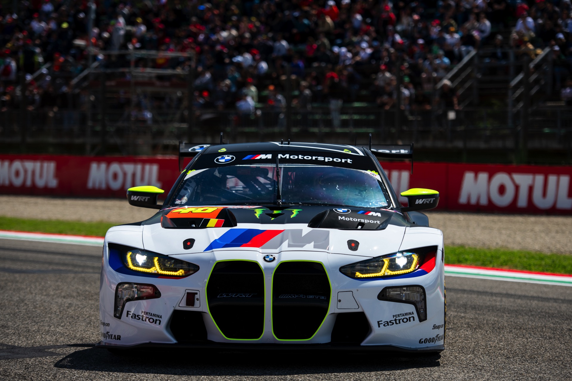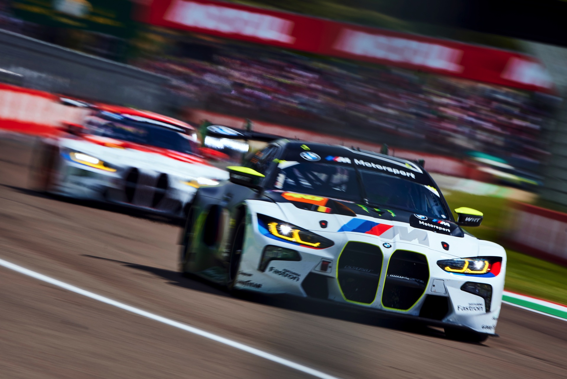 Für Valentino Rossi war das Heimspiel – sein Geburtsort Urbino liegt nur zwei Autostunden Fahrtzeit von Imola entfernt – das nächste Ausrufezeichen seiner noch jungen GT3-Karriere. Beim Saisonauftakt in Katar hatte der BMW M4 GT3 mit der Nummer 46 das Podium noch haarscharf verpasst, aber unter dem Jubel der Tifosi durfte sich Rossi nun wieder aufs Treppchen stellen. Beide BMW profitierten vom Mut der Fahrer, die sich trotz gelegentlicher Regenschauer für Slick-Bereifung entschieden und damit offenbar die unterm Strich bessere Entscheidung trafen: Was auf nassem Asphalt etwas Zeit kostete, war auf trockener Strecke ein klarer Vorteil.