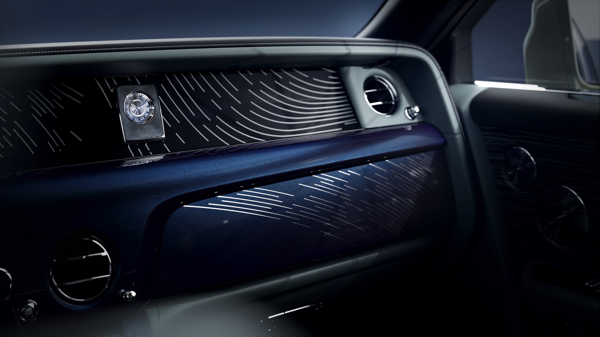 Dass es auch noch länger geht, zeigt der dank verlängertem Radstand knapp sechs Meter lange Rolls-Royce Phantom “Magnetism”. Seine Lackierung trägt den Namen “Cala Luna Sand” und ist von Mond-beschienenen Sandstränden inspiriert. Das Greenhouse der Limousine ist in der Kontrastfarbe “Kabira Blue” lackiert, die den Nachthimmel über dem Ozean symbolisieren soll. Stilecht komplettiert wird diese Erzählung vom Starlight Headliner im Innenraum, der sich aus 768 blauen und 576 weißen “Sternen” sowie acht Sternschnuppen zusammensetzt. Keine Frage: Wer an Bord dieses Autos nicht ins Träumen gerät, ist selber schuld.
