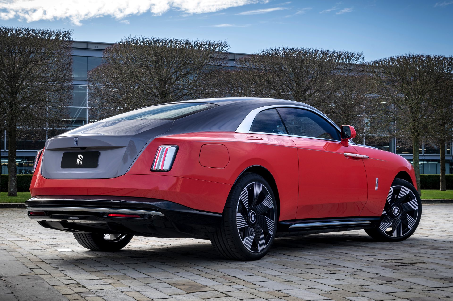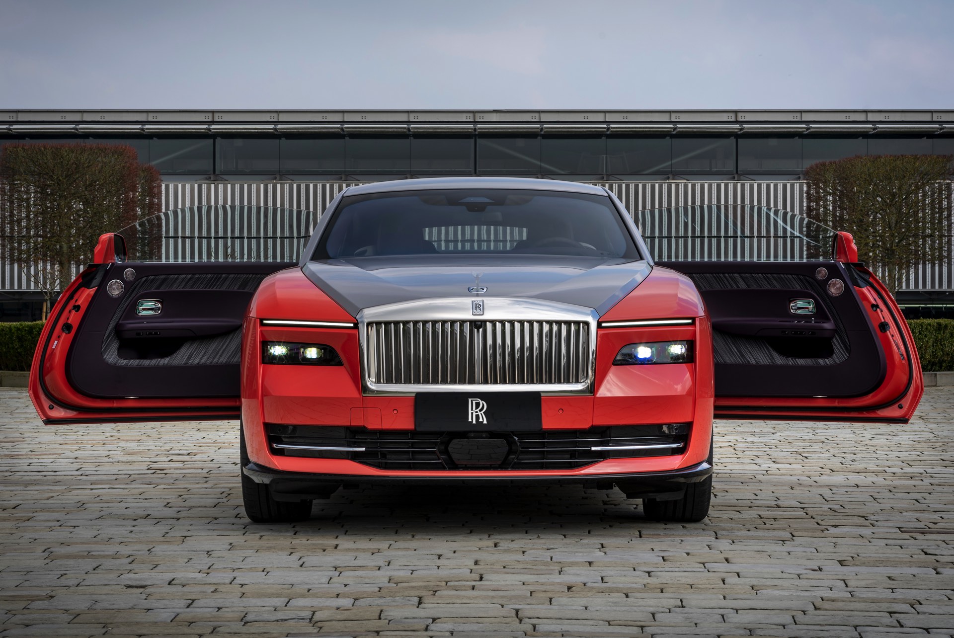 Der Rolls-Royce Spectre “Escapism” kommt ohne einen einzigen Zylinder und verspricht auch dem Namen nach eine Flucht aus der gewohnten Umgebung. Die zweifarbige Exterieur-Lackierung kombiniert kräftiges “Lantana Red”, benannt nach der Blütenfarbe der bei uns als Wandelröschen bekannten Lantana camara, mit edlem Tempest Grey. Der Bicolor-Look betont die markant geformte Dachlinie des 585 PS starken Wraith-Nachfolgers, der als erster Rolls-Royce überhaupt einen lokal emissionsfreien Elektroantrieb bietet.