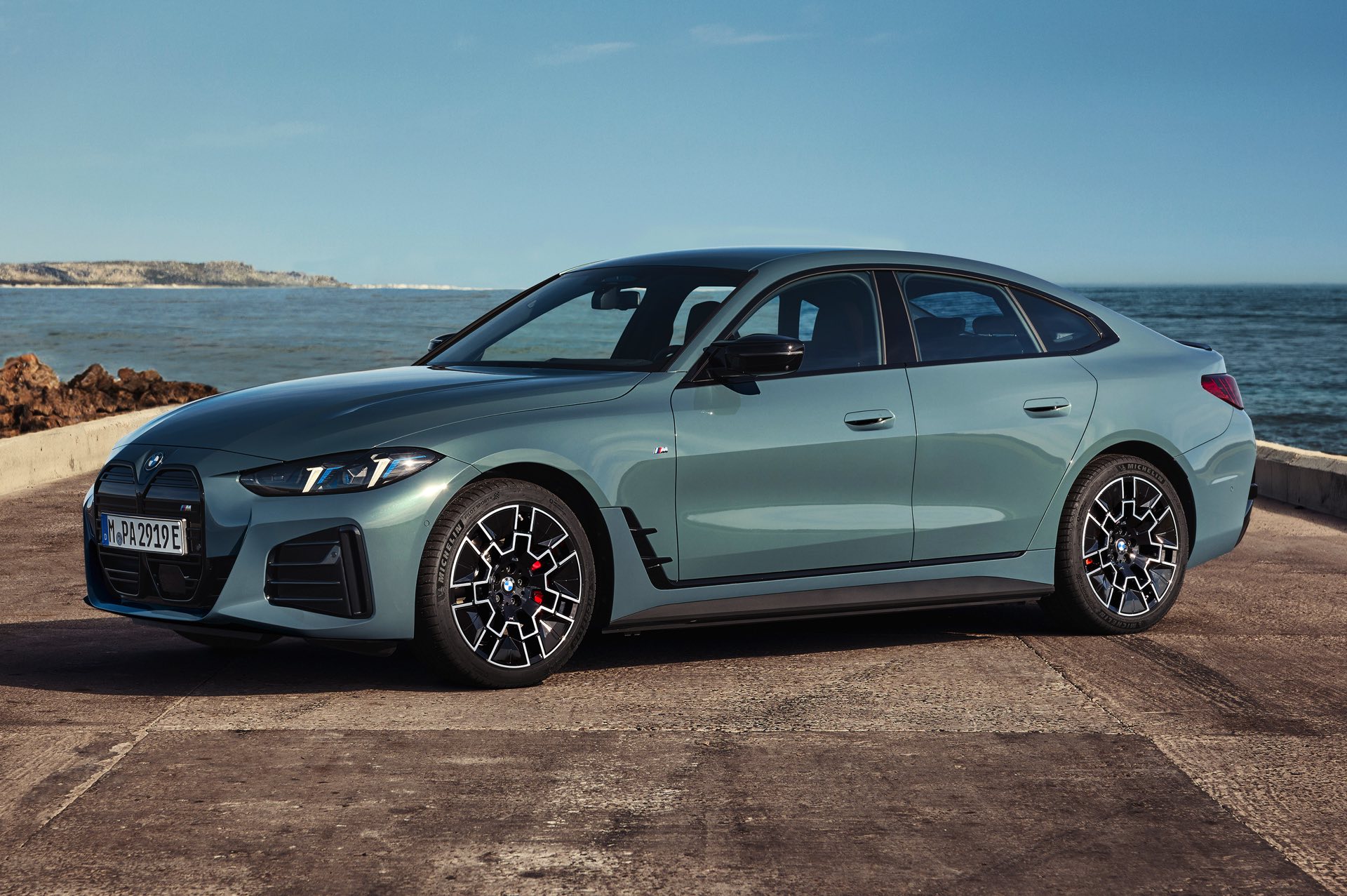 Auf den zweiten Blick präsentiert sich auch die Niere mit einem neuen Innenleben: Das Topmodell BMW i4 M50 kommt jetzt trotz weitgehend geschlossener Niere mit horizontalen Streben und folgt damit der gleichen Design-Philosophie wie andere aktuelle M-Modelle. Die schwächeren Modelle erhalten ebenfalls ein neues Nieren-Innenleben, das mit seiner Musterung an die Elektro-SUV iX1 und iX2 erinnert und für eine klare Abgrenzung von den konventionell angetriebenen Varianten des 4er Gran Coupé (G26 LCI) sorgt.