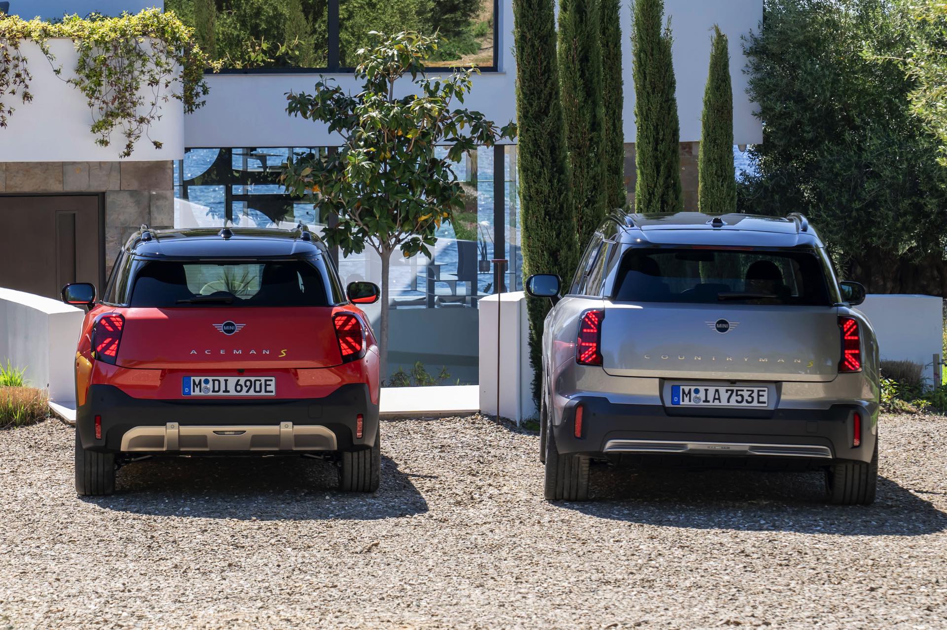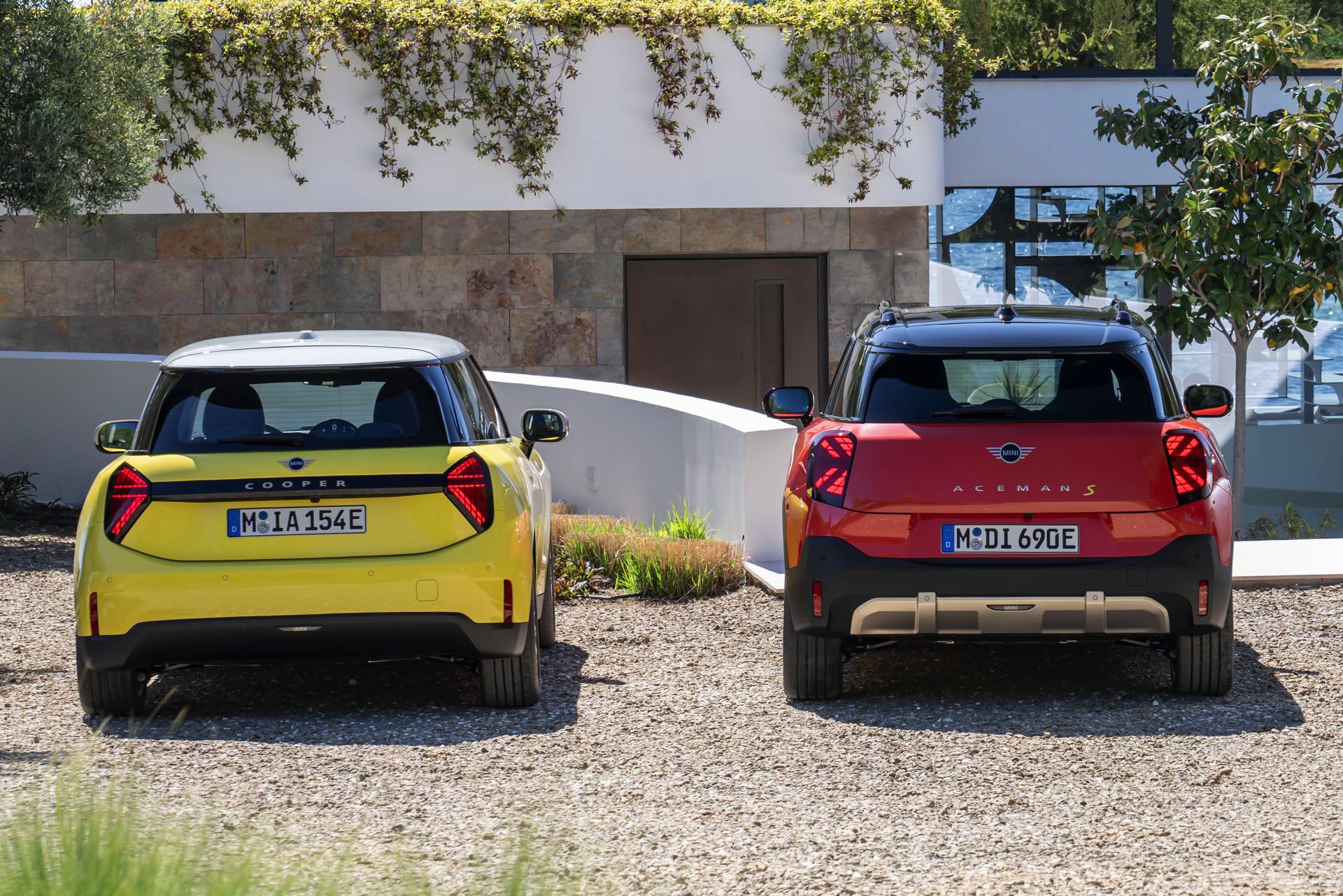 Neben den Abmessungen, die bei der Länge vom 3,86 Meter langen Cooper über den 4,07 Meter messenden MINI Aceman bis hin zum 4,44 Meter langen Countryman reichen, sorgt auch die Lichttechnik für klare Erkennungszeichen. Der kleine Cooper bleibt mit seinen kreisrunden Scheinwerfern an der Front relativ nah am Look des Ur-Mini, die beiden SUV-Modelle Aceman und Countryman setzen eher auf einen eckig gehaltenen Look. Auch zwischen Aceman und Countryman gibt es jedoch klare Unterschiede beim Licht-Design, denn das City-SUV greift mit seinen auf der Innenseite deutlich angeschrägten Scheinwerfern die Linien des oktagonalen Kühlergrills auf, während der größere Countryman mit beinahe quadratischen Leuchten noch rustikaler auftritt. "