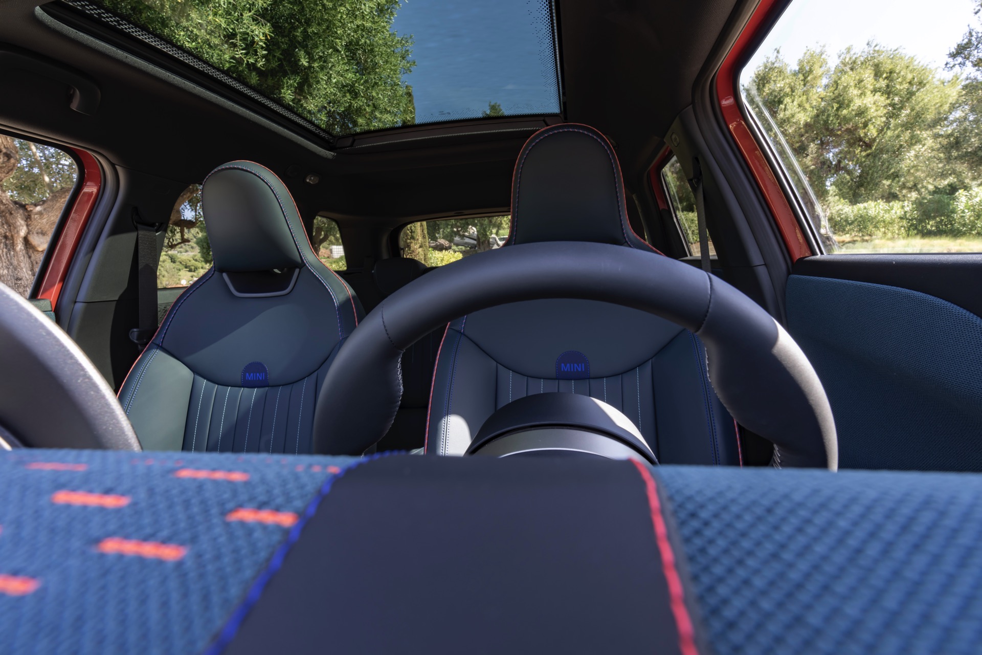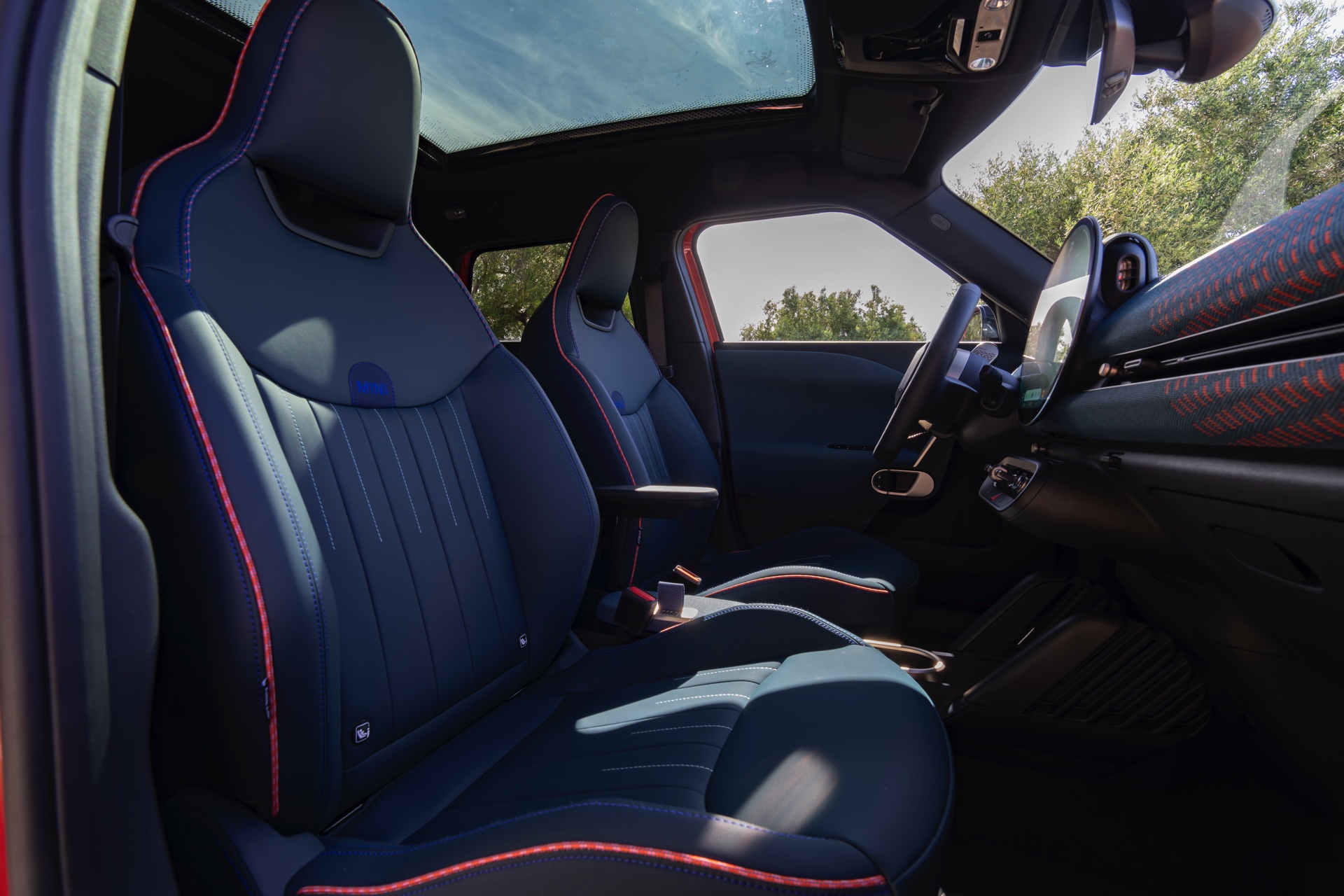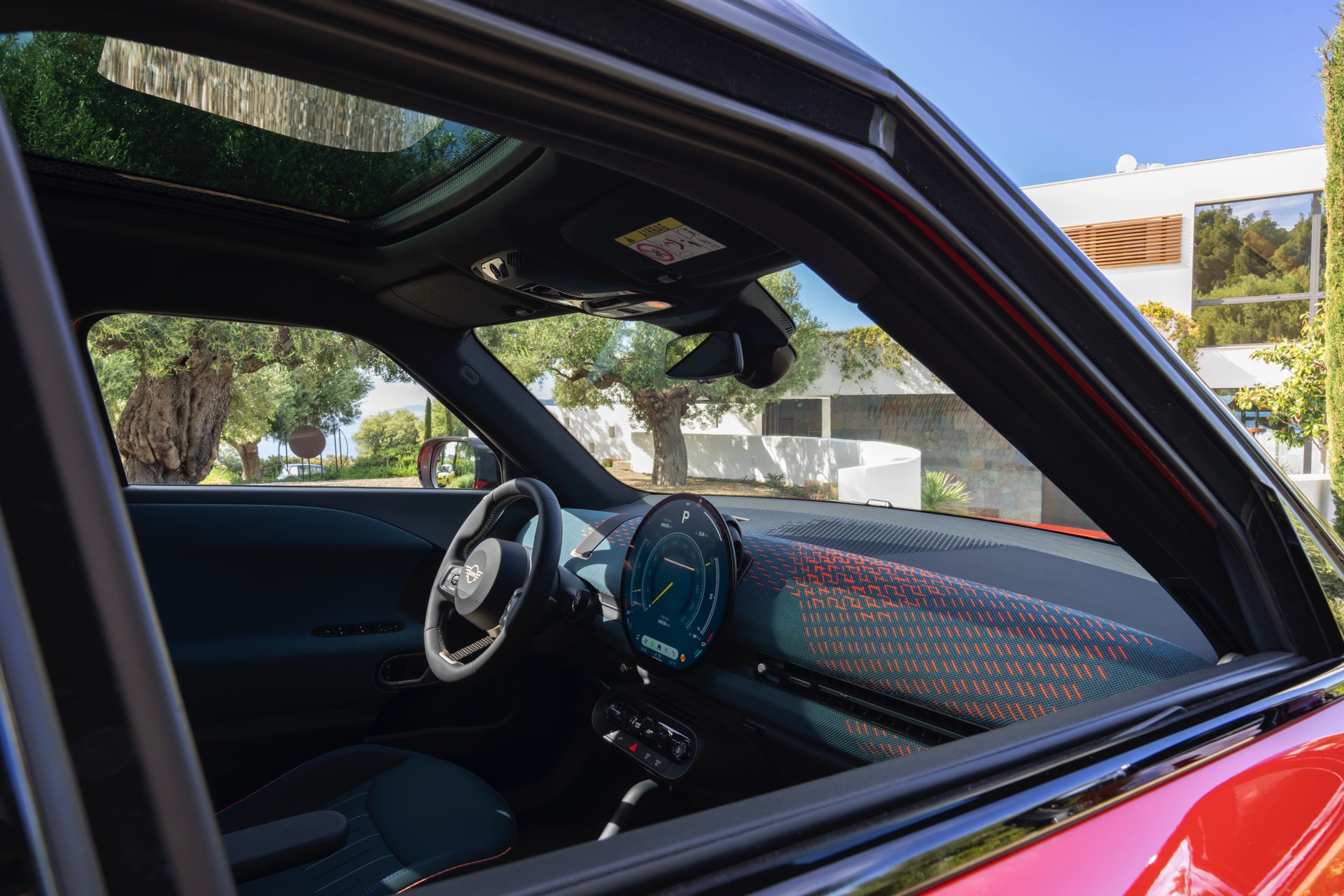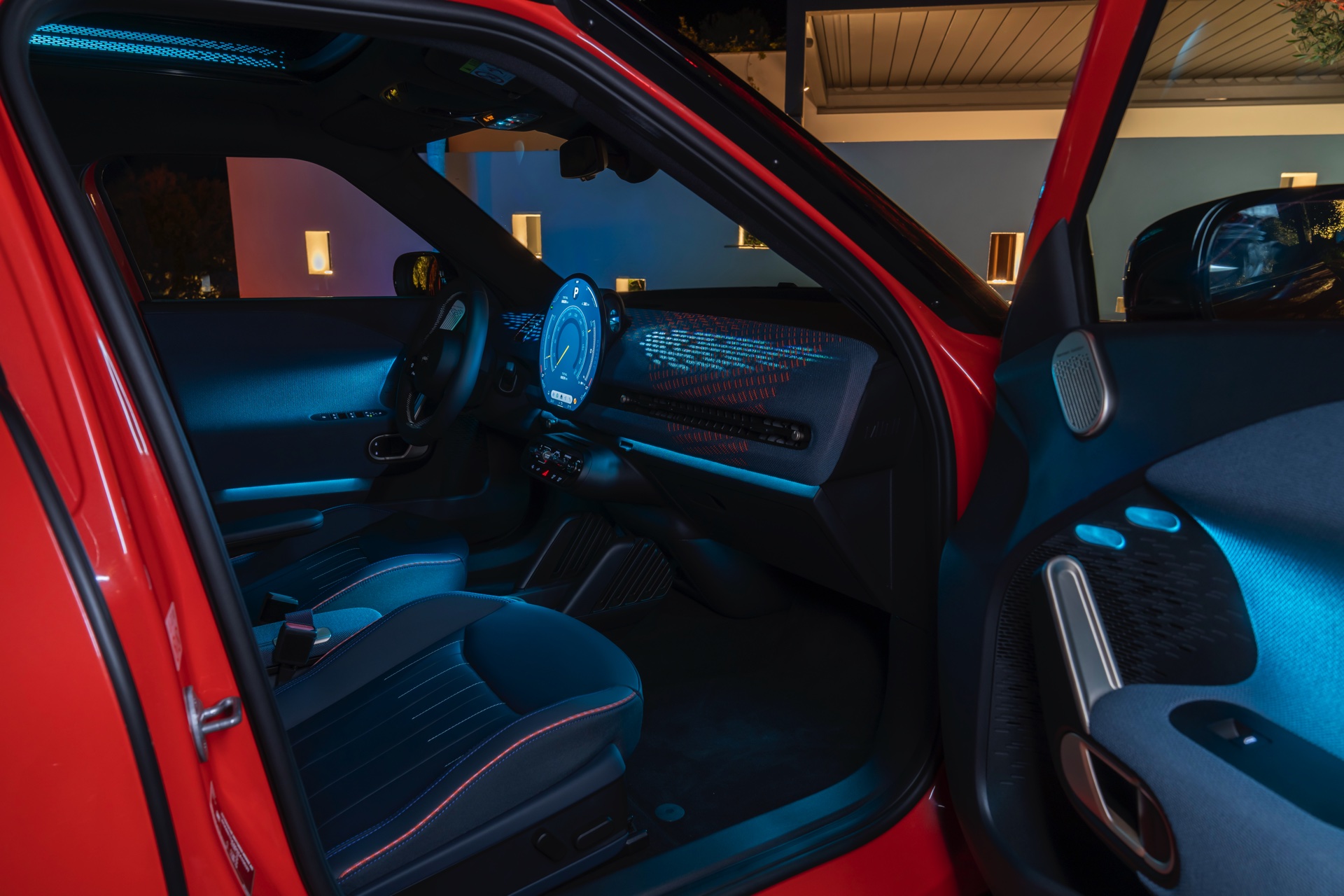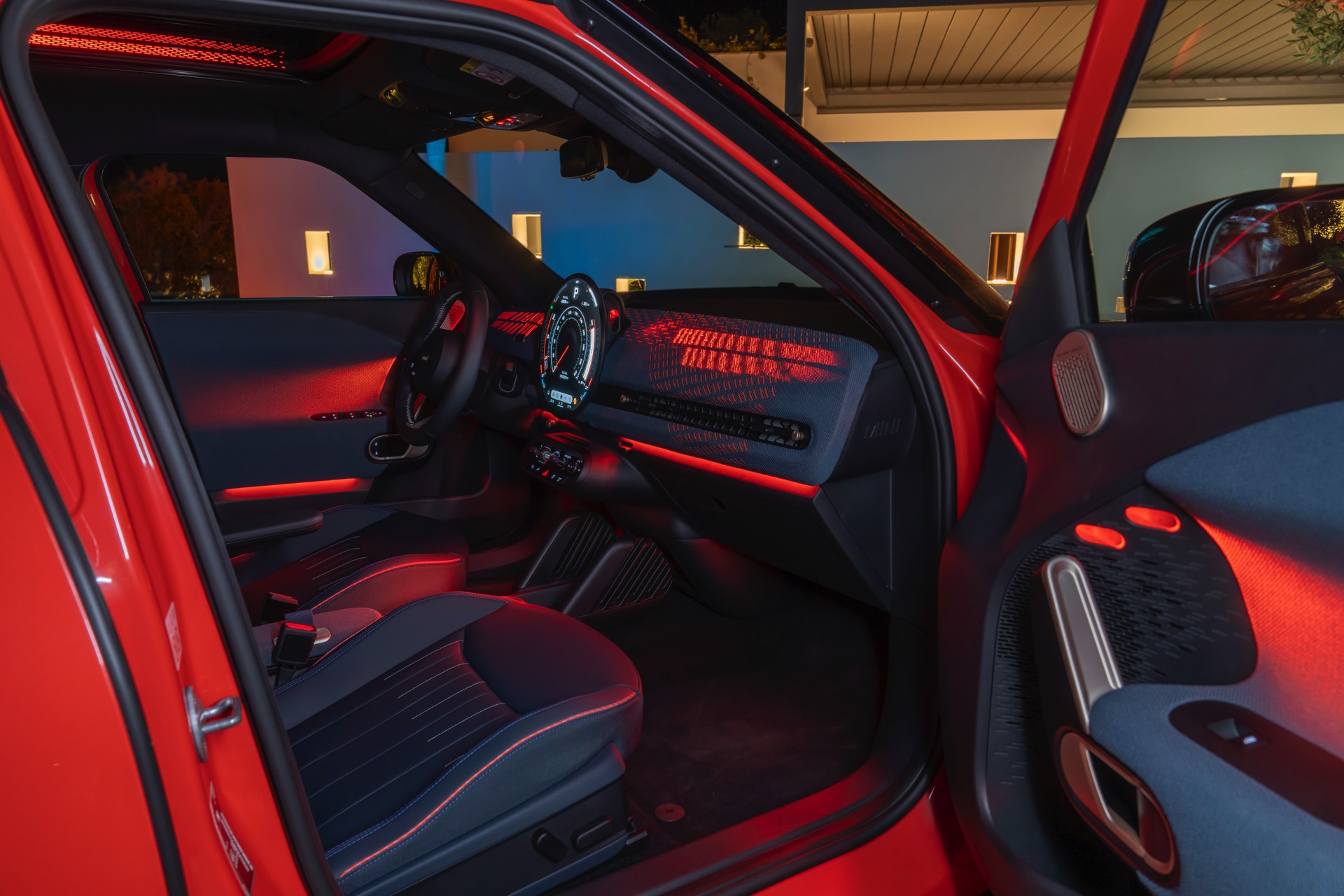 Im Innenraum verfolgt der MINI Aceman einen ganz ähnlichen Ansatz wie die übrigen Mitglieder der aktuellen MIIN-Familie: Hier wie da dominiert das kreisrunde OLED-Display das Cockpit, außerdem sorgen textile Oberflächen für eine wohnliche Atmosphäre.