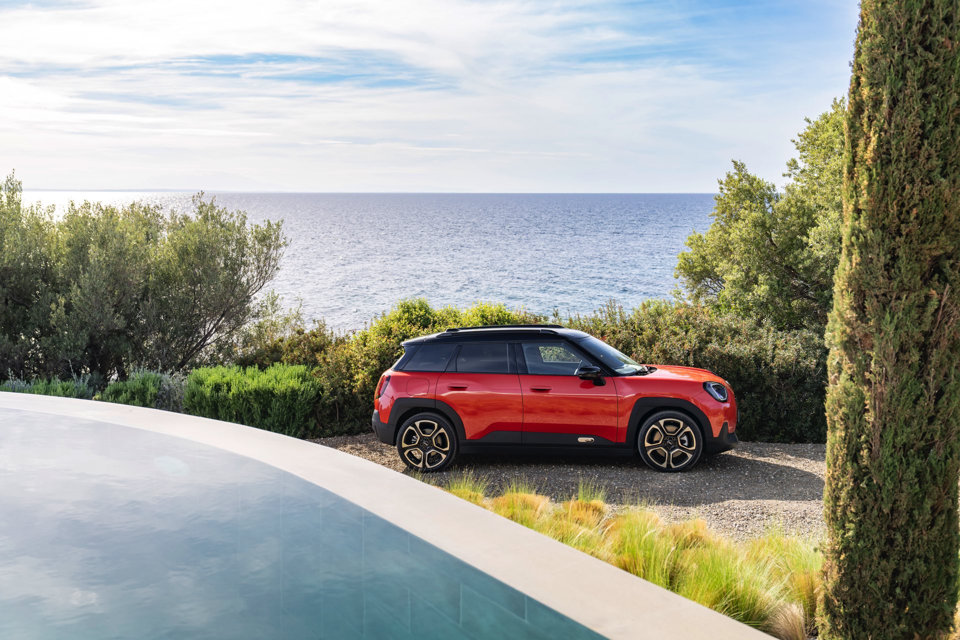 Auf den ersten Fotos sehen wir den neuen MINI Aceman in Rebel Red und mit Favoured Trim: