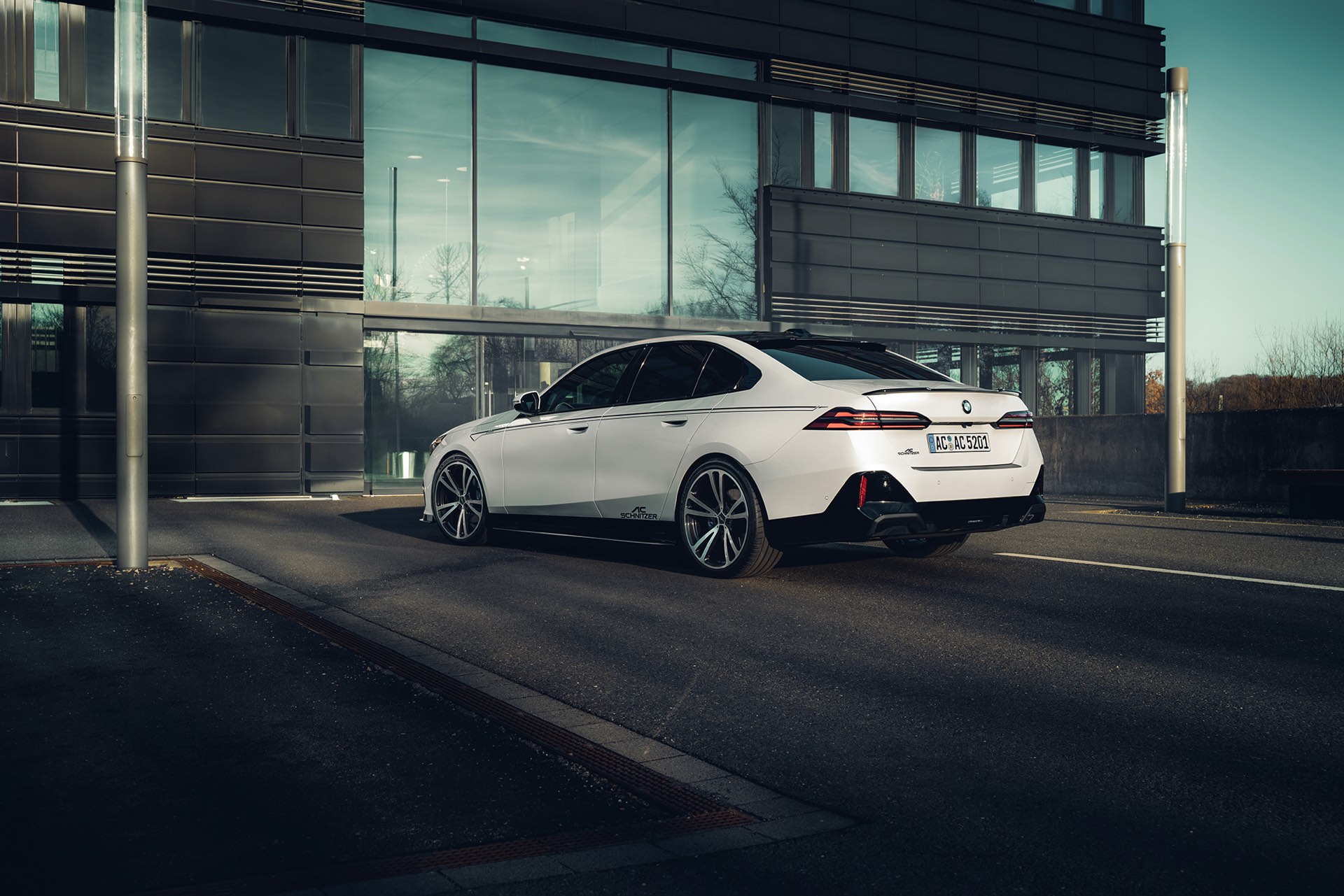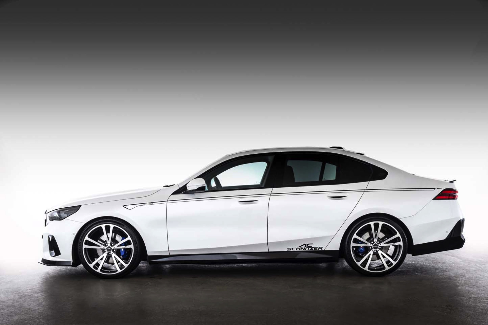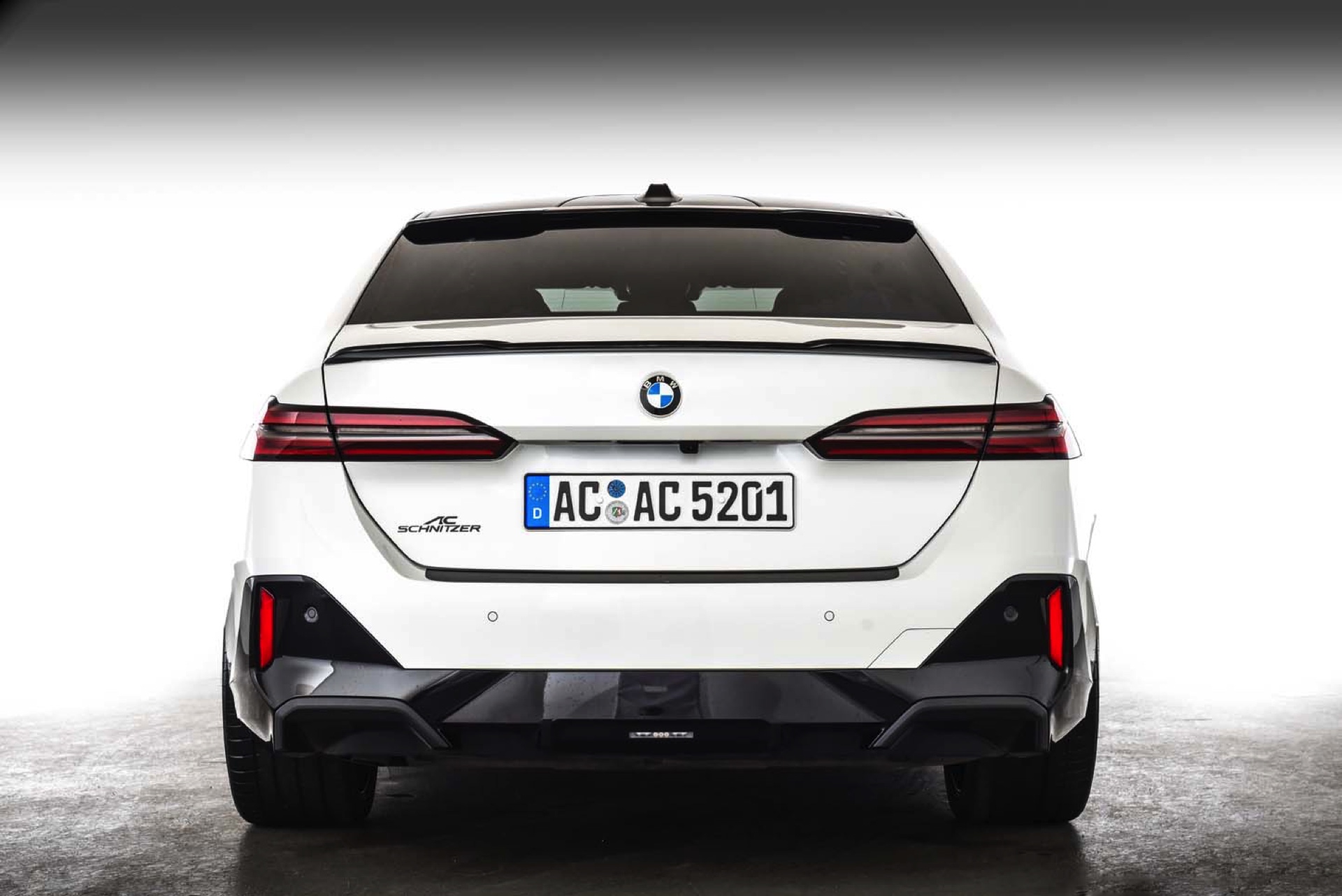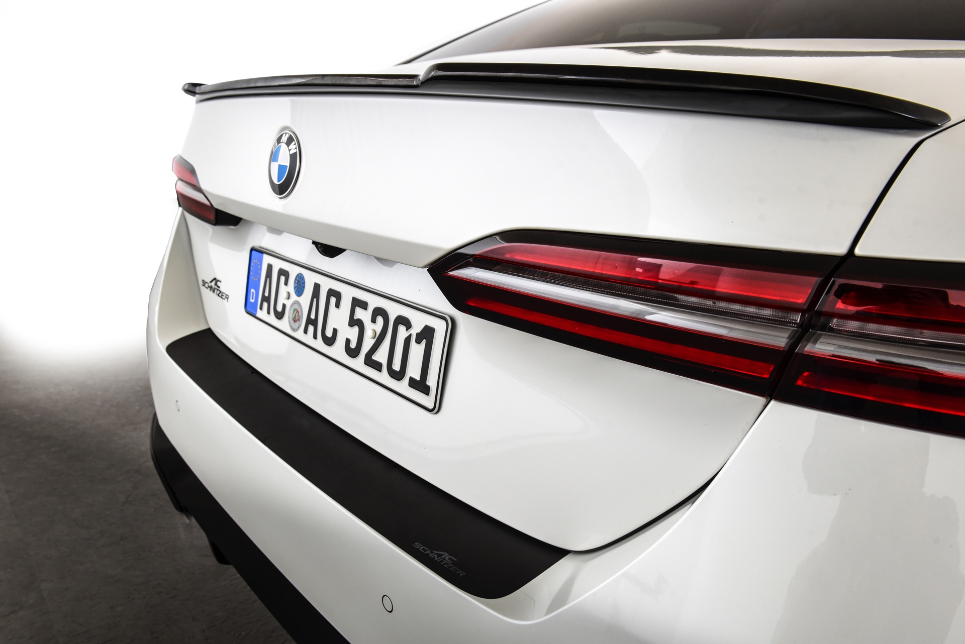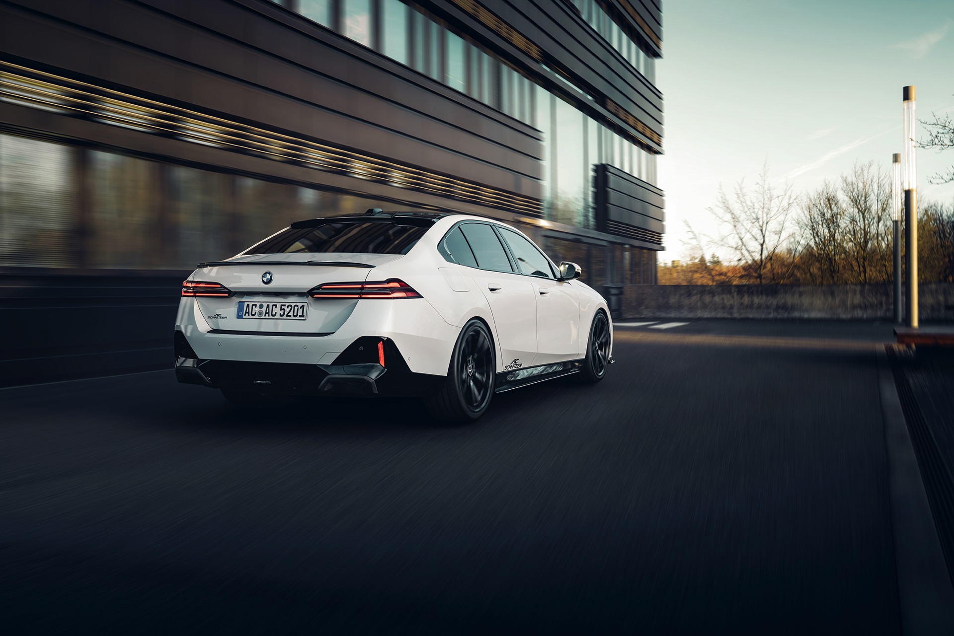 Mit konsequentem Fokus auf Schwarz und Weiß präsentiert sich der neue BMW 5er (G60) in der Tuning-Interpretation von AC Schnitzer. Die Aachener zeigen bereits wenige Wochen nach dem Marktstart ihr Aerodynamik-Programm, ihre Felgen und ihre Fahrwerks-Teile für die Business-Limousine, die erstmals auch als Elektroauto i5 angeboten wird. Die Komponenten sind dabei für BMW i5 und konventionell angetriebene 5er gleichermaßen erhältlich, auch wenn es bei den Fahrwerks-Federnsätze gewisse Unterschiede anhand der Gewichtsklassen gibt und noch nicht alle Varianten lieferbar sind.