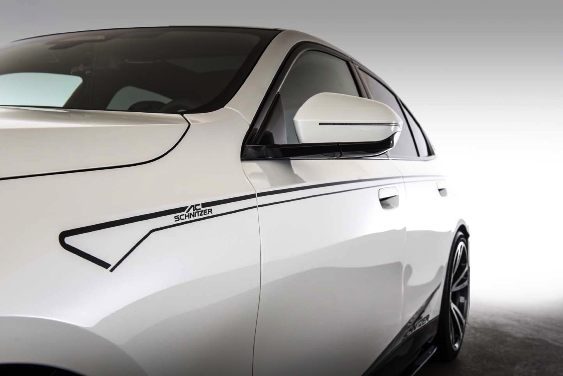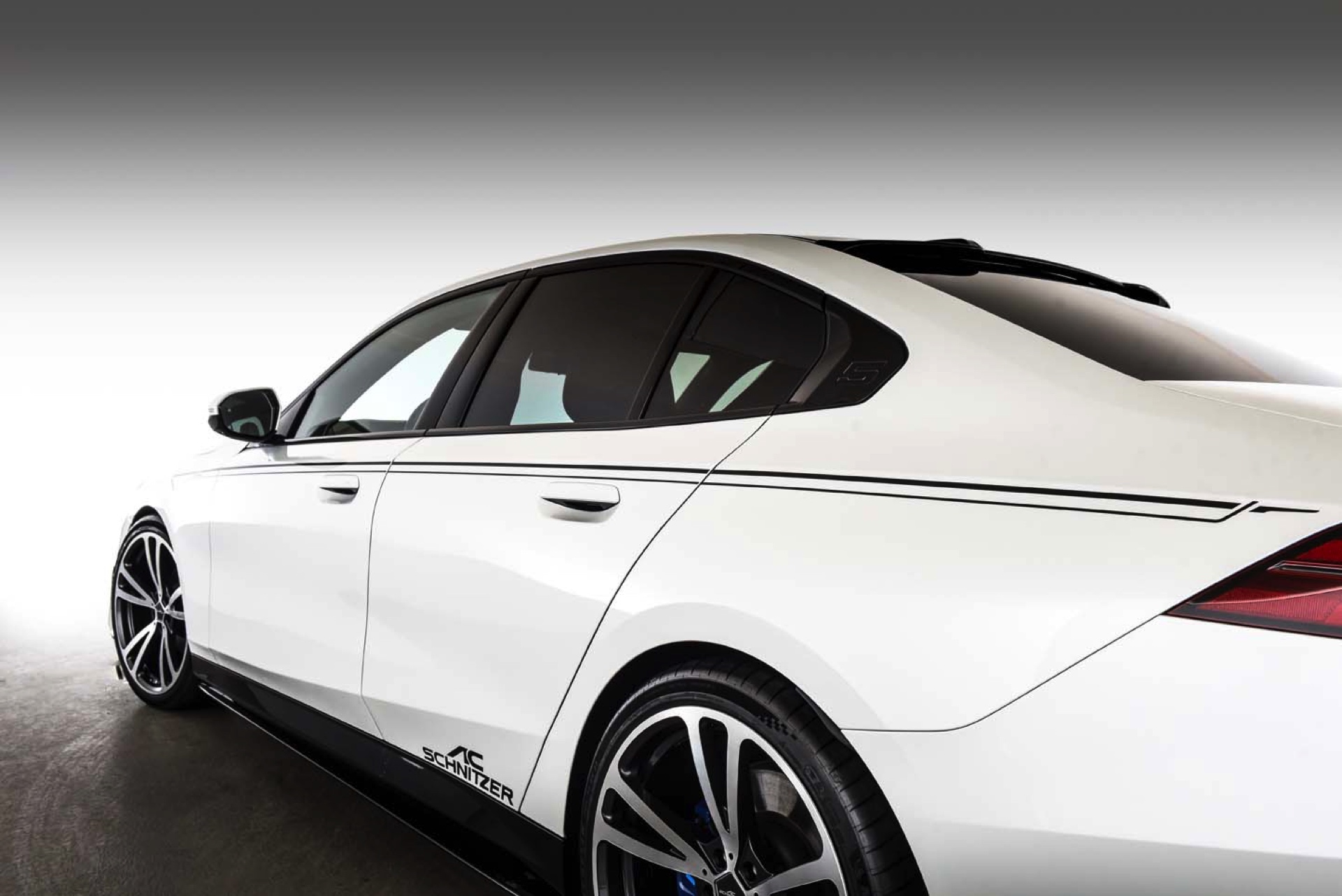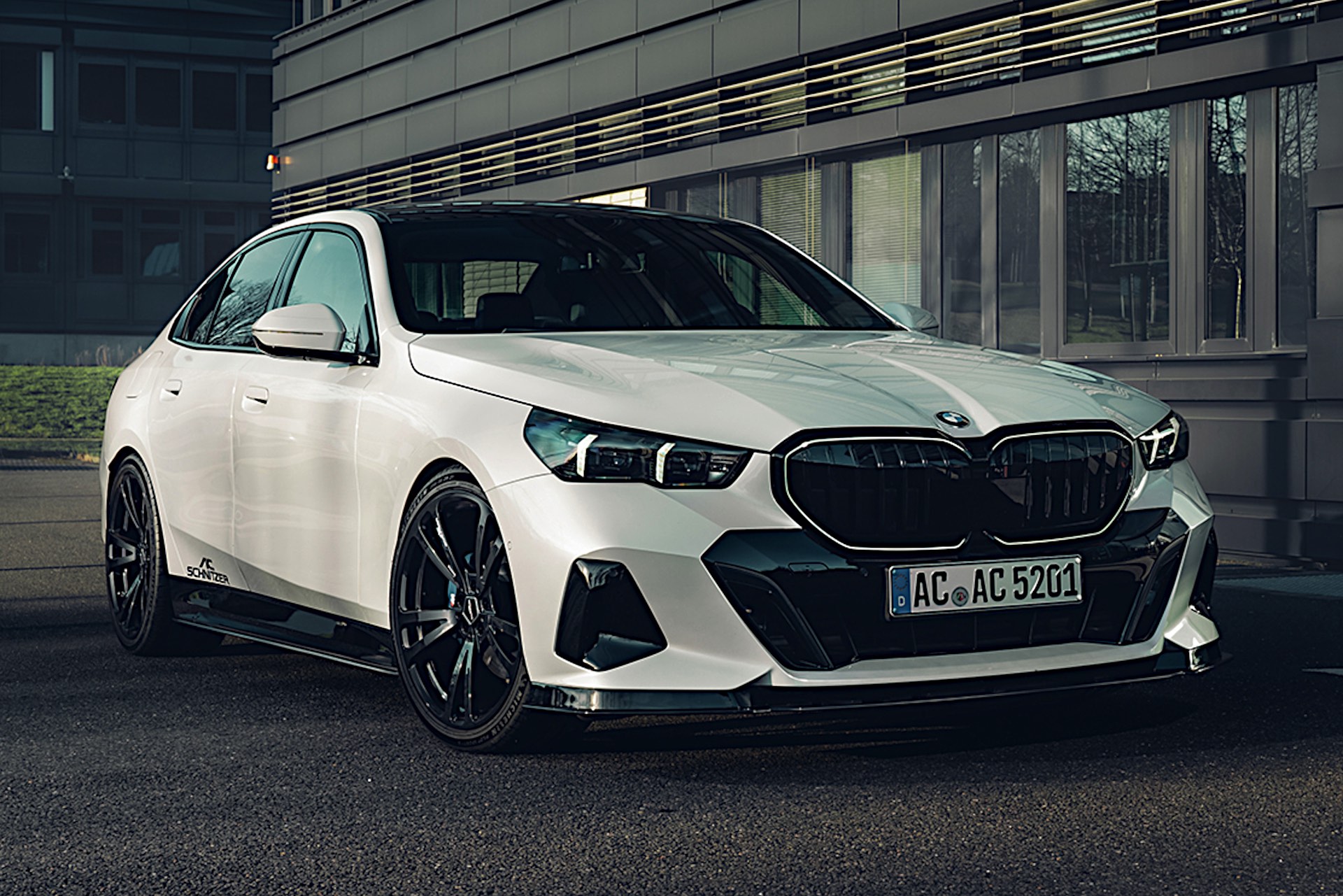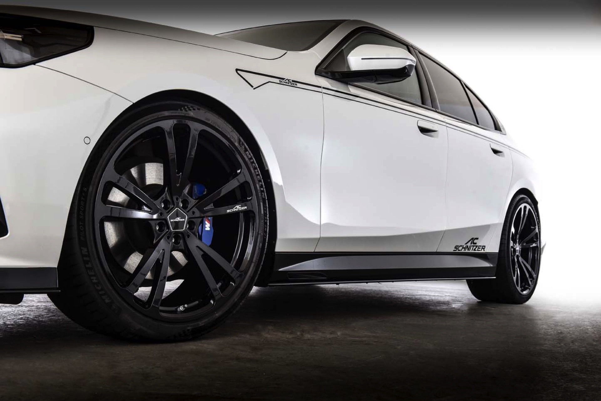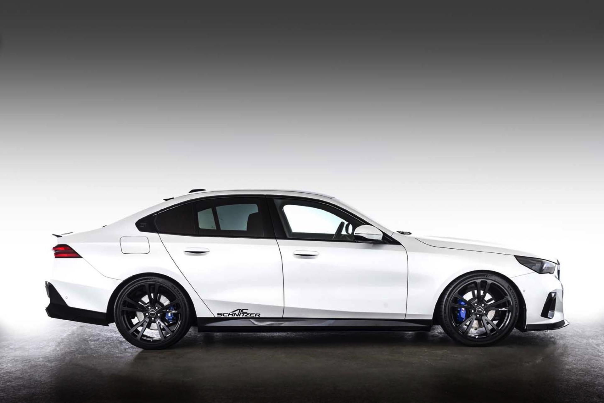 Mit konsequentem Fokus auf Schwarz und Weiß präsentiert sich der neue BMW 5er (G60) in der Tuning-Interpretation von AC Schnitzer. Die Aachener zeigen bereits wenige Wochen nach dem Marktstart ihr Aerodynamik-Programm, ihre Felgen und ihre Fahrwerks-Teile für die Business-Limousine, die erstmals auch als Elektroauto i5 angeboten wird. Die Komponenten sind dabei für BMW i5 und konventionell angetriebene 5er gleichermaßen erhältlich, auch wenn es bei den Fahrwerks-Federnsätze gewisse Unterschiede anhand der Gewichtsklassen gibt und noch nicht alle Varianten lieferbar sind.