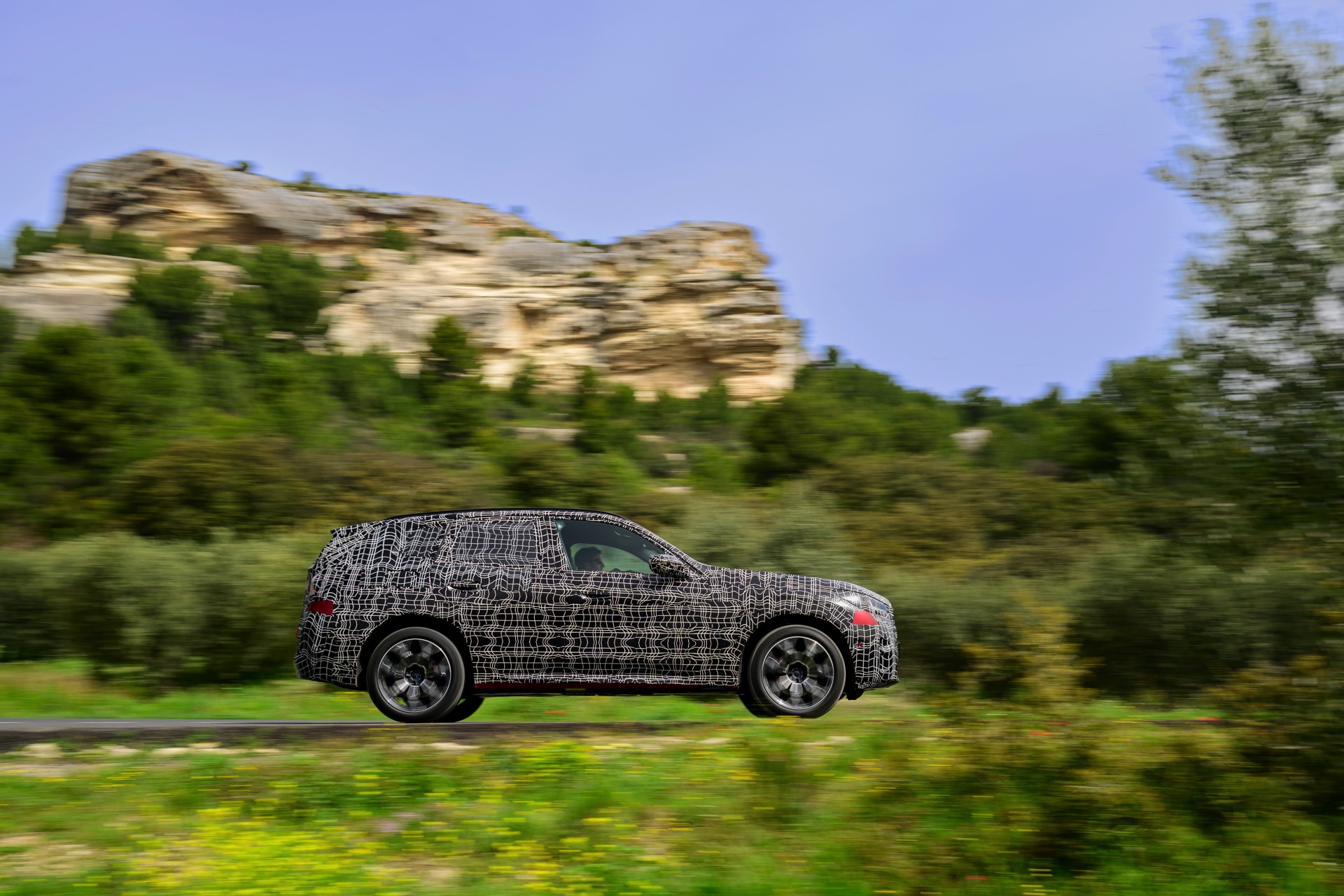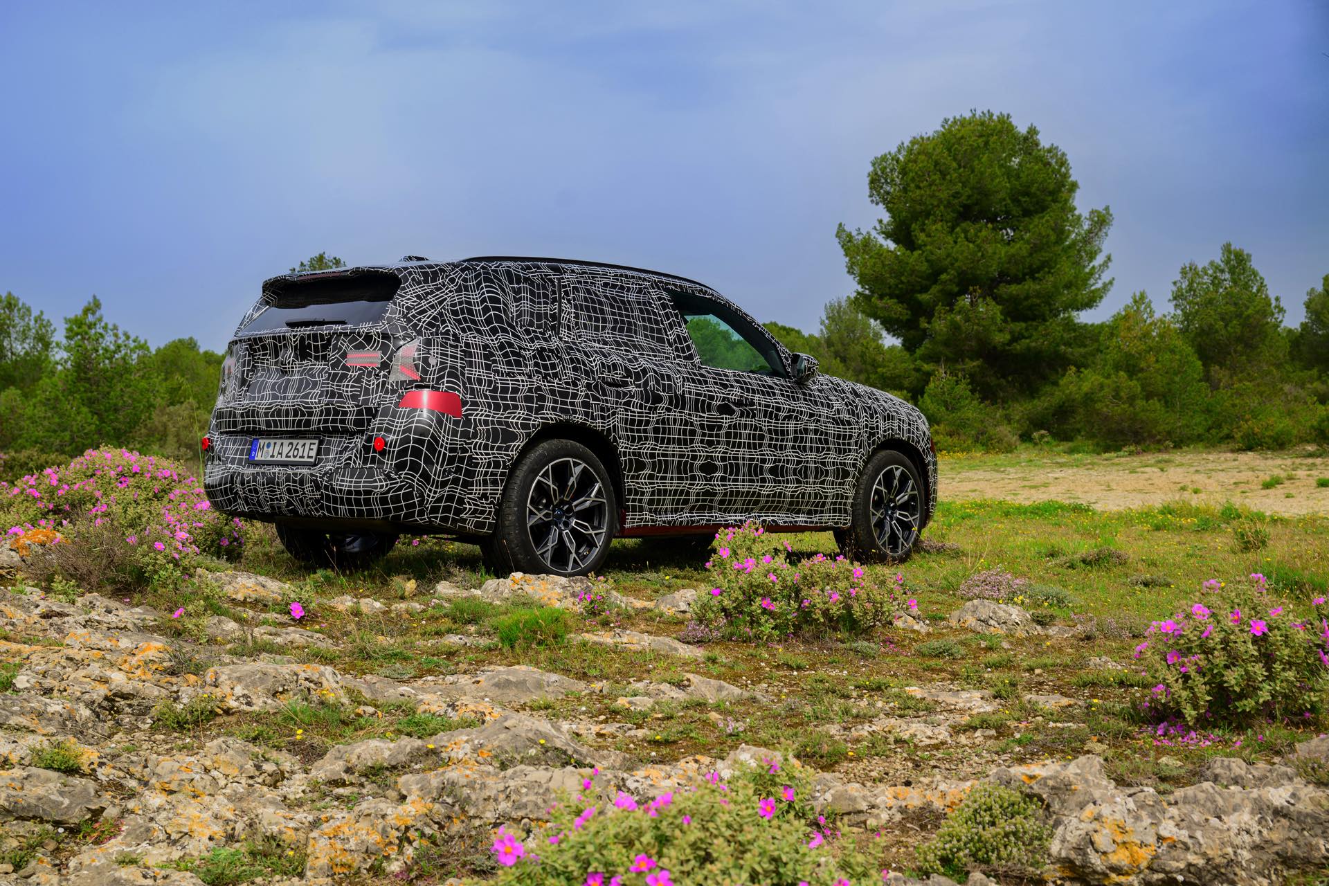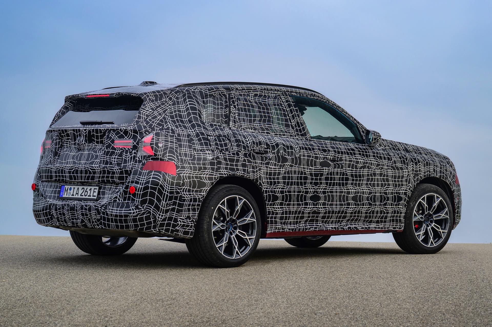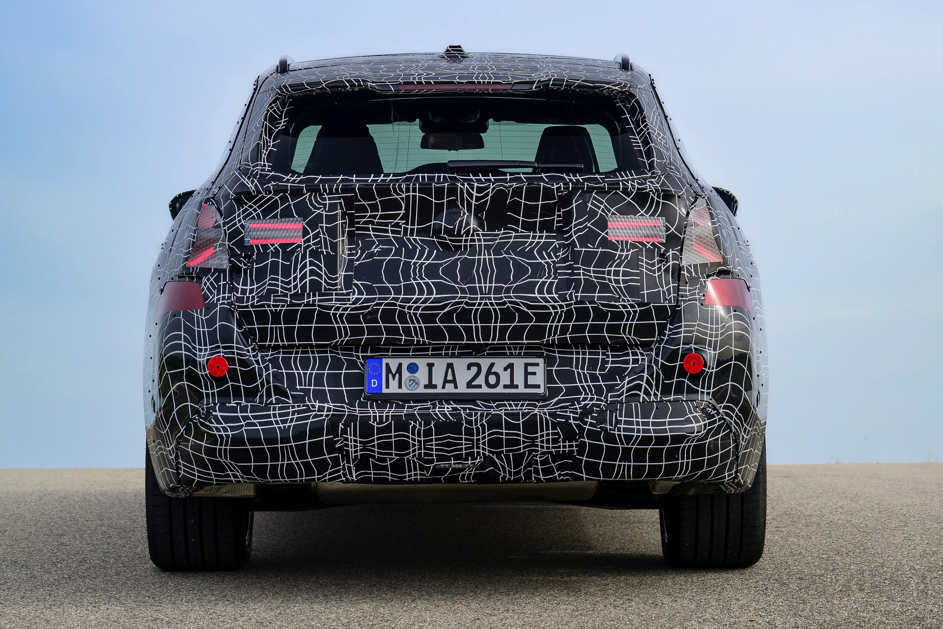 Wie die Erlkönig-Fotos vom Heck, wird der neue BMW X3 (G45) auch für Hinterherfahrende eine eigenständige Optik pflegen: Zumindest mit Tarnung wirkt es so, als ob die Scheinwerfer mit zwei horizontalen Linien arbeiten, die im Bereich der Seitenwände in Form eines auf der Seite liegenden Y auseinandergehen.