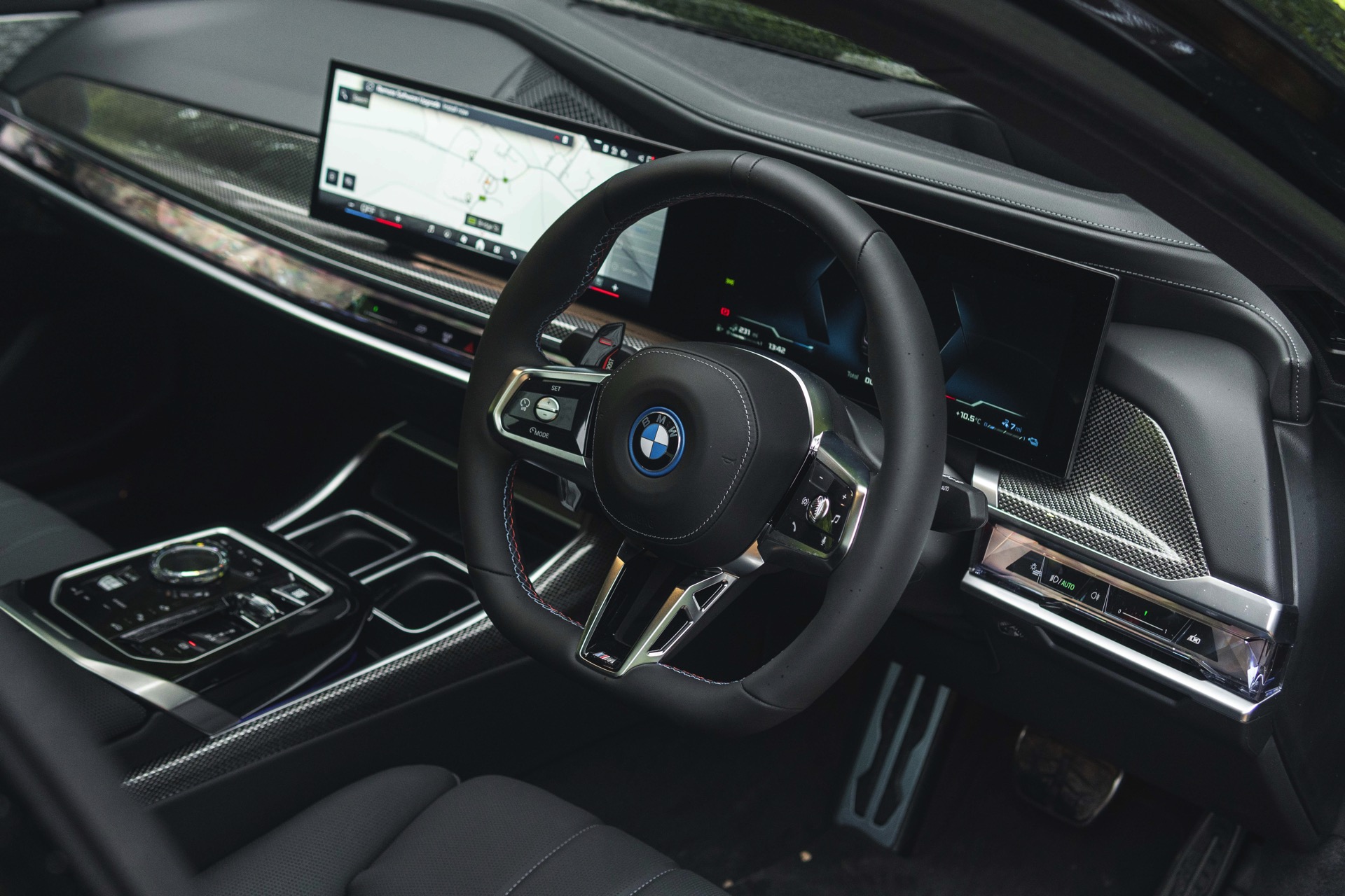 Wenn man es ruhig angehen lässt, sind mit dem BMW M760e bis zu 78 Kilometer rein elektrisch möglich. Wichtiger als dieser Maximalwert dürfte den meisten Kunden aber sein, dass sie im ruhigen Stadtverkehr lokal emissionsfrei fahren können und zudem jederzeit vom verzögerungsfrei anliegenden Drehmoment des E-Motors profitieren. Arbeiten beide Motoren Hand in Hand, beschleunigt der M760e in 4,3 Sekunden von 0 auf 100 km/h.