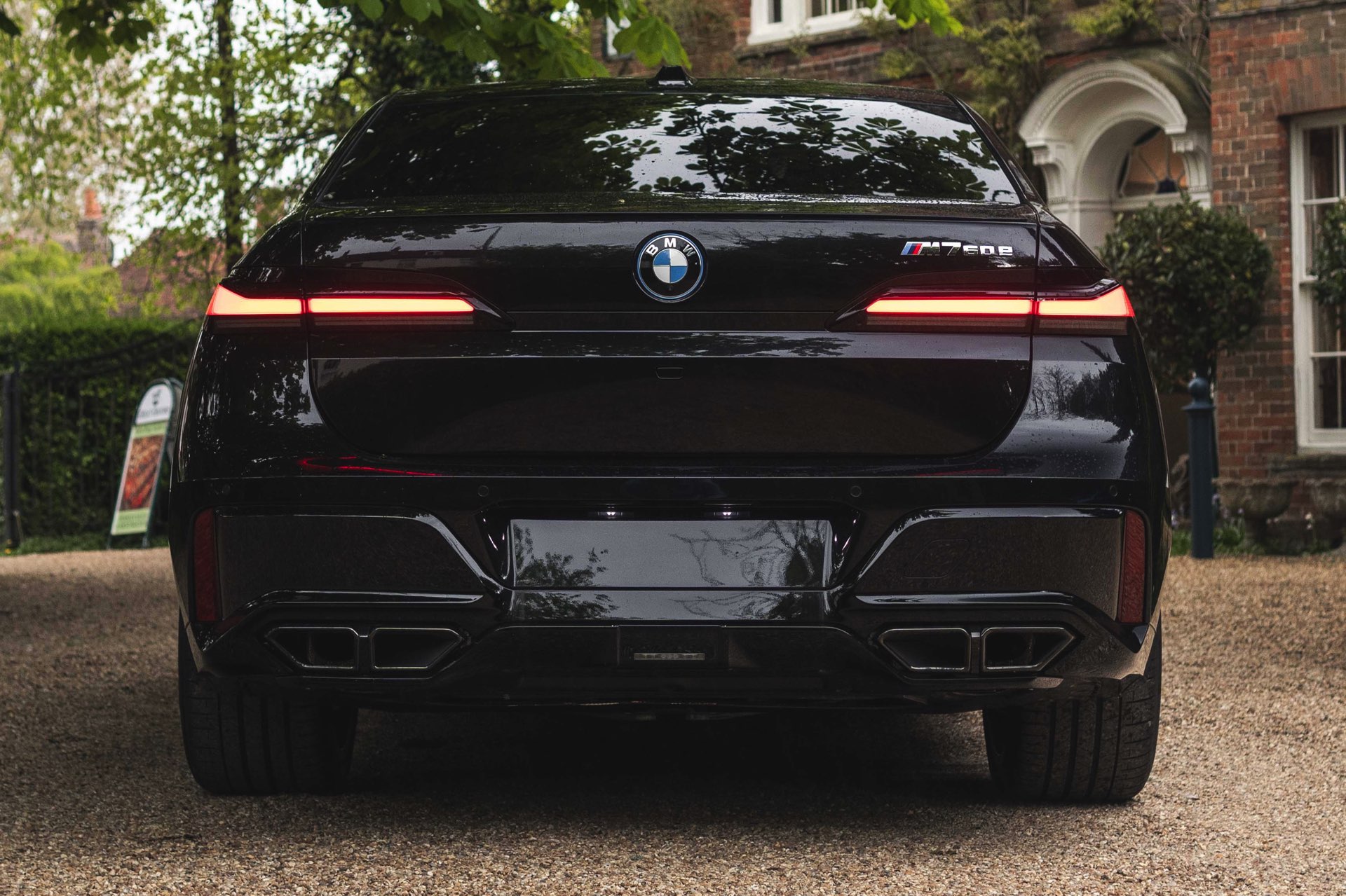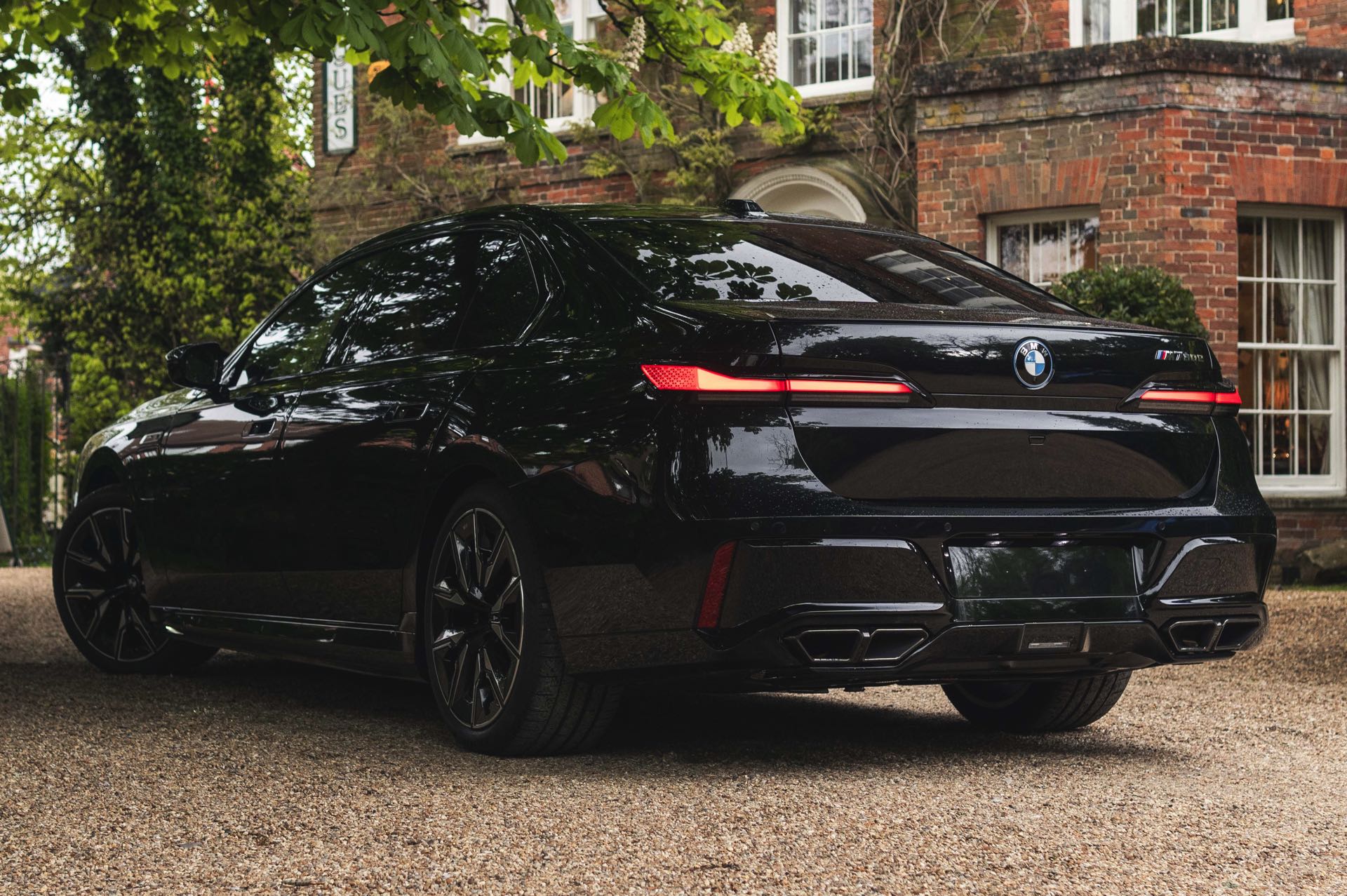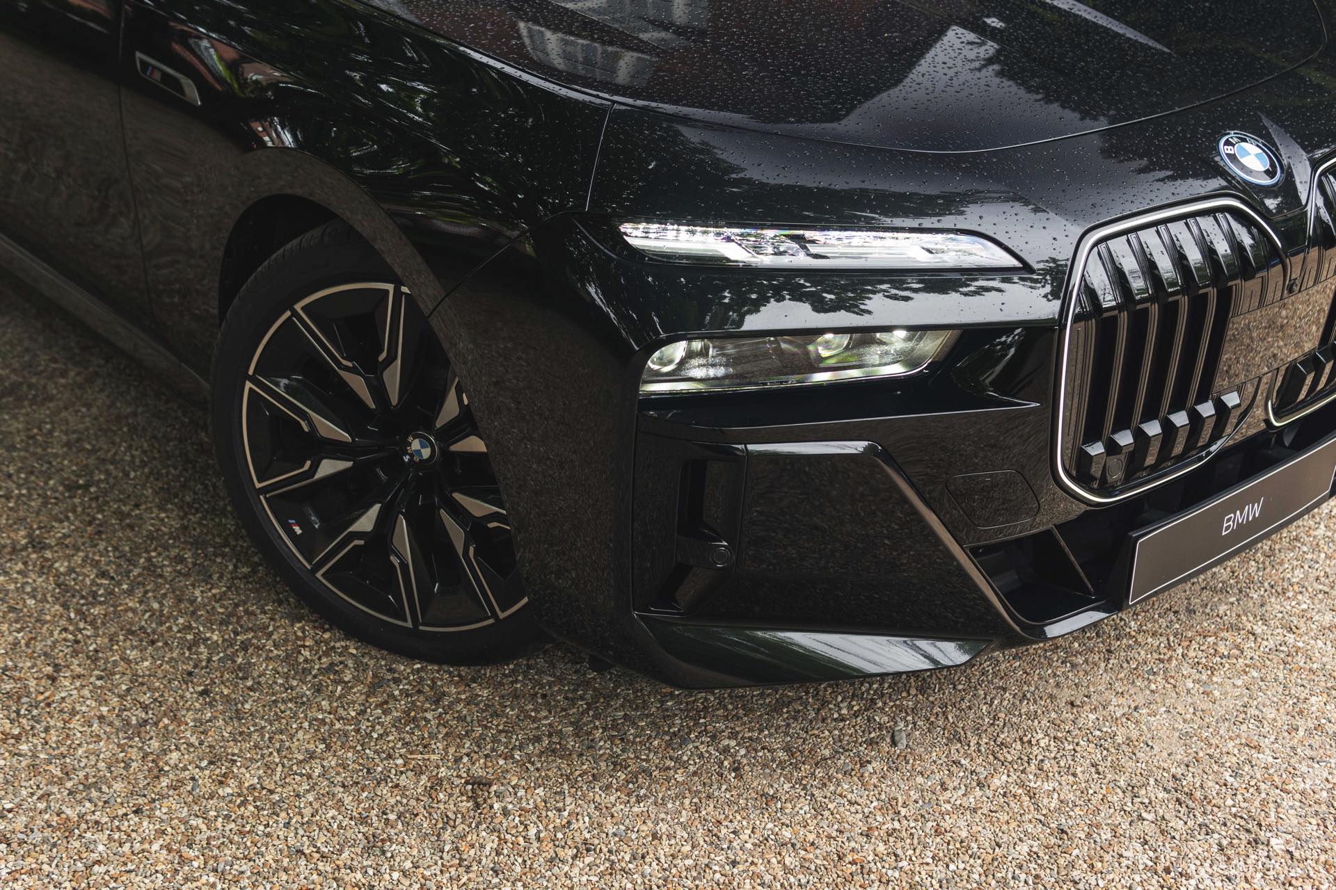 Wie der Top-7er in einer komplett schwarz gehaltenen Konfiguration aussieht, zeigen uns einige aktuelle Fotos von Andrew Barker vom britischen BMW-Händler Dick Lovett. Die Engländer haben den serienmäßig mit M Sport-Paket ausgerüsteten M760e in Saphirschwarz Metallic fotografiert, außerdem trägt er die Shadow Line mit erweiterten Umfängen und auch die Bicolor-Felgen weichen nur mit wenigen dünnen Linien vom schwarzen Look ab: