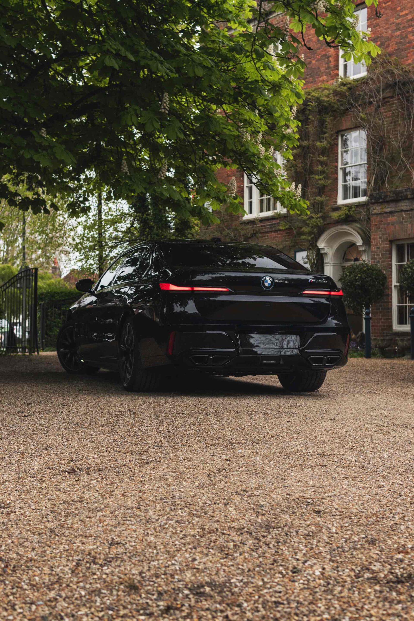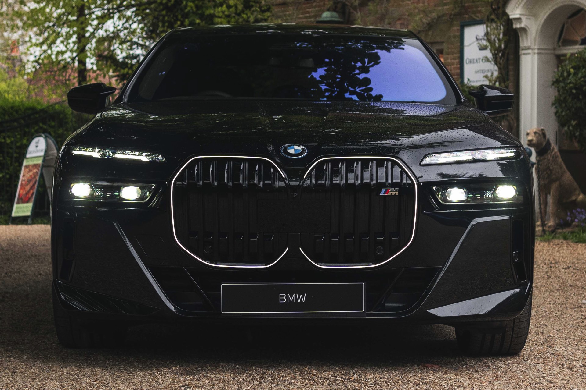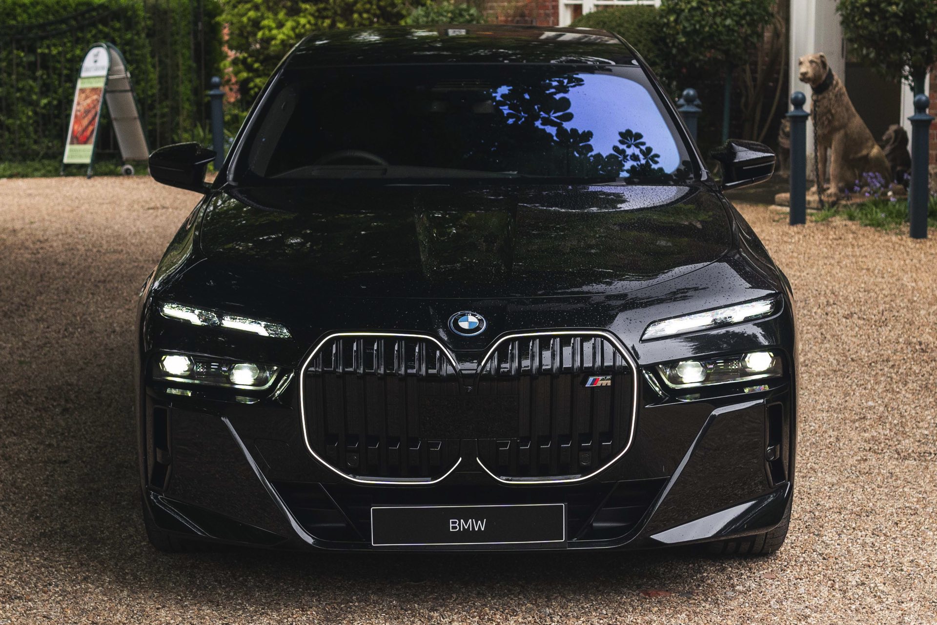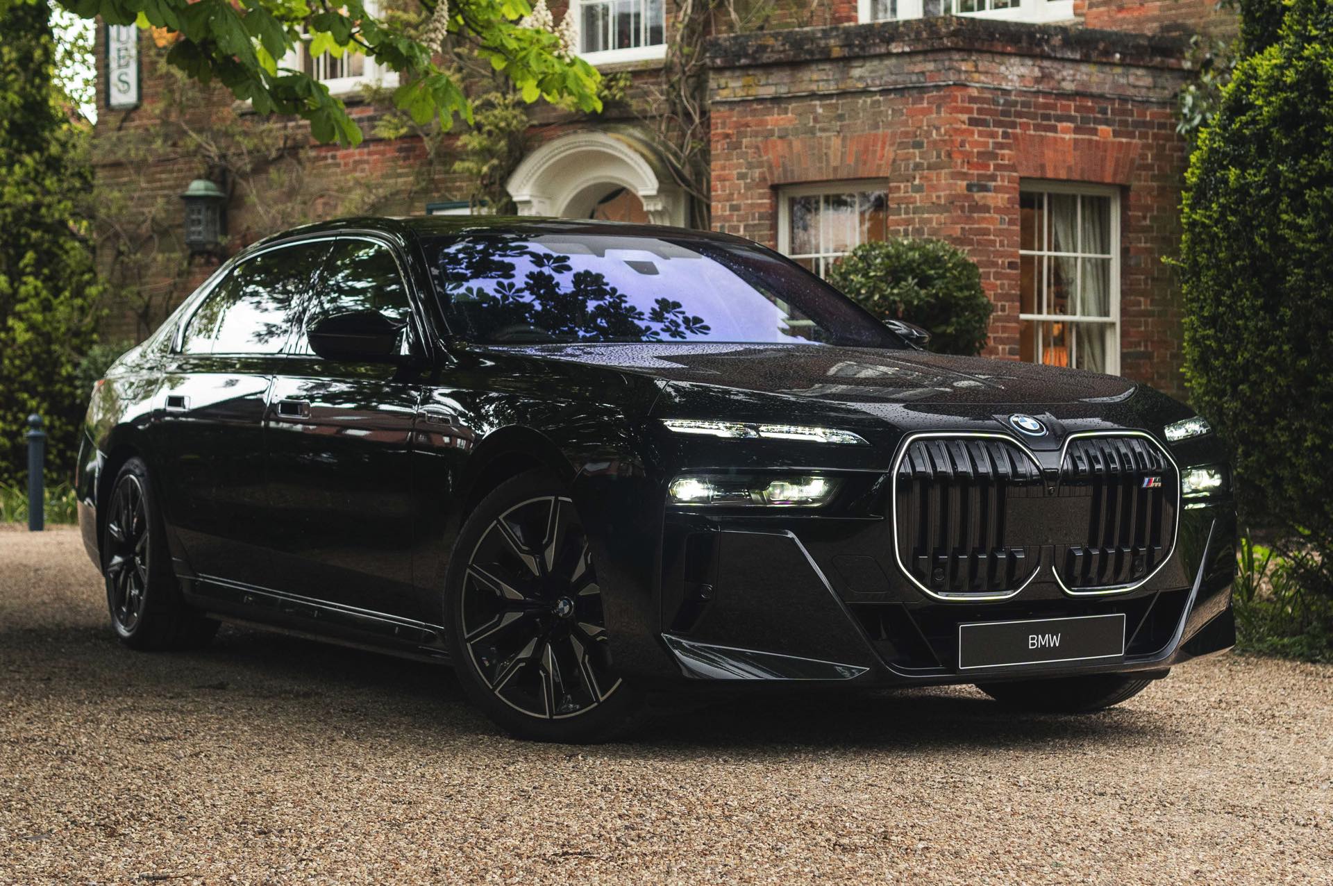 Wie der Top-7er in einer komplett schwarz gehaltenen Konfiguration aussieht, zeigen uns einige aktuelle Fotos von Andrew Barker vom britischen BMW-Händler Dick Lovett. Die Engländer haben den serienmäßig mit M Sport-Paket ausgerüsteten M760e in Saphirschwarz Metallic fotografiert, außerdem trägt er die Shadow Line mit erweiterten Umfängen und auch die Bicolor-Felgen weichen nur mit wenigen dünnen Linien vom schwarzen Look ab: