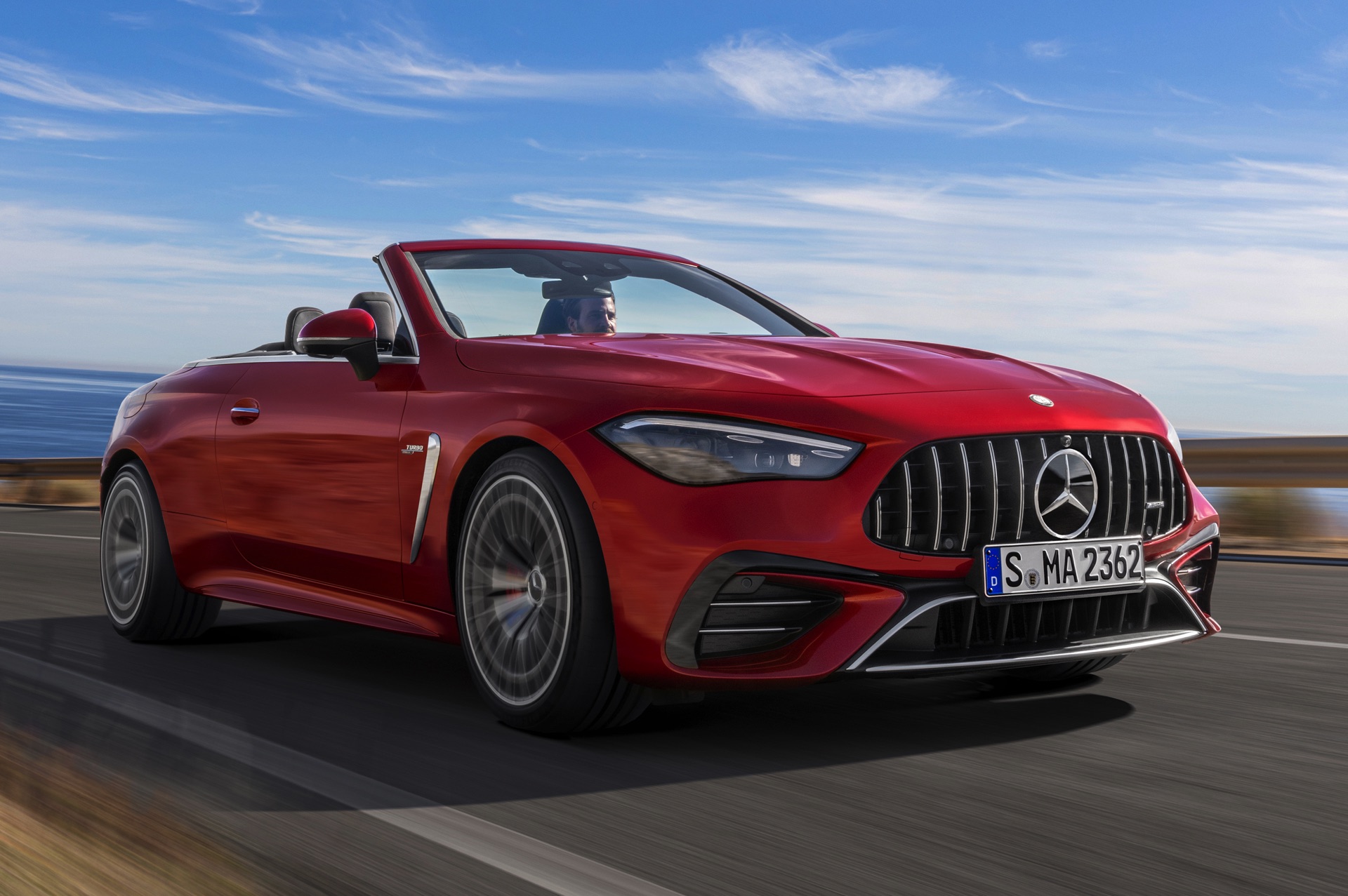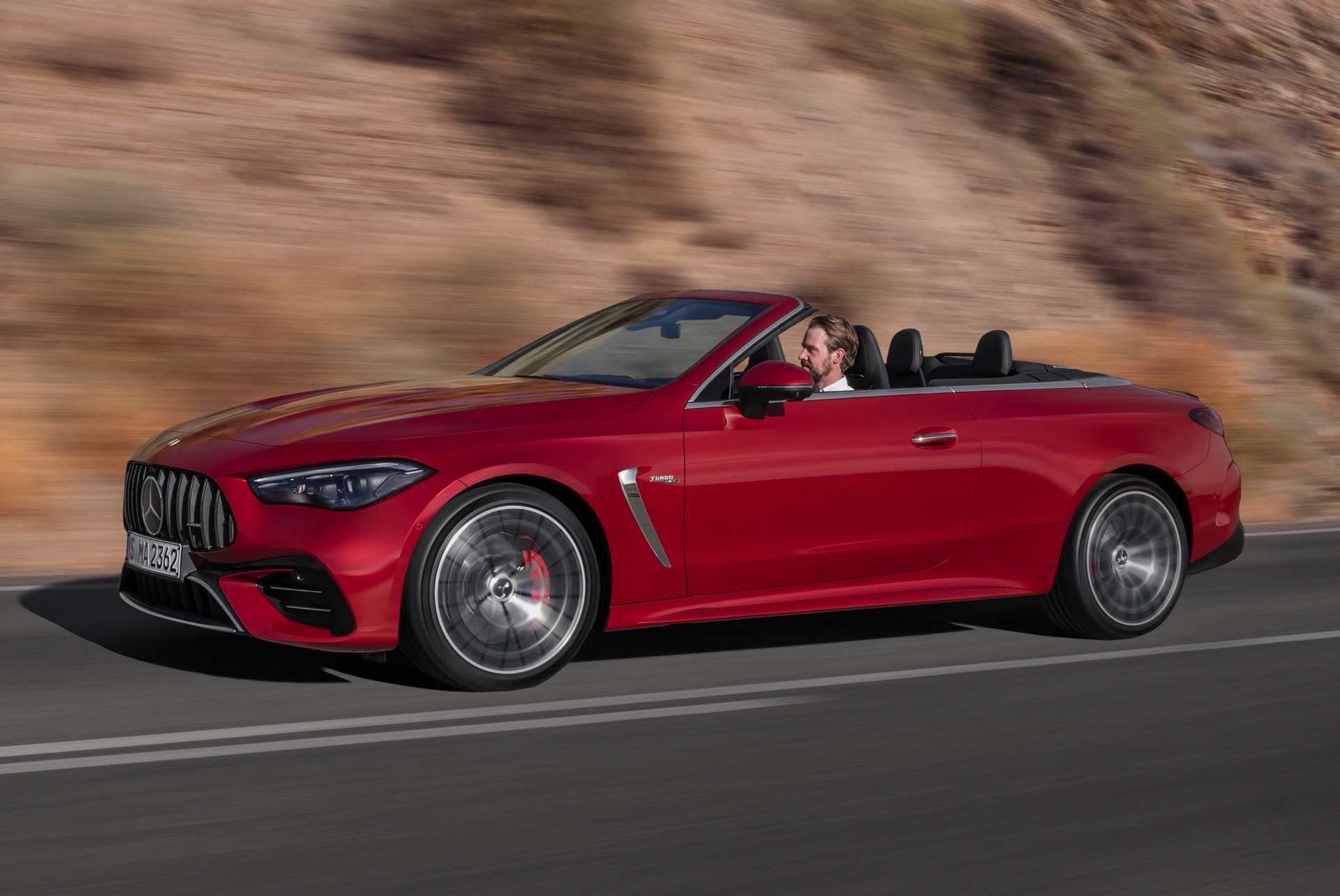Das neue Mercedes-AMG CLE 53 Cabrio (A 236) stößt genau in die Lücke zwischen BMW M4 Cabrio und M440i: Der offene CLE von AMG kommt – anders als der vielgescholtene C 63 AMG – trotz einer kleineren Zahlenkombination mit drei Litern Hubraum und sechs Zylindern in Reihe, womit er prinzipiell auf das gleiche Motorenkonzept wie seine beiden Rivalen aus München setzt. Während die Bayern bei der Aufladung “nur” auf klassische Abgas-Turbolader setzen, verfügt der AMG zusätzlich über einen elektrisch angetriebenen und daher jederzeit extrem spontan ansprechenden Verdichter.