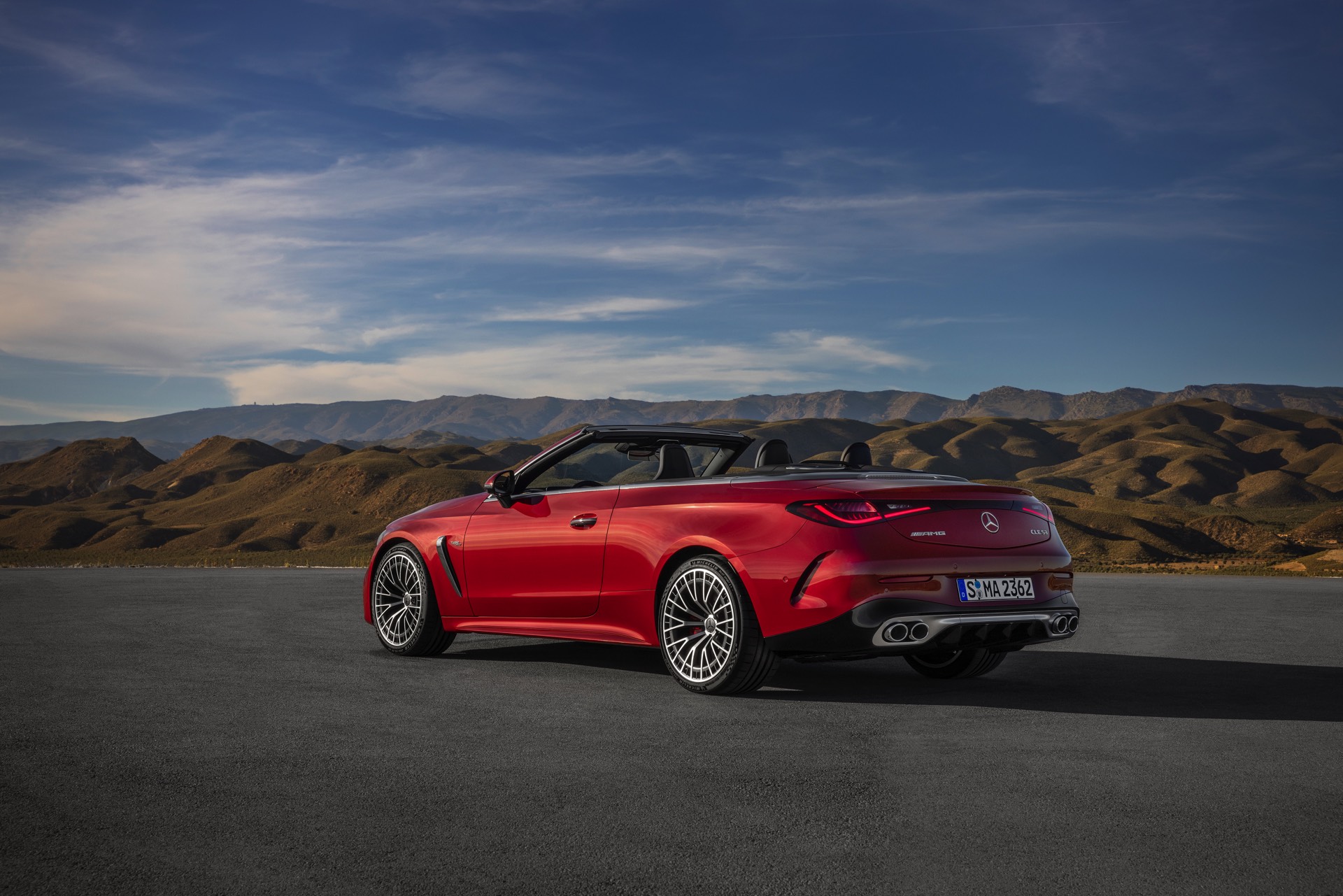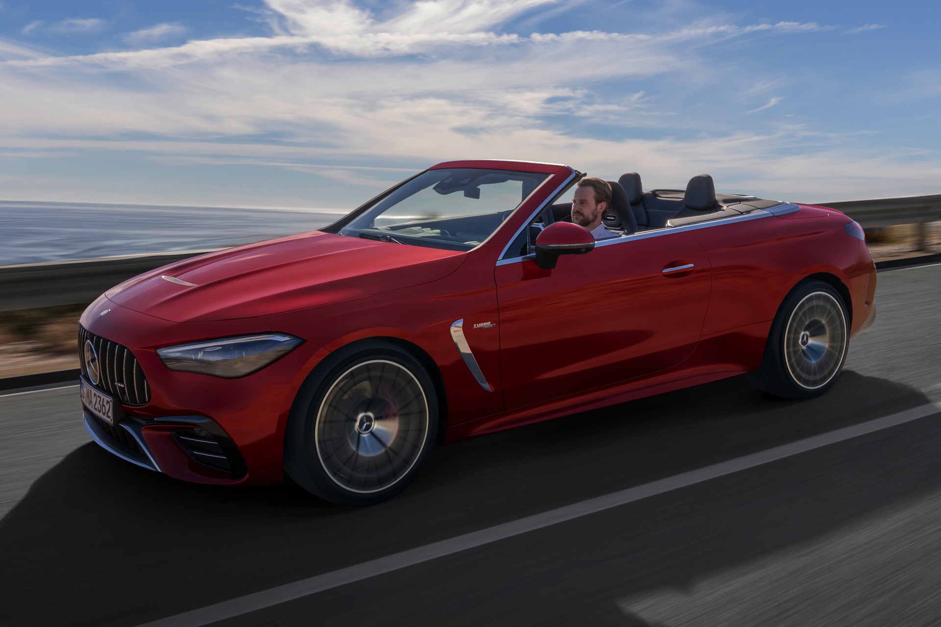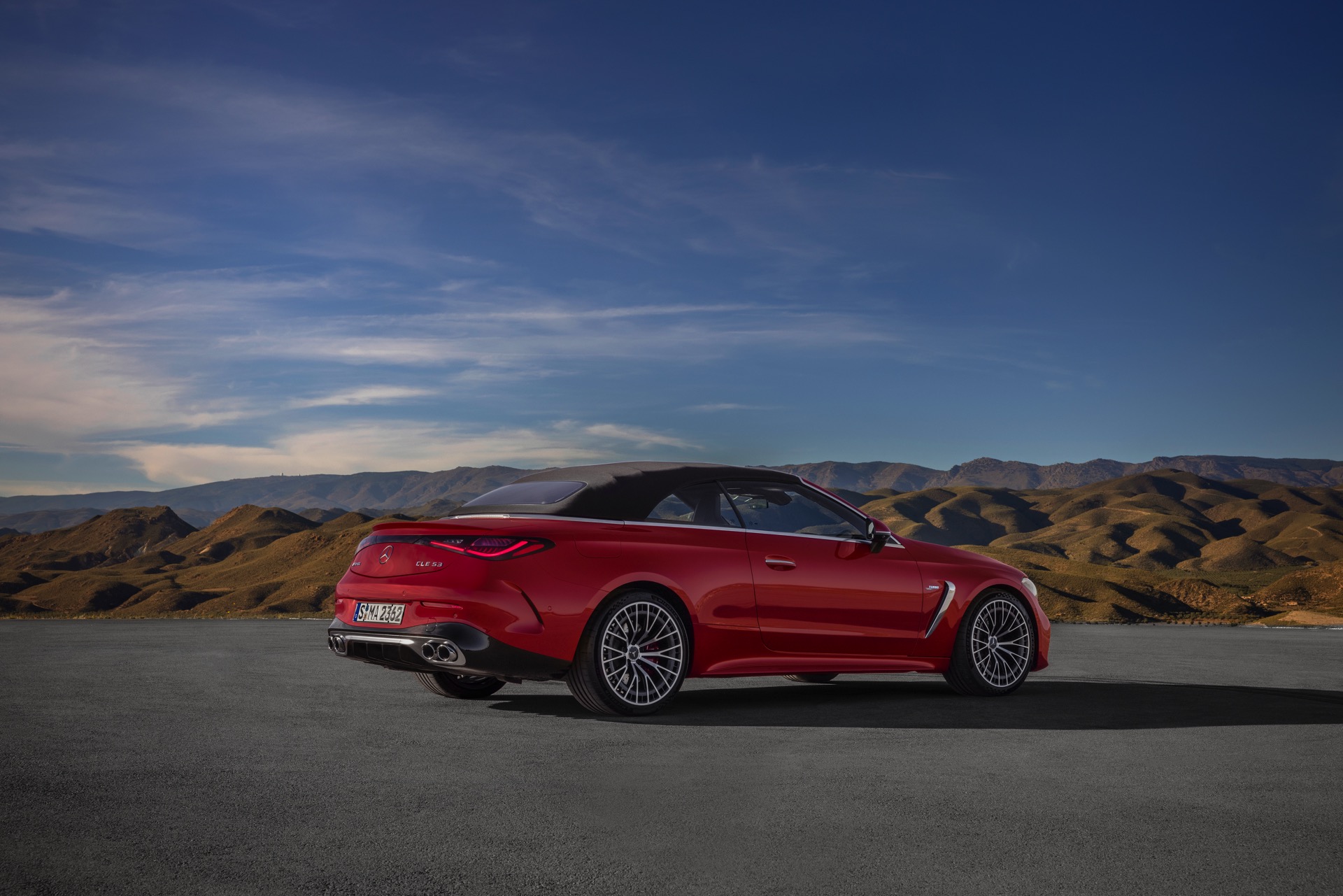 Mit 449 PS und 560 Newtonmeter Drehmoment ist der CLE 53 ausgesprochen souverän motorisiert, im Overboost stehen kurzzeitig sogar 600 Newtonmeter zur Verfügung. Für Souveränität stehen auch die Fahrleistungen, denn bereits im Serien-Zustand gelingt der Sprint von 0 auf 100 in 4,4 Sekunden – mit dem optionalen AMG Dynamic Plus Paket samt Race Start genannter Launch Control ist der Standardsprint sogar in 4,2 Sekunden zu schaffen. Gleichzeitig klettert das elektronische Vmax-Limit von 250 auf 270 km/h. Mit allen genannten Werten rangiert das Mercedes-AMG CLE 53 Cabrio zwischen den beiden M-Varianten der BMW 4er-Reihe, die wahlweise etwas langsamer oder ein gutes Stück schneller sind.