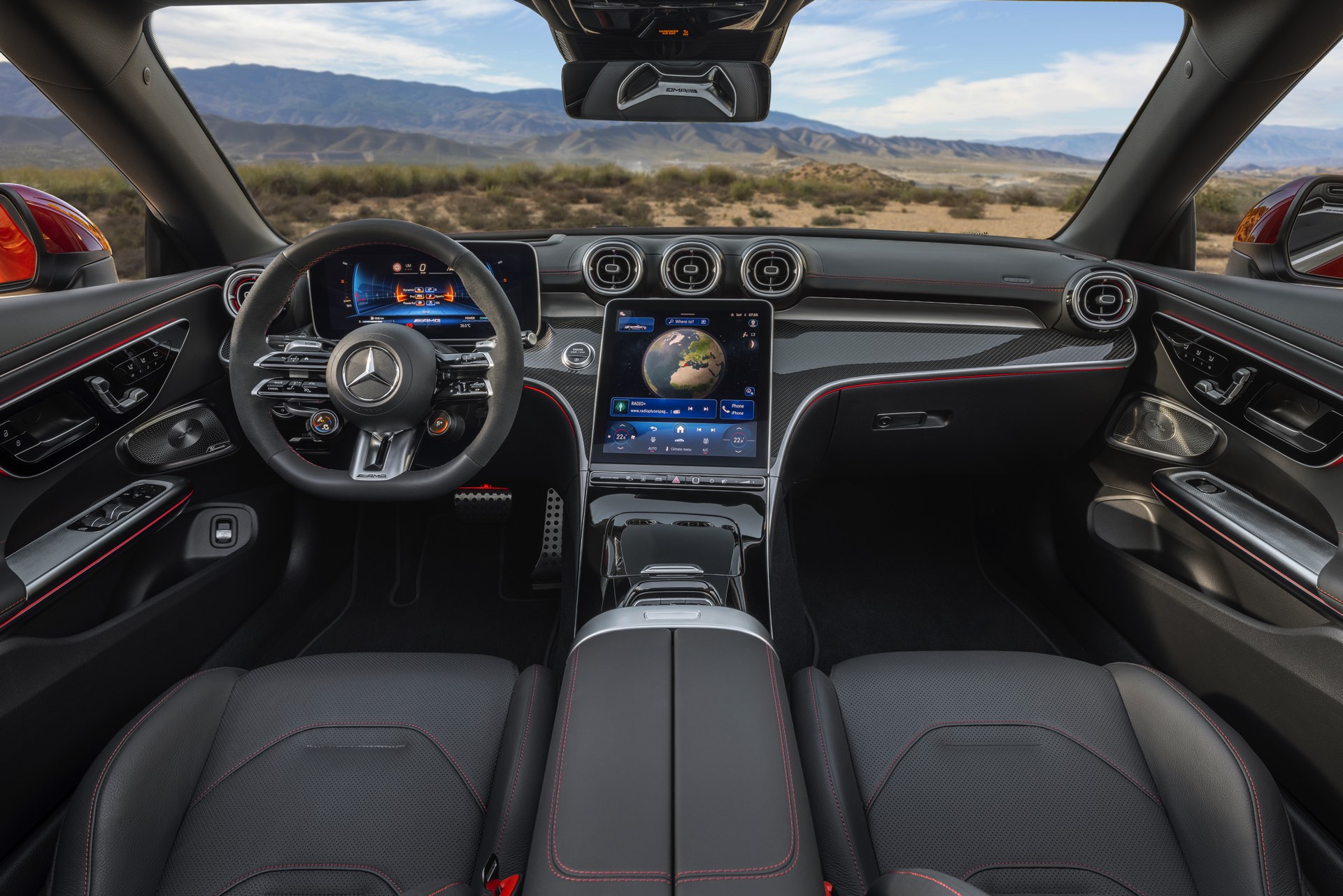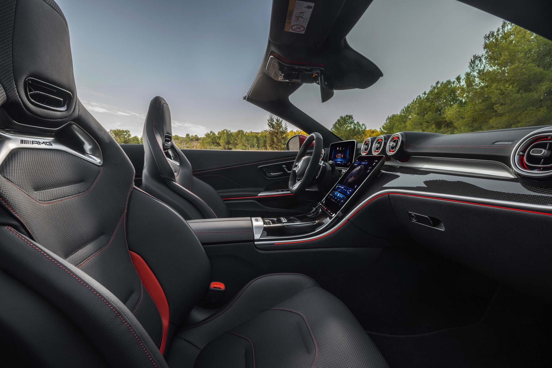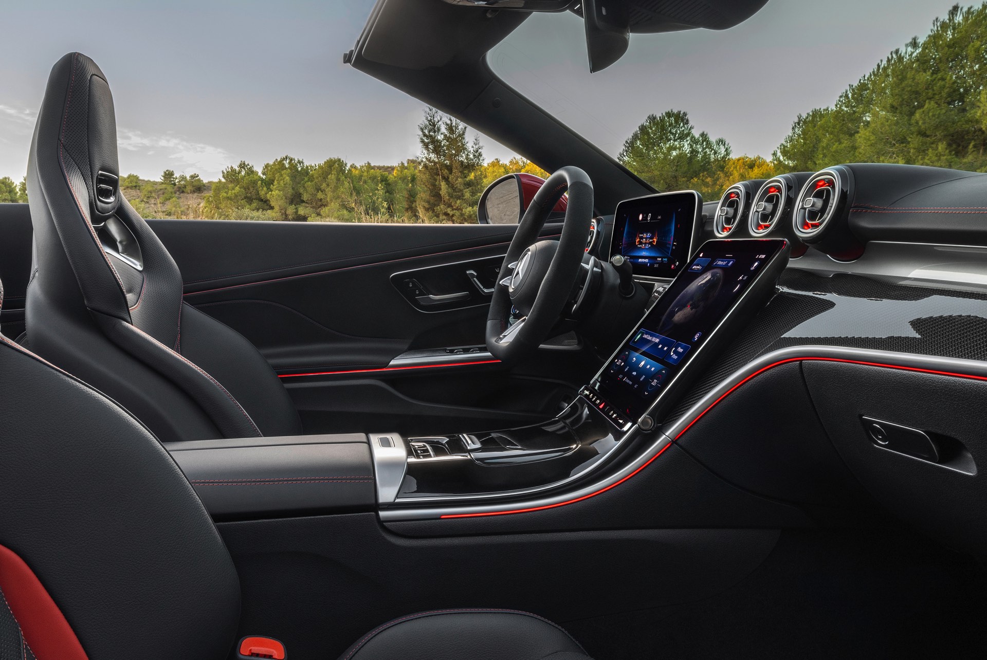 Features wie der Aircap genannte Ausfahr-Spoiler oberhalb der Frontscheibe zeigen, dass der Mercedes-AMG CLE 53 ganz markentypisch auch dem Komfort verpflichtet ist. Andere Wohlfühl-Funktionen wie der Airscarf genannte Nackenwärmer verstehen sich im Segment der Premium-Cabrios heute ebenso von selbst wie eine Vielzahl von Assistenzsystemen.