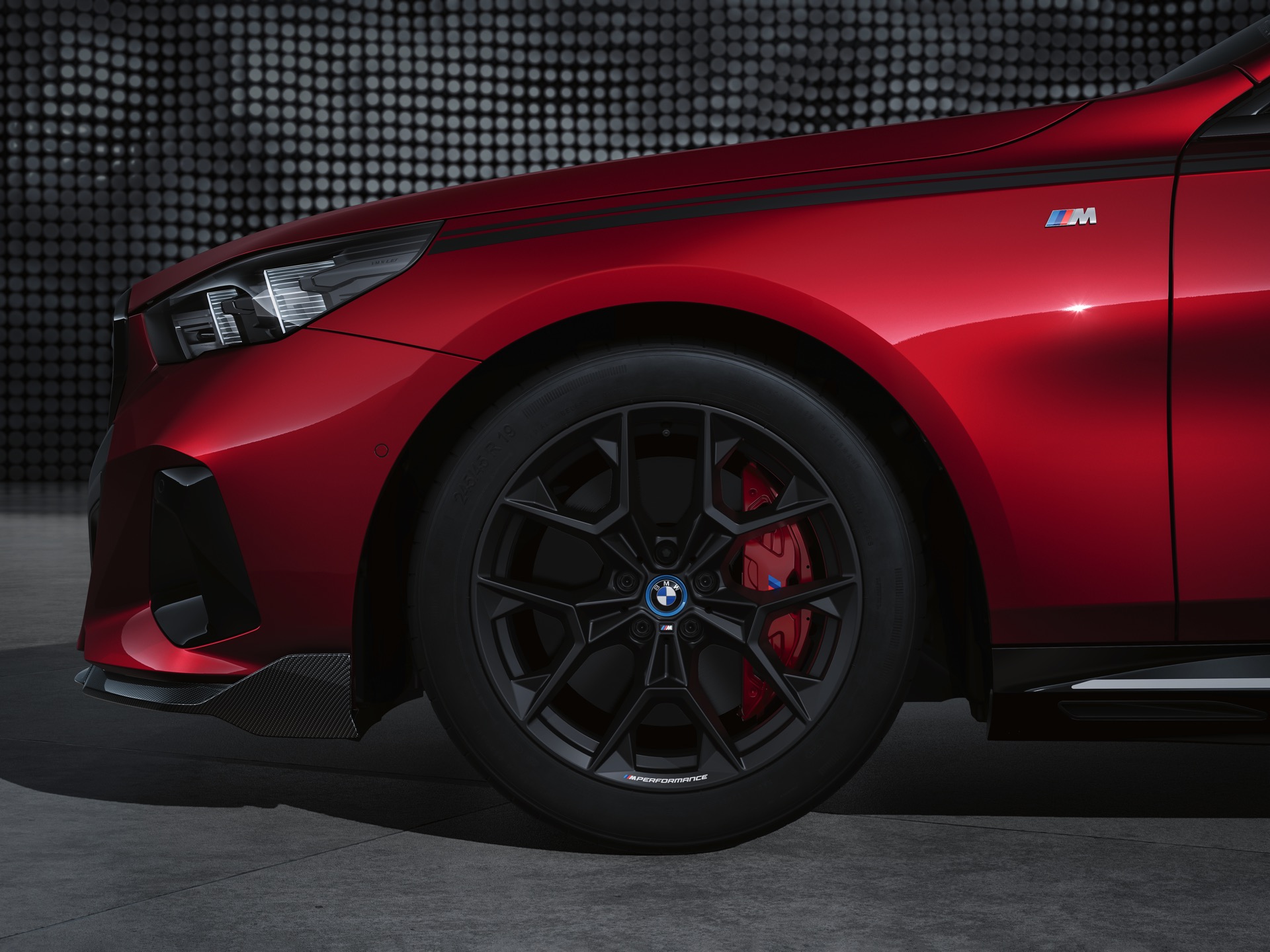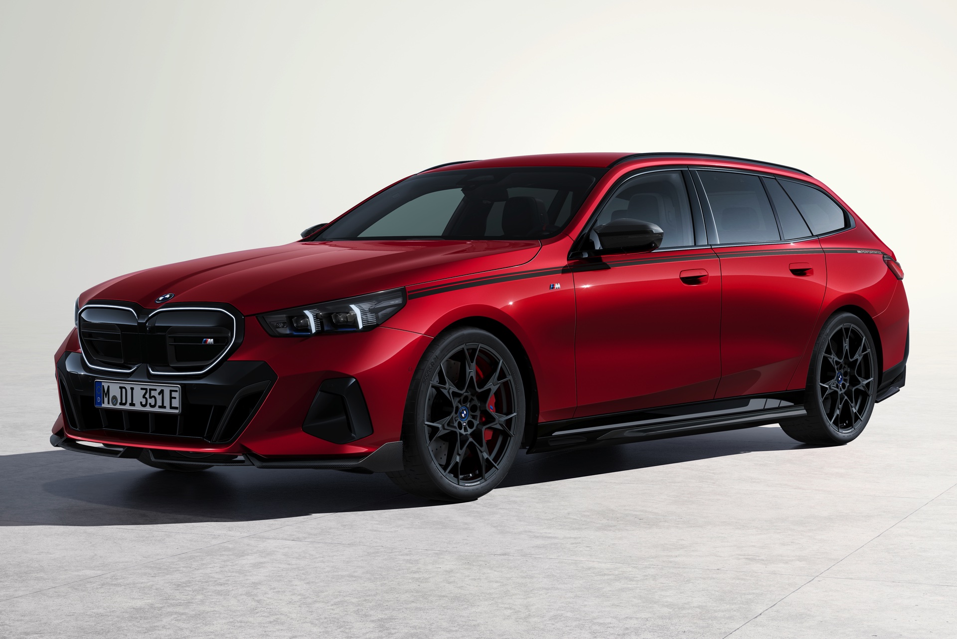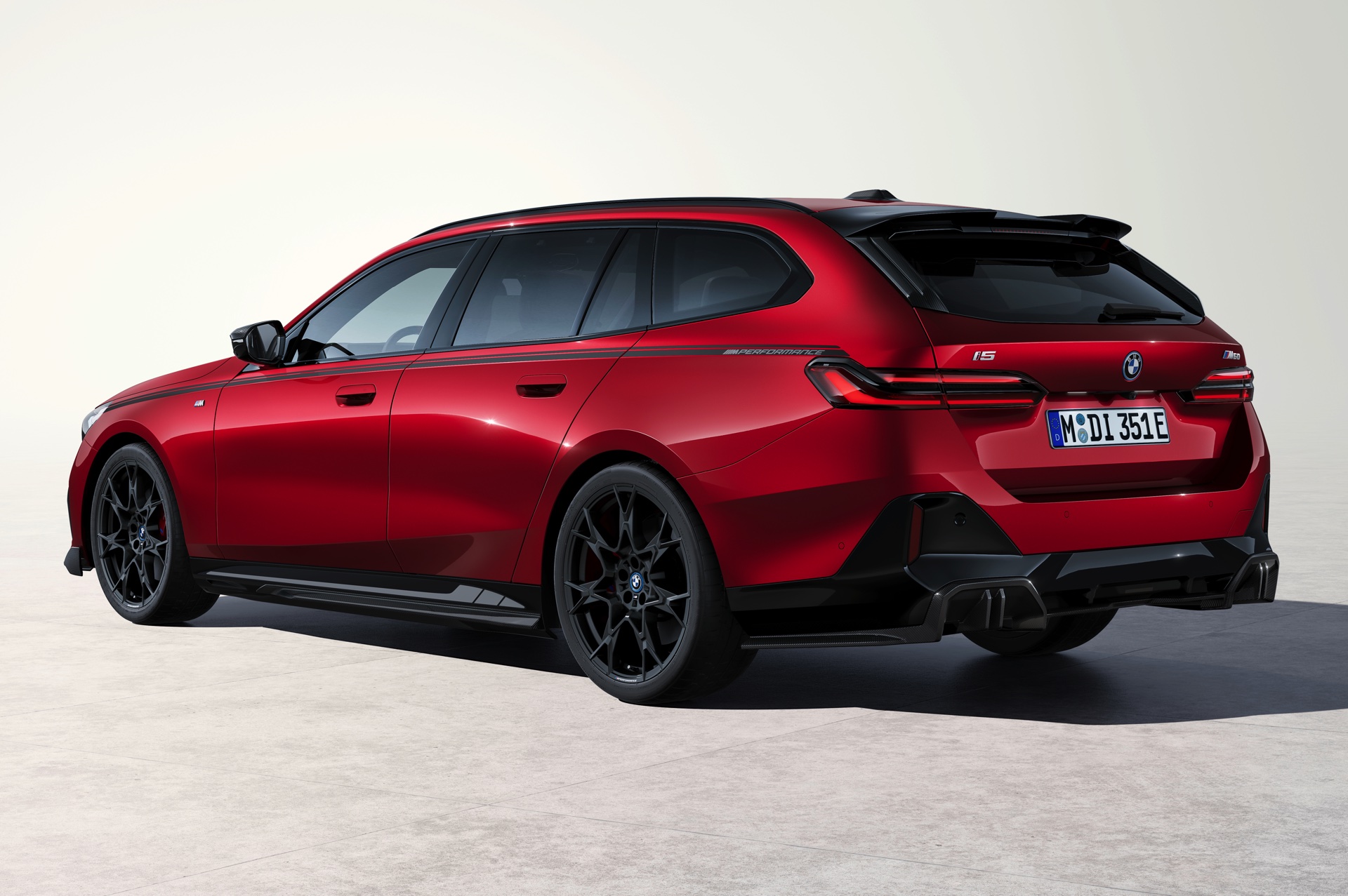 In leuchtendem Fire Red und mit zahlreichen Tuning-Teilen aus dem Programm von BMW M Performance präsentiert sich der neue BMW i5 M60 Touring auf einer Serie neuer Studio-Fotos. Die Aufnahmen zeigen die Elektro-Variante des brandneuen BMW 5er Touring (G61), der in wenigen Wochen seinen Marktstart feiert und nicht nur von europäischen Kunden mit Spannung erwartet wird: Anders als seine Vorgänger wird der Edel-Kombi auch wieder in den USA und Kanada angeboten, zumindest in Form des extrascharfen BMW M5 Touring (G99).