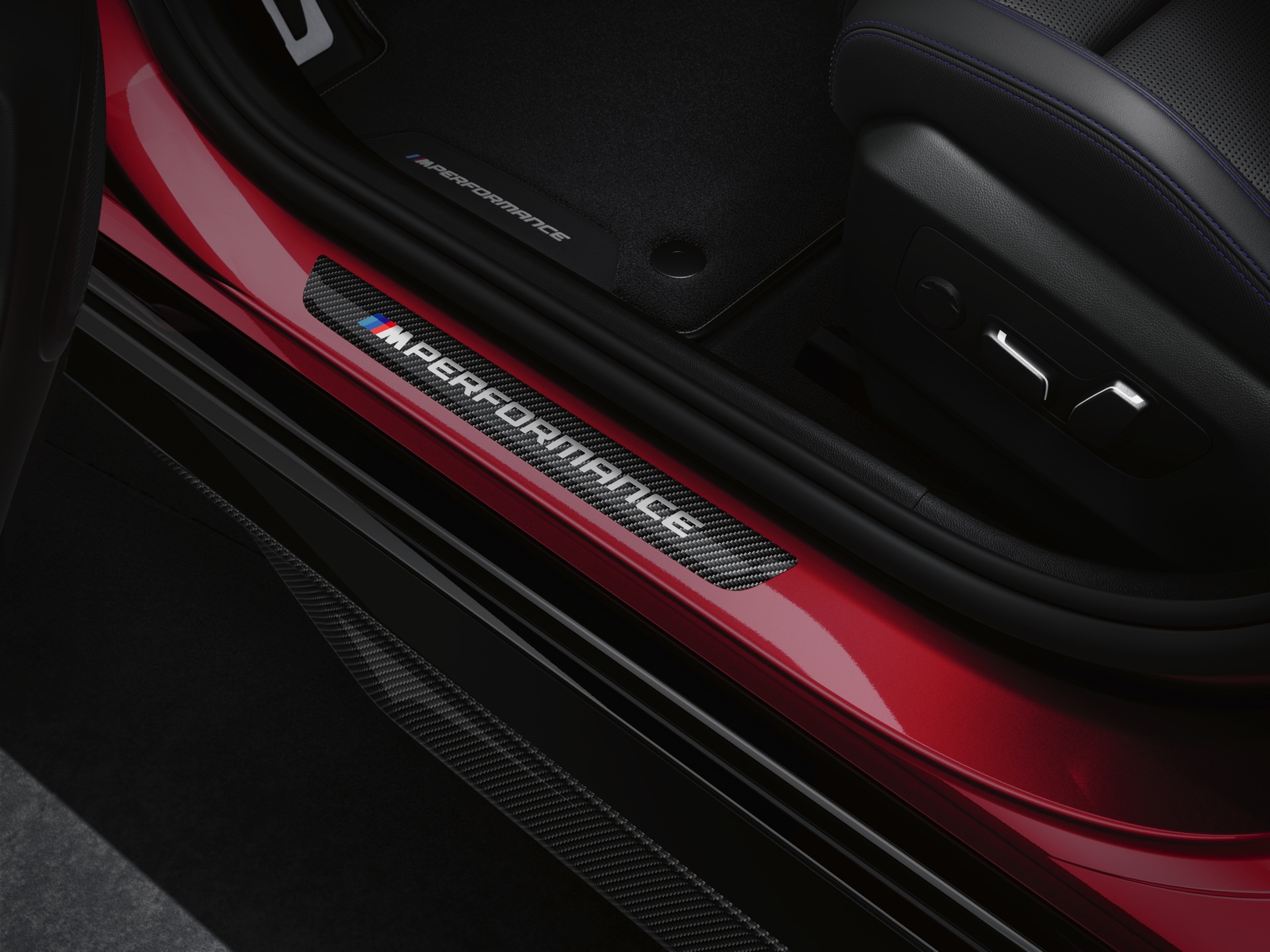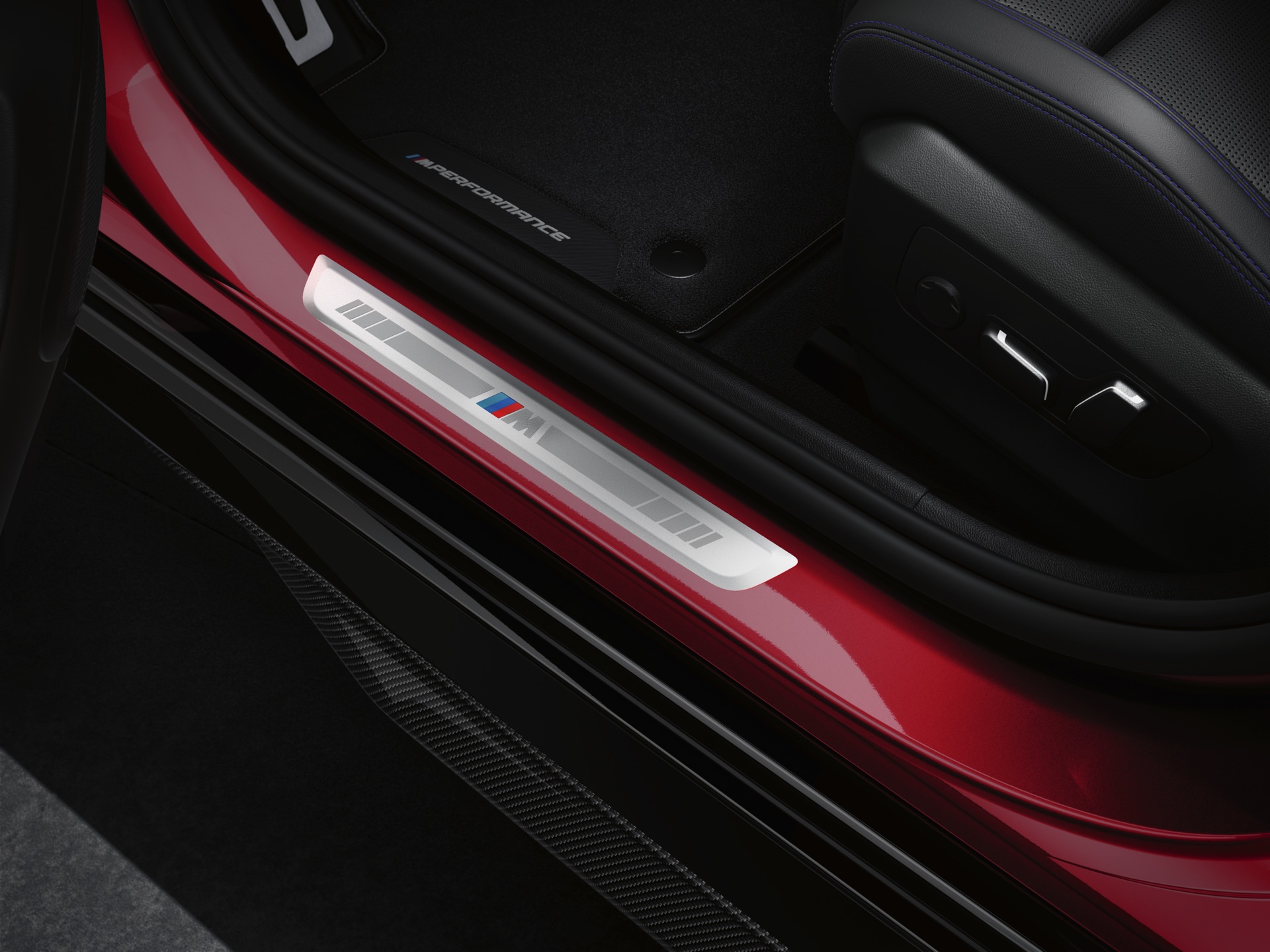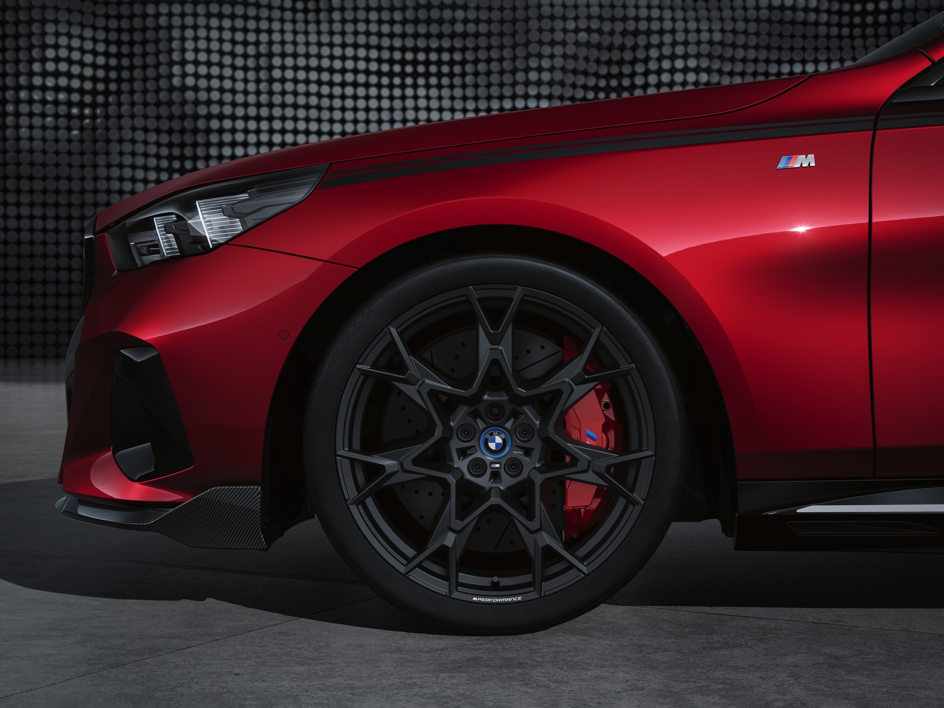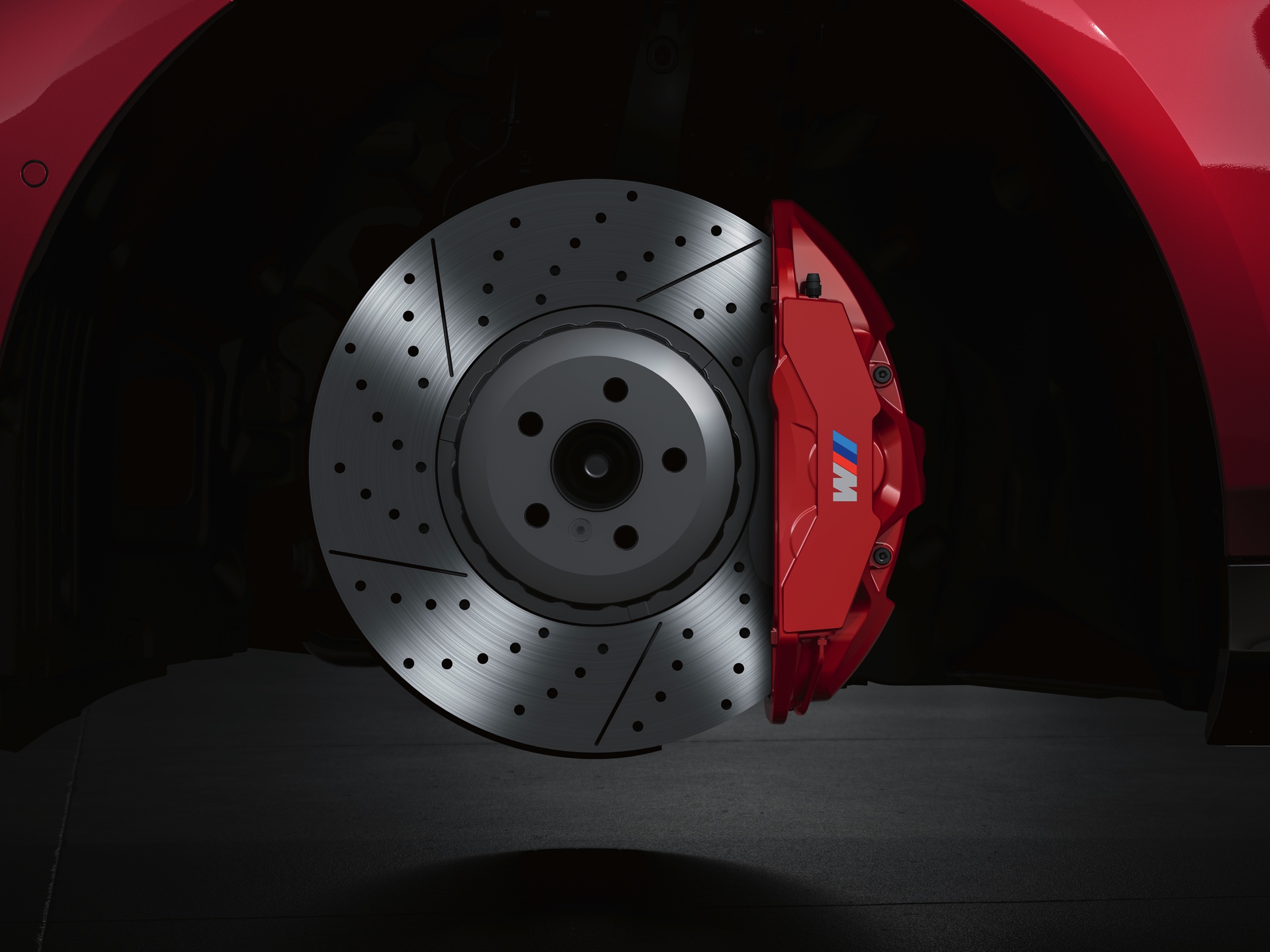 Wer sich nicht auf Optik und Aerodynamik beschränken will, kann zur 20 Zoll-Bremsanlage von BMW M Performance greifen. Die Sportbremse richtet sich an besonders dynamische Fahrer, die auch mehrere sehr starke Verzögerungen in direkter Folge ohne Einschränkungen erledigen können wollen. Sie kommt mit innenbelüfteten und gelochten Leichtbau-Bremsscheiben sowie rot lackiertem Sechskolben-Aluminium-Festsattel vorn und Einkolben-Faustsattel hinten.