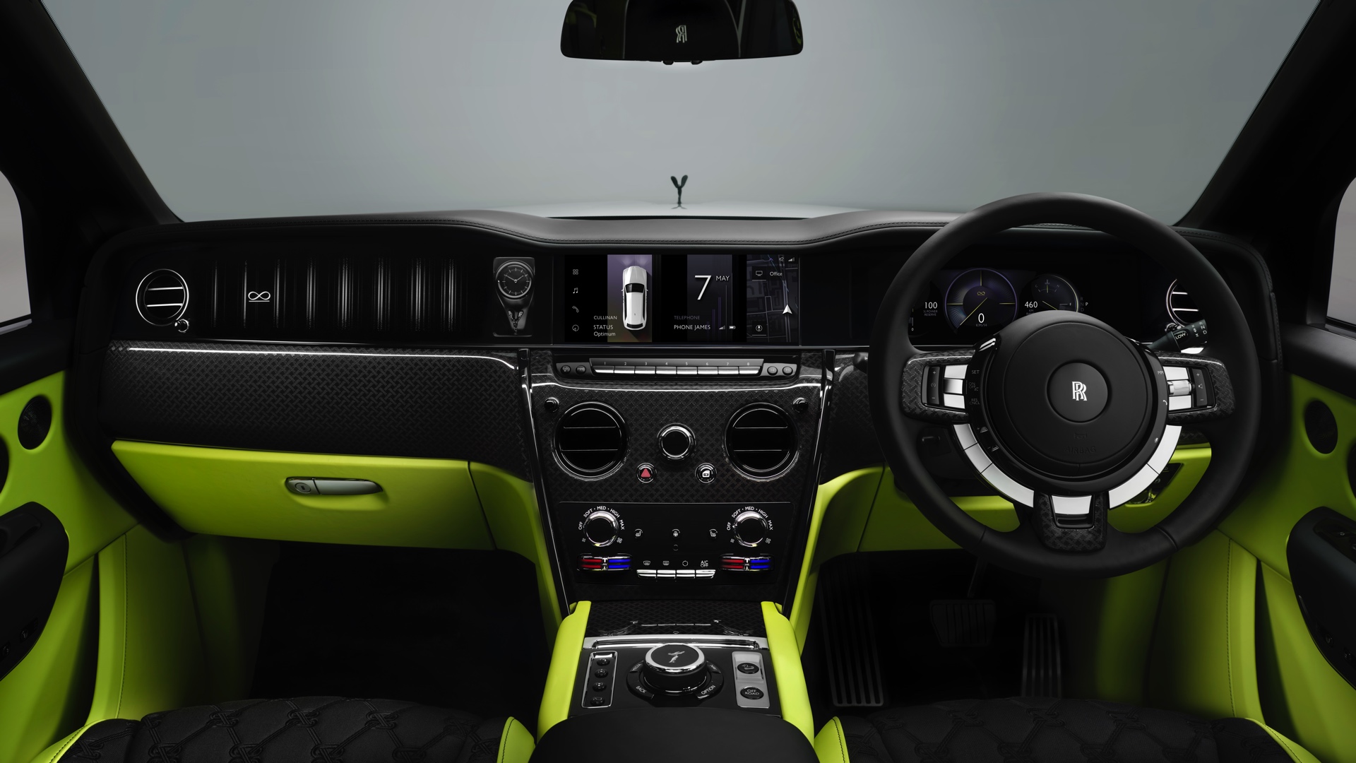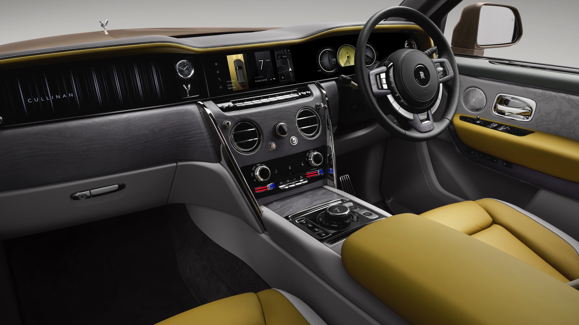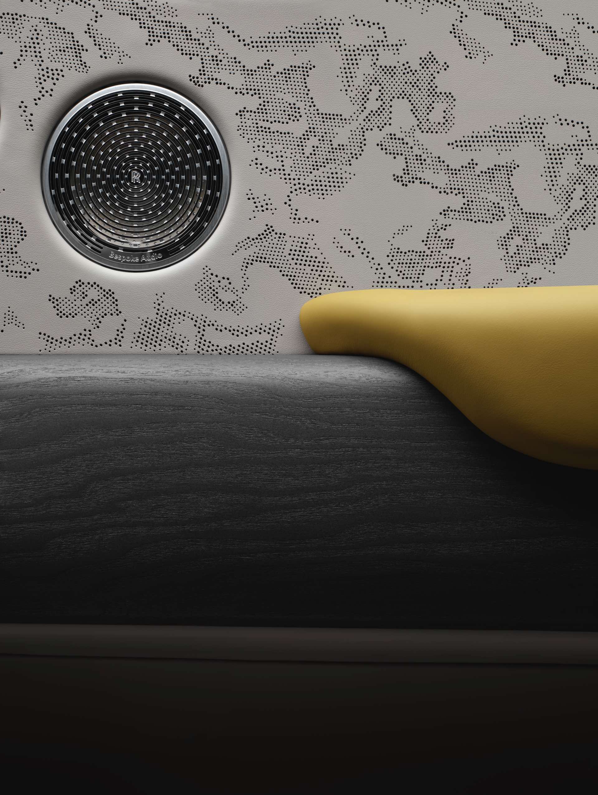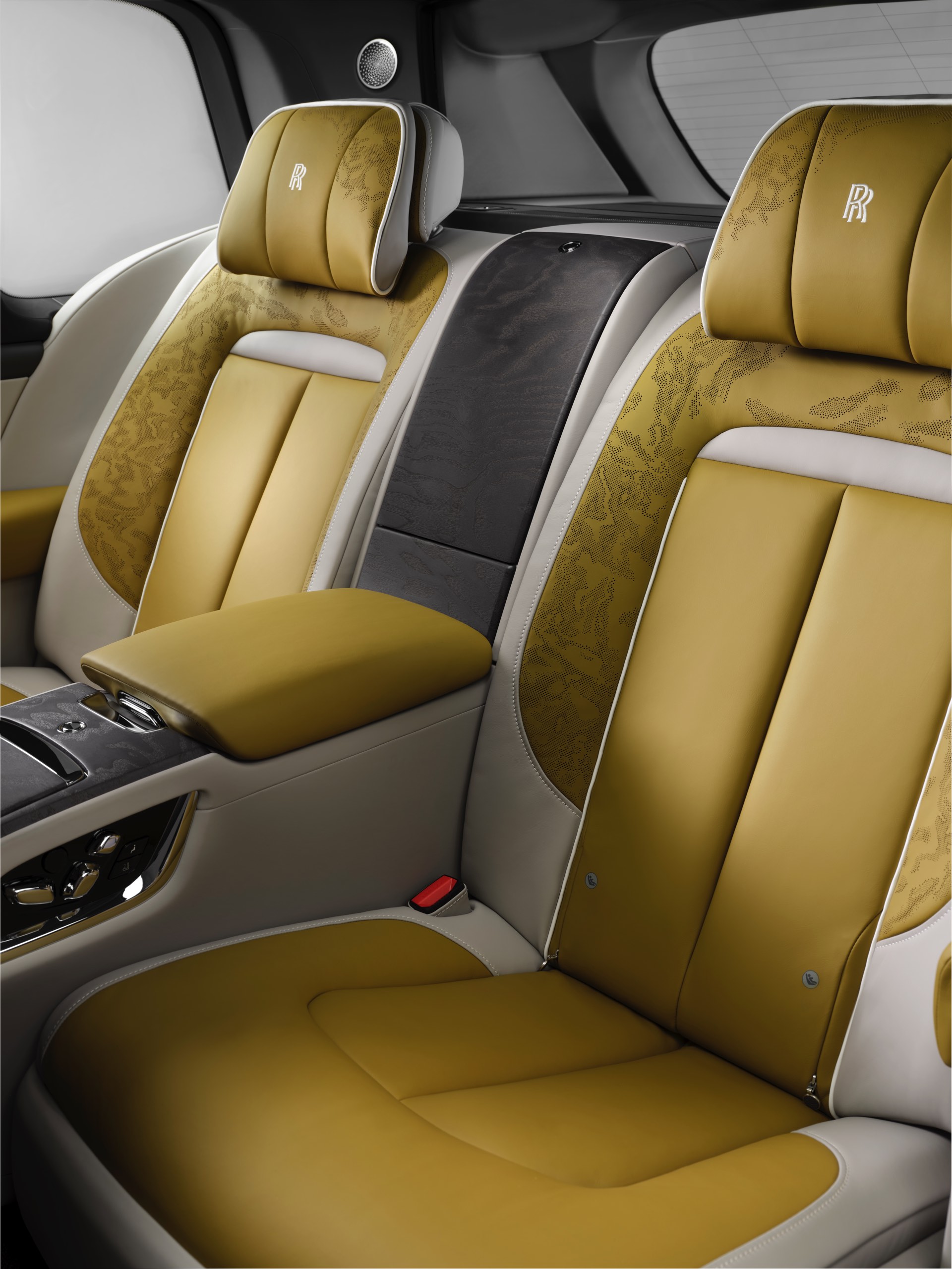Mindestens so wichtig wie das Exterieur ist vielen Rolls-Royce-Kunden der Innenraum. Er versteht sich als ruhige Wohlfühl-Oase in einer hektischen Umgebung und zeigt mit einer Vielzahl von Details, dass für die gut betuchte Kundschaft so gut wie kein Wunsch unerfüllbar ist. Pflanzliche Materialien und feinste Verarbeitung werden mit neuen Akzent-Optionen kombiniert, darunter eine unglaubliche 107.000 Muster umfassende Auswahl von Perforationen für die edlen Sitze.