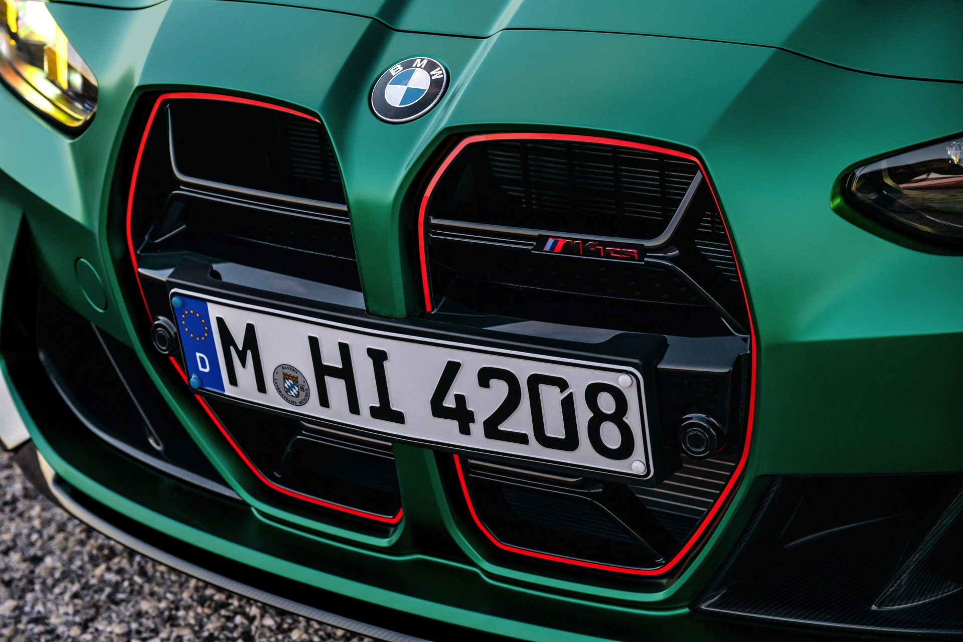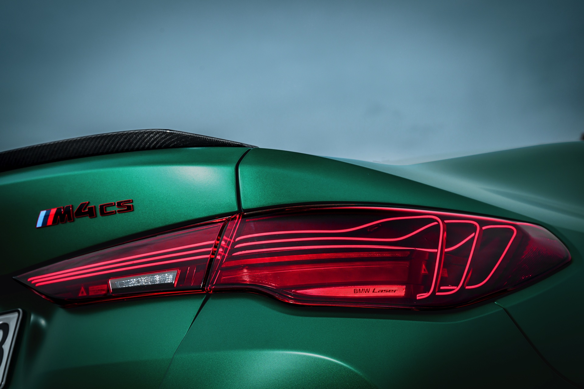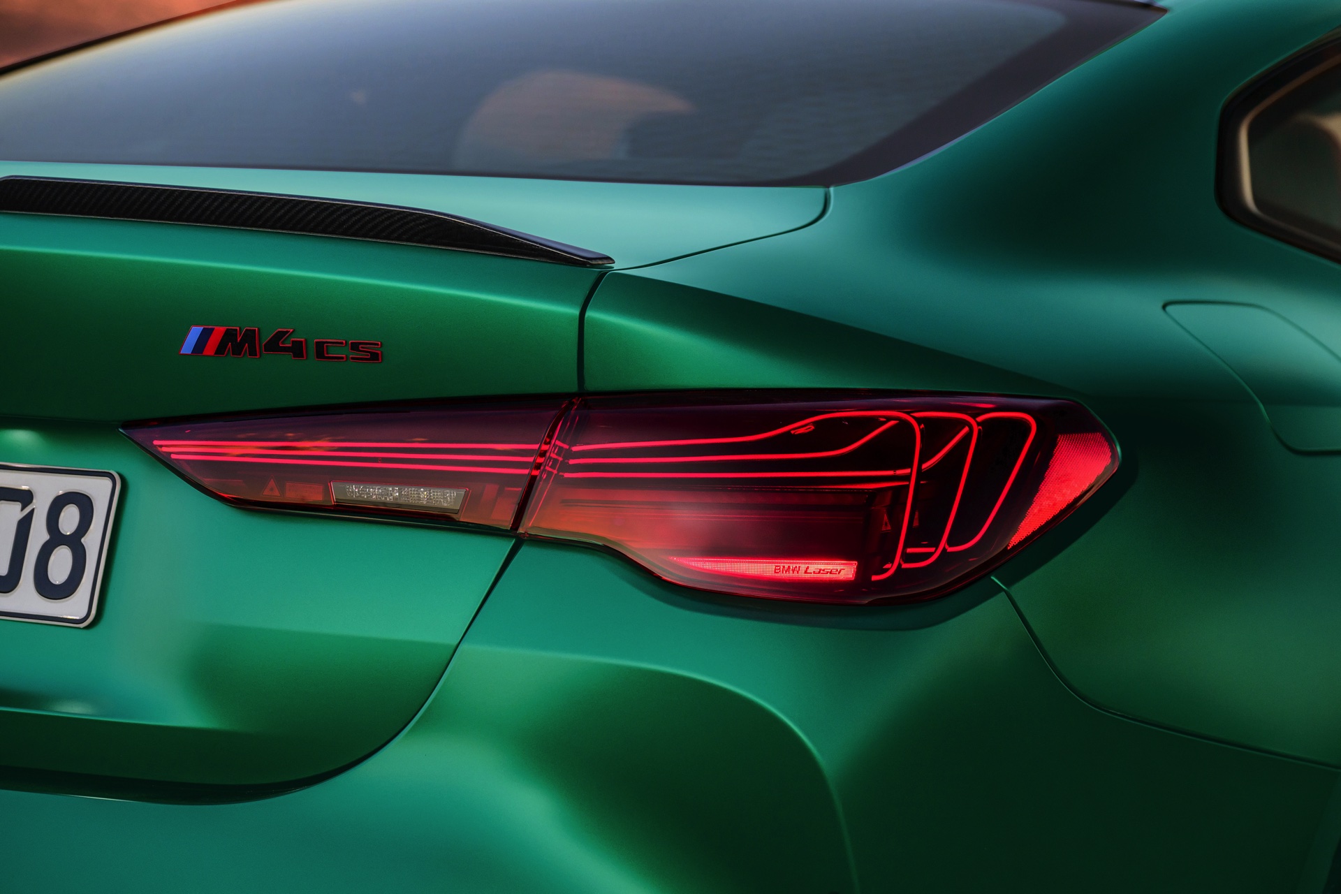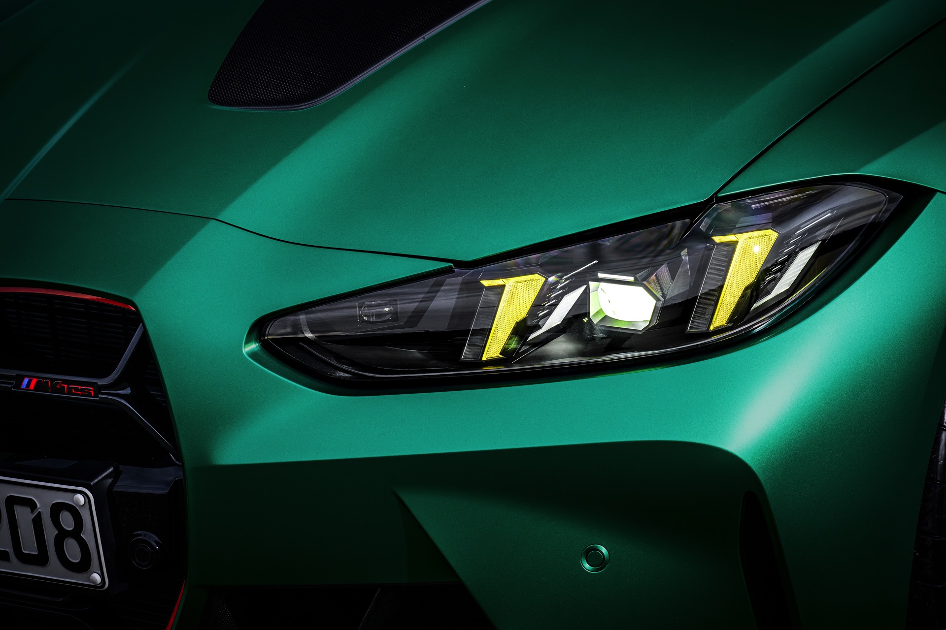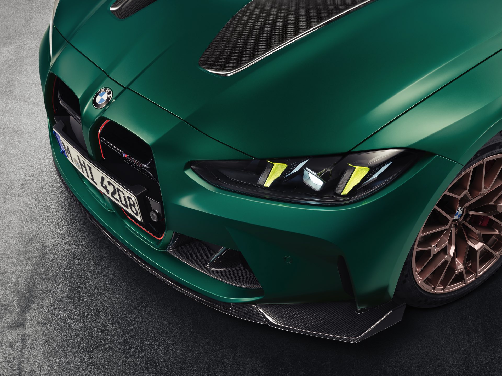 Im Vergleich zum regulären M4 Competition mit M xDrive bietet der BMW M4 CS nicht nur 20 zusätzliche Pferdestärken, sondern auch eine schärfere Fahrwerks-Abstimmung und ein mit viel Carbon um 20 Kilogramm reduziertes Gewicht. Zu den optischen Highlights zählen das gelbe Tagfahrlicht, die zum Teil in Sicht-Carbon ausgeführte Motorhaube, die von M3 CS und M4 CSL bekannte Niere mit nur drei horizontalen Streben und natürlich die exklusiven Farben: Als Weltpremiere debütiert Frozen Isle of Man Green auf dem BMW M4 CS, außerdem stehen Riviera Blau, Brooklyn Grey und Saphirschwarz zur Wahl. Am Heck trägt der M4 CS die seit dem Facelift für alle 4er und M4 erhältlichen, vormals aber dem M4 CSL vorbehaltenen Rückleuchten mit Laser-Technik und filigranen Lichtleiterbahnen. "