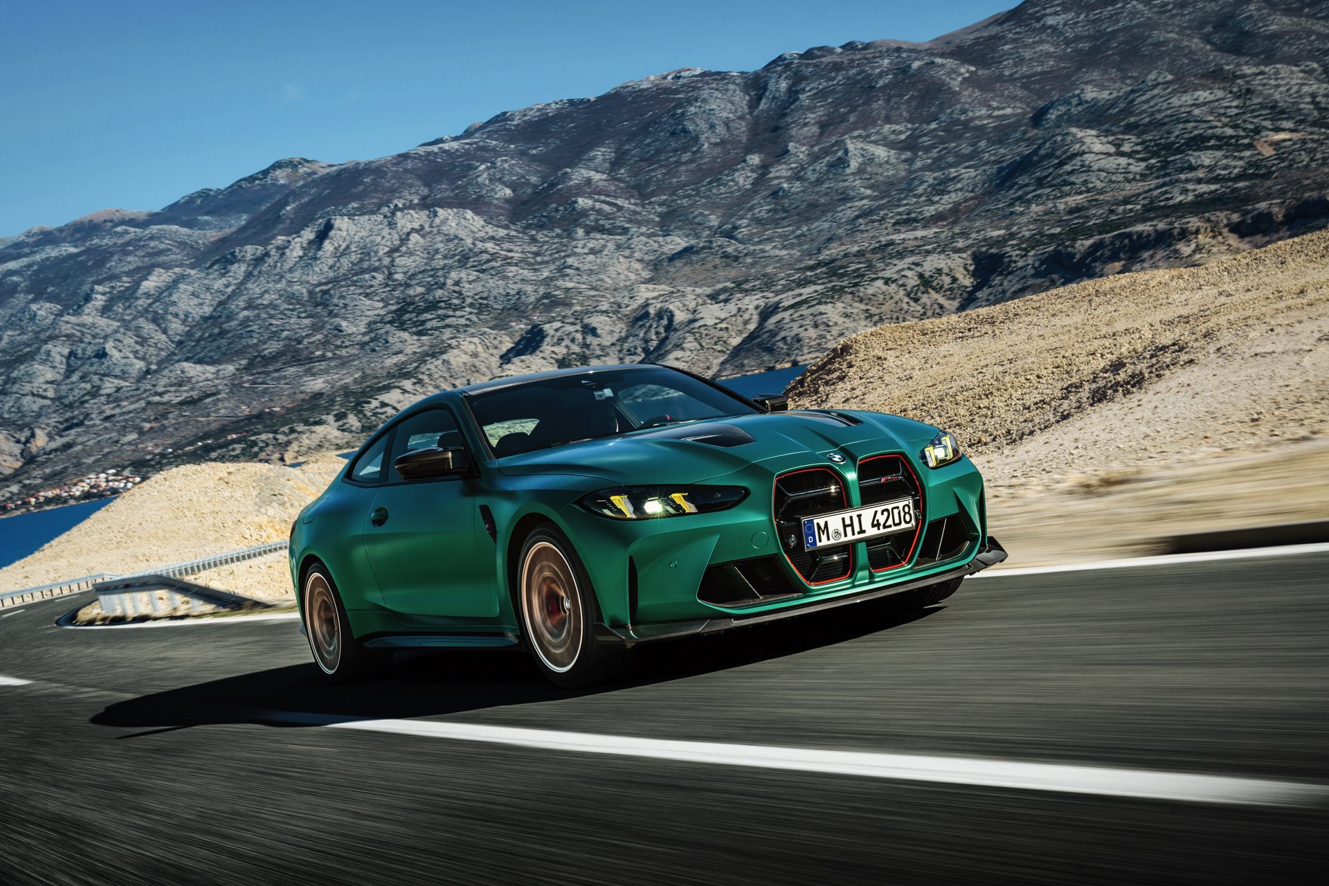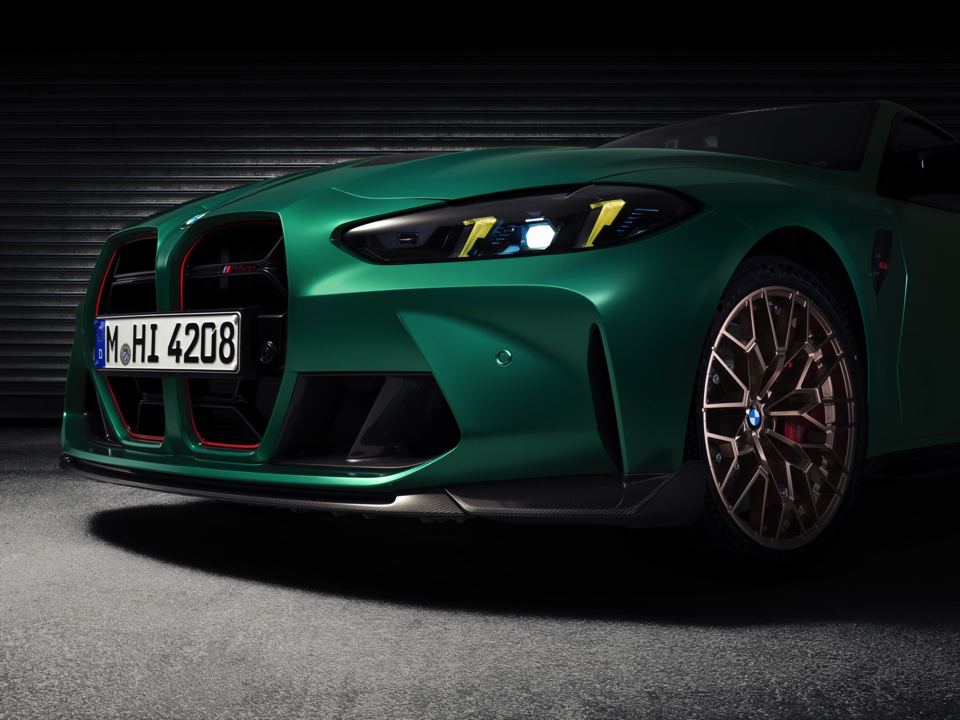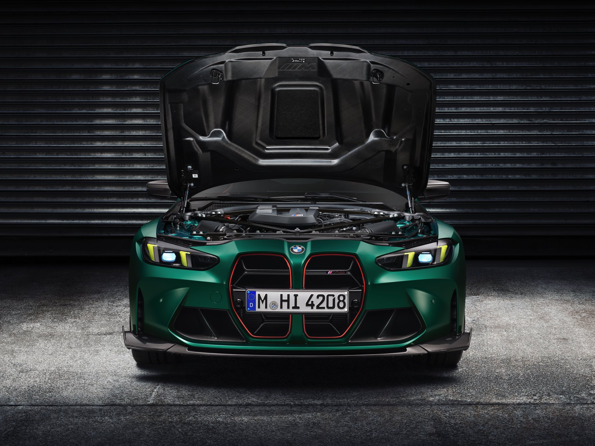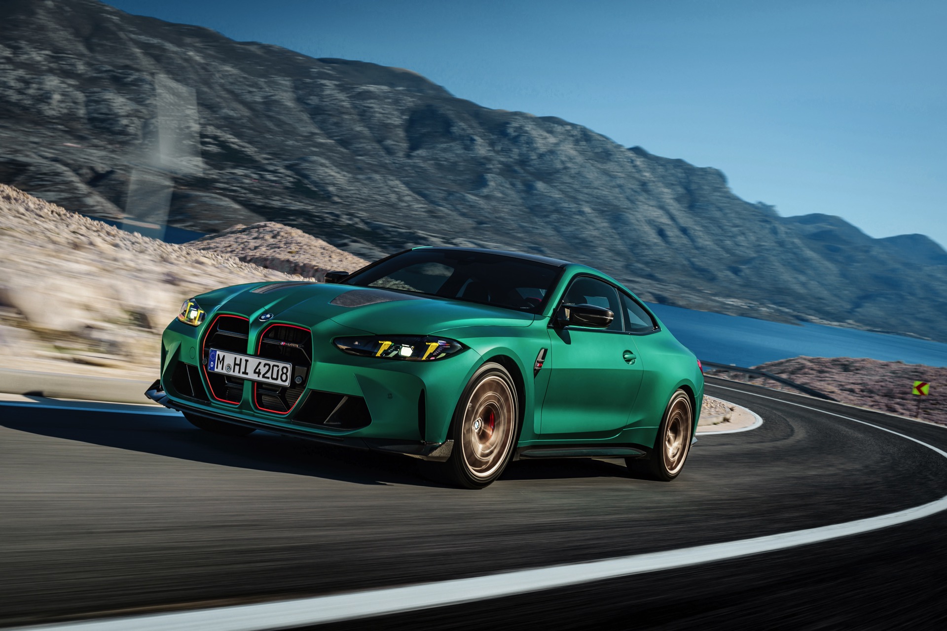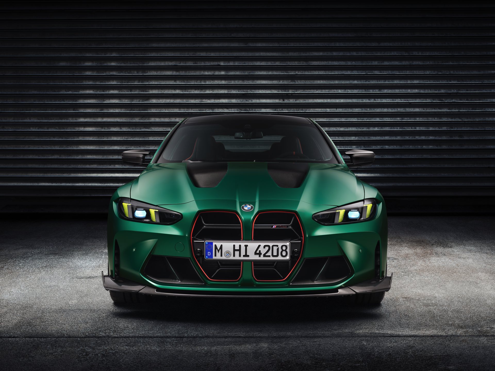 Im Vergleich zum regulären M4 Competition mit M xDrive bietet der BMW M4 CS nicht nur 20 zusätzliche Pferdestärken, sondern auch eine schärfere Fahrwerks-Abstimmung und ein mit viel Carbon um 20 Kilogramm reduziertes Gewicht. Zu den optischen Highlights zählen das gelbe Tagfahrlicht, die zum Teil in Sicht-Carbon ausgeführte Motorhaube, die von M3 CS und M4 CSL bekannte Niere mit nur drei horizontalen Streben und natürlich die exklusiven Farben: Als Weltpremiere debütiert Frozen Isle of Man Green auf dem BMW M4 CS, außerdem stehen Riviera Blau, Brooklyn Grey und Saphirschwarz zur Wahl. Am Heck trägt der M4 CS die seit dem Facelift für alle 4er und M4 erhältlichen, vormals aber dem M4 CSL vorbehaltenen Rückleuchten mit Laser-Technik und filigranen Lichtleiterbahnen. "