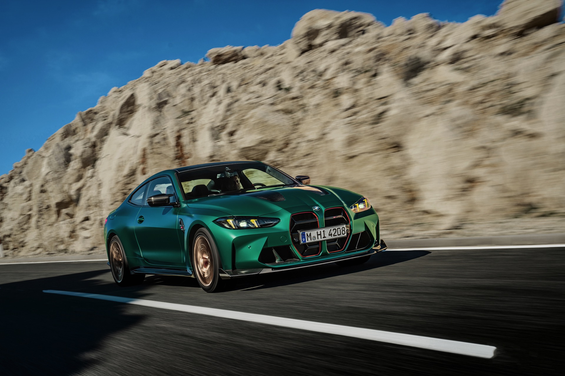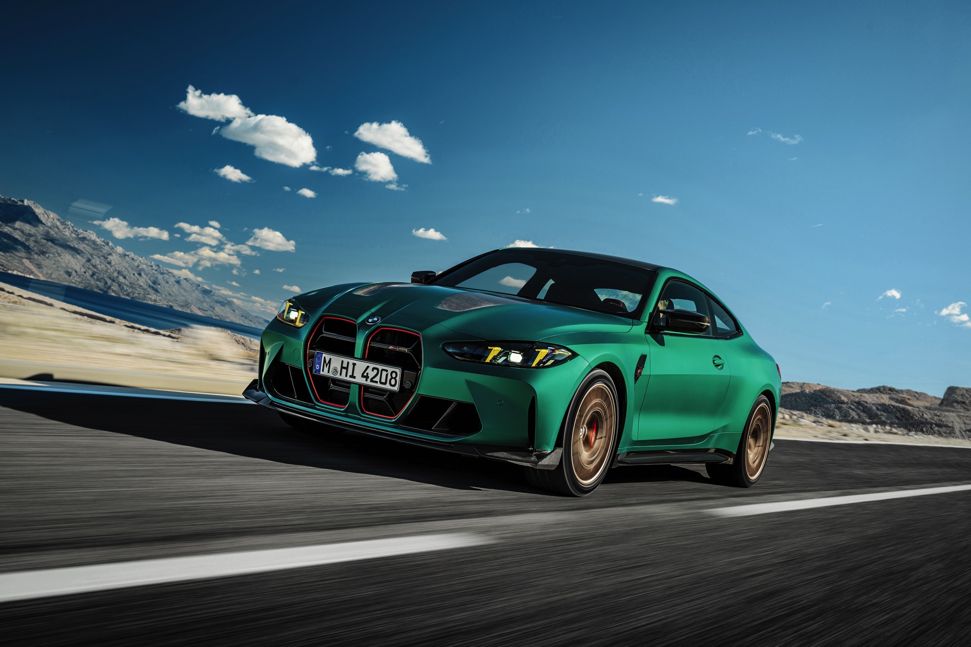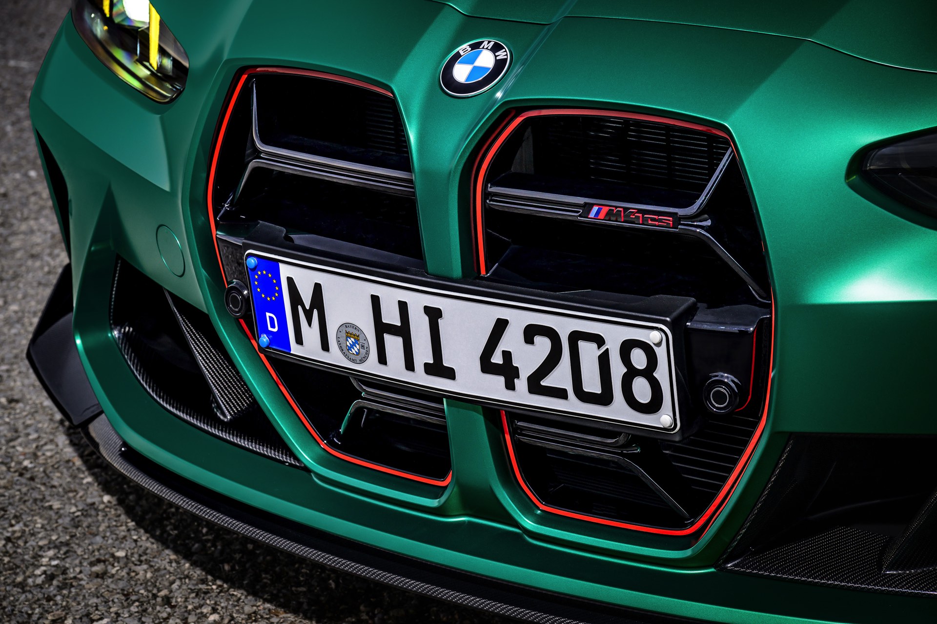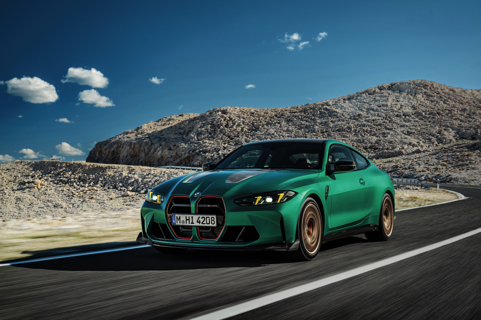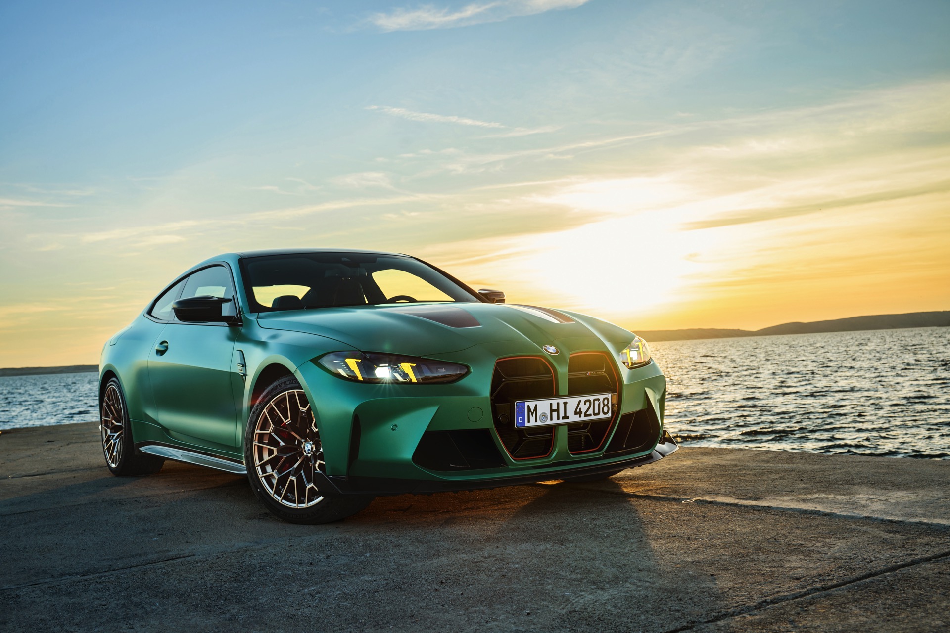 Im Vergleich zum regulären M4 Competition mit M xDrive bietet der BMW M4 CS nicht nur 20 zusätzliche Pferdestärken, sondern auch eine schärfere Fahrwerks-Abstimmung und ein mit viel Carbon um 20 Kilogramm reduziertes Gewicht. Zu den optischen Highlights zählen das gelbe Tagfahrlicht, die zum Teil in Sicht-Carbon ausgeführte Motorhaube, die von M3 CS und M4 CSL bekannte Niere mit nur drei horizontalen Streben und natürlich die exklusiven Farben: Als Weltpremiere debütiert Frozen Isle of Man Green auf dem BMW M4 CS, außerdem stehen Riviera Blau, Brooklyn Grey und Saphirschwarz zur Wahl. Am Heck trägt der M4 CS die seit dem Facelift für alle 4er und M4 erhältlichen, vormals aber dem M4 CSL vorbehaltenen Rückleuchten mit Laser-Technik und filigranen Lichtleiterbahnen. "