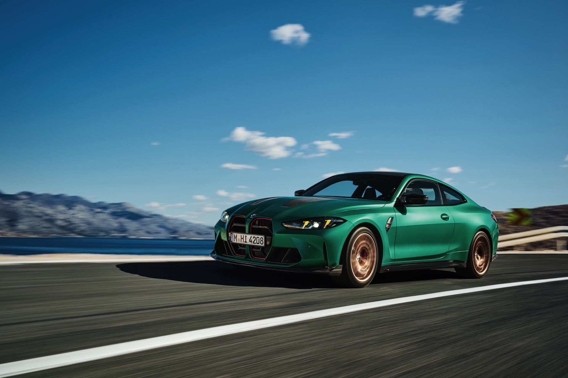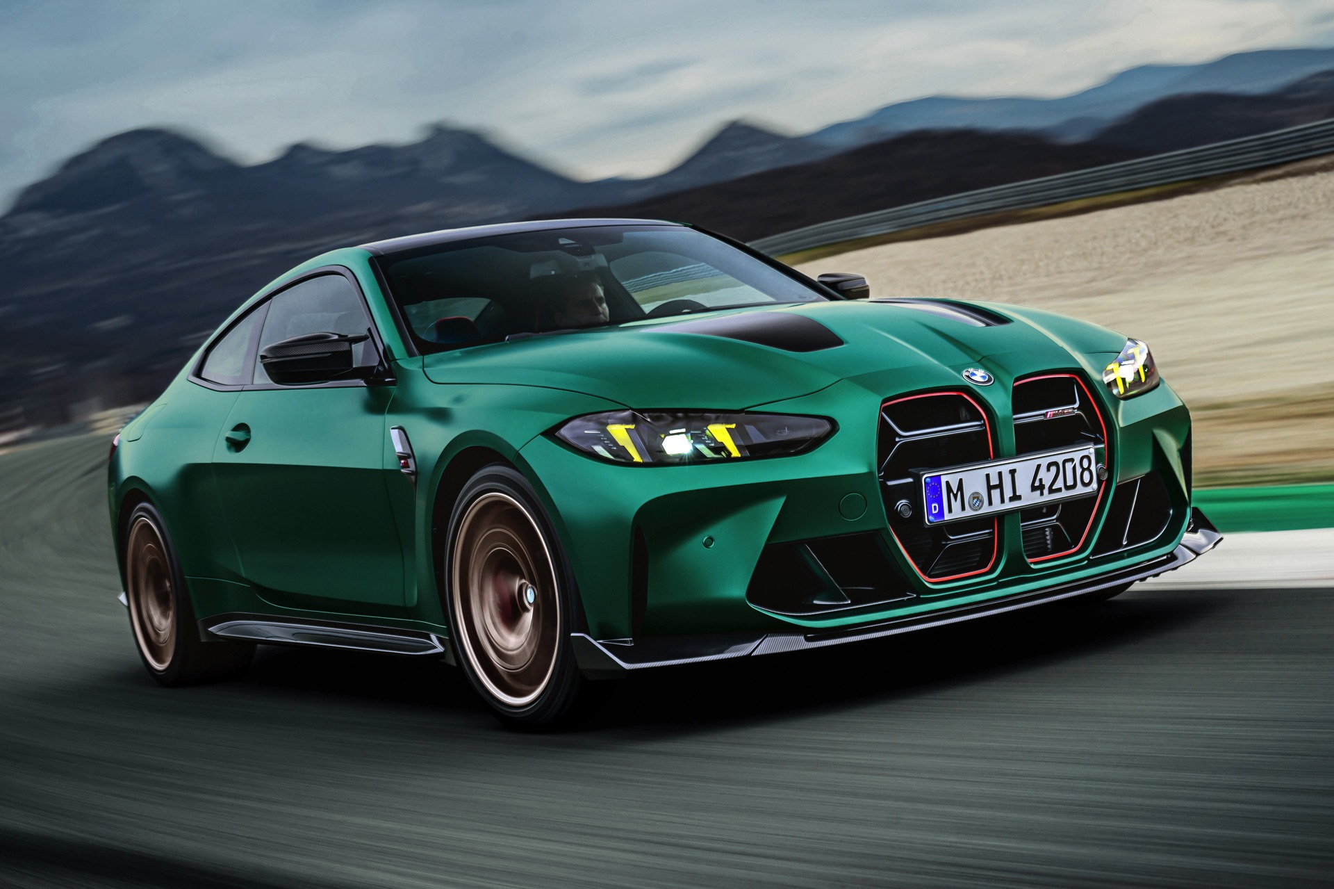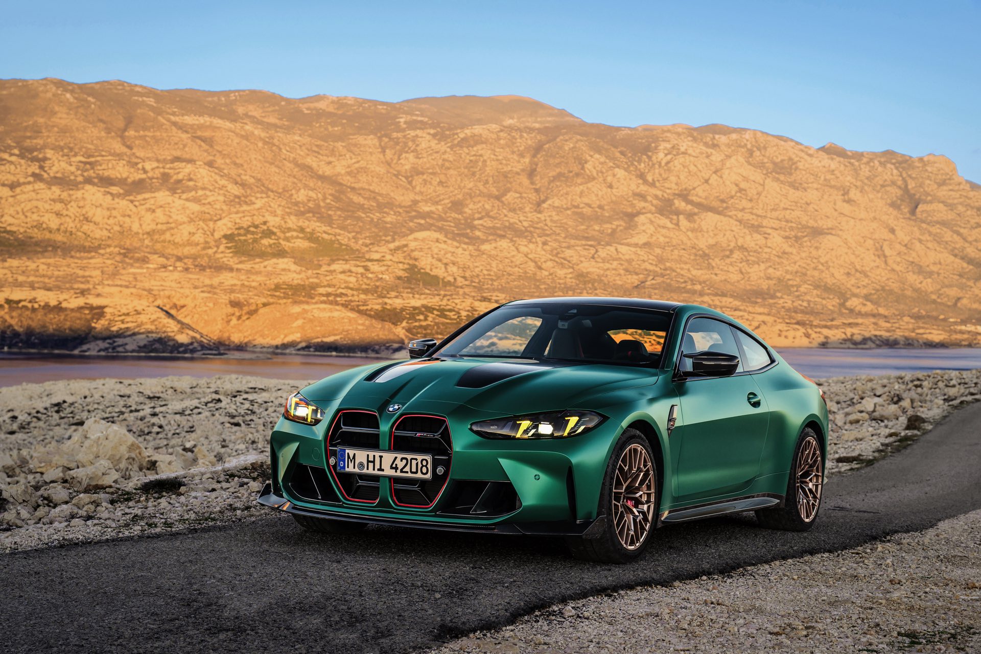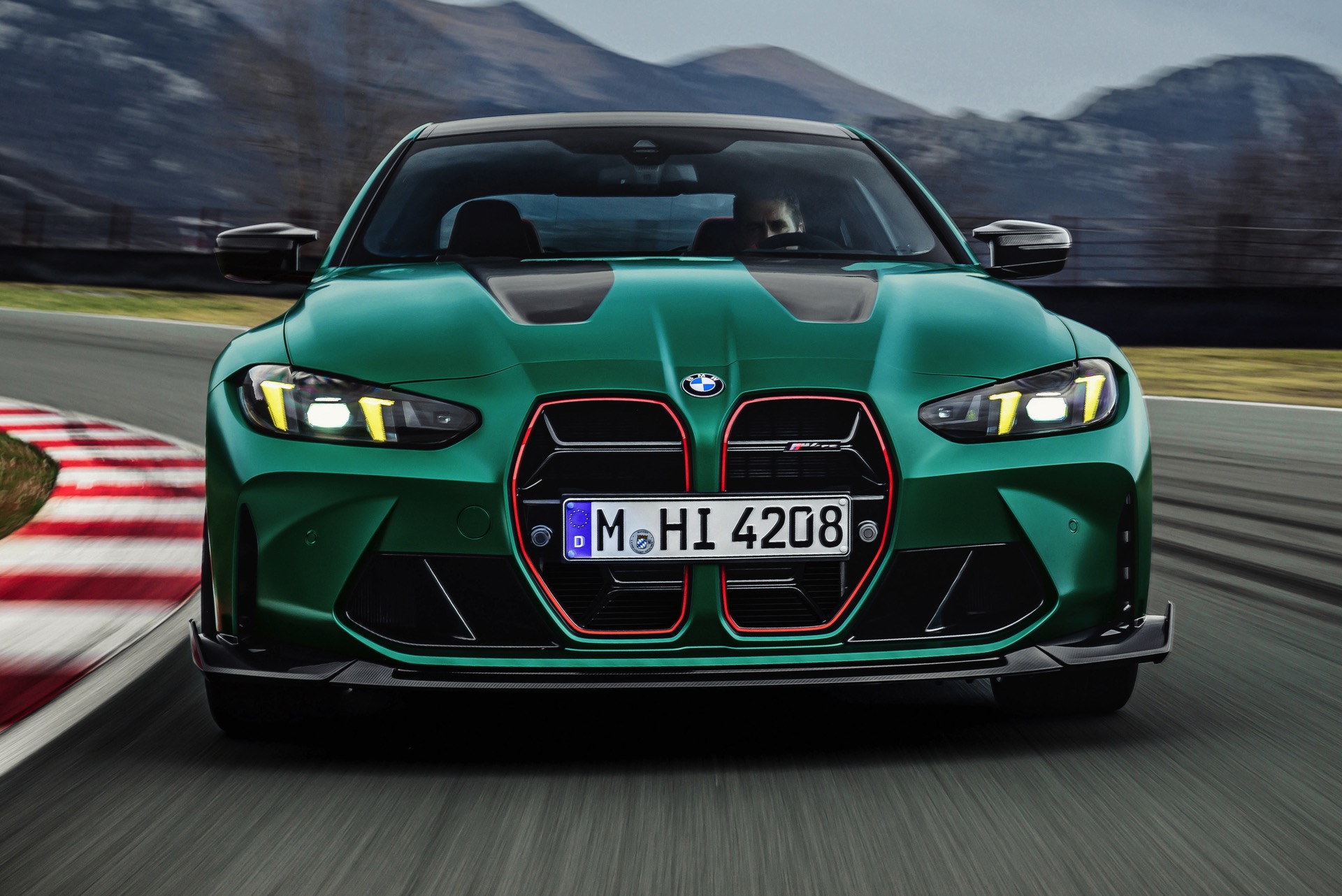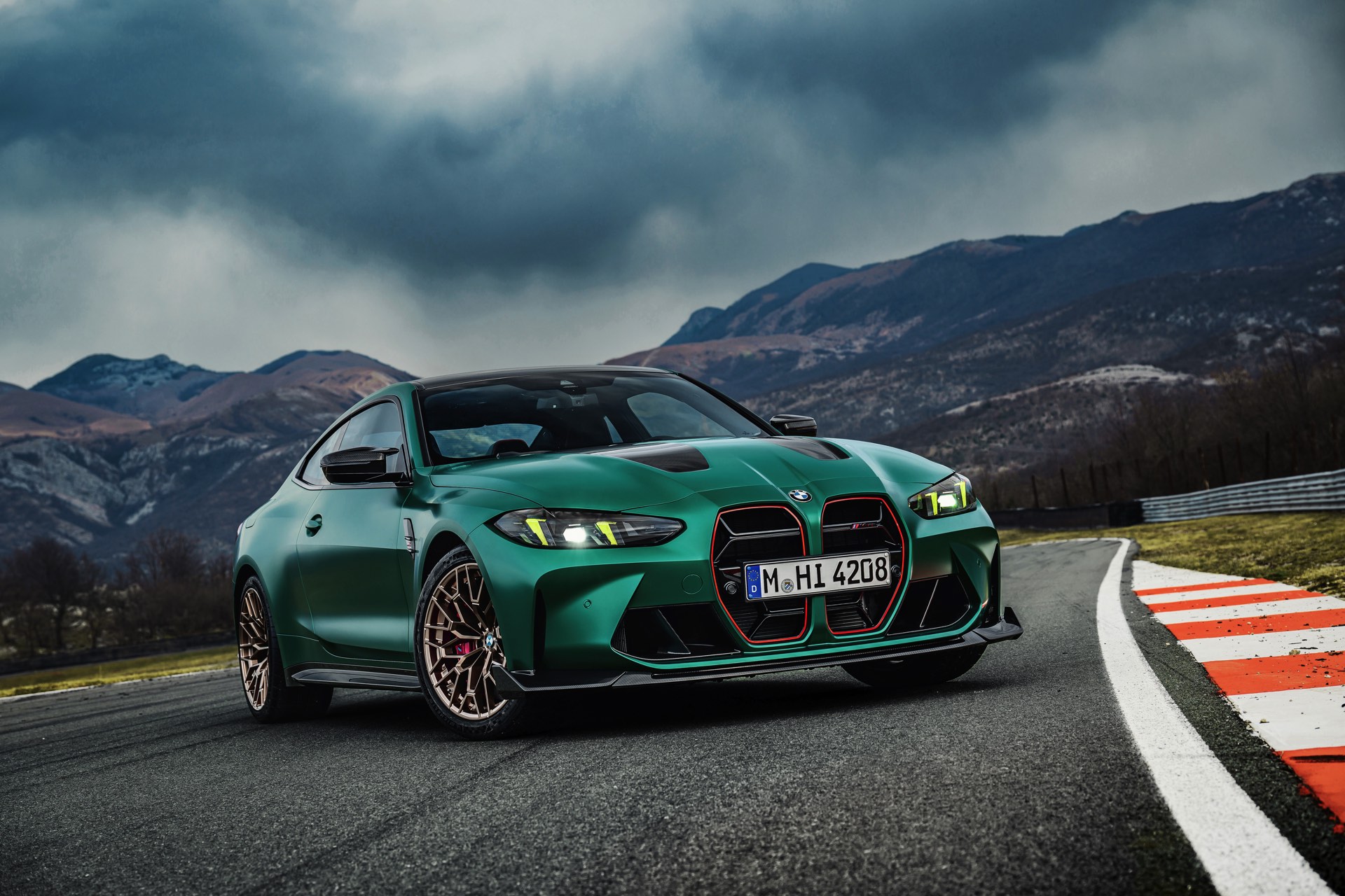 Im Vergleich zum regulären M4 Competition mit M xDrive bietet der BMW M4 CS nicht nur 20 zusätzliche Pferdestärken, sondern auch eine schärfere Fahrwerks-Abstimmung und ein mit viel Carbon um 20 Kilogramm reduziertes Gewicht. Zu den optischen Highlights zählen das gelbe Tagfahrlicht, die zum Teil in Sicht-Carbon ausgeführte Motorhaube, die von M3 CS und M4 CSL bekannte Niere mit nur drei horizontalen Streben und natürlich die exklusiven Farben: Als Weltpremiere debütiert Frozen Isle of Man Green auf dem BMW M4 CS, außerdem stehen Riviera Blau, Brooklyn Grey und Saphirschwarz zur Wahl. Am Heck trägt der M4 CS die seit dem Facelift für alle 4er und M4 erhältlichen, vormals aber dem M4 CSL vorbehaltenen Rückleuchten mit Laser-Technik und filigranen Lichtleiterbahnen. "