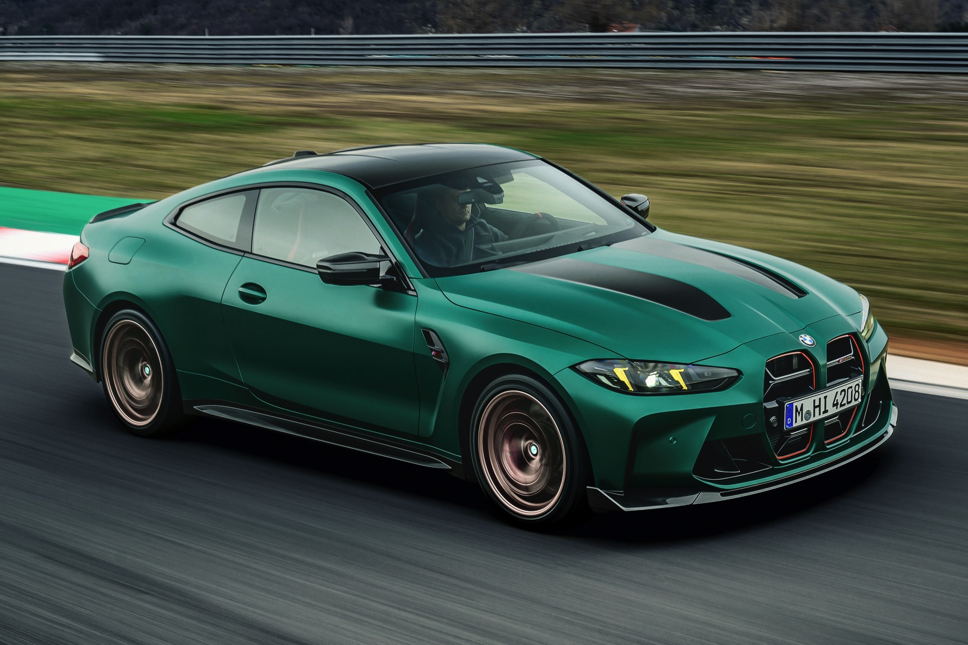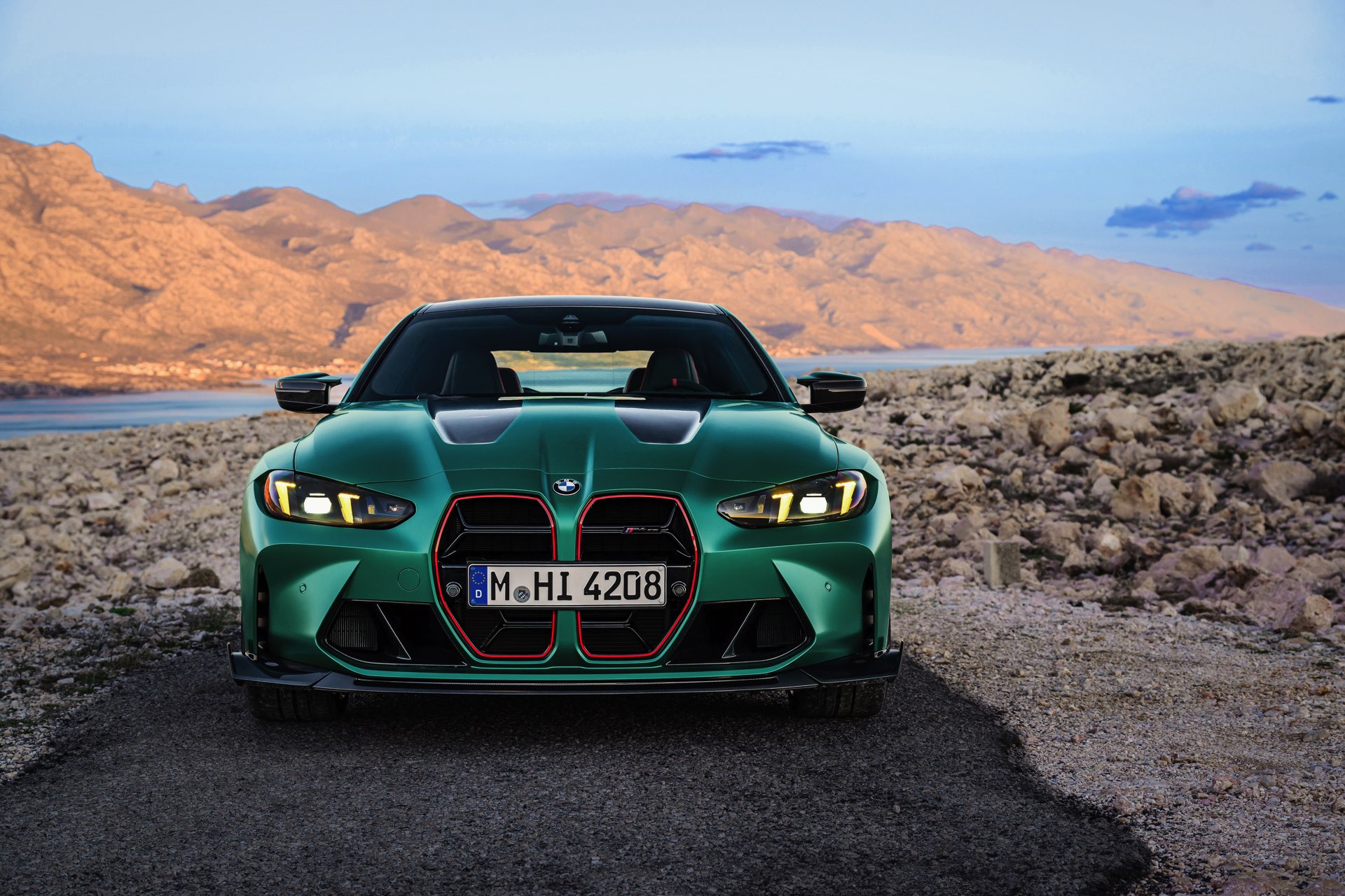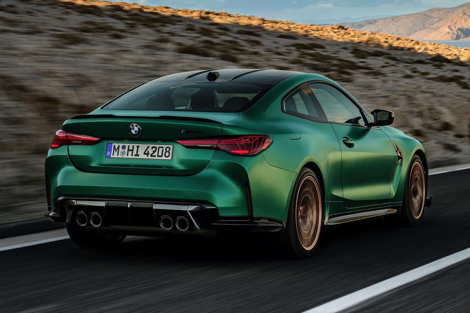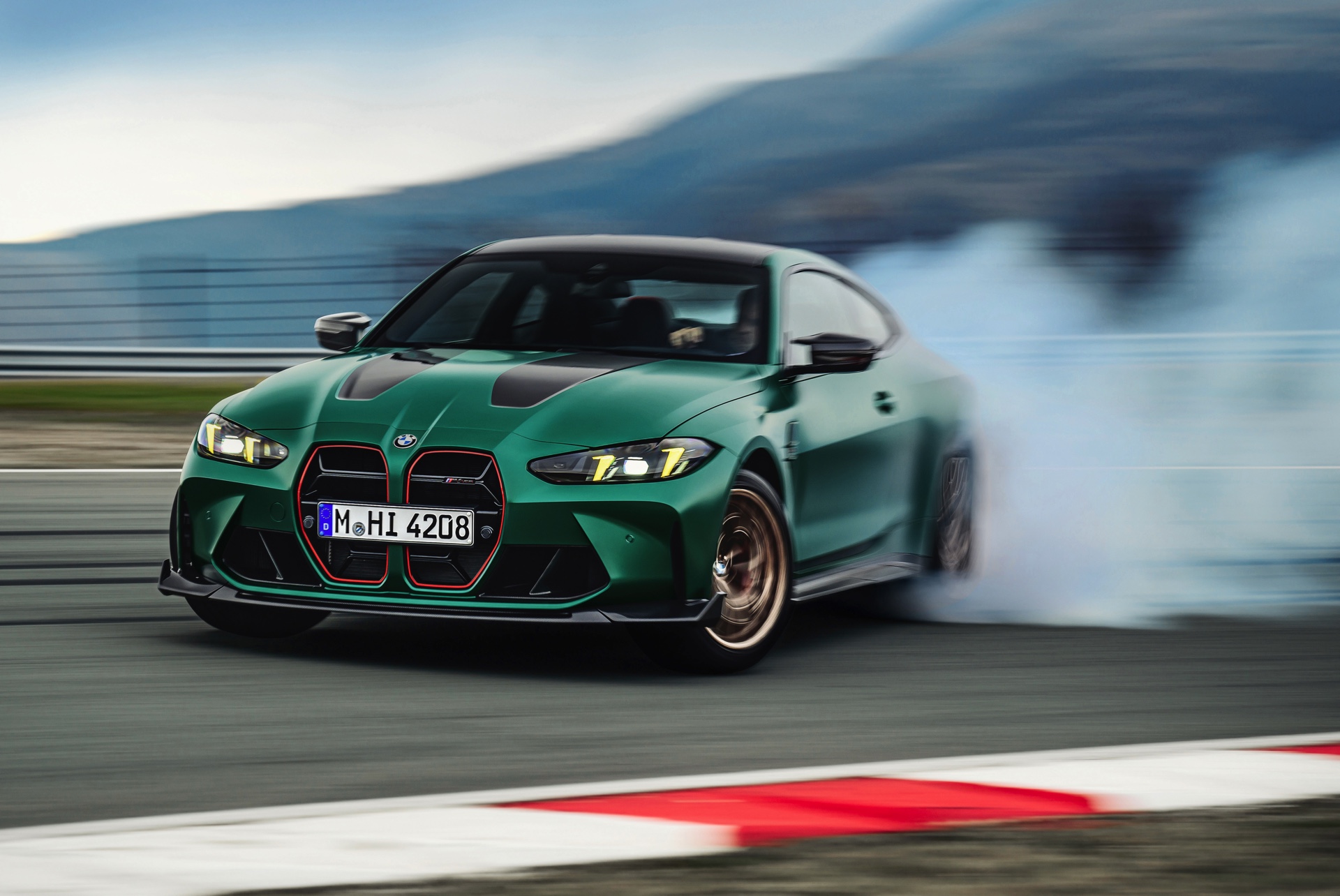 Im Vergleich zum regulären M4 Competition mit M xDrive bietet der BMW M4 CS nicht nur 20 zusätzliche Pferdestärken, sondern auch eine schärfere Fahrwerks-Abstimmung und ein mit viel Carbon um 20 Kilogramm reduziertes Gewicht. Zu den optischen Highlights zählen das gelbe Tagfahrlicht, die zum Teil in Sicht-Carbon ausgeführte Motorhaube, die von M3 CS und M4 CSL bekannte Niere mit nur drei horizontalen Streben und natürlich die exklusiven Farben: Als Weltpremiere debütiert Frozen Isle of Man Green auf dem BMW M4 CS, außerdem stehen Riviera Blau, Brooklyn Grey und Saphirschwarz zur Wahl. Am Heck trägt der M4 CS die seit dem Facelift für alle 4er und M4 erhältlichen, vormals aber dem M4 CSL vorbehaltenen Rückleuchten mit Laser-Technik und filigranen Lichtleiterbahnen. "