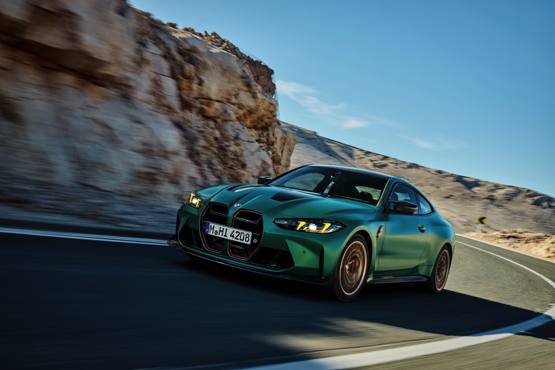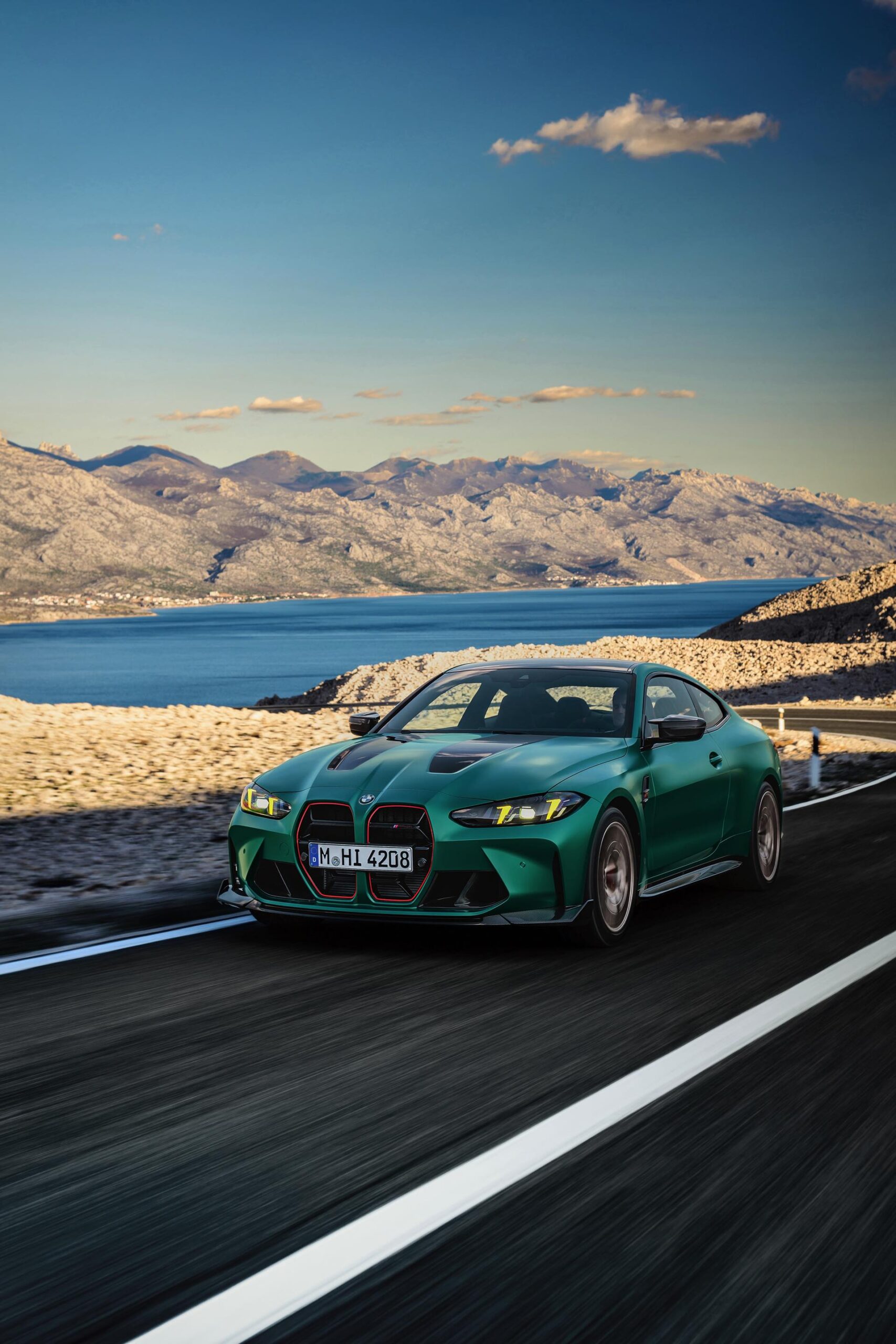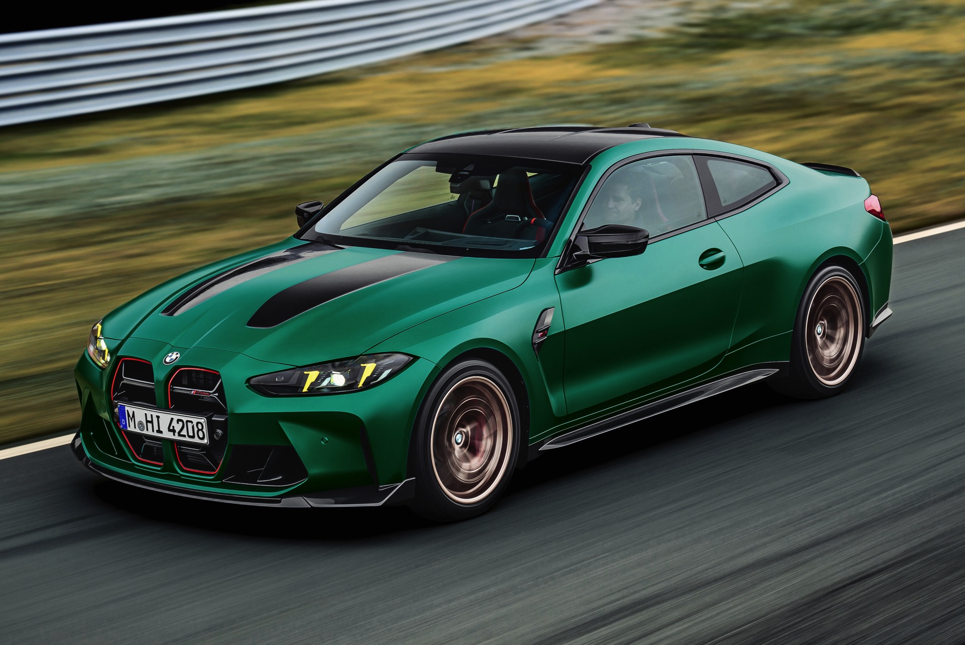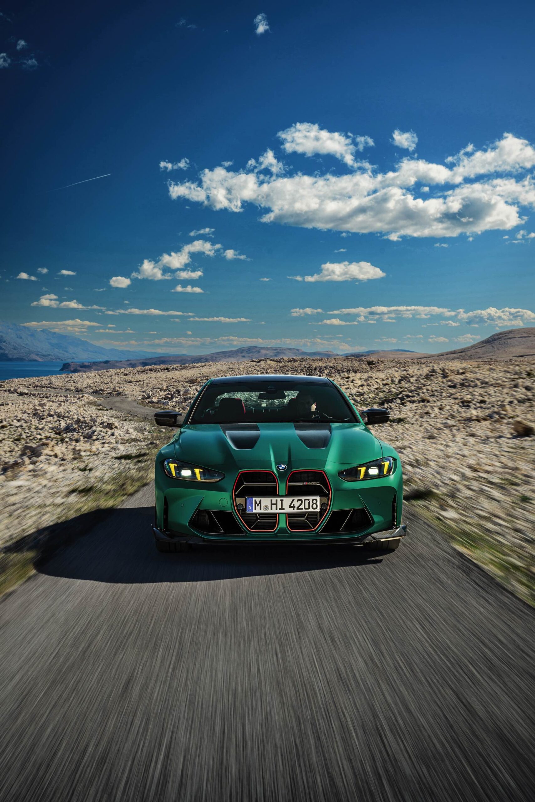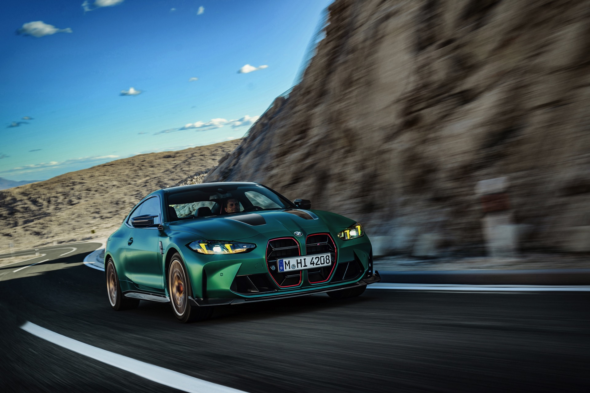 Im Vergleich zum regulären M4 Competition mit M xDrive bietet der BMW M4 CS nicht nur 20 zusätzliche Pferdestärken, sondern auch eine schärfere Fahrwerks-Abstimmung und ein mit viel Carbon um 20 Kilogramm reduziertes Gewicht. Zu den optischen Highlights zählen das gelbe Tagfahrlicht, die zum Teil in Sicht-Carbon ausgeführte Motorhaube, die von M3 CS und M4 CSL bekannte Niere mit nur drei horizontalen Streben und natürlich die exklusiven Farben: Als Weltpremiere debütiert Frozen Isle of Man Green auf dem BMW M4 CS, außerdem stehen Riviera Blau, Brooklyn Grey und Saphirschwarz zur Wahl. Am Heck trägt der M4 CS die seit dem Facelift für alle 4er und M4 erhältlichen, vormals aber dem M4 CSL vorbehaltenen Rückleuchten mit Laser-Technik und filigranen Lichtleiterbahnen. "