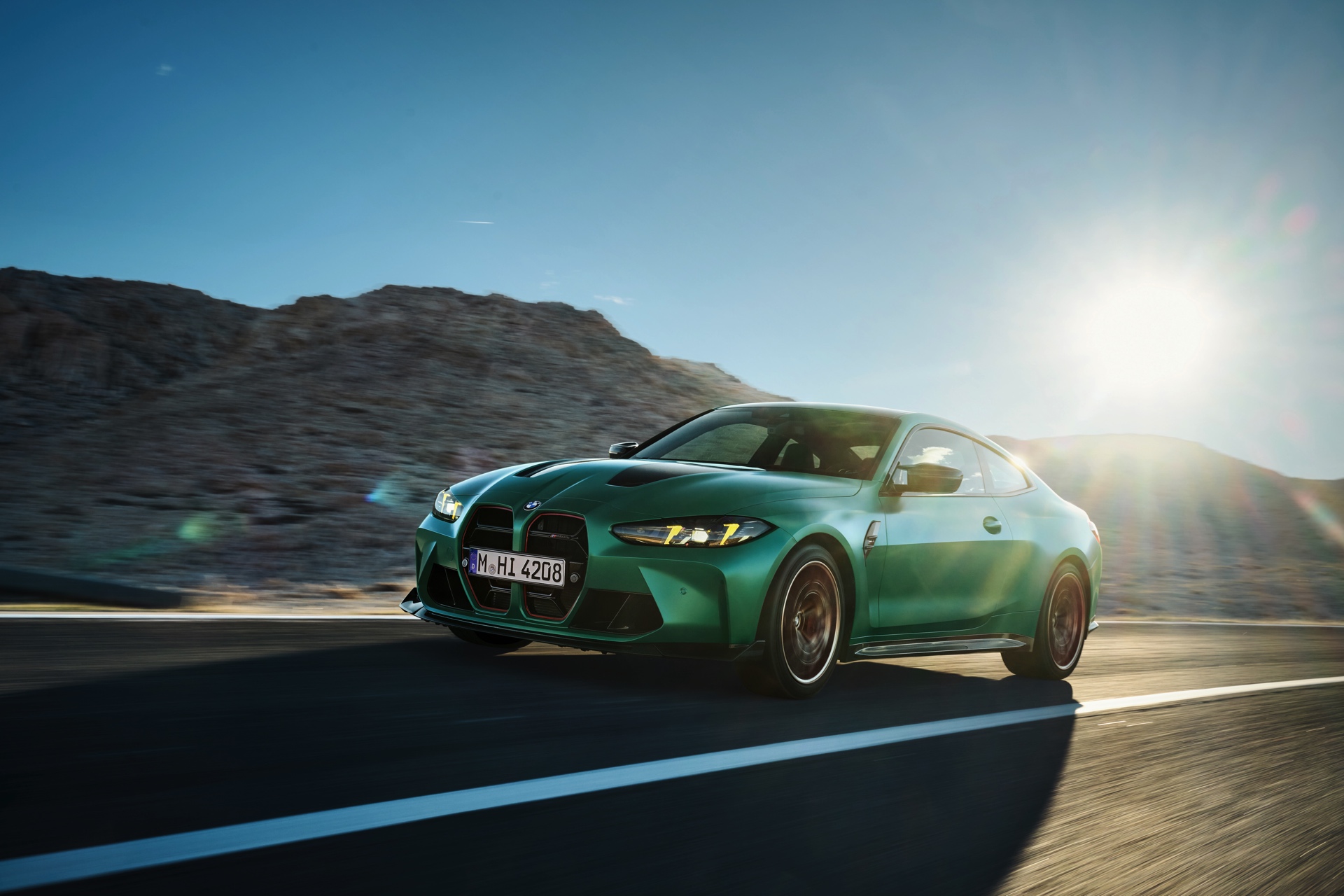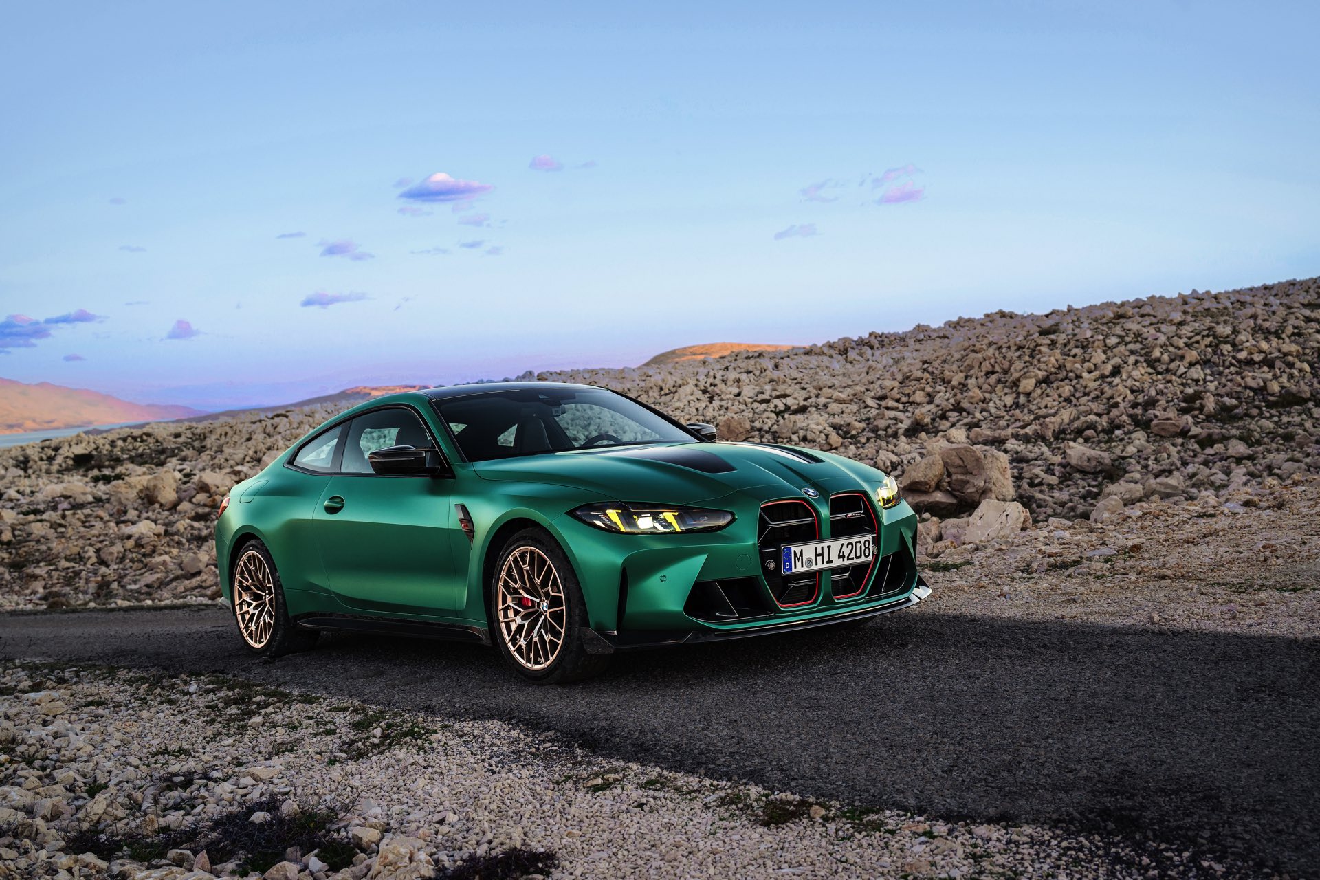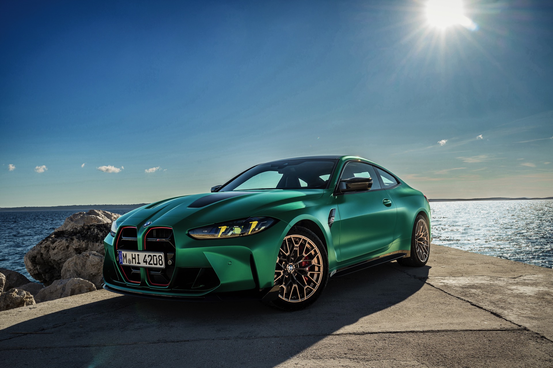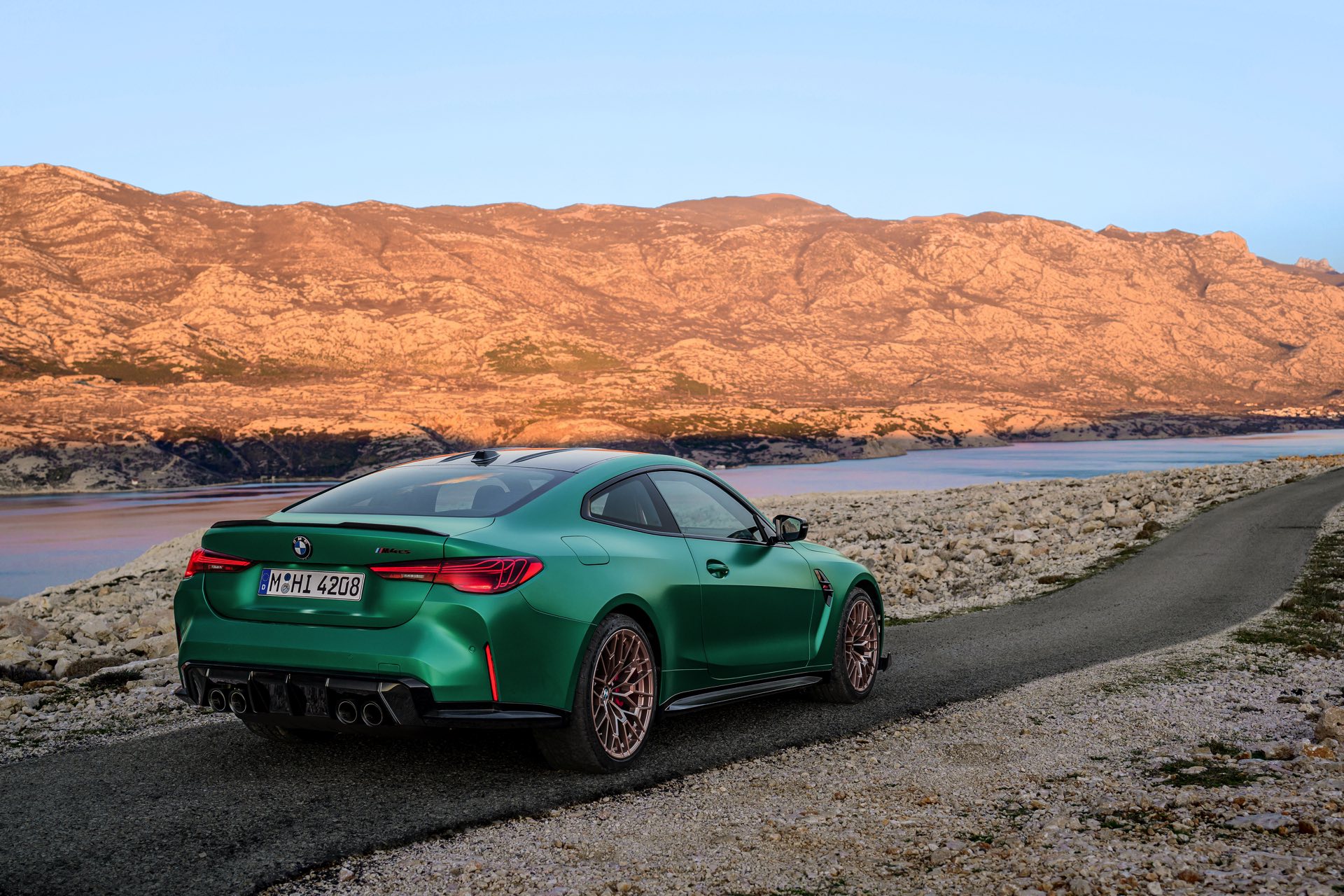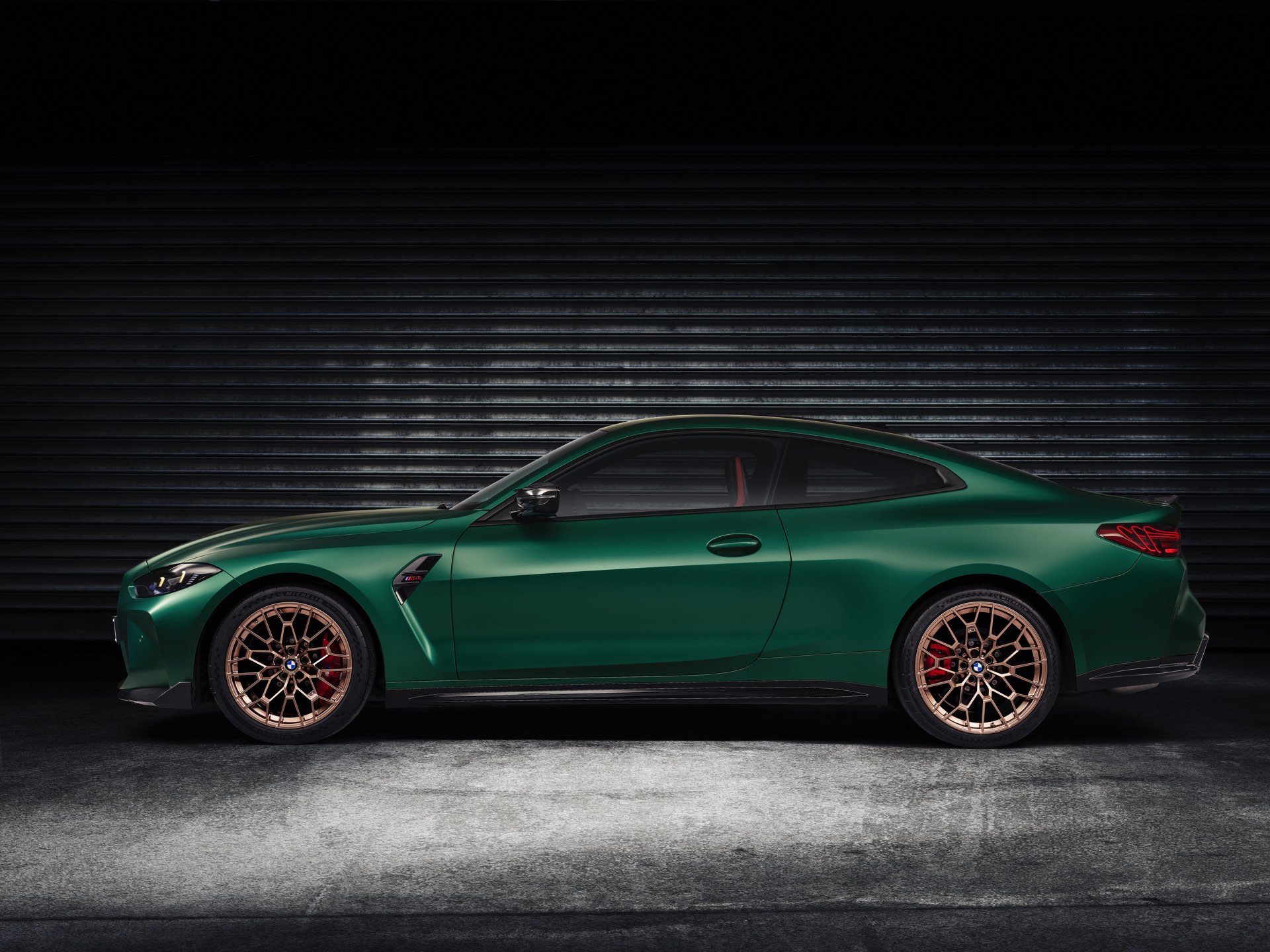 Im Vergleich zum regulären M4 Competition mit M xDrive bietet der BMW M4 CS nicht nur 20 zusätzliche Pferdestärken, sondern auch eine schärfere Fahrwerks-Abstimmung und ein mit viel Carbon um 20 Kilogramm reduziertes Gewicht. Zu den optischen Highlights zählen das gelbe Tagfahrlicht, die zum Teil in Sicht-Carbon ausgeführte Motorhaube, die von M3 CS und M4 CSL bekannte Niere mit nur drei horizontalen Streben und natürlich die exklusiven Farben: Als Weltpremiere debütiert Frozen Isle of Man Green auf dem BMW M4 CS, außerdem stehen Riviera Blau, Brooklyn Grey und Saphirschwarz zur Wahl. Am Heck trägt der M4 CS die seit dem Facelift für alle 4er und M4 erhältlichen, vormals aber dem M4 CSL vorbehaltenen Rückleuchten mit Laser-Technik und filigranen Lichtleiterbahnen. "