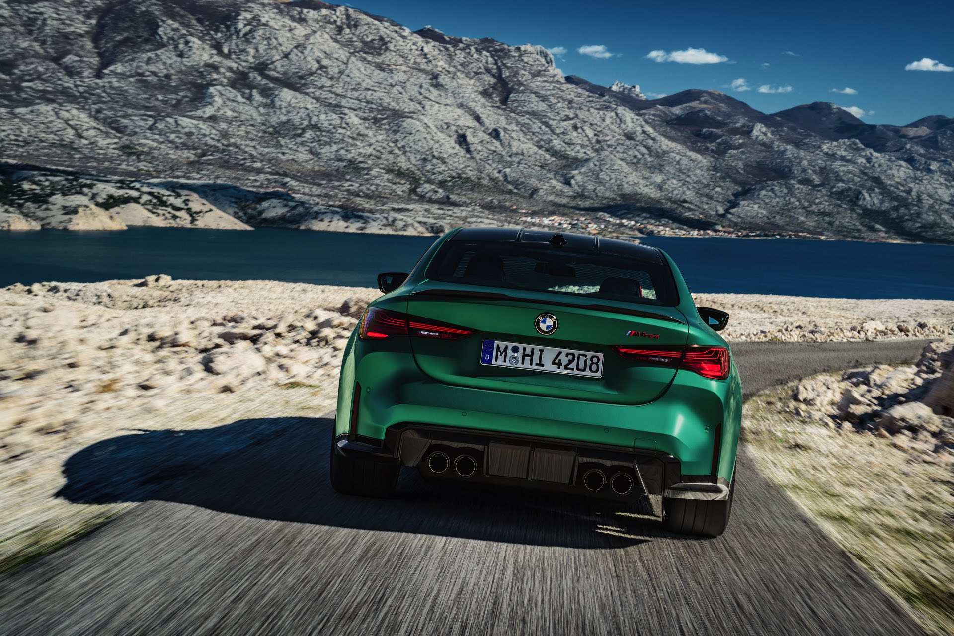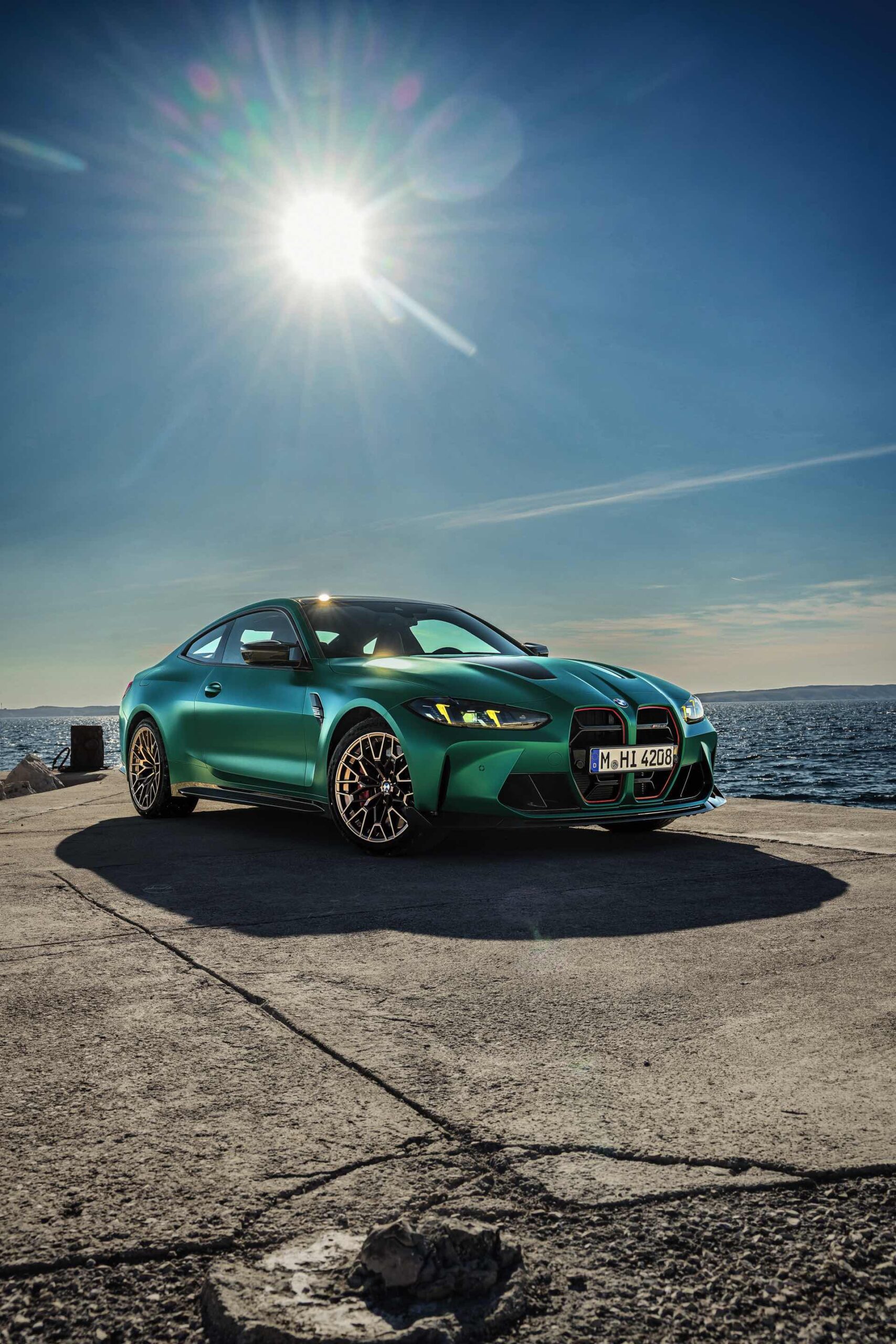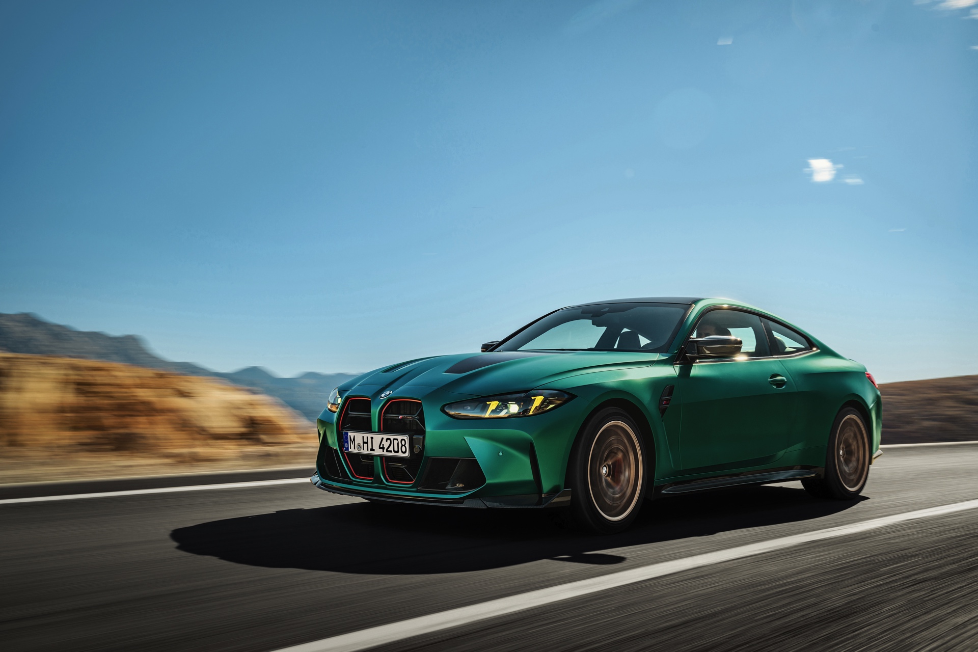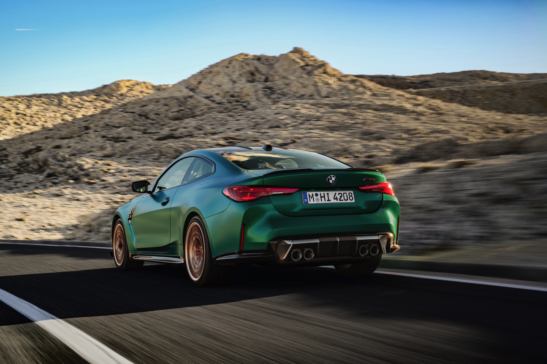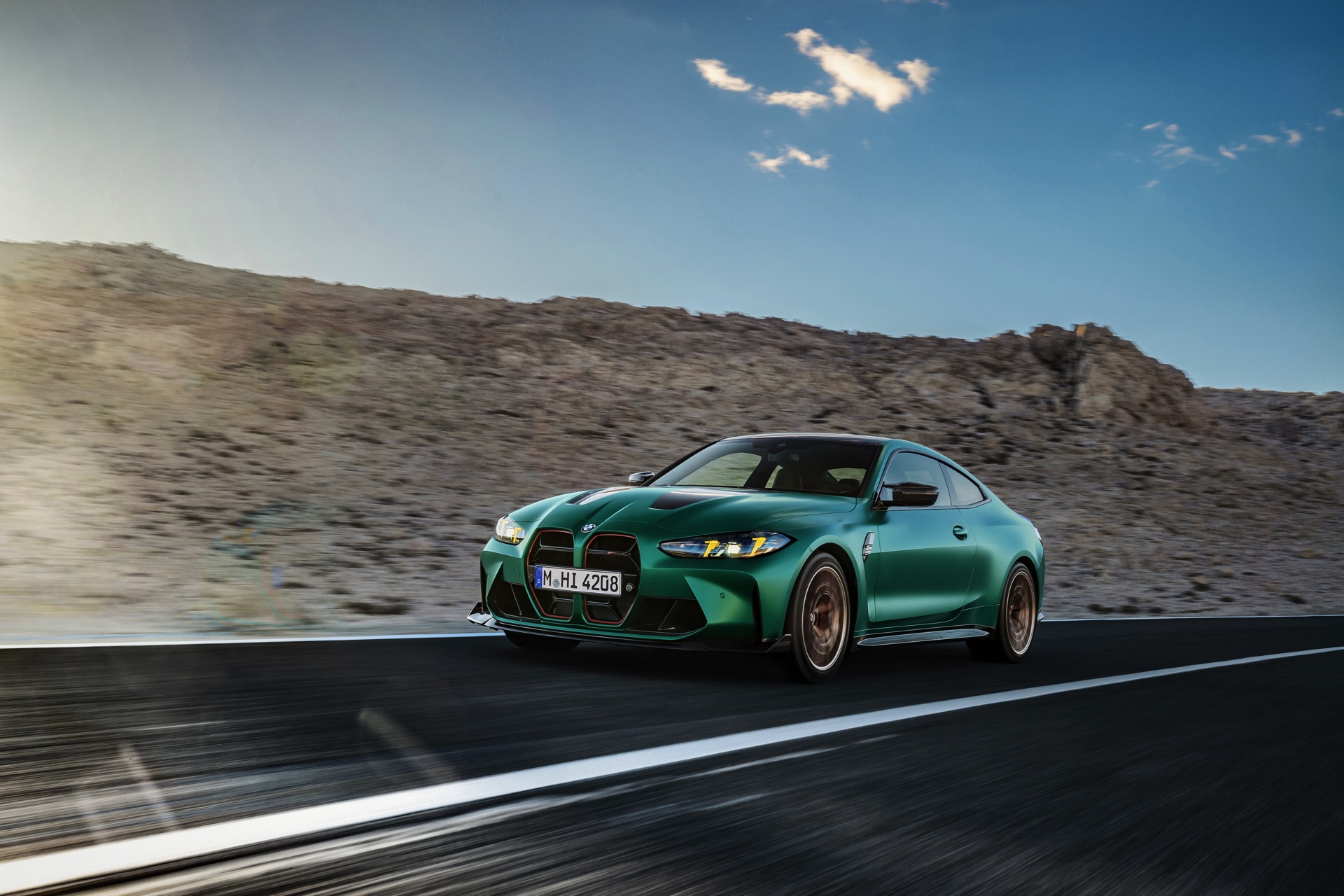 Im Vergleich zum regulären M4 Competition mit M xDrive bietet der BMW M4 CS nicht nur 20 zusätzliche Pferdestärken, sondern auch eine schärfere Fahrwerks-Abstimmung und ein mit viel Carbon um 20 Kilogramm reduziertes Gewicht. Zu den optischen Highlights zählen das gelbe Tagfahrlicht, die zum Teil in Sicht-Carbon ausgeführte Motorhaube, die von M3 CS und M4 CSL bekannte Niere mit nur drei horizontalen Streben und natürlich die exklusiven Farben: Als Weltpremiere debütiert Frozen Isle of Man Green auf dem BMW M4 CS, außerdem stehen Riviera Blau, Brooklyn Grey und Saphirschwarz zur Wahl. Am Heck trägt der M4 CS die seit dem Facelift für alle 4er und M4 erhältlichen, vormals aber dem M4 CSL vorbehaltenen Rückleuchten mit Laser-Technik und filigranen Lichtleiterbahnen. "