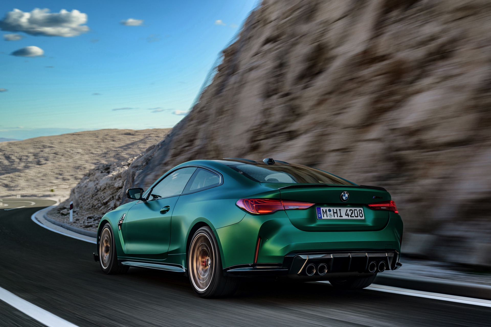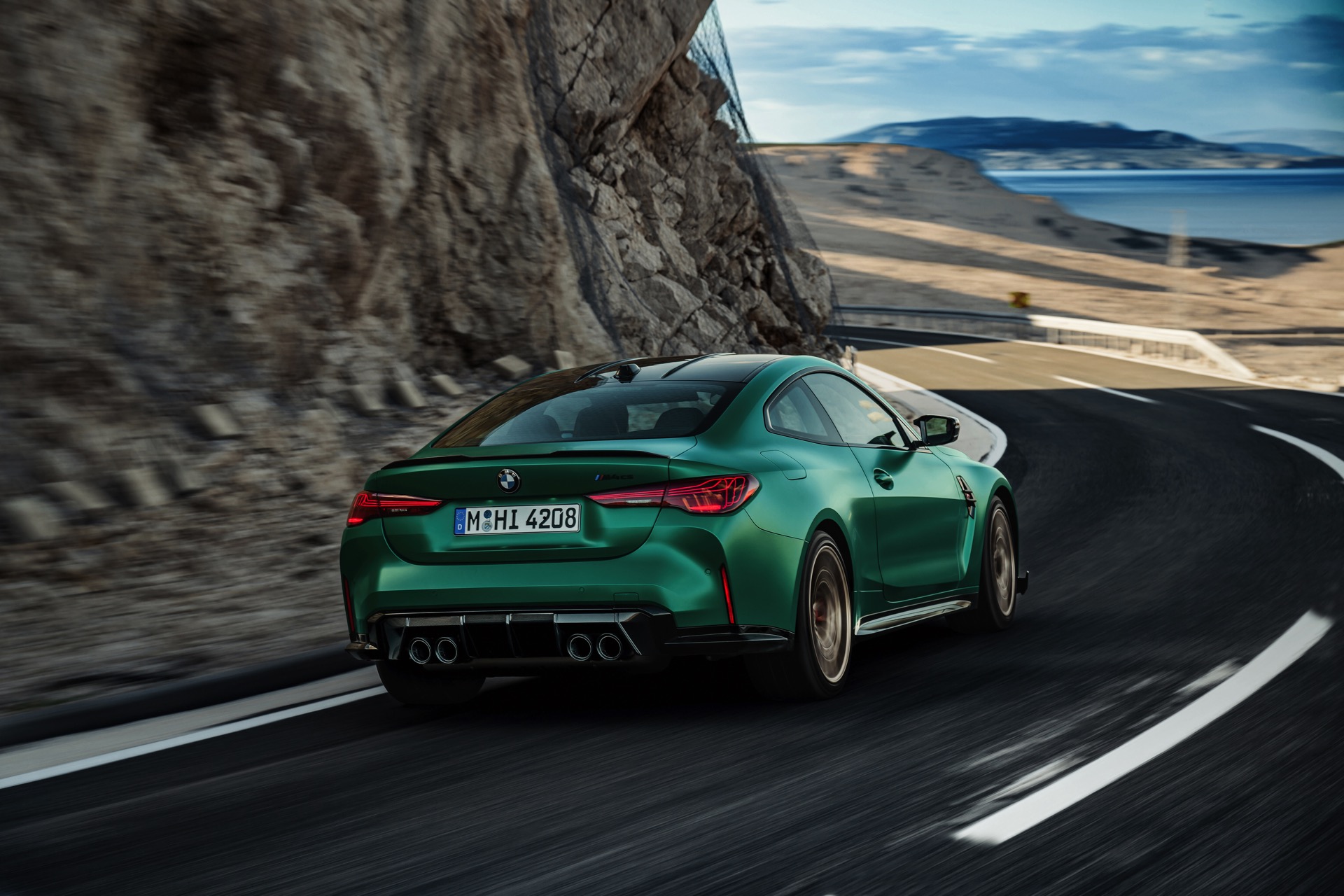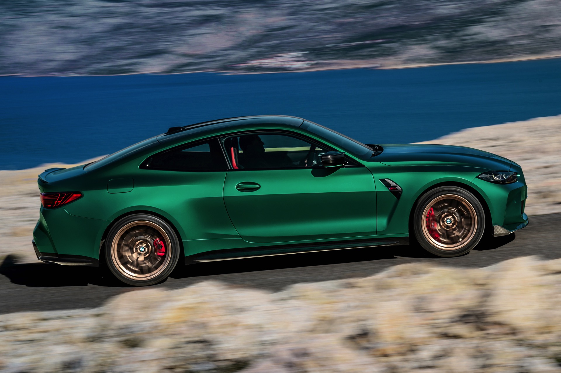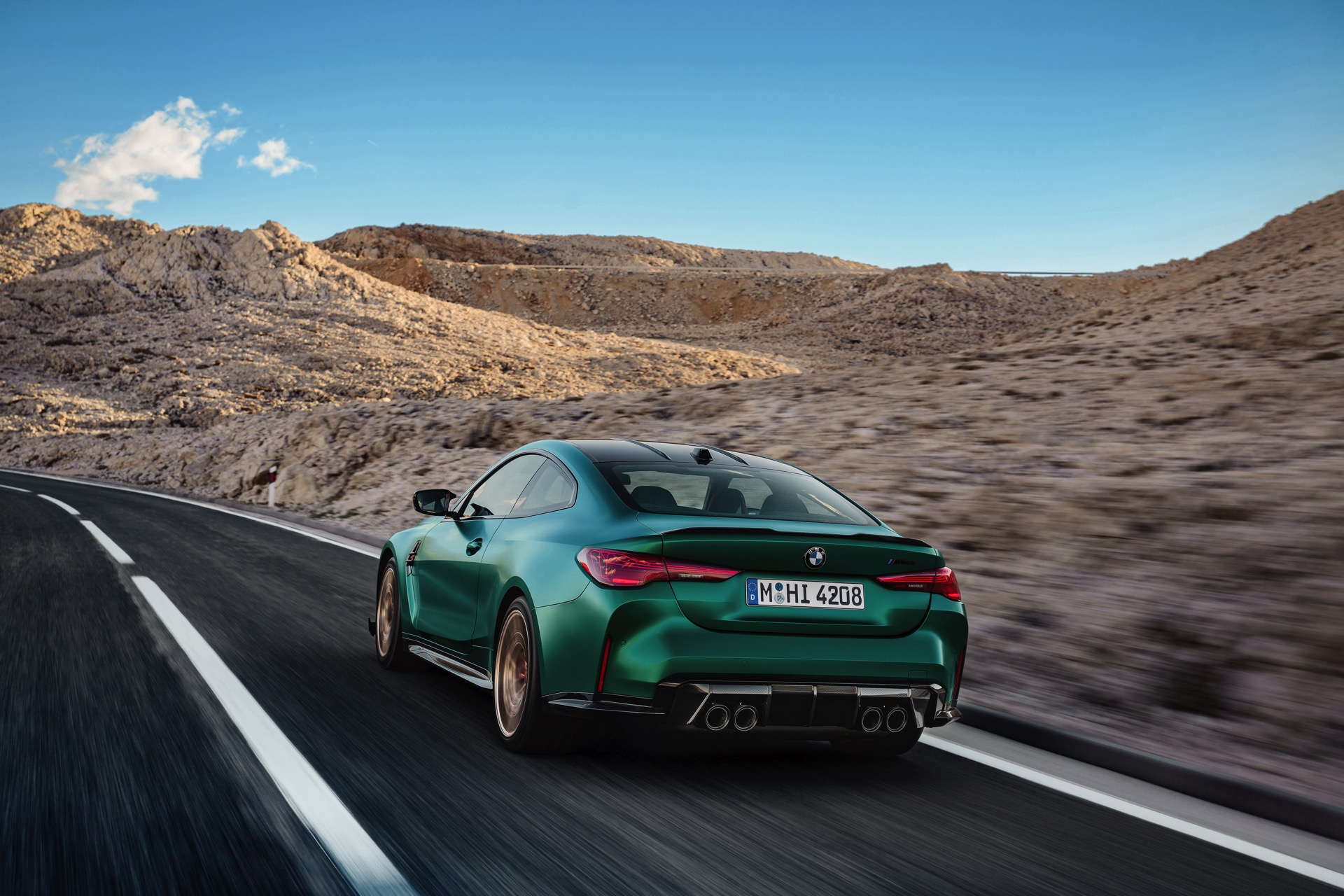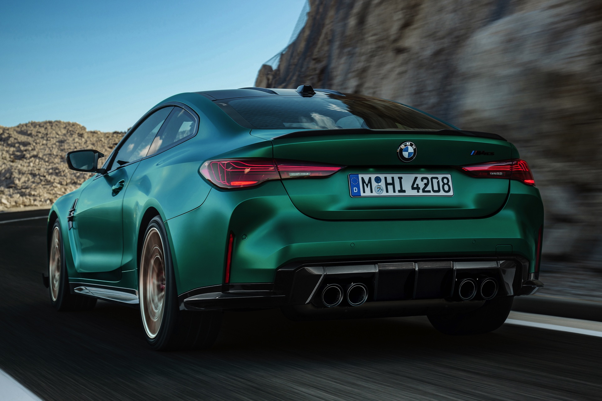 Im Vergleich zum regulären M4 Competition mit M xDrive bietet der BMW M4 CS nicht nur 20 zusätzliche Pferdestärken, sondern auch eine schärfere Fahrwerks-Abstimmung und ein mit viel Carbon um 20 Kilogramm reduziertes Gewicht. Zu den optischen Highlights zählen das gelbe Tagfahrlicht, die zum Teil in Sicht-Carbon ausgeführte Motorhaube, die von M3 CS und M4 CSL bekannte Niere mit nur drei horizontalen Streben und natürlich die exklusiven Farben: Als Weltpremiere debütiert Frozen Isle of Man Green auf dem BMW M4 CS, außerdem stehen Riviera Blau, Brooklyn Grey und Saphirschwarz zur Wahl. Am Heck trägt der M4 CS die seit dem Facelift für alle 4er und M4 erhältlichen, vormals aber dem M4 CSL vorbehaltenen Rückleuchten mit Laser-Technik und filigranen Lichtleiterbahnen. "