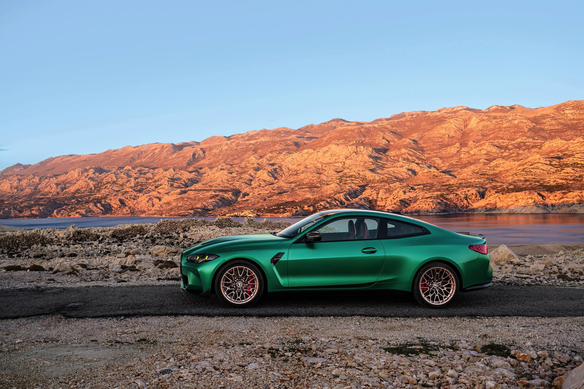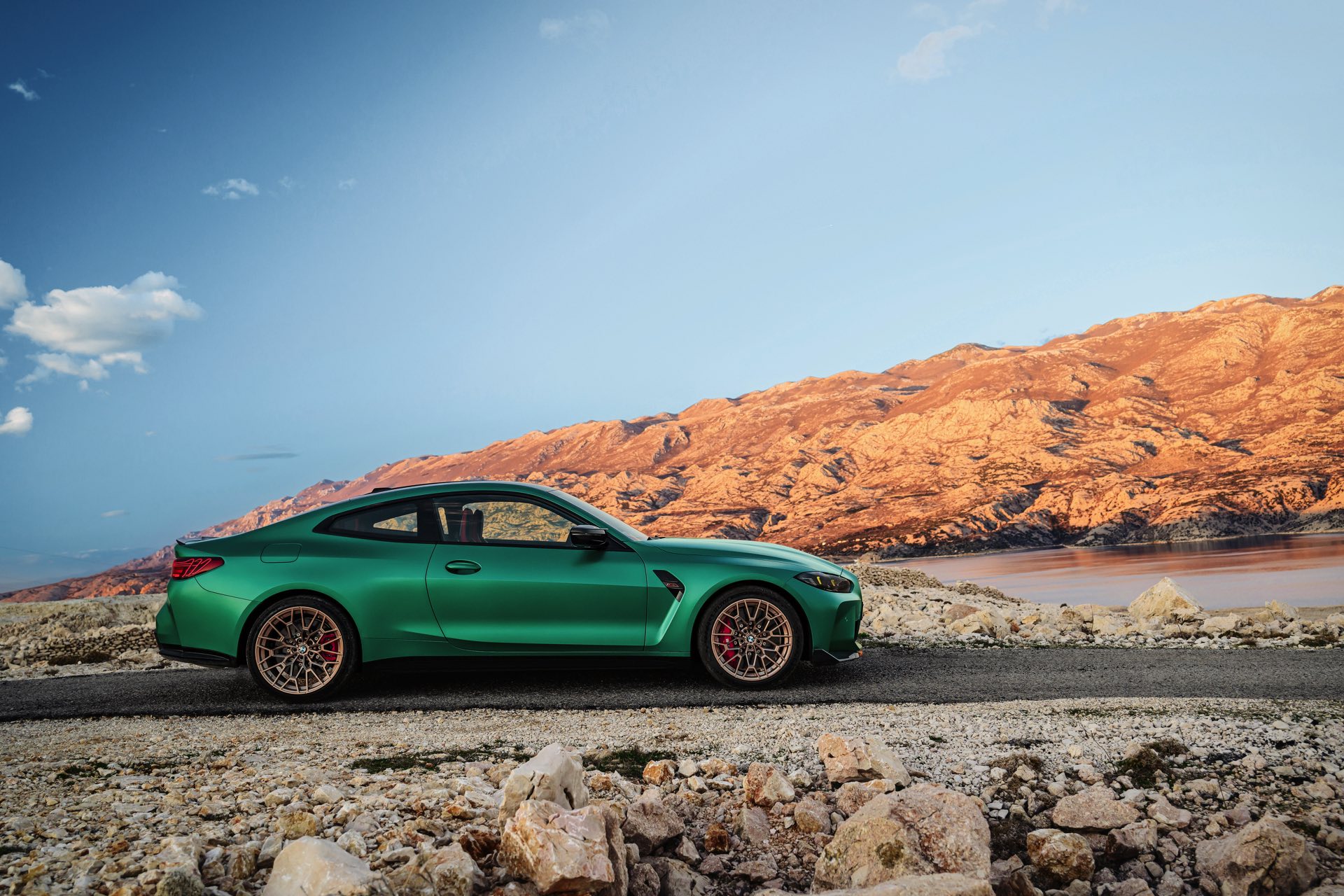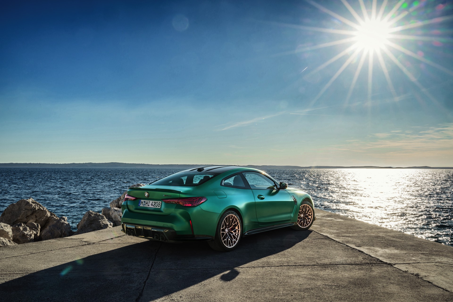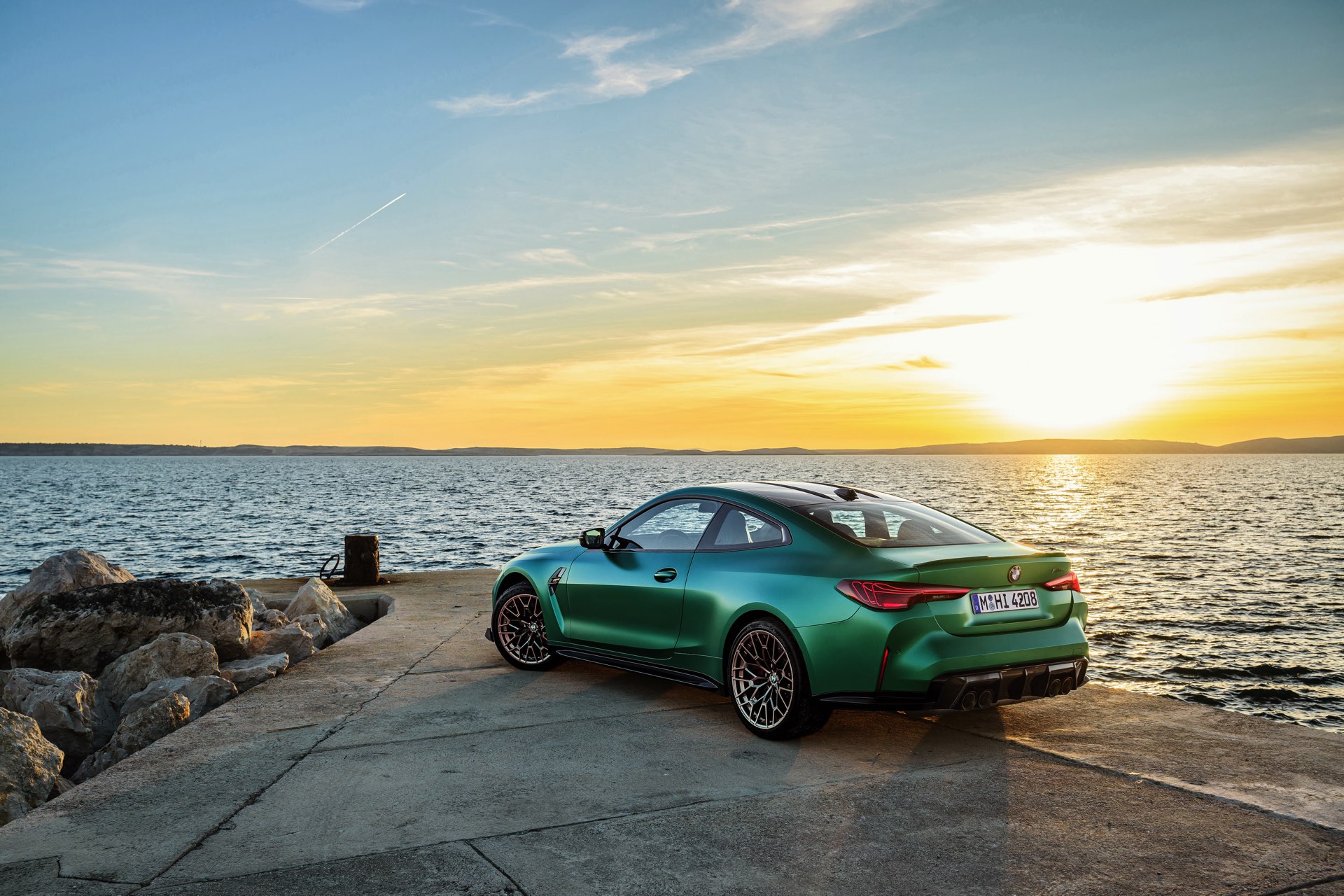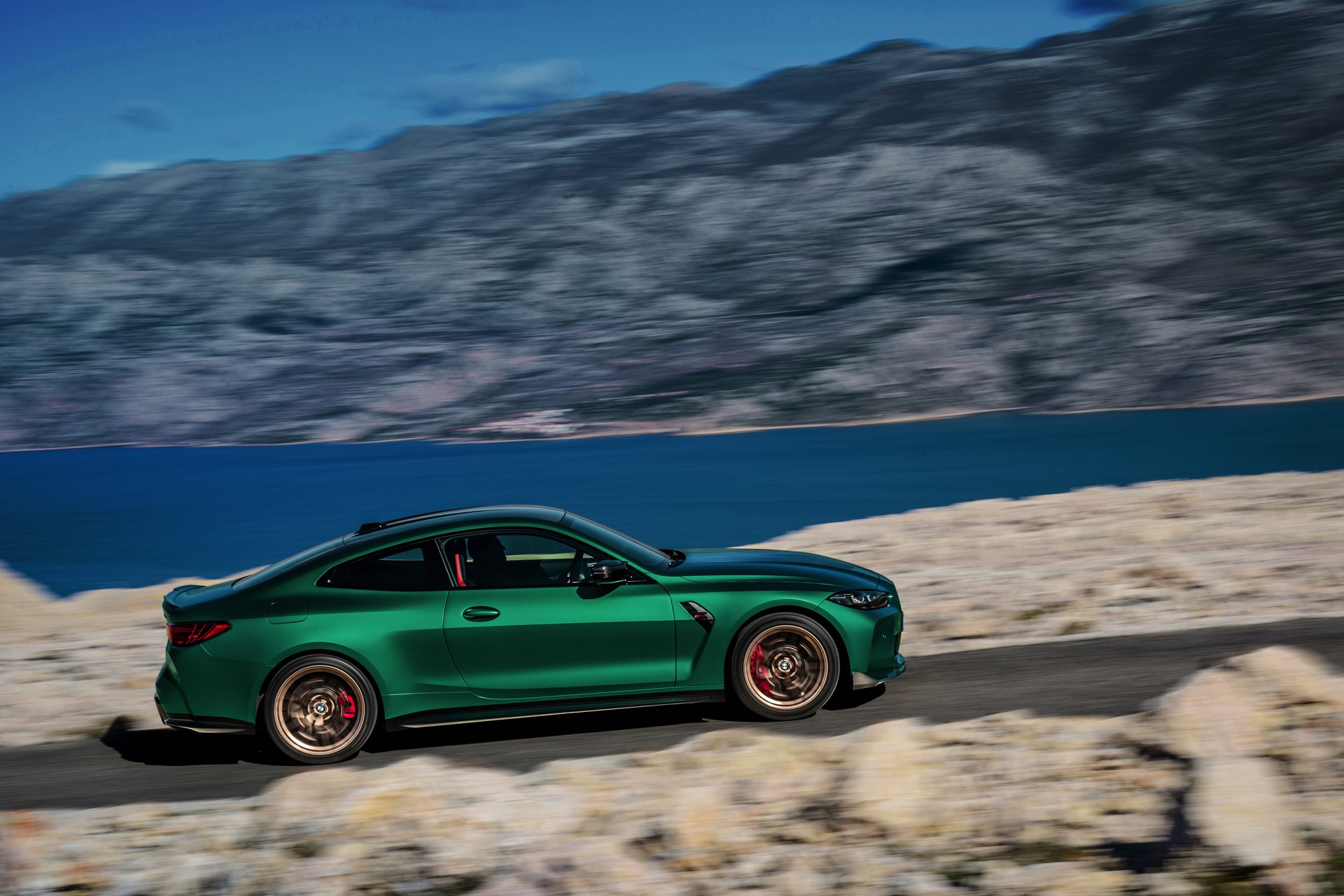 Im Vergleich zum regulären M4 Competition mit M xDrive bietet der BMW M4 CS nicht nur 20 zusätzliche Pferdestärken, sondern auch eine schärfere Fahrwerks-Abstimmung und ein mit viel Carbon um 20 Kilogramm reduziertes Gewicht. Zu den optischen Highlights zählen das gelbe Tagfahrlicht, die zum Teil in Sicht-Carbon ausgeführte Motorhaube, die von M3 CS und M4 CSL bekannte Niere mit nur drei horizontalen Streben und natürlich die exklusiven Farben: Als Weltpremiere debütiert Frozen Isle of Man Green auf dem BMW M4 CS, außerdem stehen Riviera Blau, Brooklyn Grey und Saphirschwarz zur Wahl. Am Heck trägt der M4 CS die seit dem Facelift für alle 4er und M4 erhältlichen, vormals aber dem M4 CSL vorbehaltenen Rückleuchten mit Laser-Technik und filigranen Lichtleiterbahnen. "
