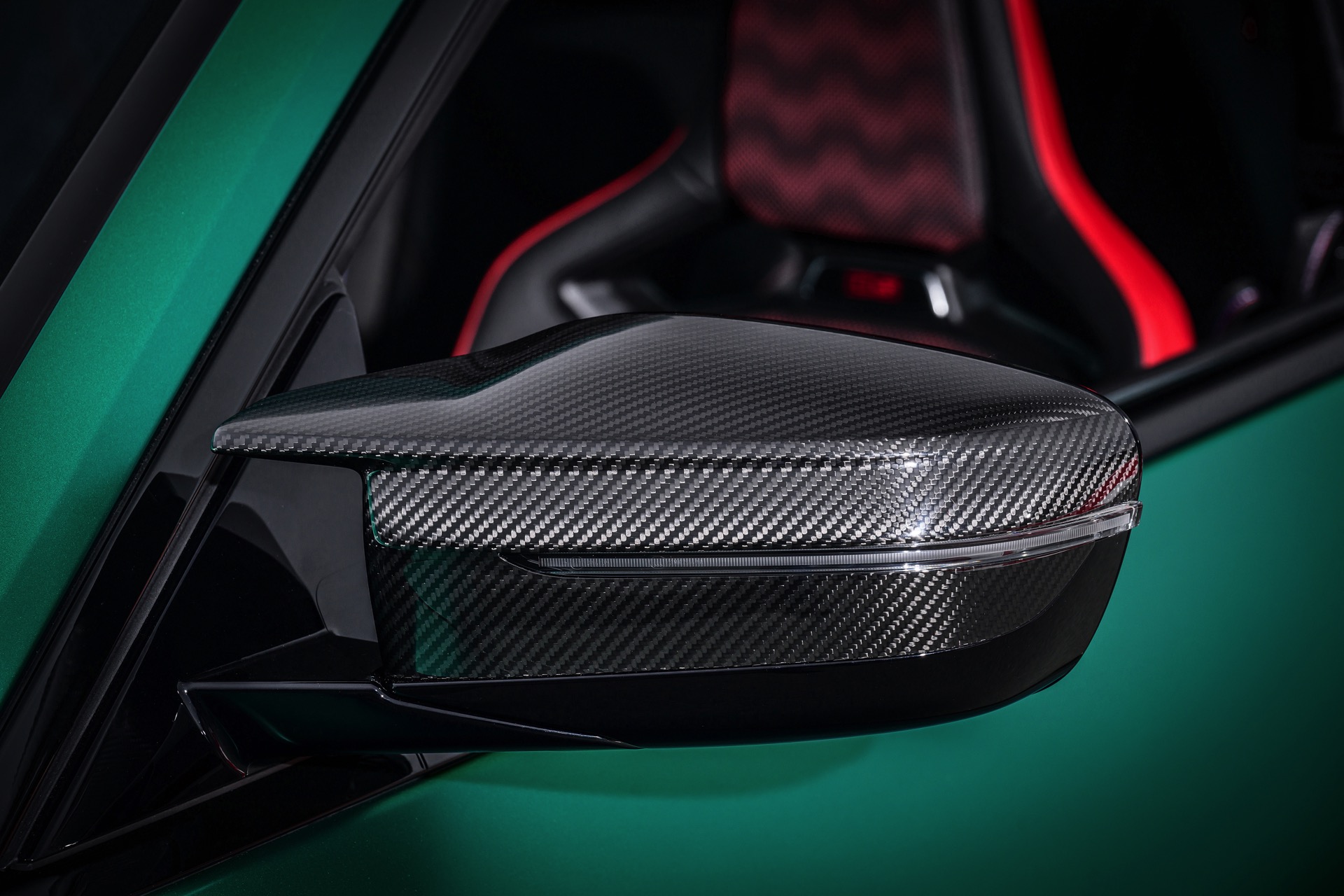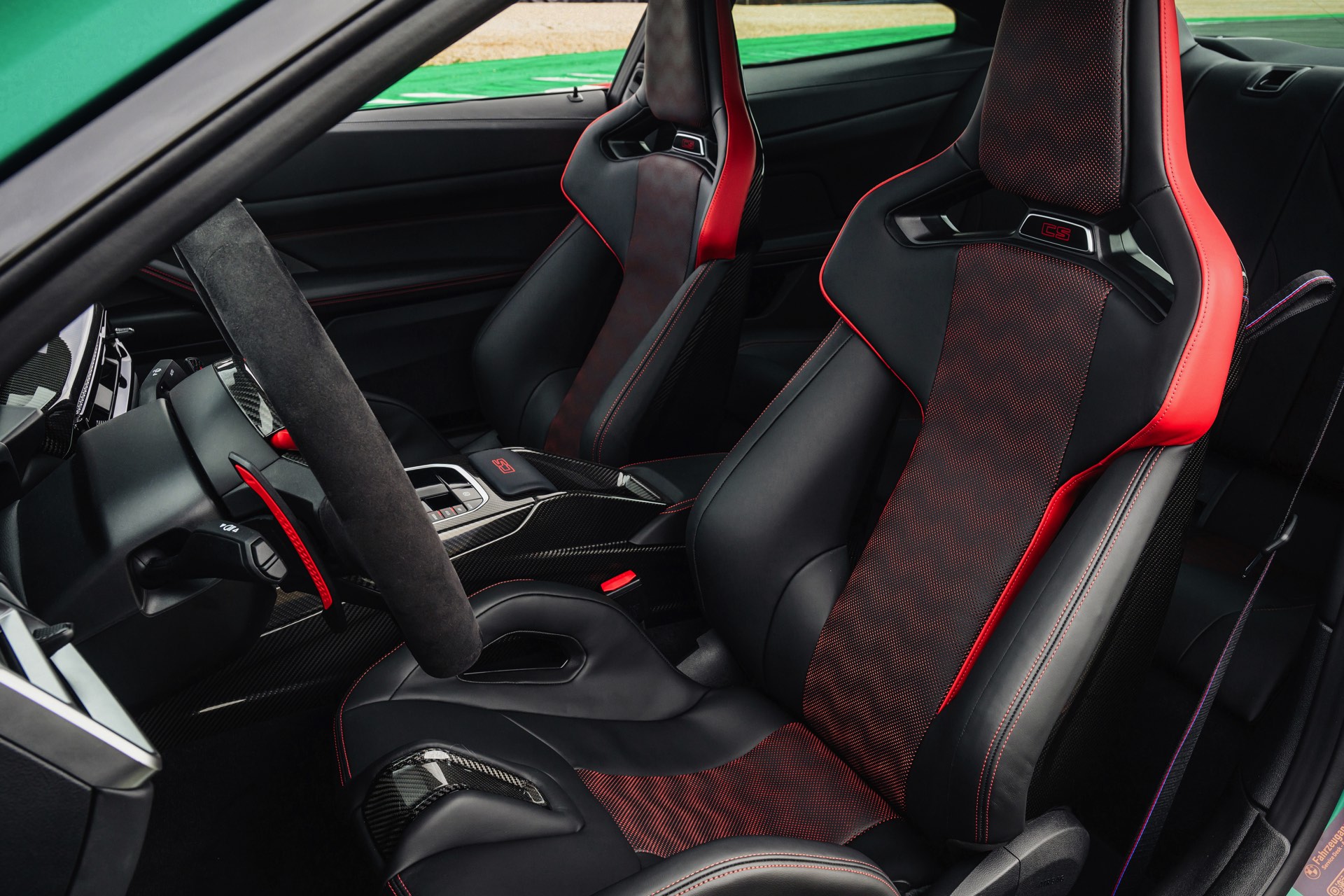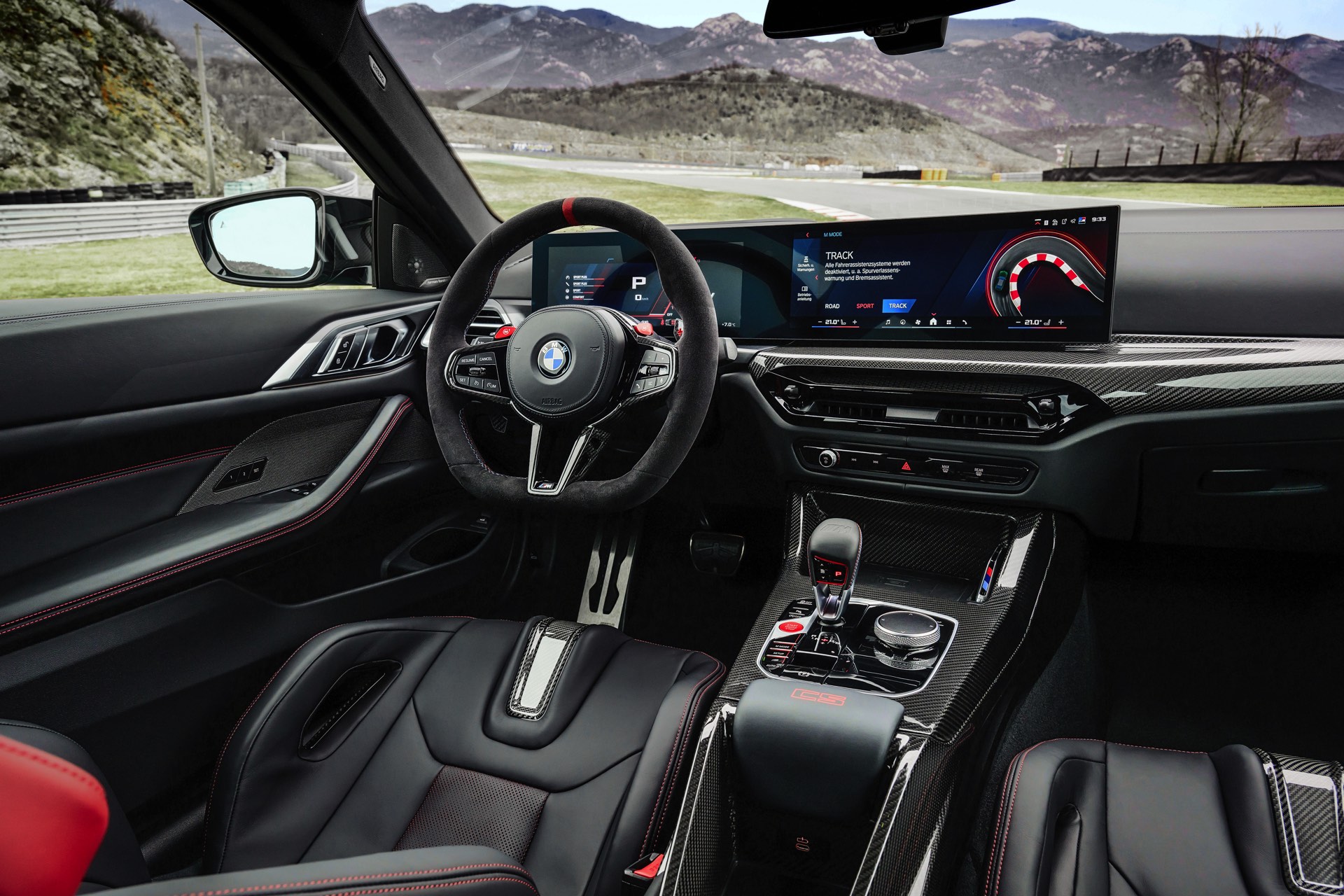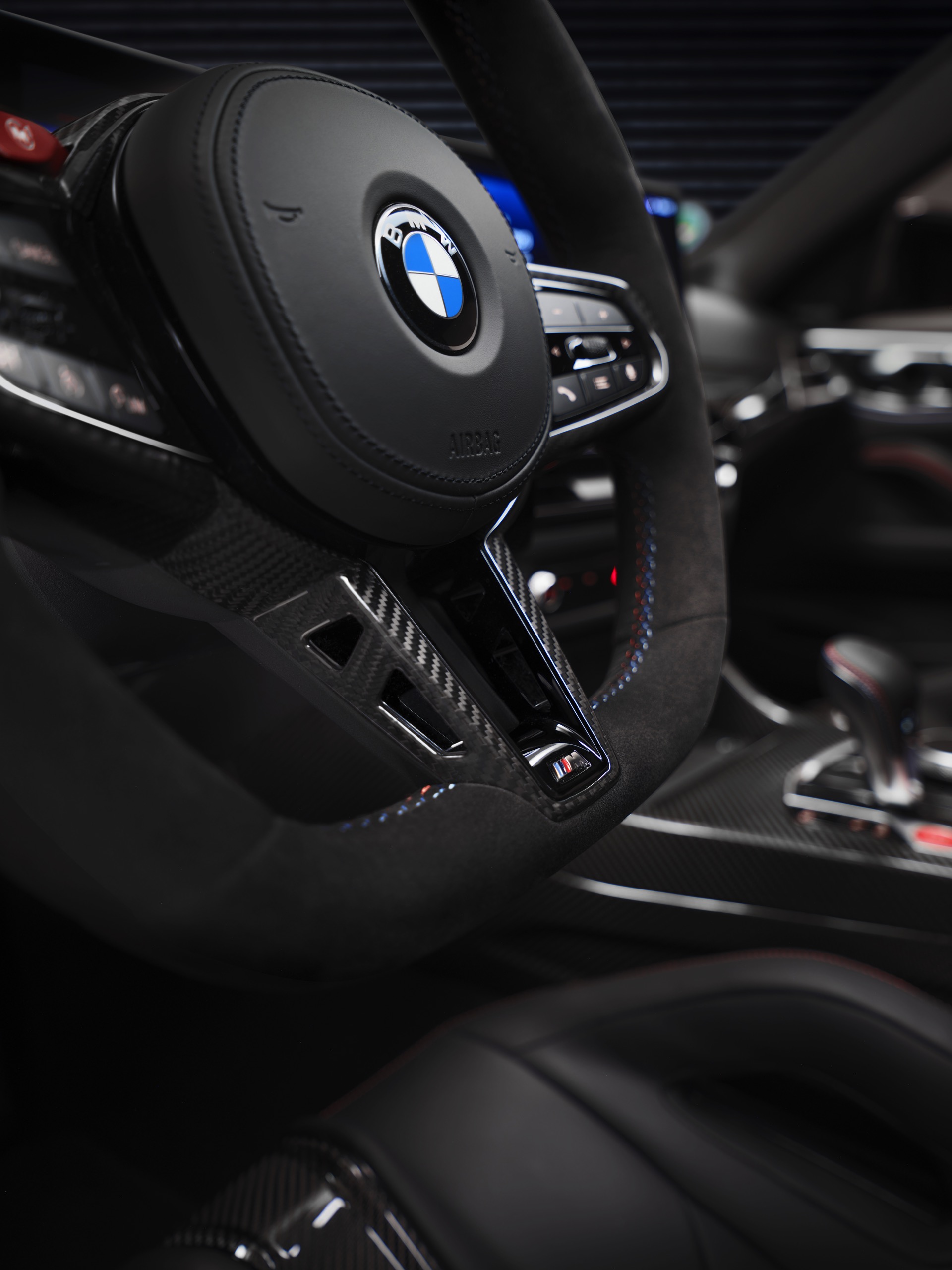Neben Dach und Motorhaube bestehen auch viele kleinere Bauteile wie Frontsplitter, Heckdiffusor, Heckspoiler und Außenspiegel-Kappen aus Carbon, dazu kommen leichte Schmiedefelgen und eine Titan-Abgasanlage mit Klappensteuerung, die in den Modi Sport und Sport+ für noch satteren Sound sorgt. Fortgesetzt wird das Diät-Programm im Innenraum, wo neben Interieurleisten und Schaltwippen auch die komplette Mittelkonsole und die Schalensitze aus Carbon bestehen. Anders als der CSL bleibt der M4 CS ein echter Viersitzer, er kommt also mit nutzbarer Rückbank und ohne Überrollkäfig.