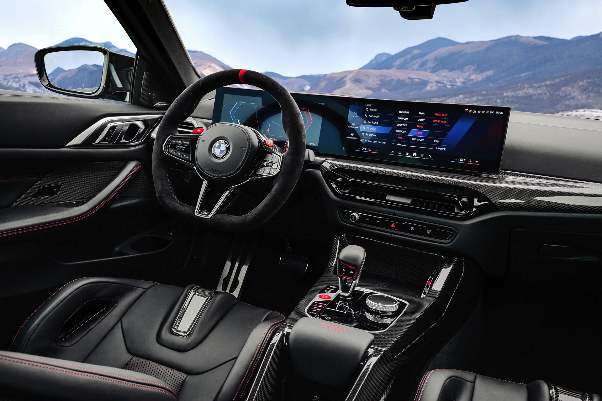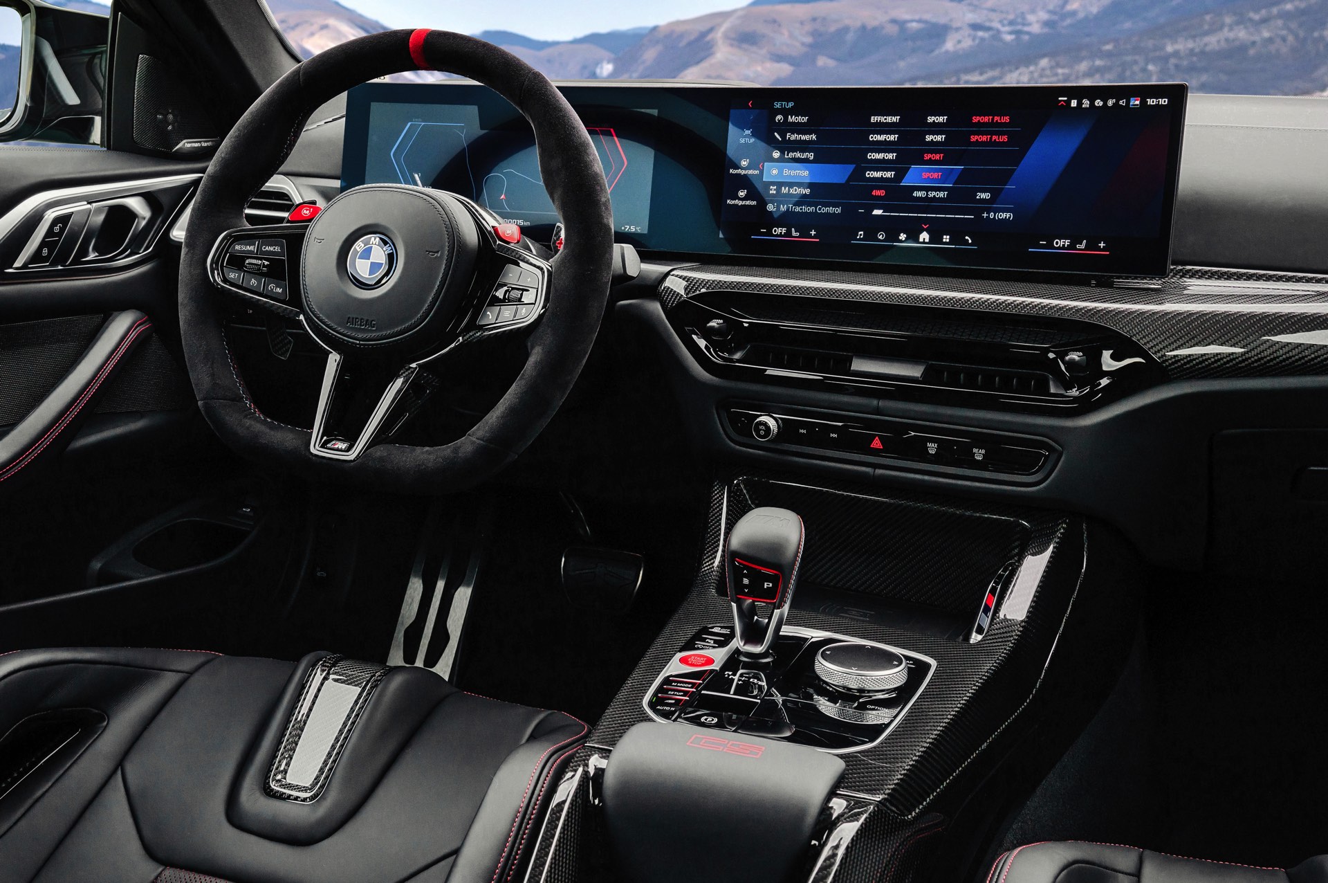 Der Allradantrieb M xDrive arbeitet wie gewohnt mit vollvariabler Kraftverteilung, wobei spätestens im Modus 4WD Sport die Hecklastigkeit überwiegt. In Verbindung mit DSC OFF ist natürlich auch im M4 CS der 2WD-Modus mit reinem Hinterradantrieb für maximalen Fahrspaß aktivierbar. Egal ob mit zwei oder vier angetriebenen Rädern, so oder so unterstützt das vollvariabel arbeitende M Differenzial an der Hinterachse den Fahrer und hilft, die Kraft bestmöglich auf den Asphalt zu bringen.