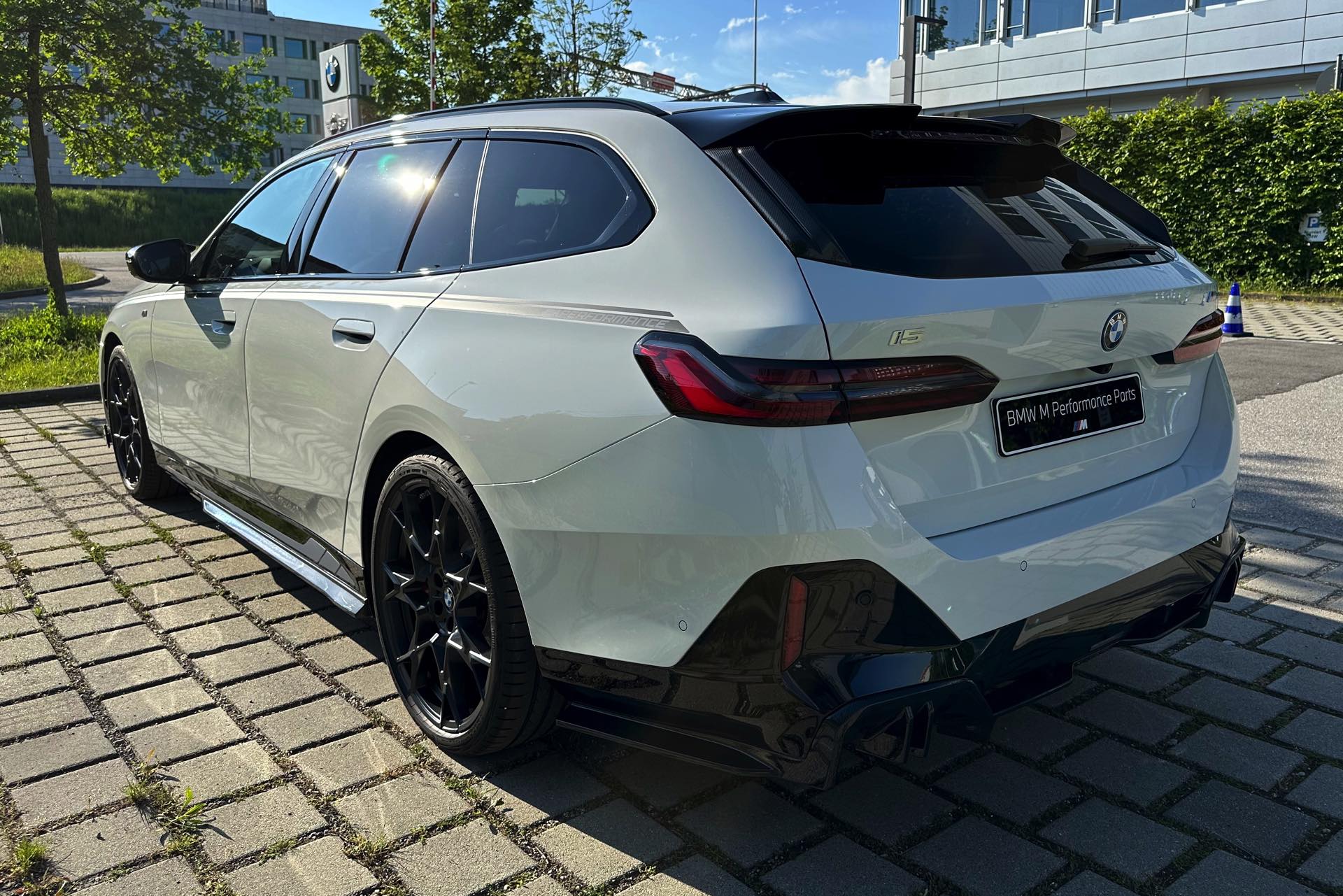 Für die zum Look passenden Fahrleistungen sorgen im Fall des BMW i5 M60 Touring gleich zwei Elektromotoren. Gemeinsam sorgen sie für eine Systemleistung von 601 PS und ein System-Drehmoment von 795 Newtonmeter. So kann der Elektro-Kombi in 3,9 Sekunden von 0 auf 100 km/h beschleunigen und damit den meisten Verbrennern locker die Rückleuchten zeigen. Für das praktische Power-Paket rufen die Münchner allerdings auch einen sechsstelligen Preis auf – selbst dann, wenn auf alle hier gezeigten M Performance Parts verzichtet wird.