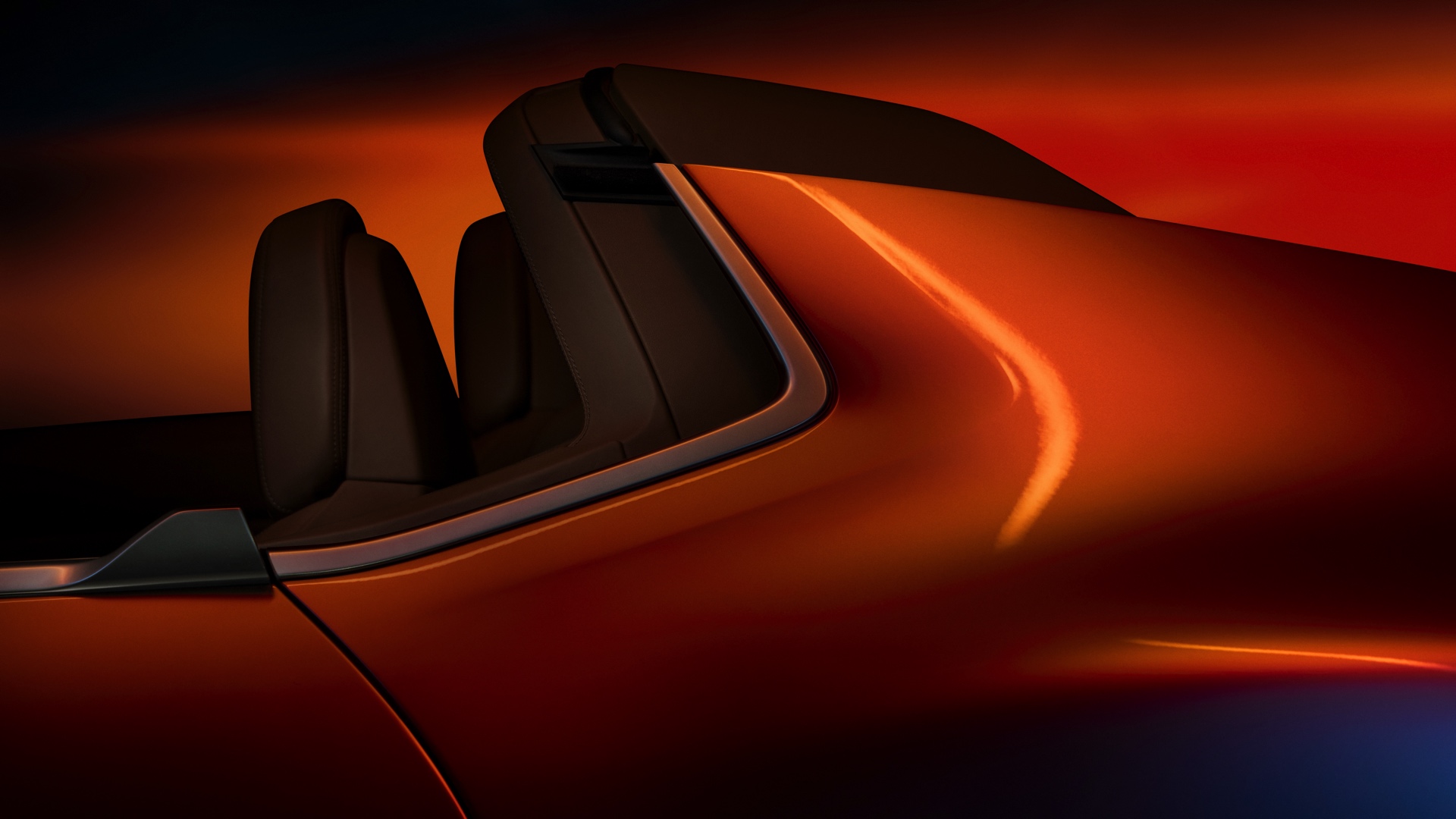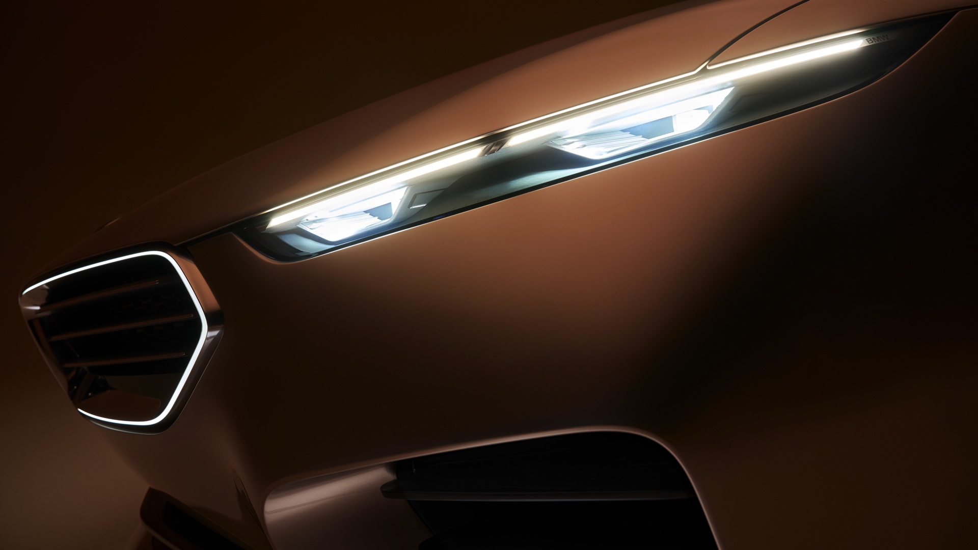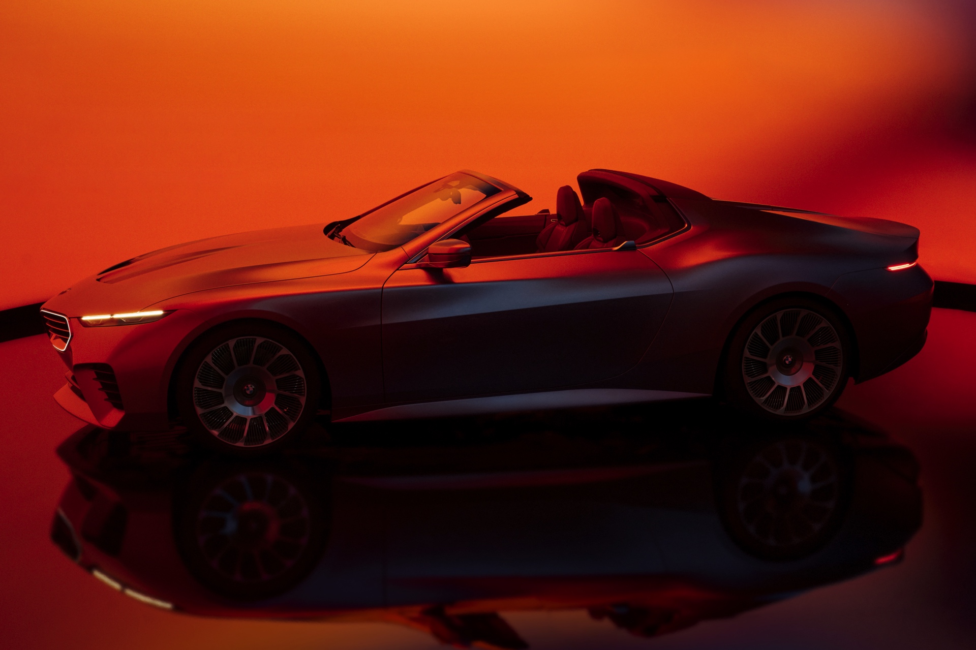 Die neu interpretierte Niere, natürlich mit dezent beleuchteter Iconic Glow-Einfassung, ist genau wie die im unteren Teil der Frontschürze platzierten Lufteinlässe von horizontalen Streben geprägt, wie wir sie seit kurzem an allen neuen BMW M-Modellen sehen. Erst in der Seitenansicht und beim Blick von oben fällt auf, dass die Front als Sharknose mit starker Pfeilung ausgeführt ist und damit eine unter anderem vom klassischen 6er Coupé (E24) bekannte Idee aufgreift. Extrem flach gezeichnete Scheinwerfer erinnern auf den ersten Blick an die Split Headlights anderer aktueller Modelle, allerdings ist im Fall des BMW Skytop wirklich die komplett Lichttechnik auf wenigen Zentimetern Höhe untergebracht und somit kein unteres Scheinwerfer-Element erforderlich. "