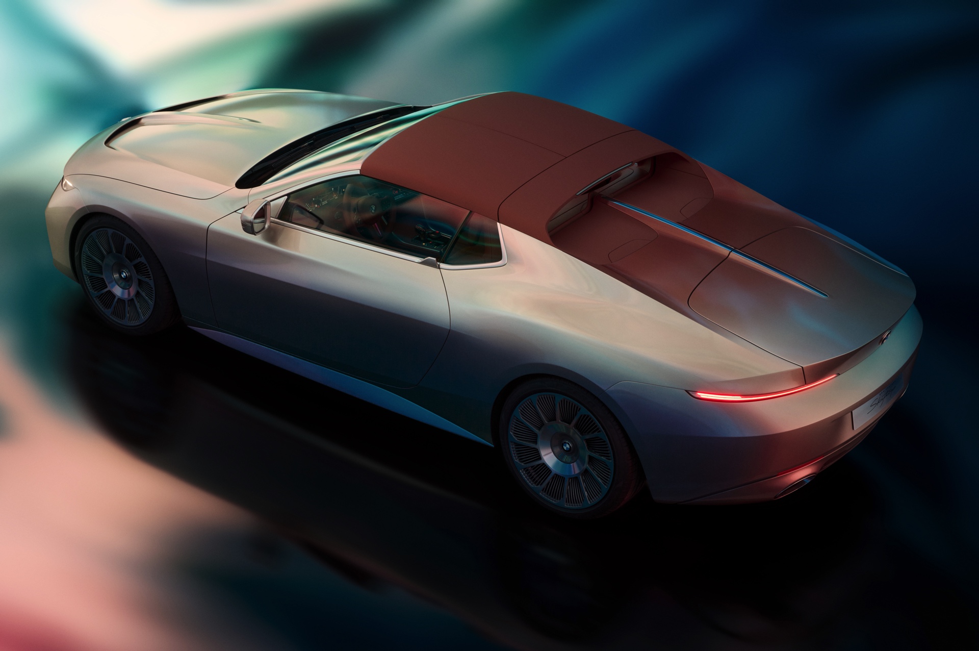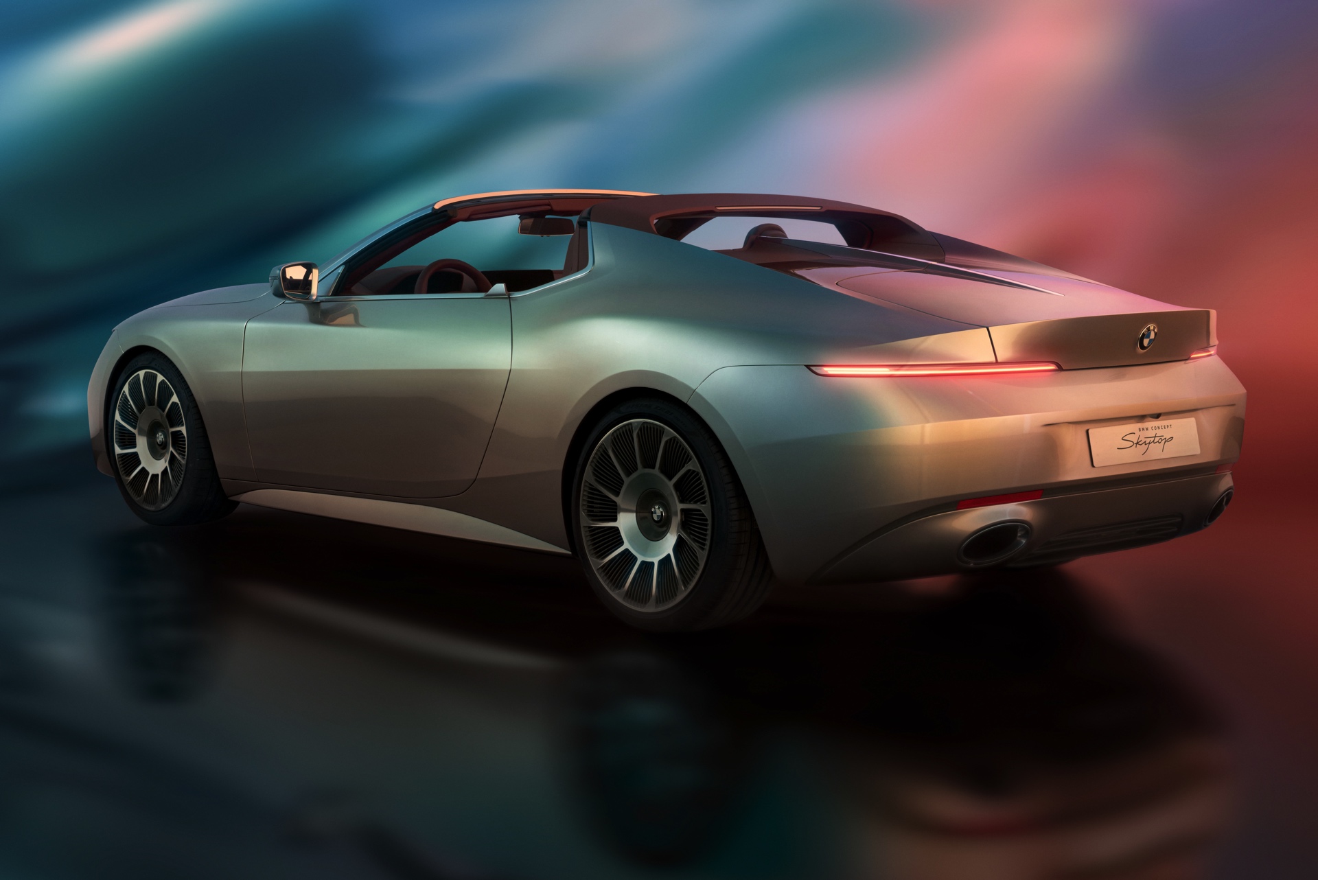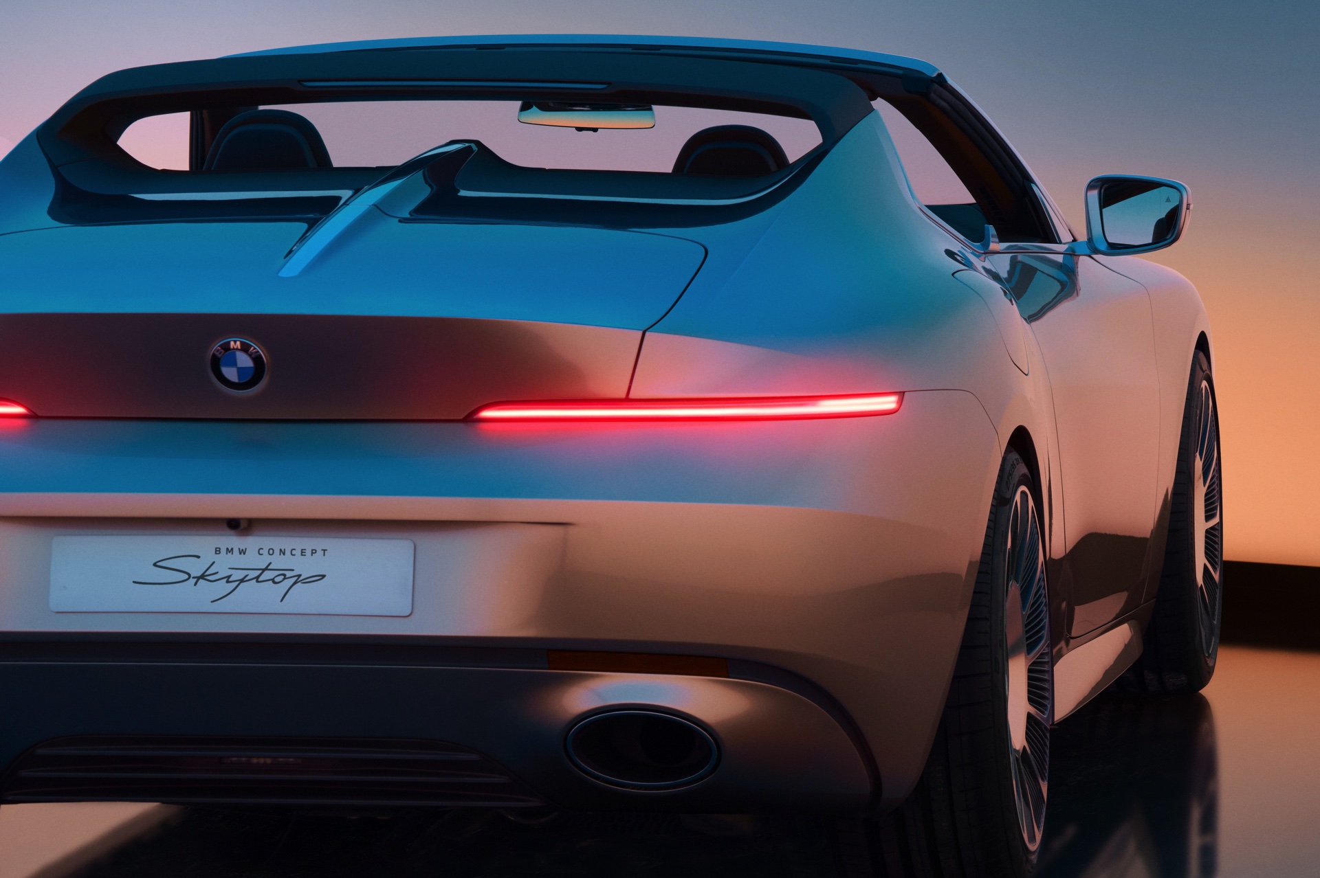 Alles andere als gewöhnlich ist auch die Lackierung des BMW Skytop: Als Haupt-Farbe wurde ein gedecktes Silber mit Chromshadow-Effekt gewählt, aber im Heckbereich sorgt ein aufwändig lackierter Farbverlauf für einen besonders harmonischen Übergang zum rötlichen Braunton von Dachschalen und Überrrollbügel.